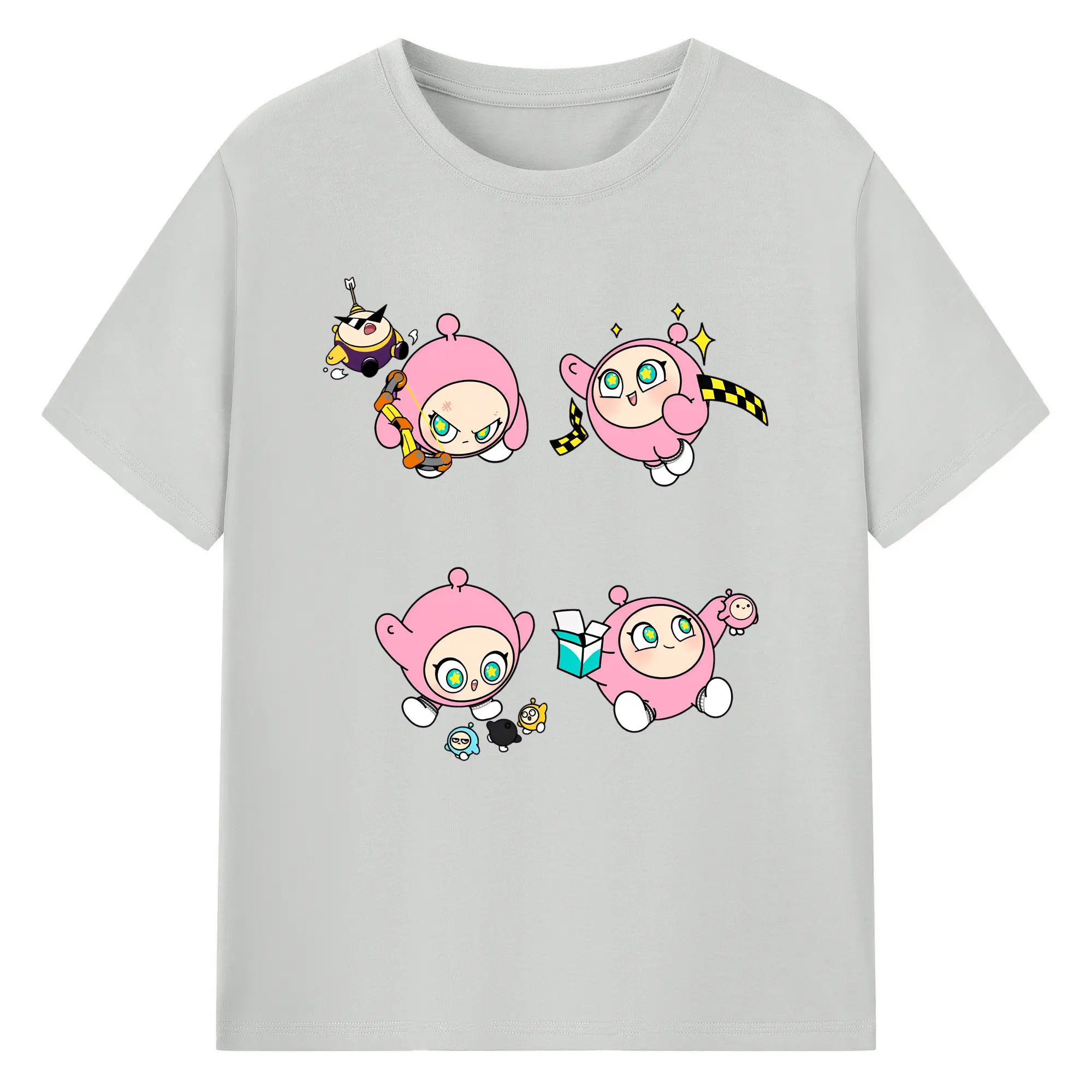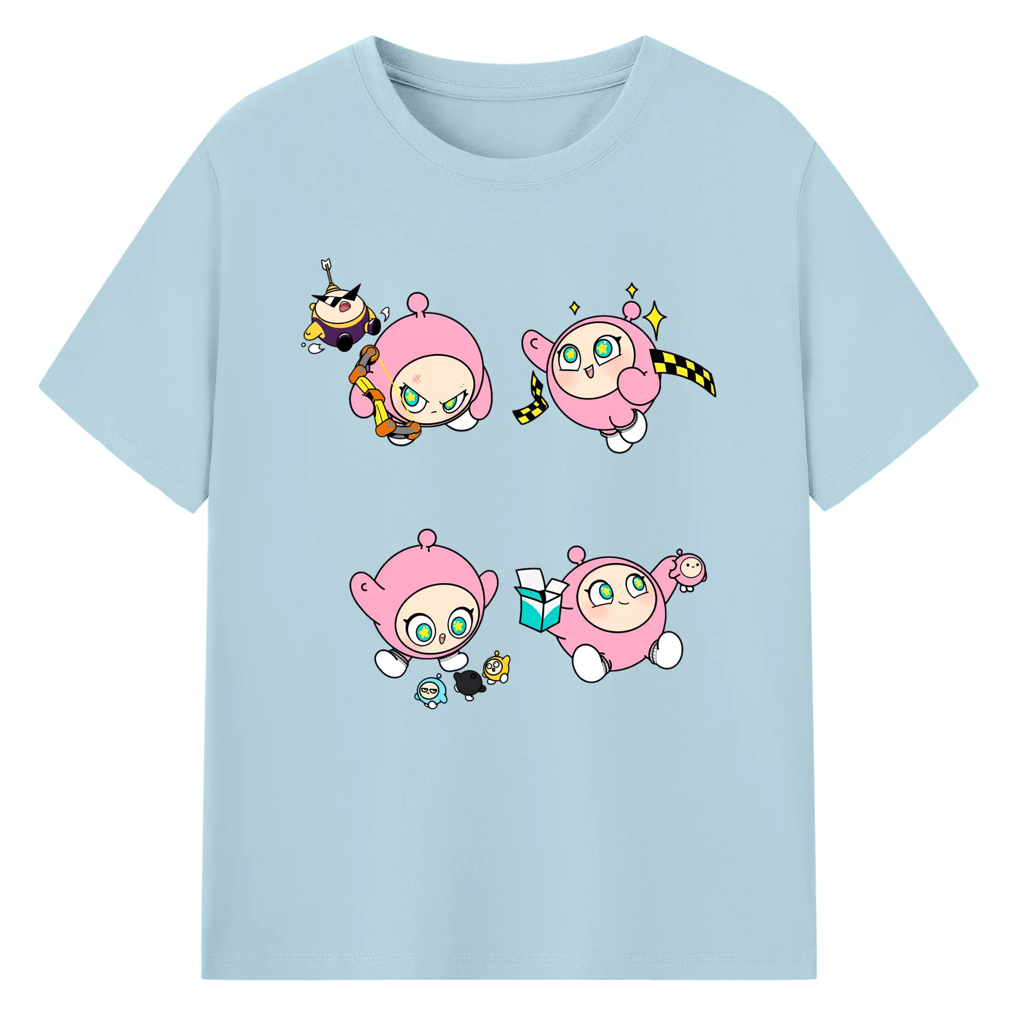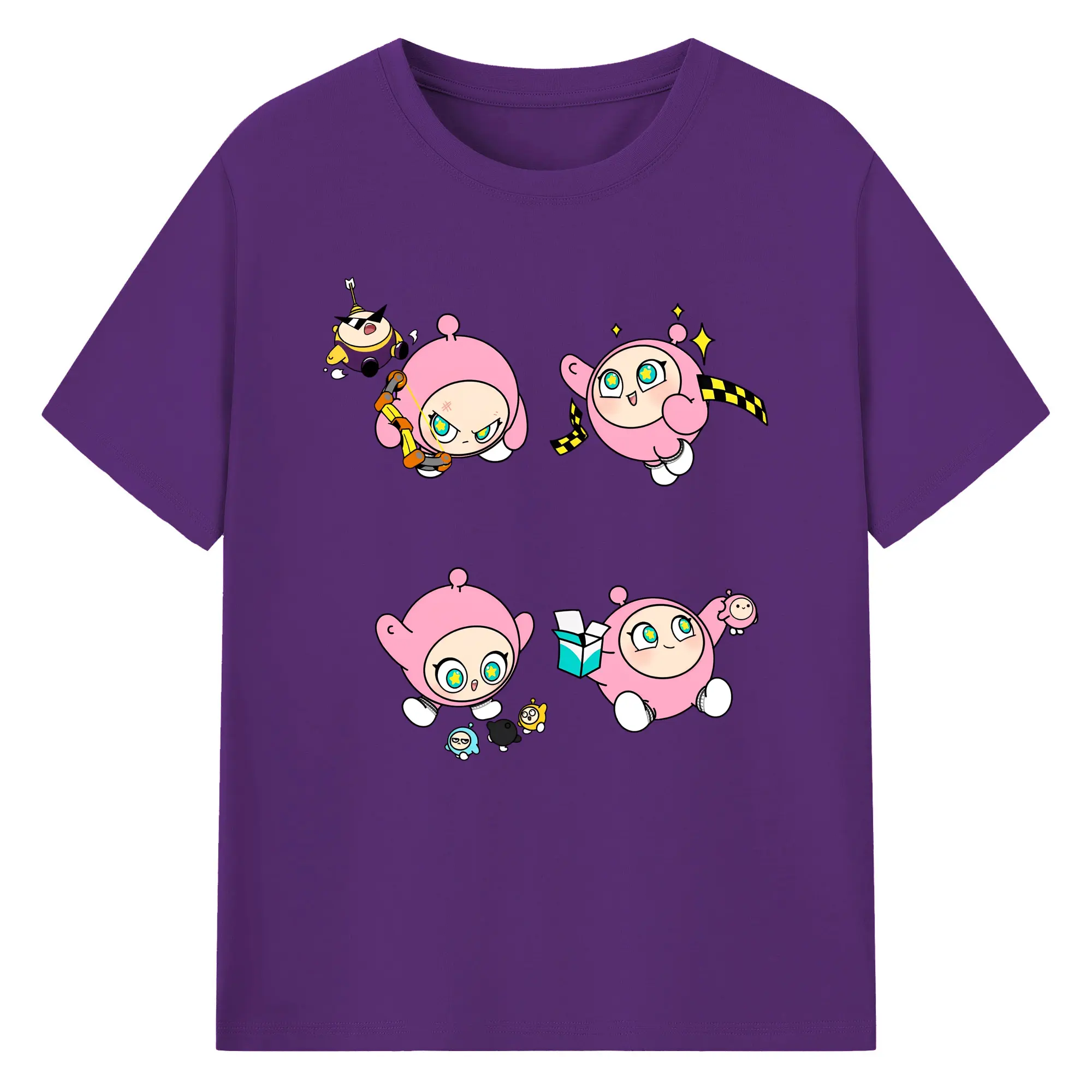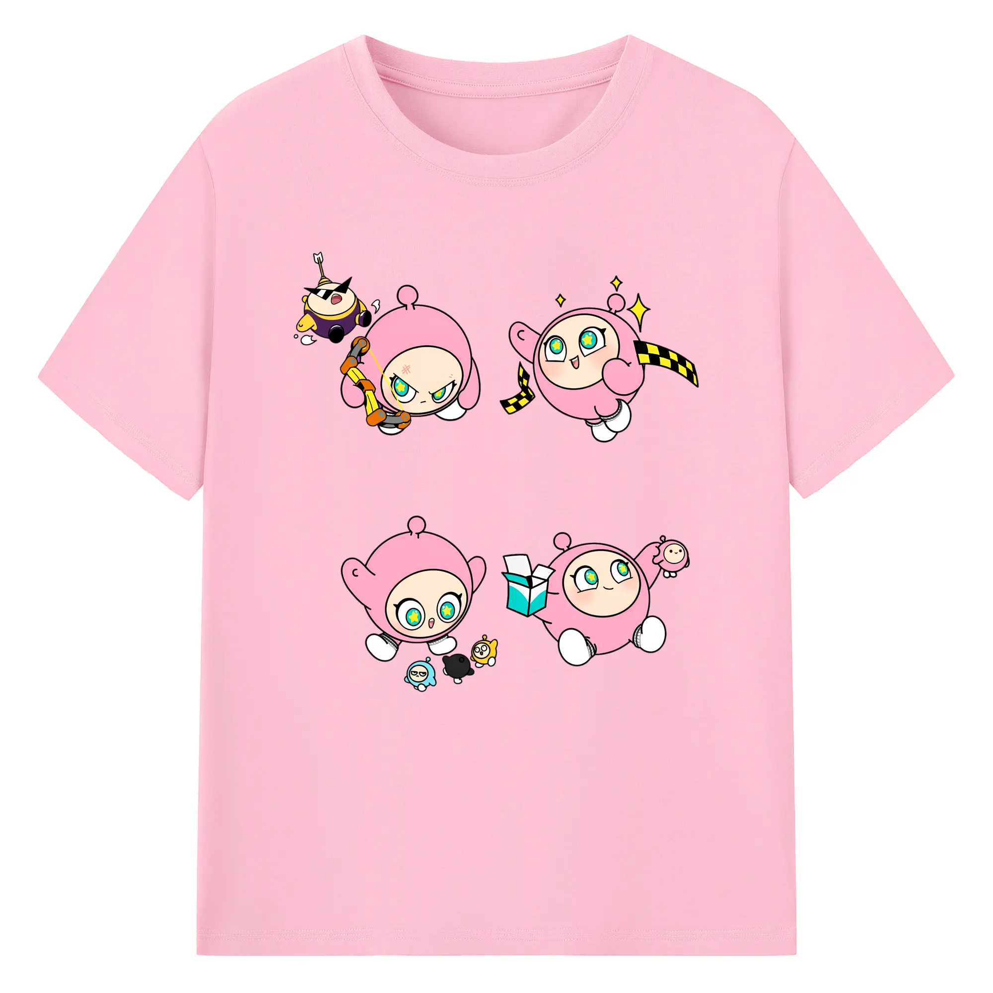 ふわふわ蛋小粉💗 ゲームの世界から飛び出したキュート - 綿100% 半袖Tシャツ ・ フロントプリント ・ 快適 通気性 ・ 日常使い 散歩 スポーツ用