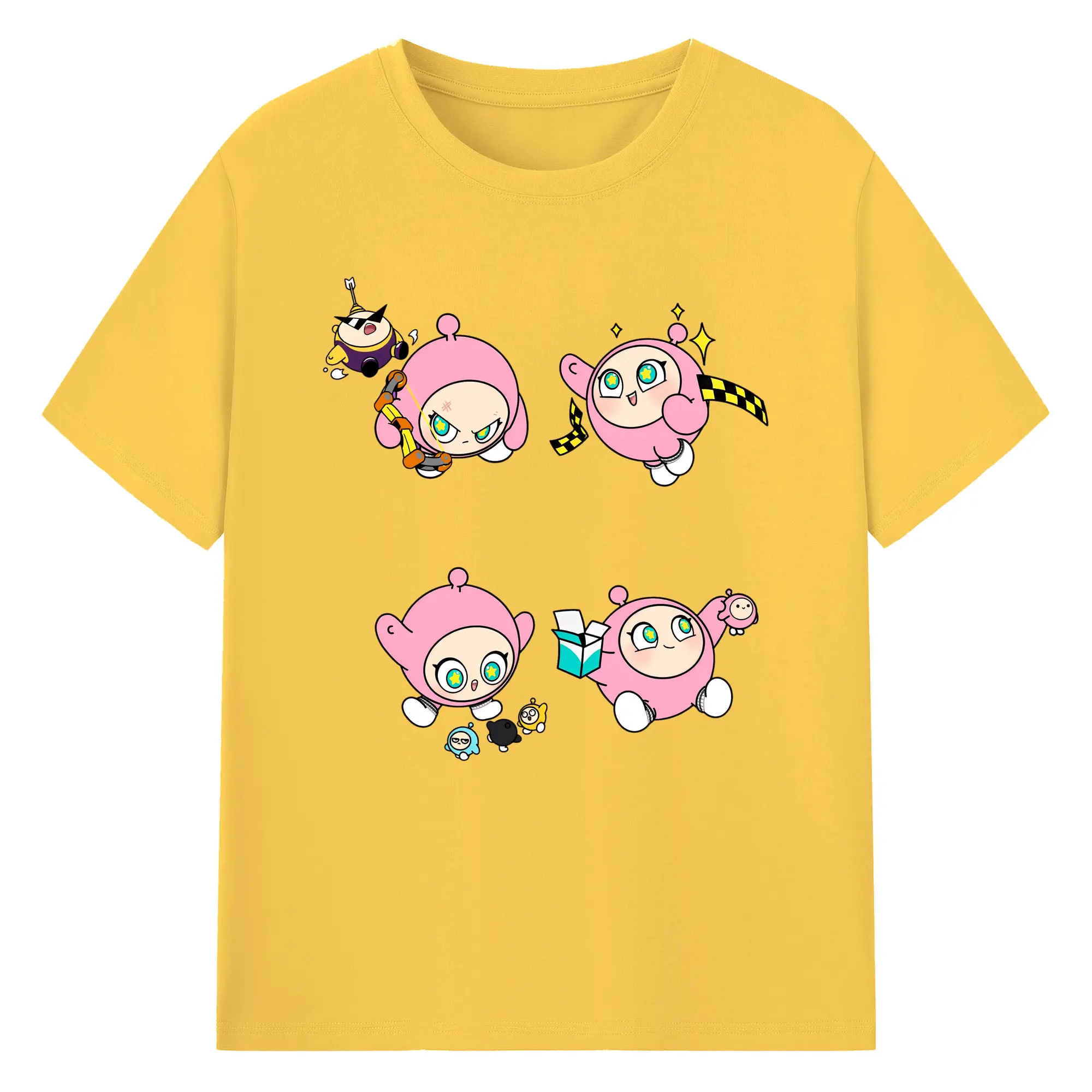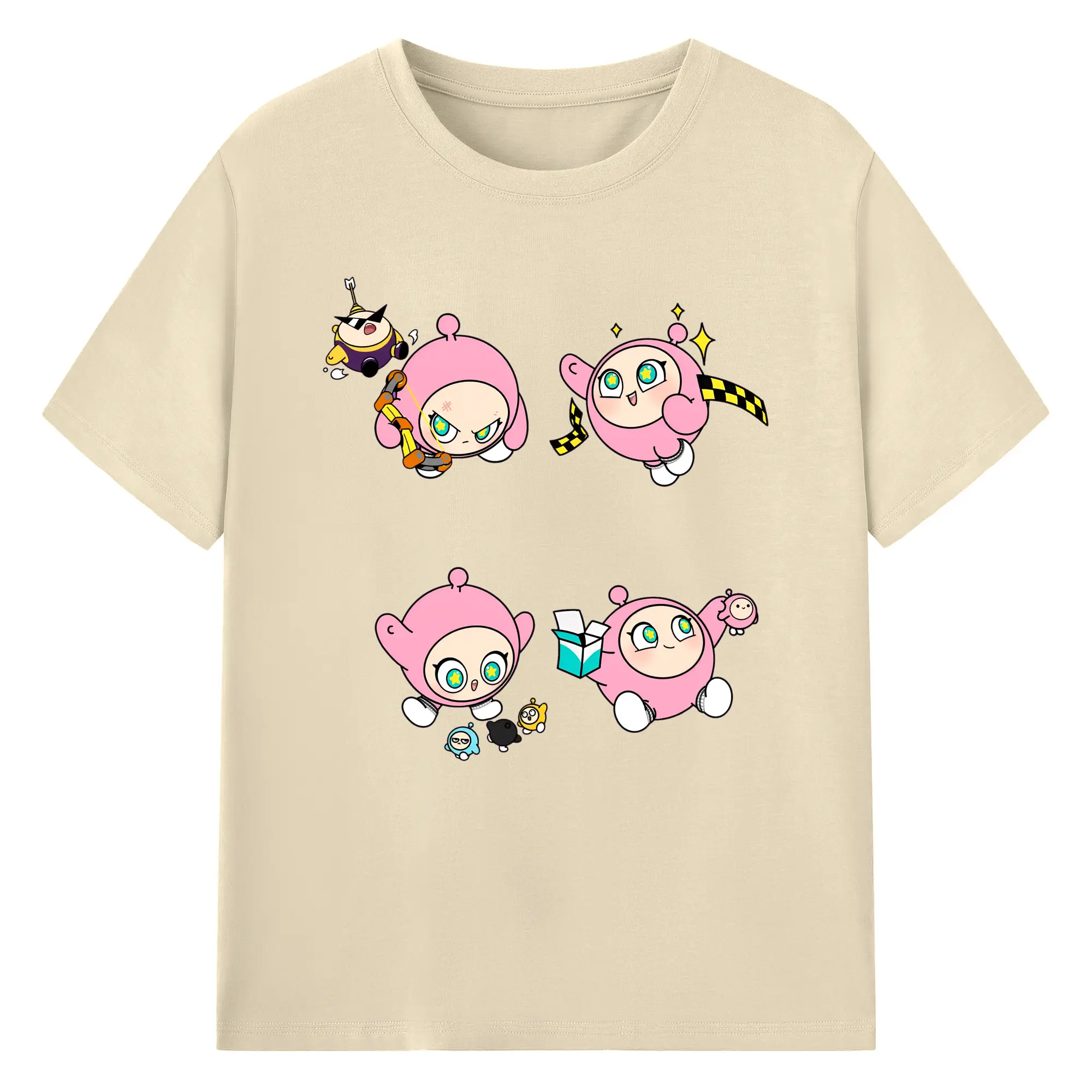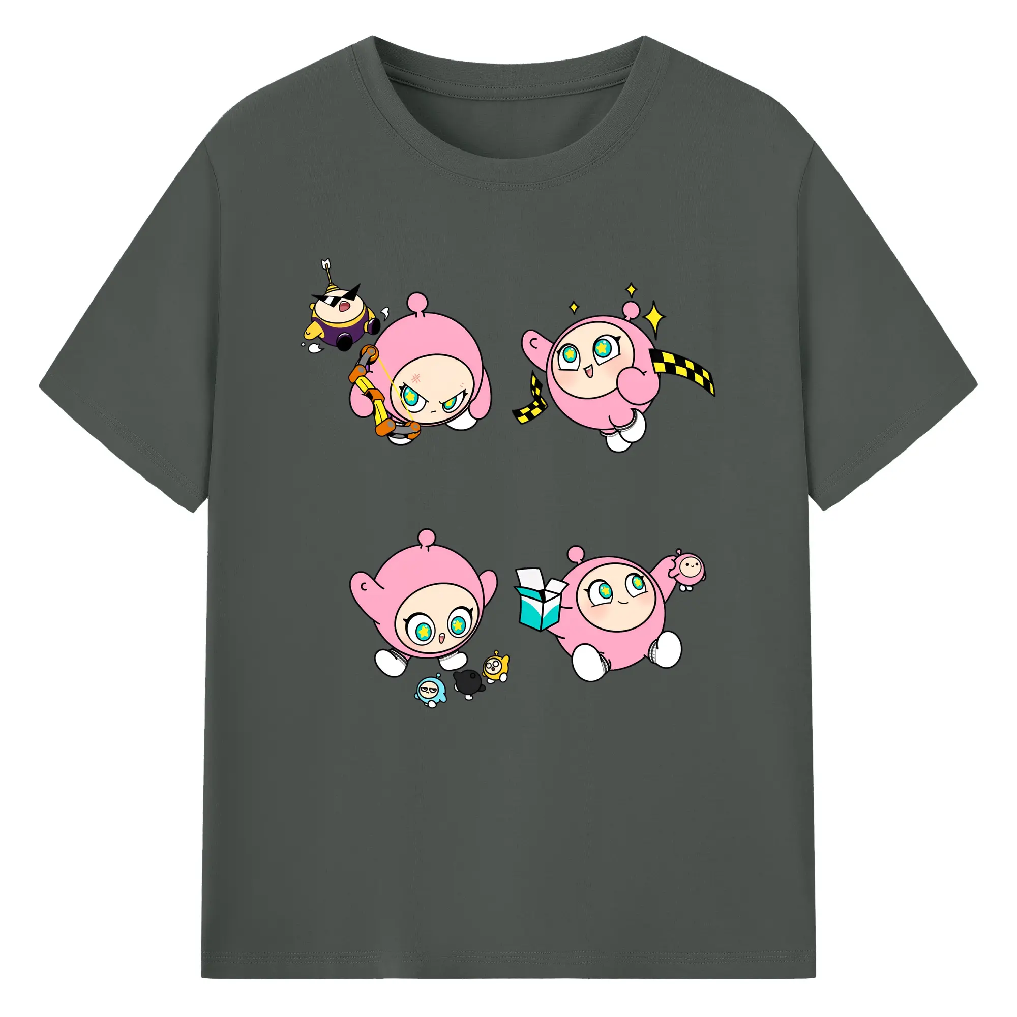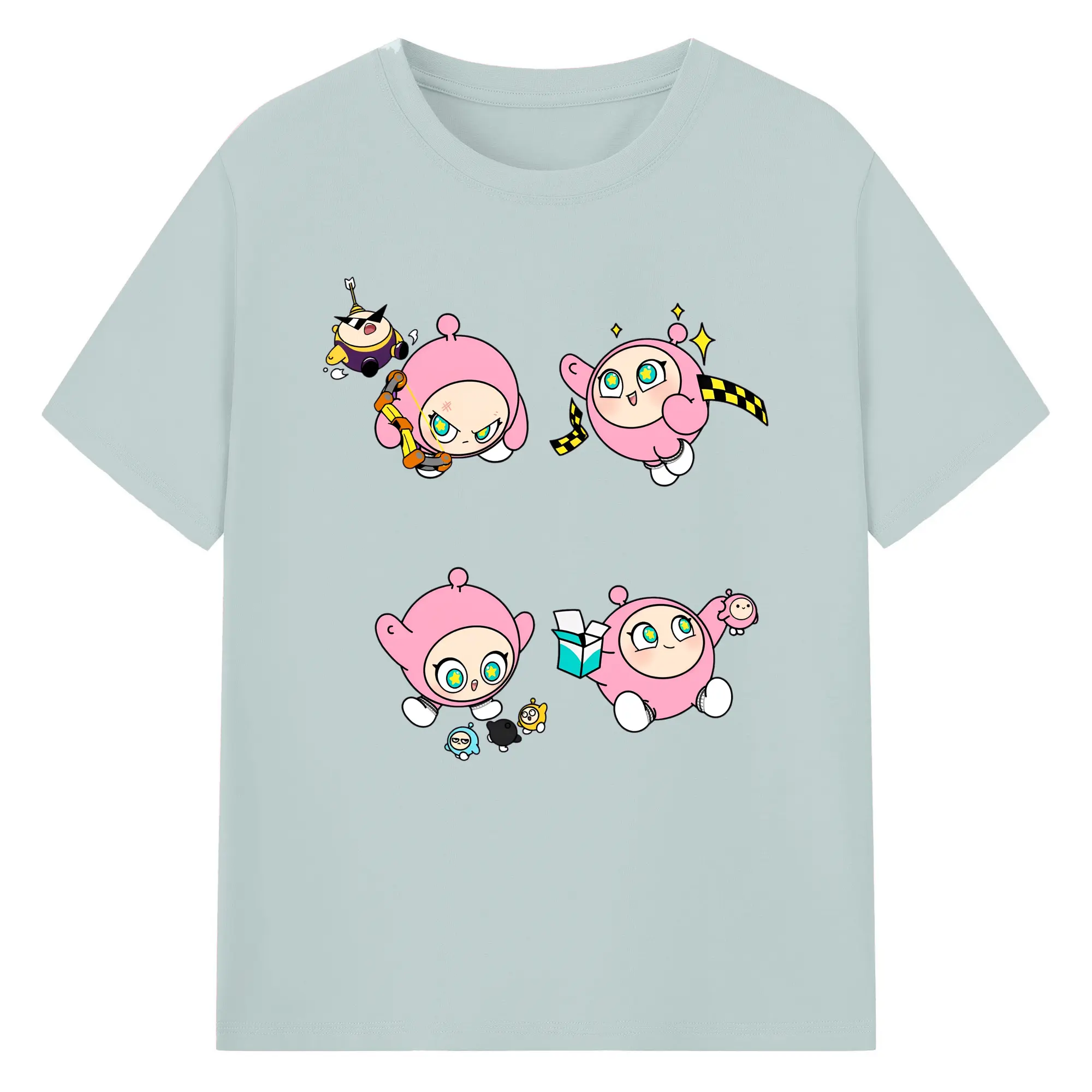 ふわふわ蛋小粉💗 ゲームの世界から飛び出したキュート - 綿100% 半袖Tシャツ ・ フロントプリント ・ 快適 通気性 ・ 日常使い 散歩 スポーツ用