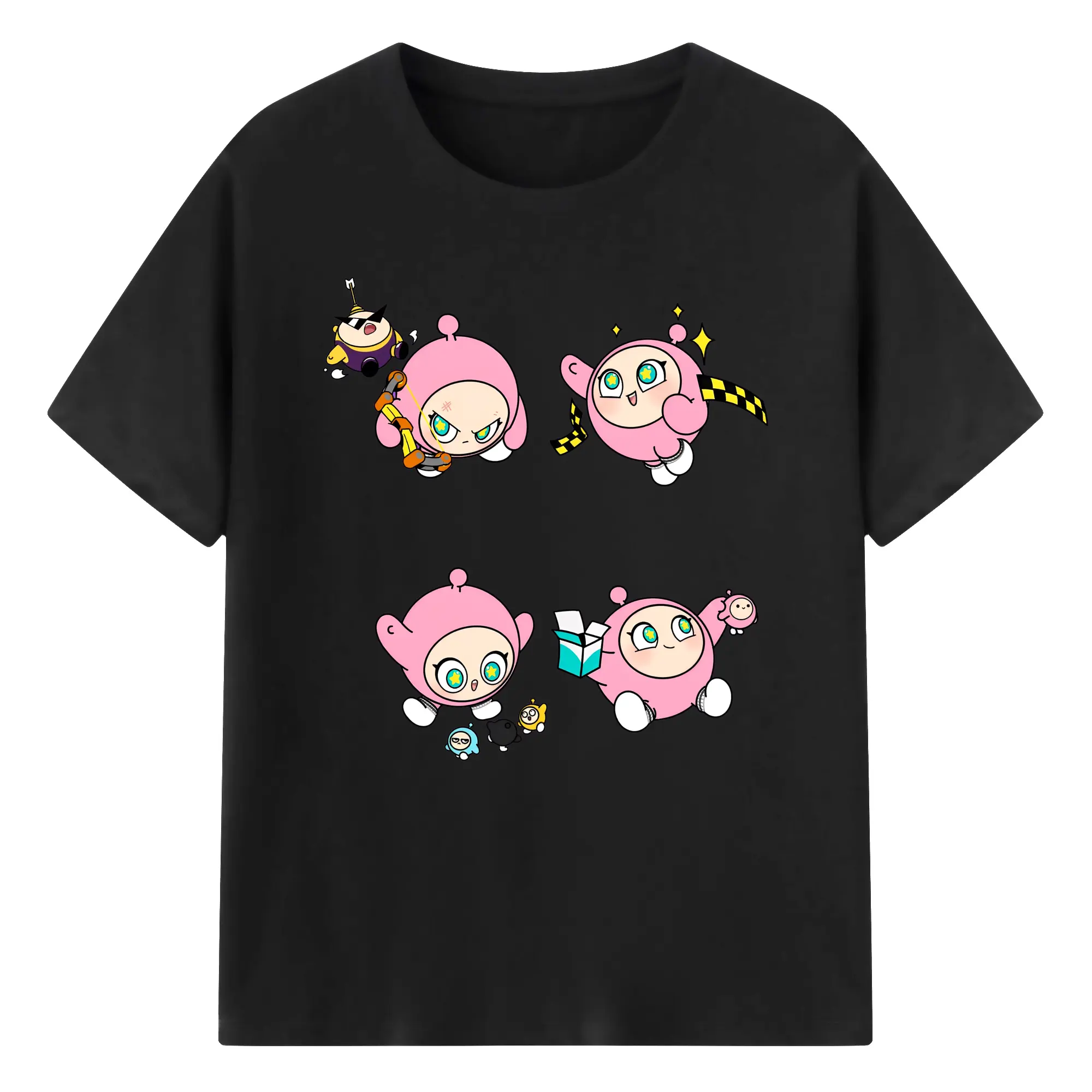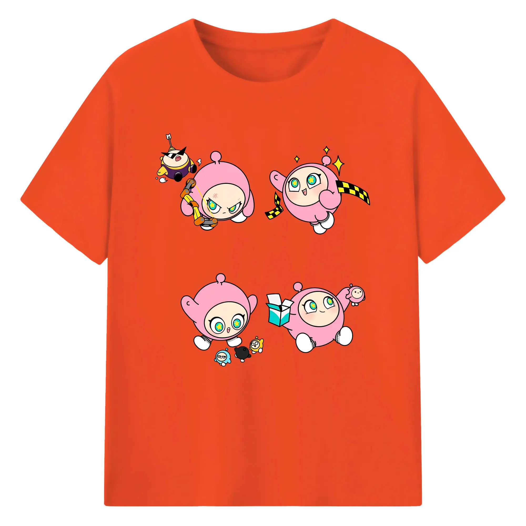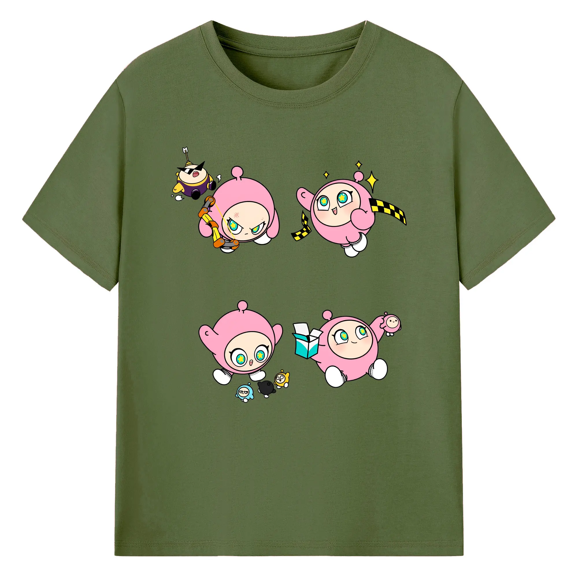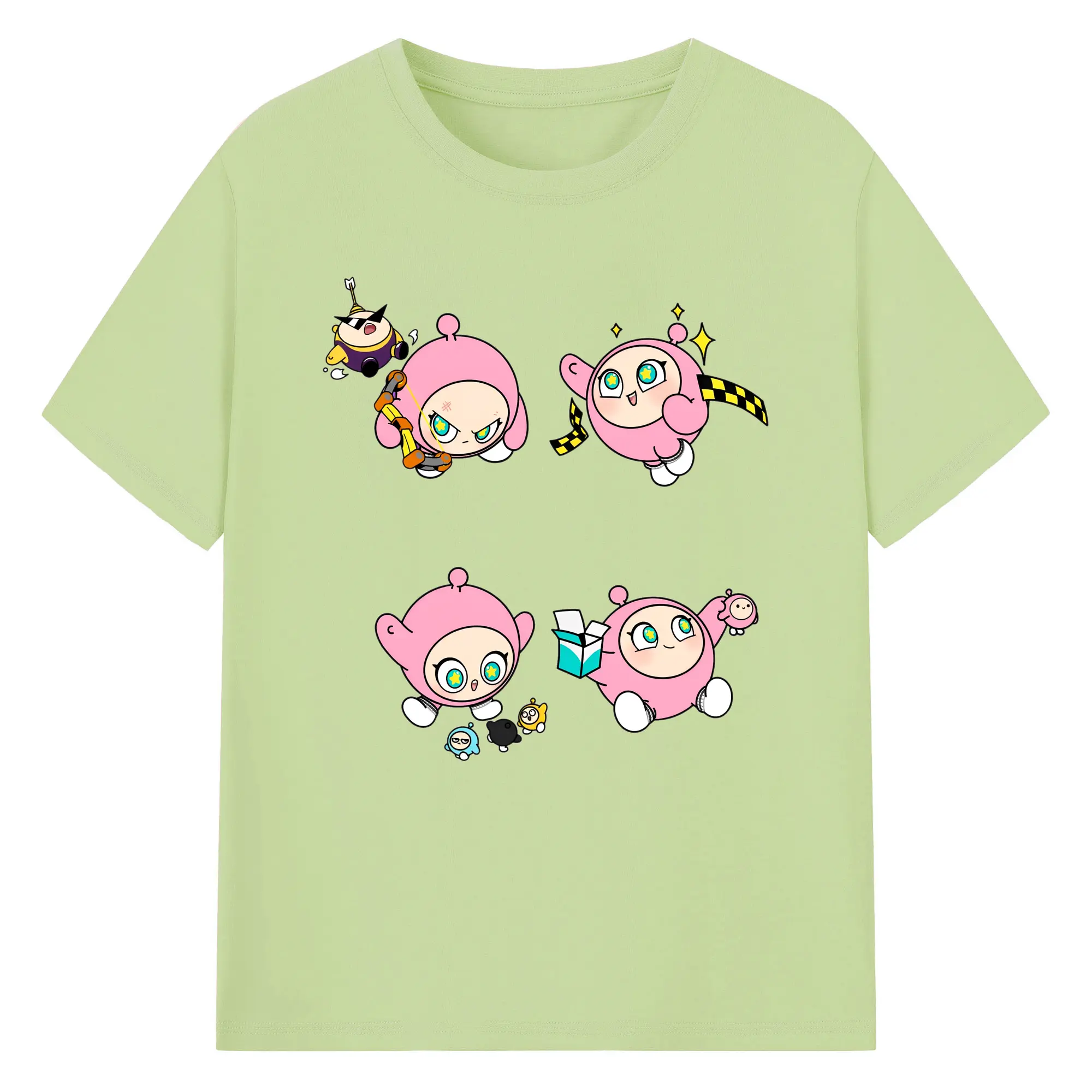 ふわふわ蛋小粉💗 ゲームの世界から飛び出したキュート - 綿100% 半袖Tシャツ ・ フロントプリント ・ 快適 通気性 ・ 日常使い 散歩 スポーツ用