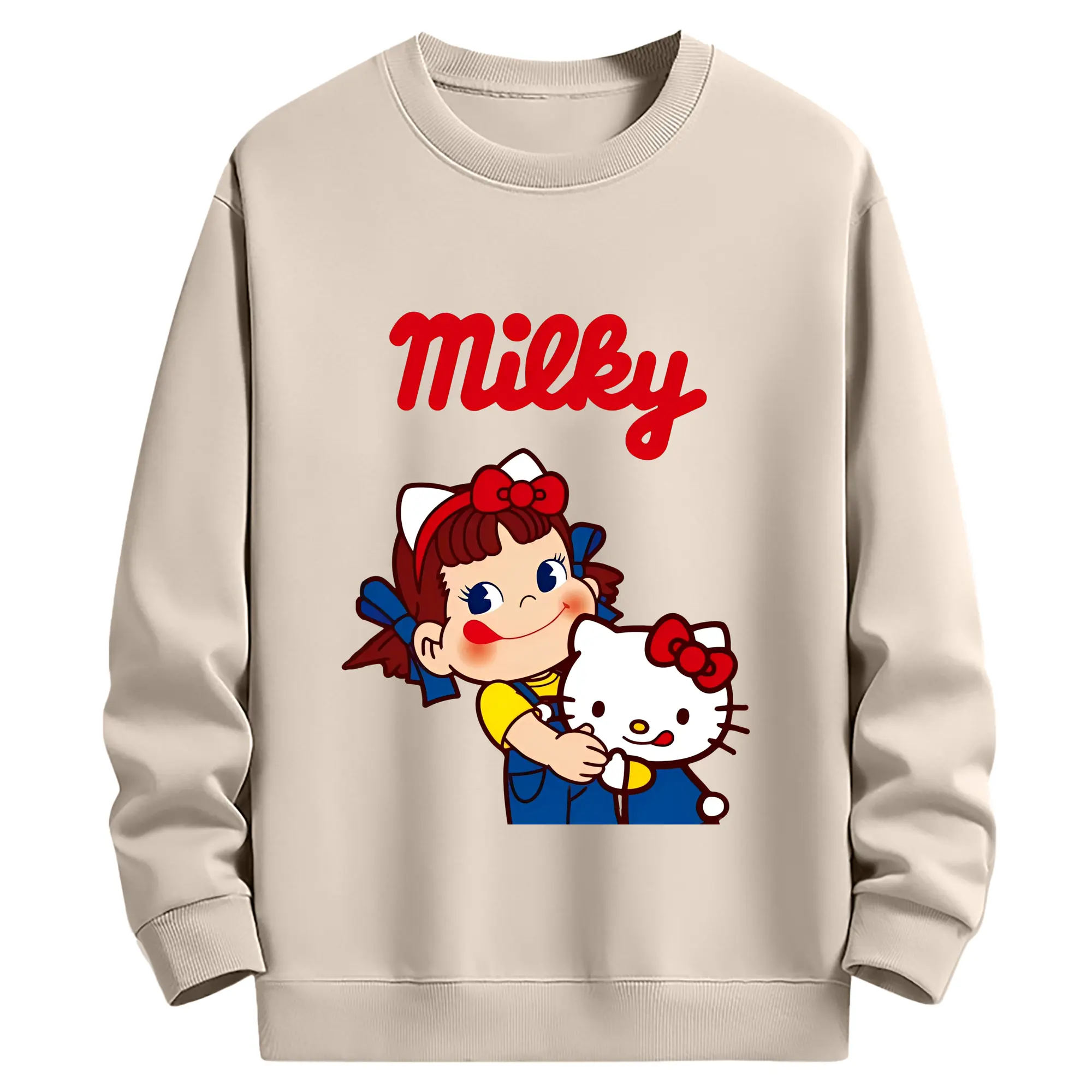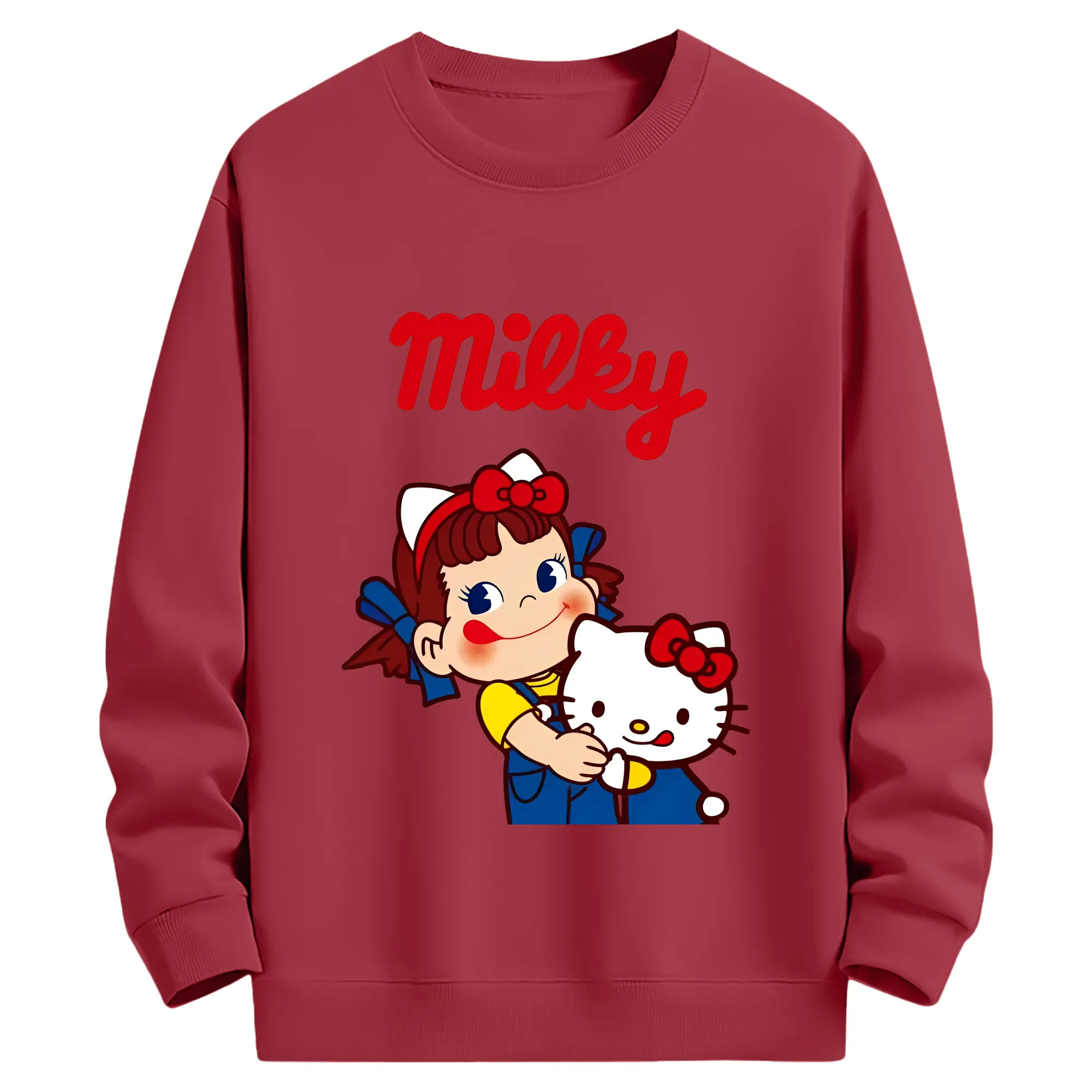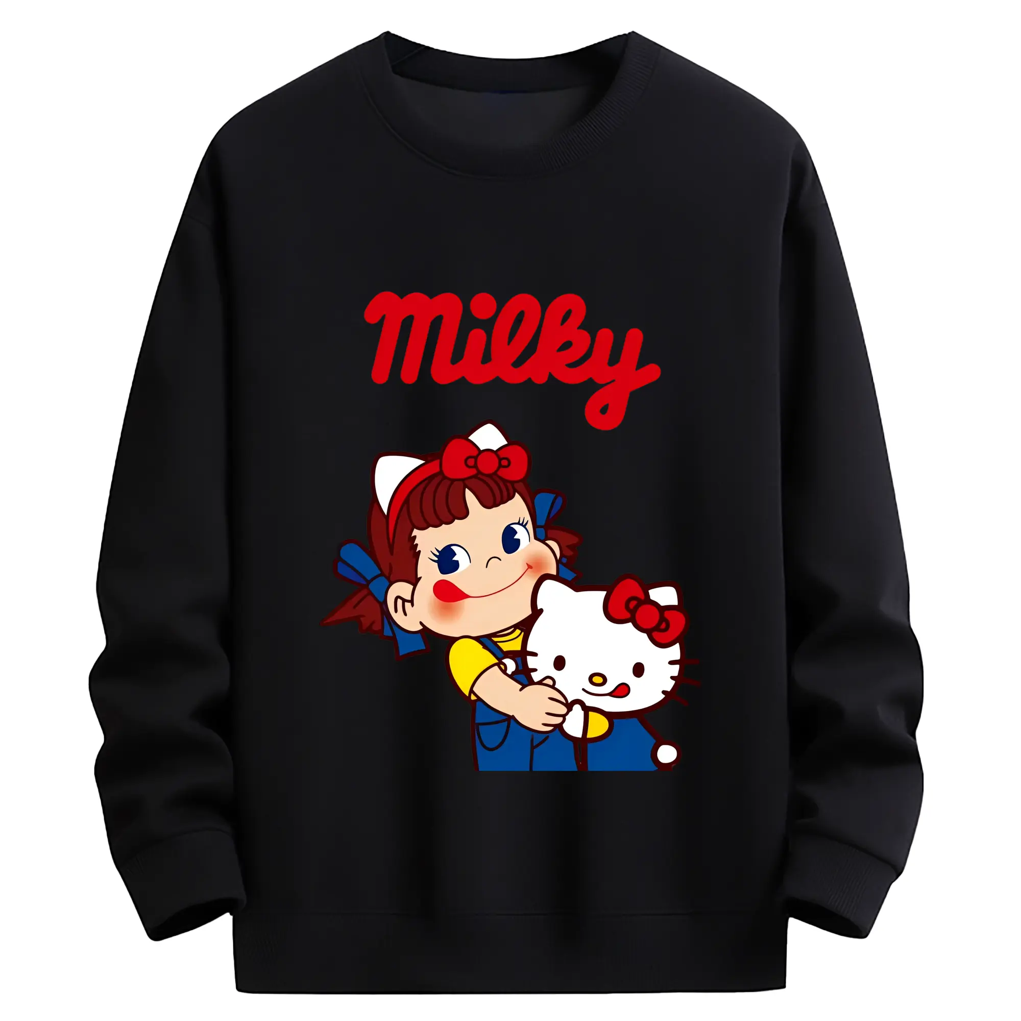 夢のコラボ!ペコちゃんとハローキティ - 綿100% 半袖Tシャツ ・ フロントプリント ・ 快適 通気性 ・ 日常使い 散歩 スポーツ用