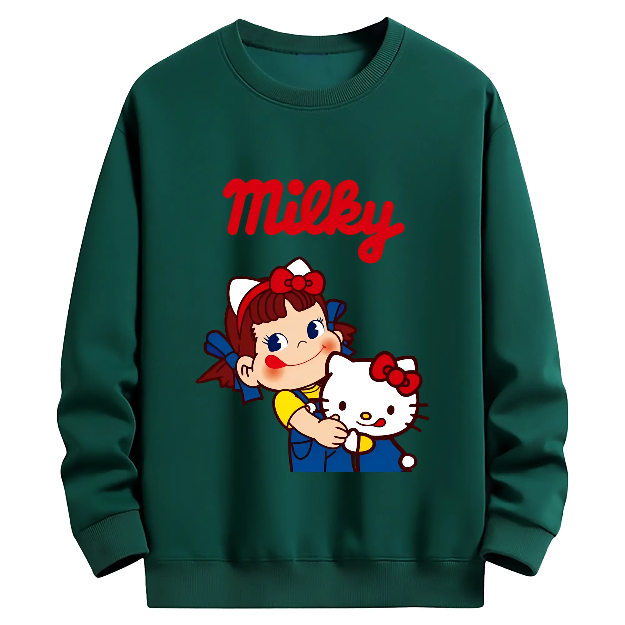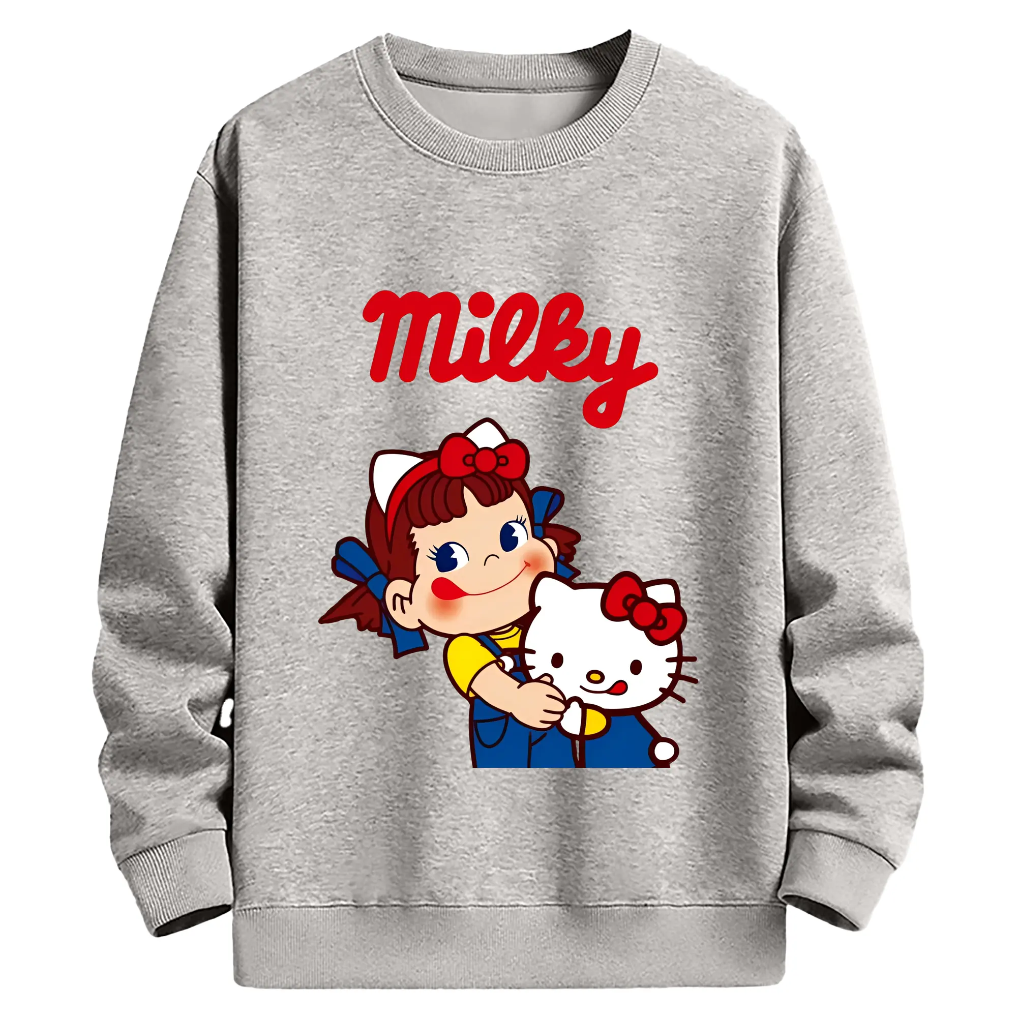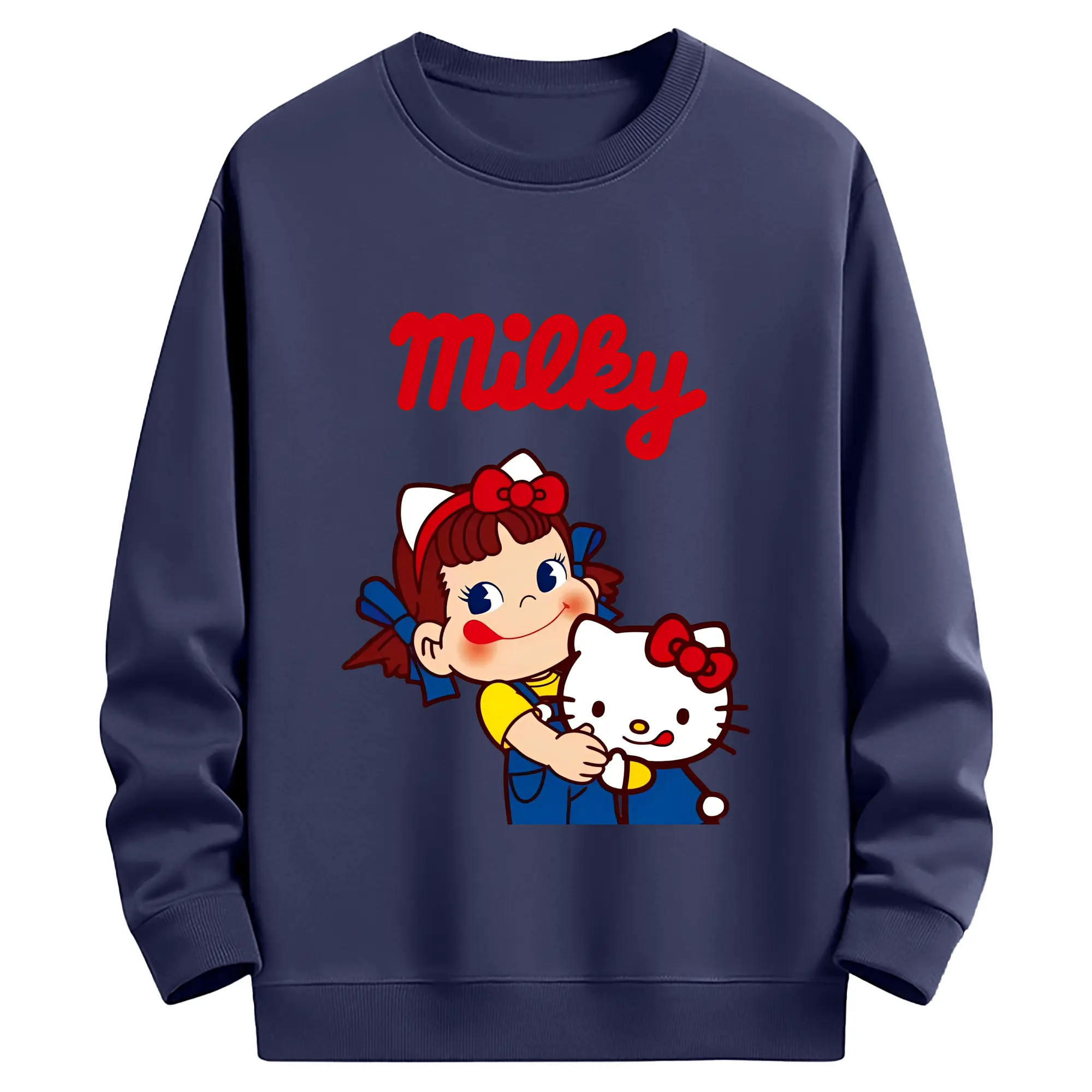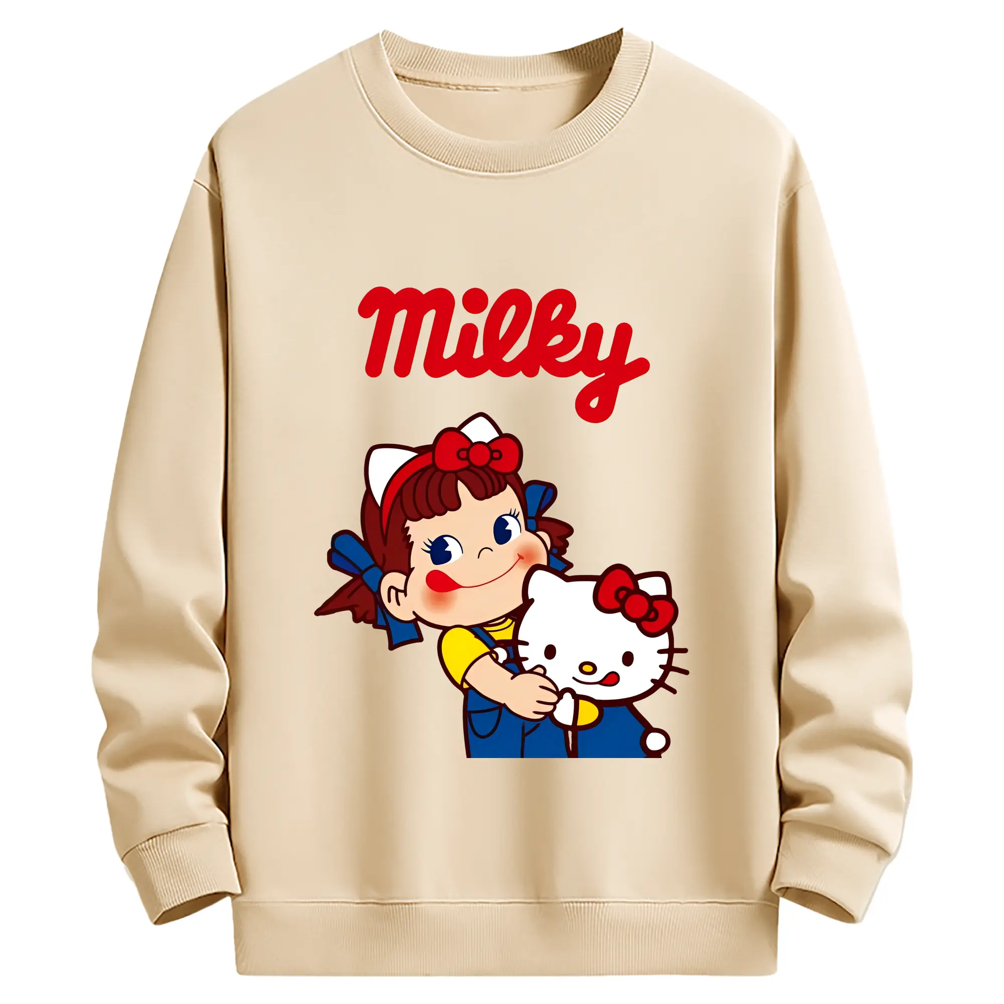 夢のコラボ!ペコちゃんとハローキティ - 綿100% 半袖Tシャツ ・ フロントプリント ・ 快適 通気性 ・ 日常使い 散歩 スポーツ用