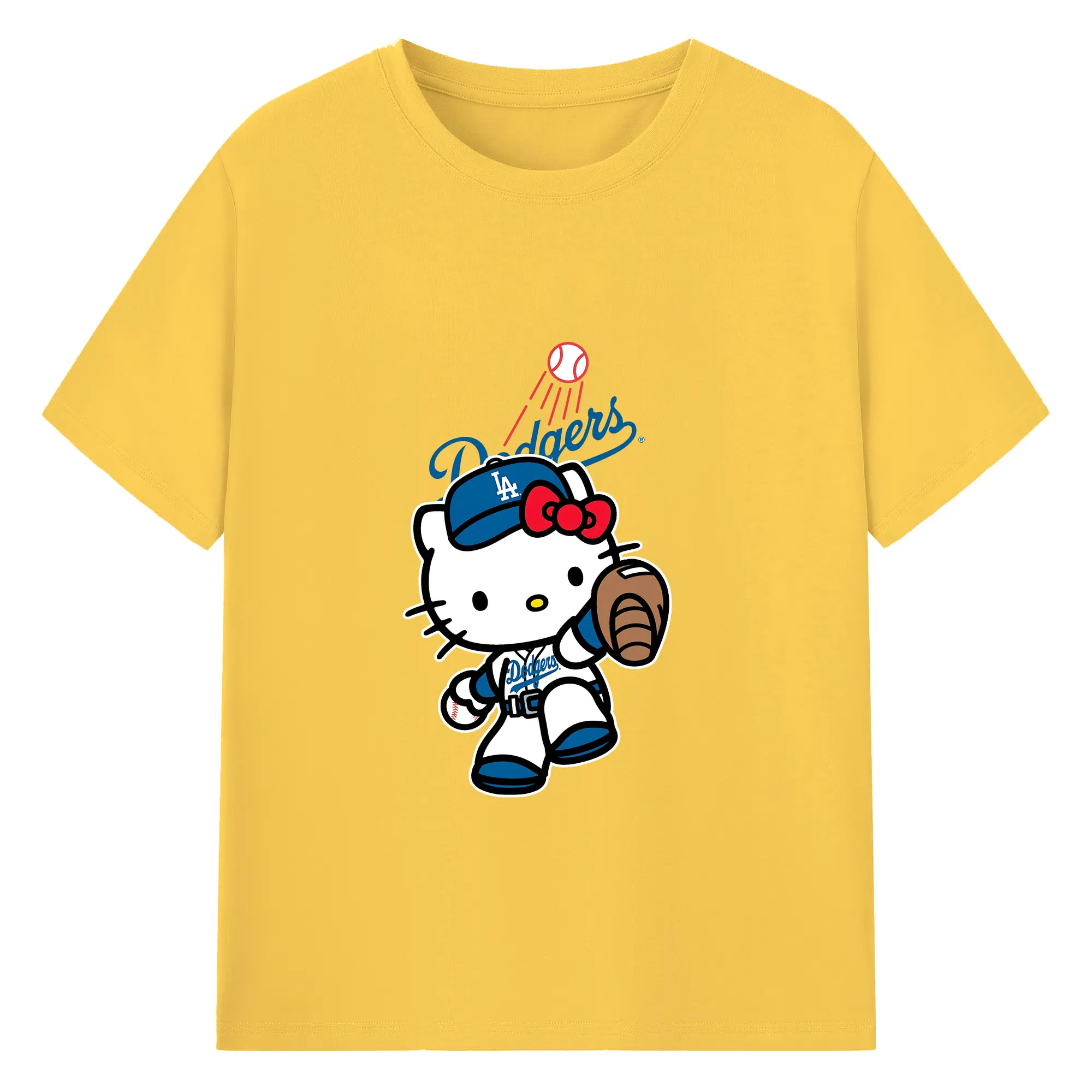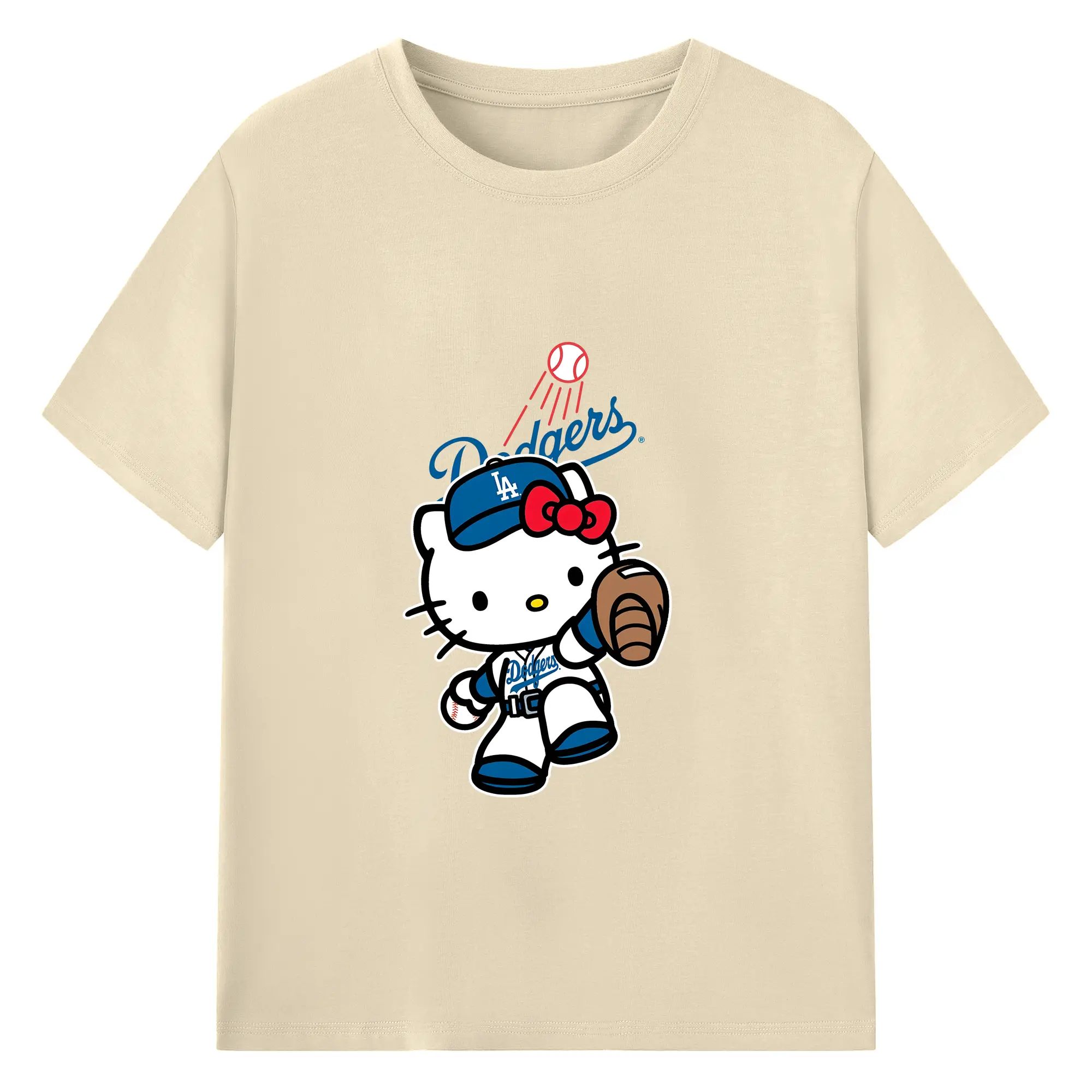 夢コラボ!大谷翔平×ハローキティ|日本代表選手と国民キャラの奇跡の融合 - 綿100% ヴィンテージ風 半袖Tシャツ ・ フロントプリント ・ 柔らか肌触り ・ 通気性 快適 ・ スポーツ カジュアル 外出用