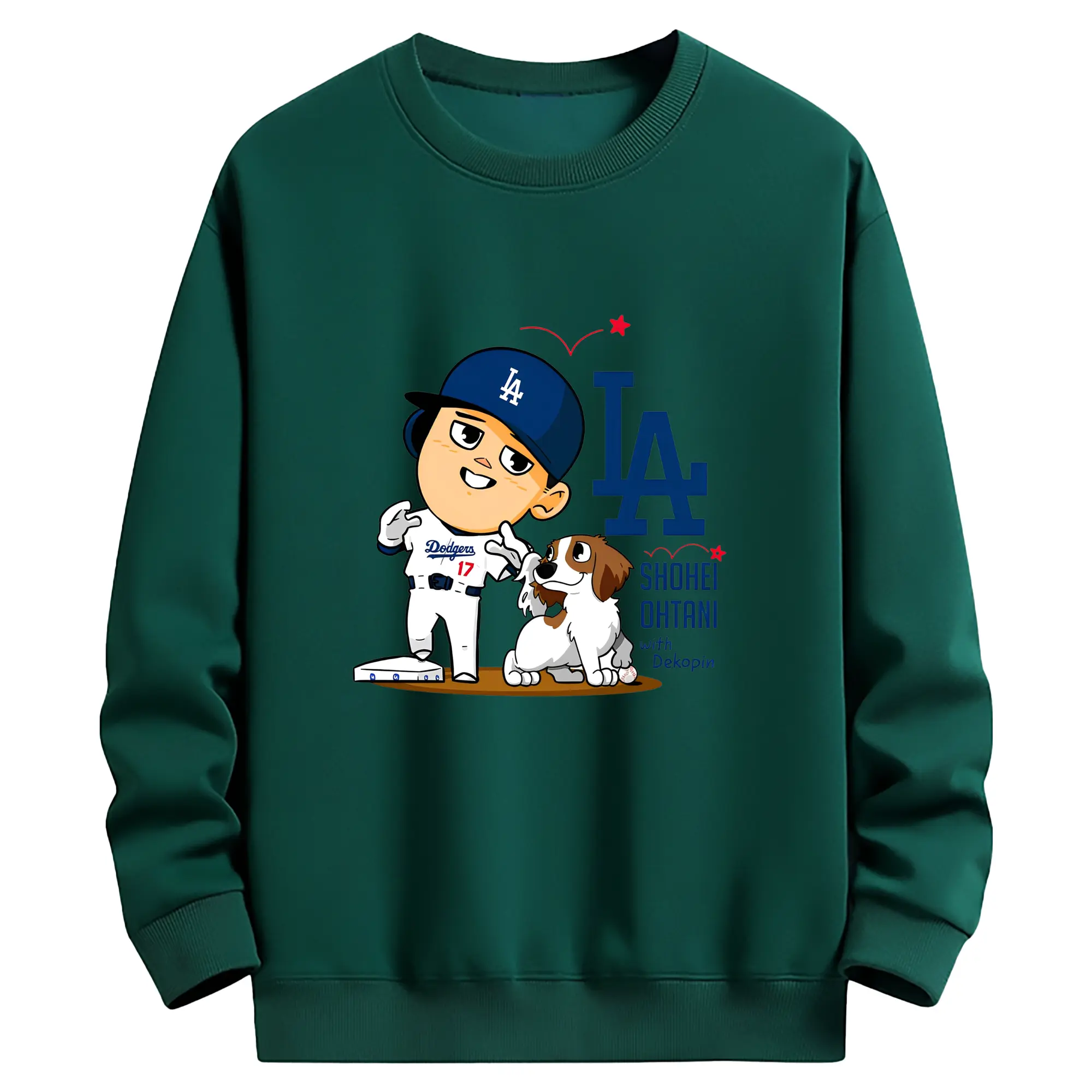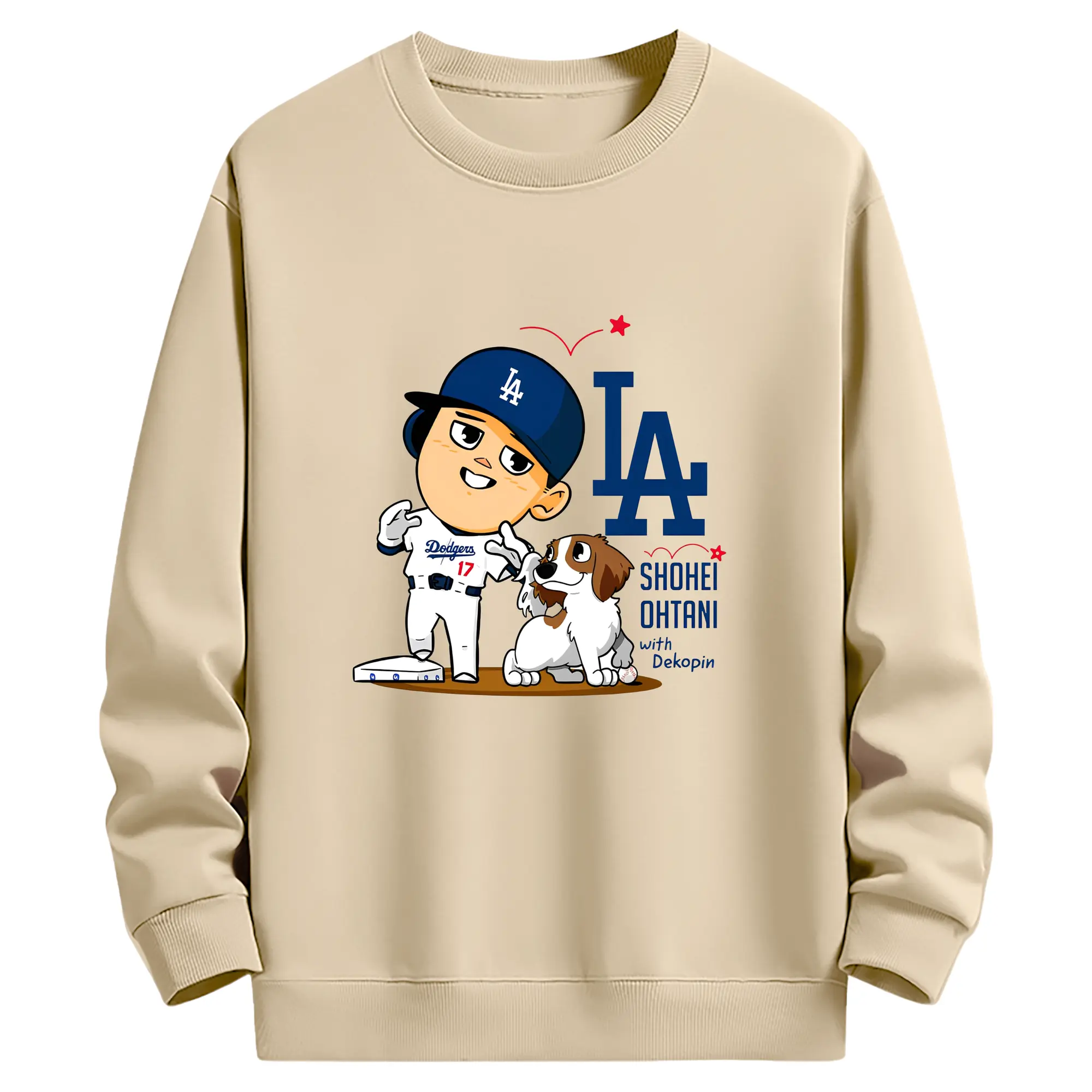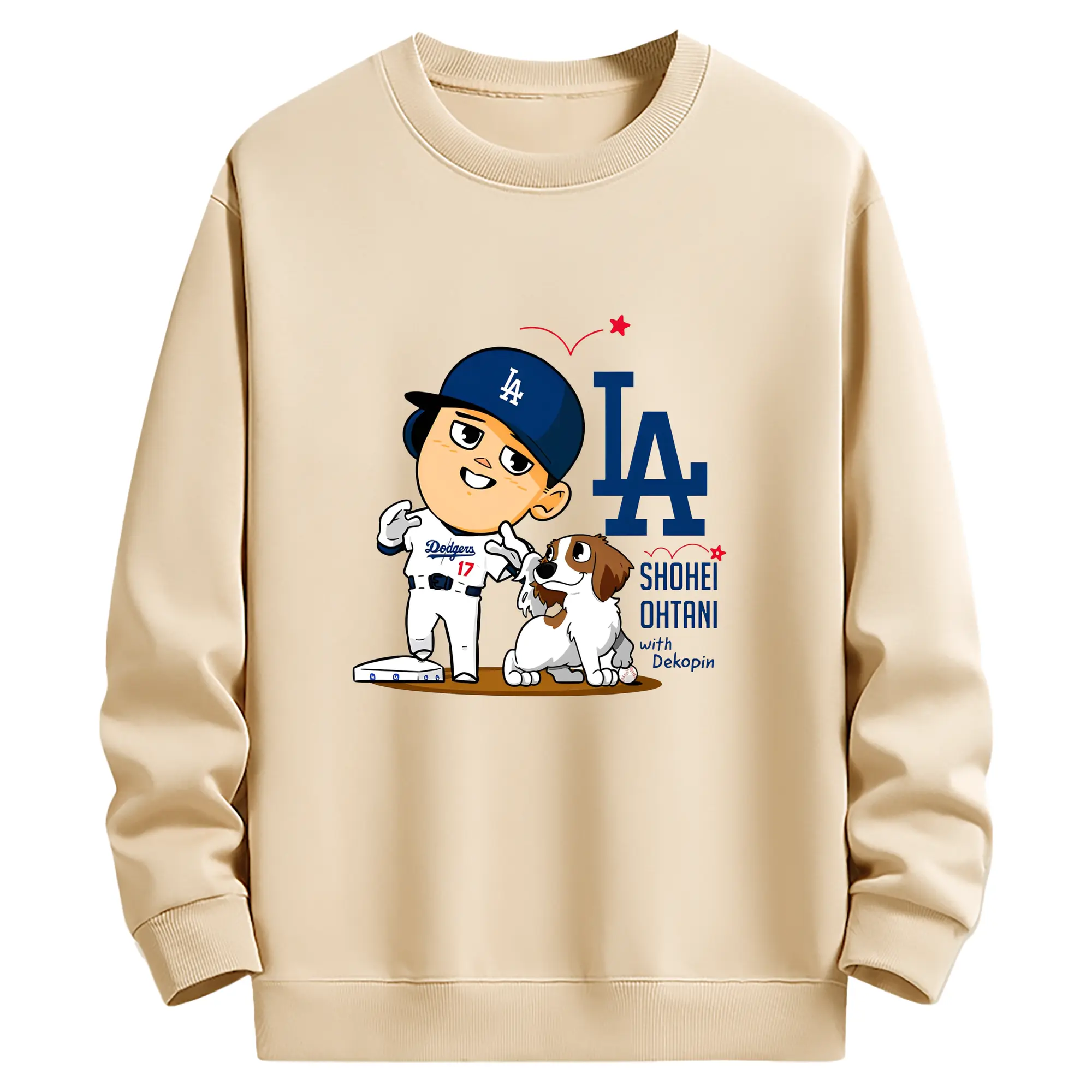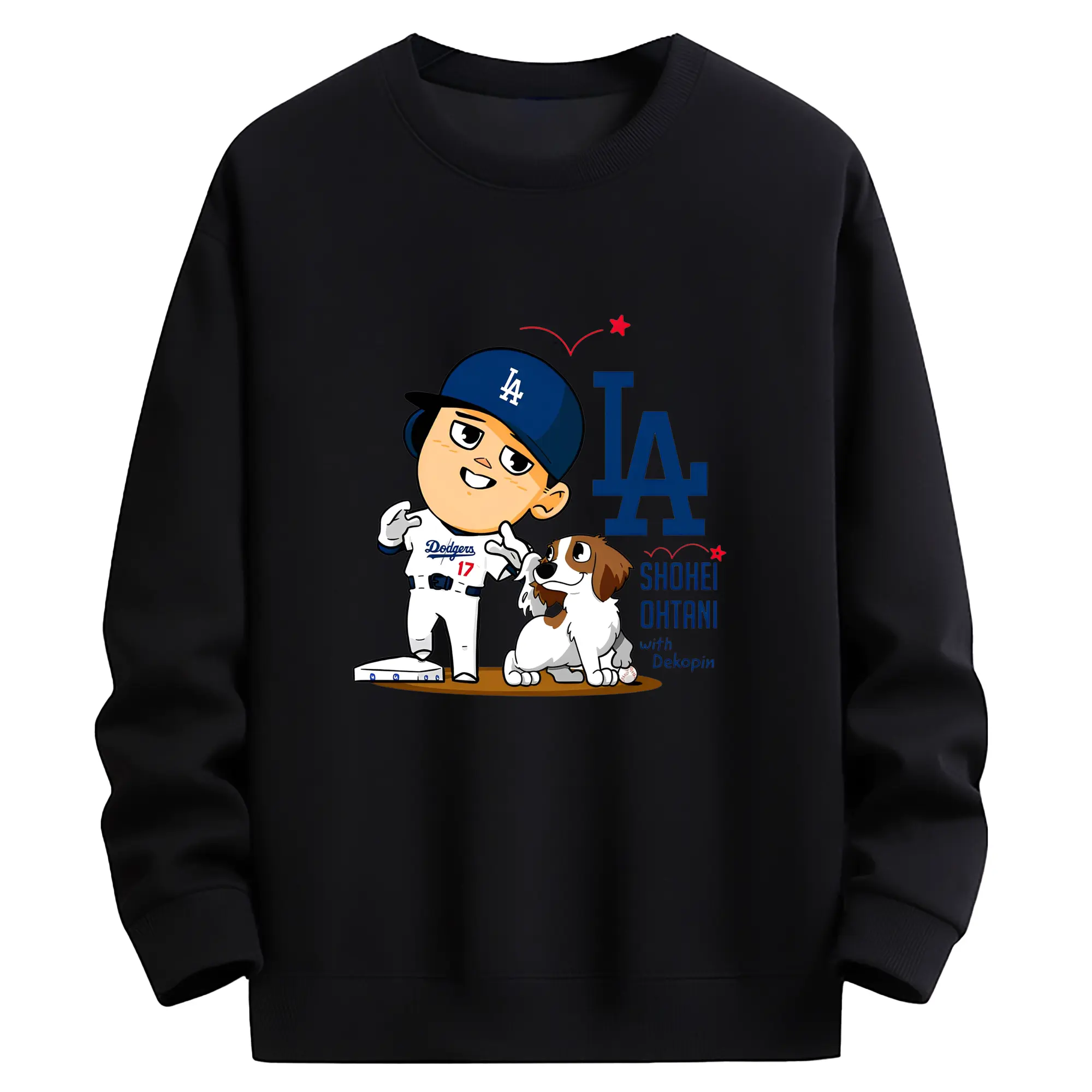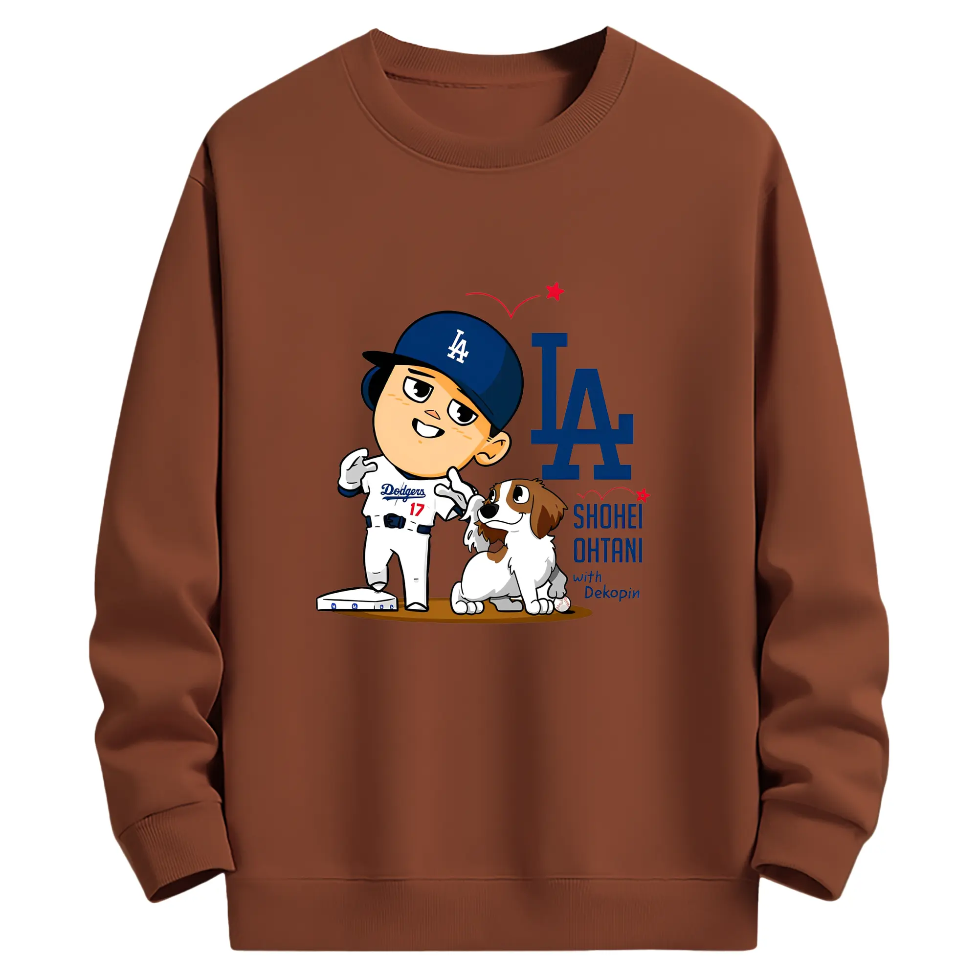 大谷翔平&愛犬デコピン 限定コレクション - 綿100% 半袖Tシャツ ・ フロントプリント ・ 快適 通気性 ・ 日常使い 散歩 スポーツ用