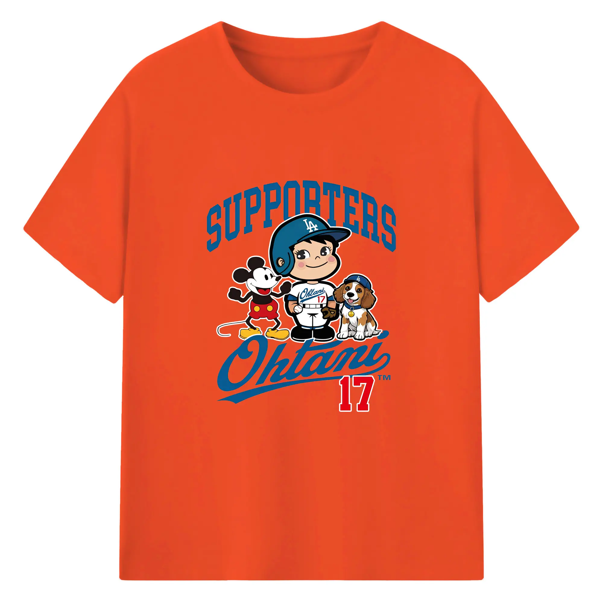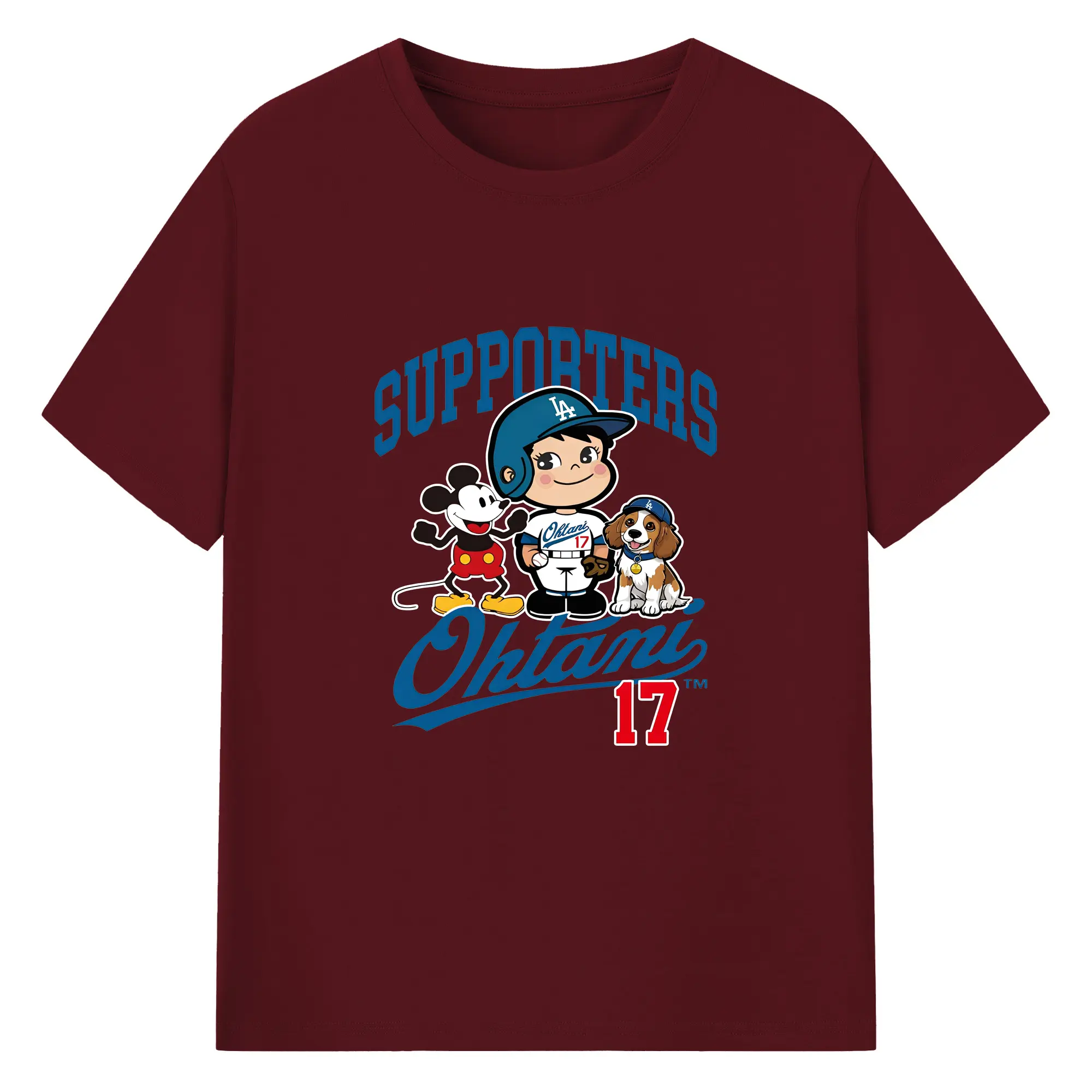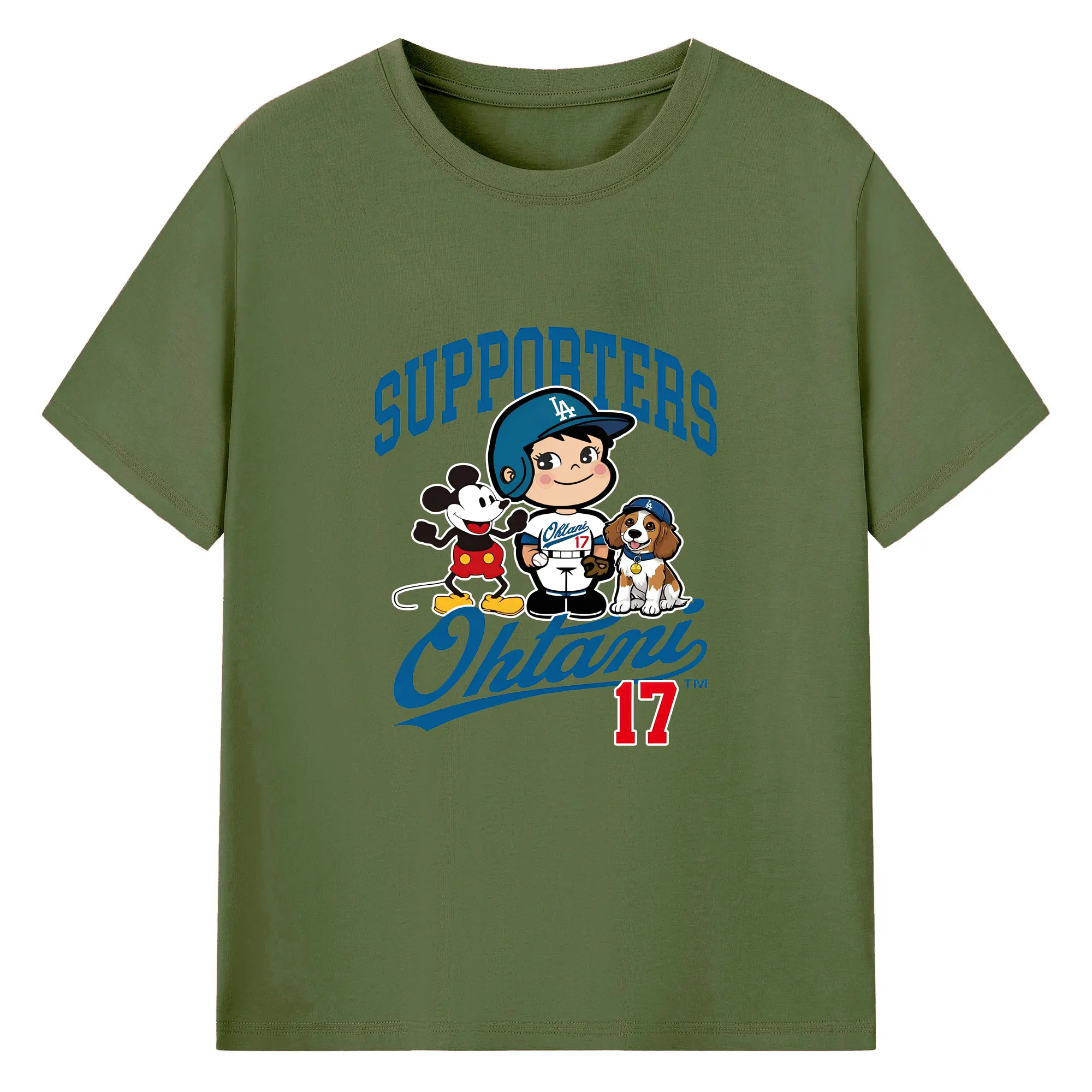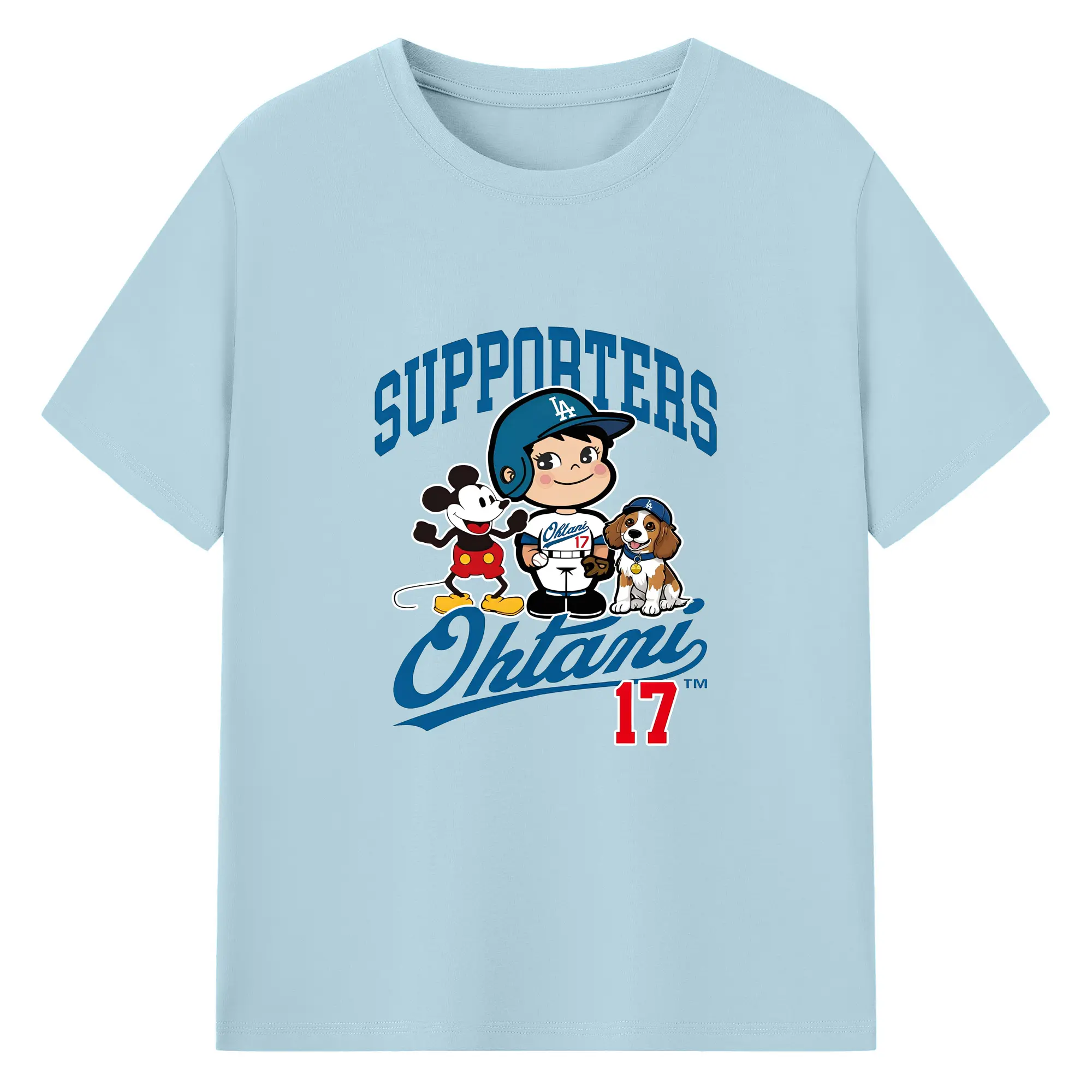 大谷翔平&愛犬×ペコちゃん×ミッキーマウス ドジャース限定キュートグッズ - 綿100% ヴィンテージ風 半袖Tシャツ ・ フロントプリント ・ 柔らか肌触り ・ 通気性 快適 ・ スポーツ カジュアル 外出用