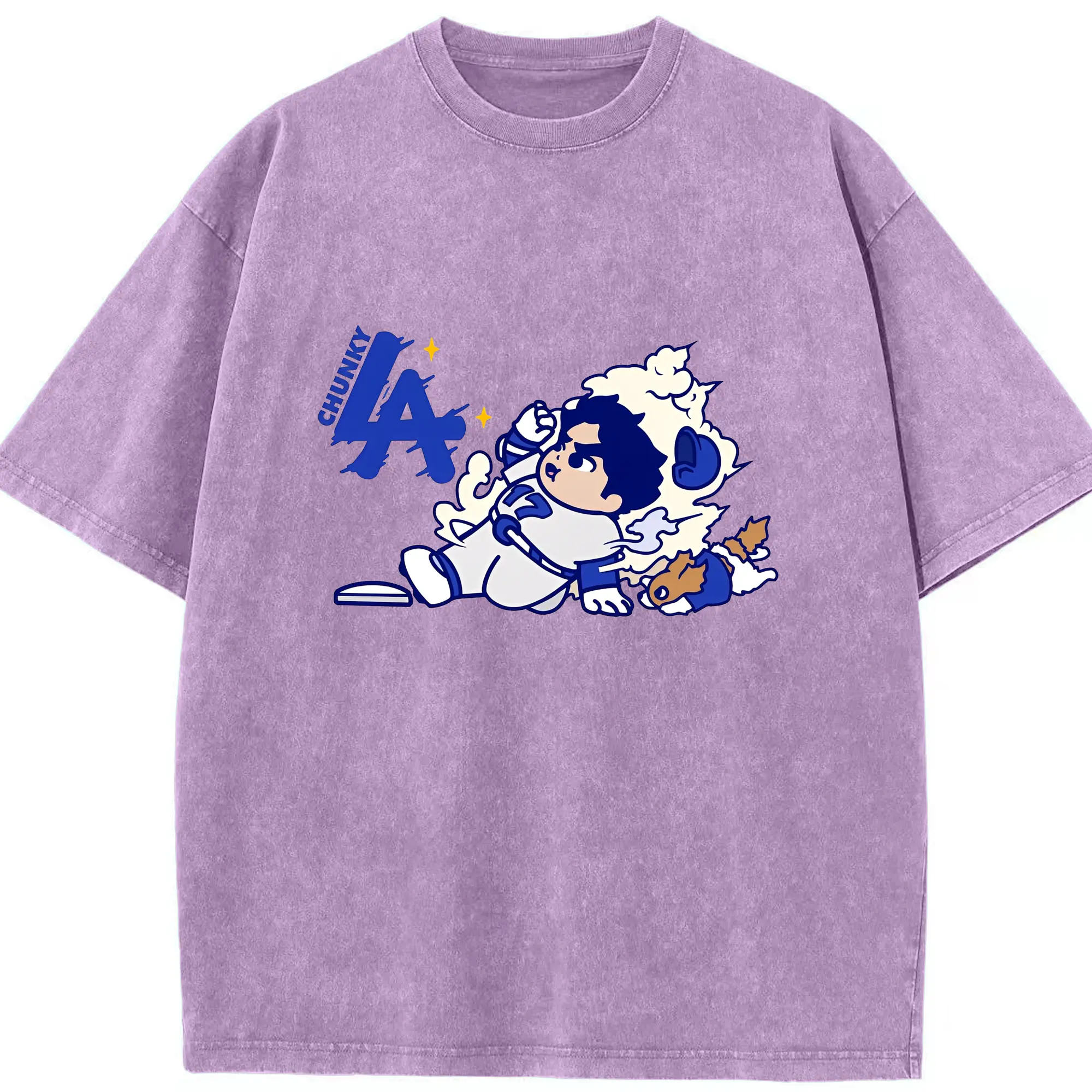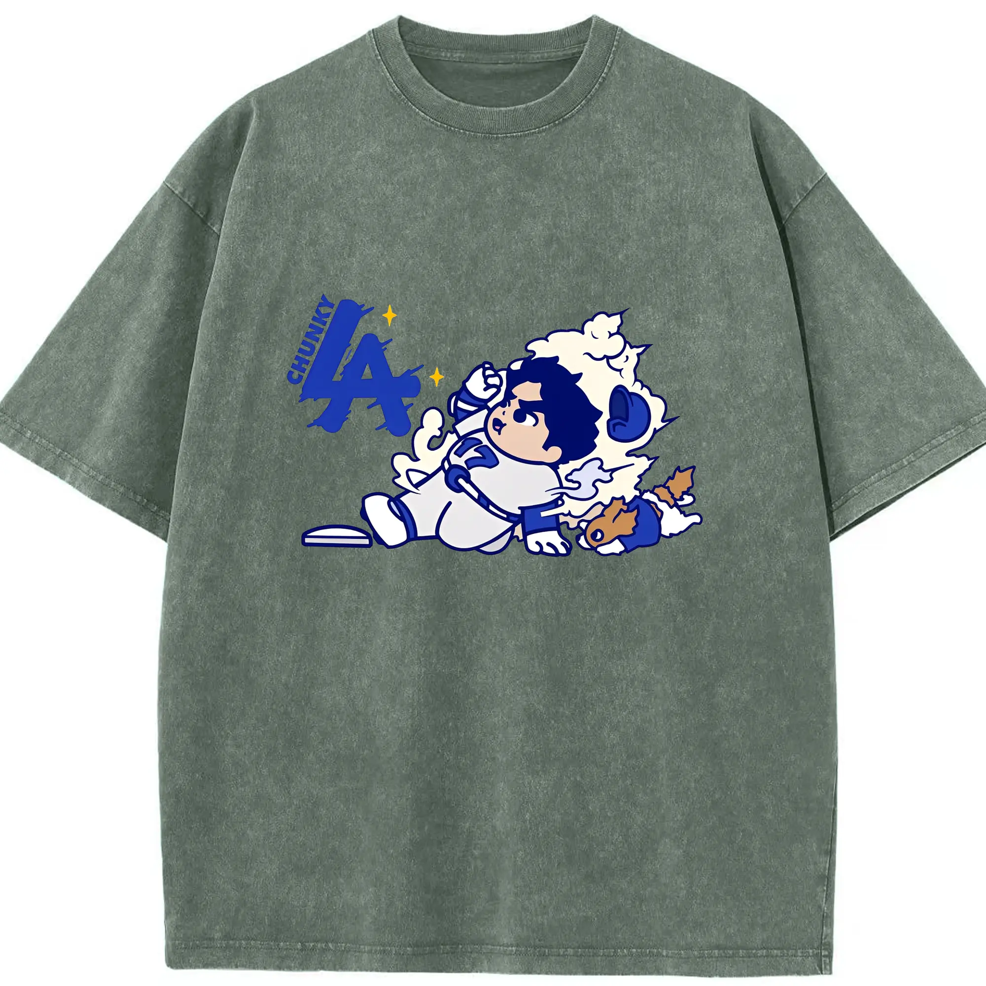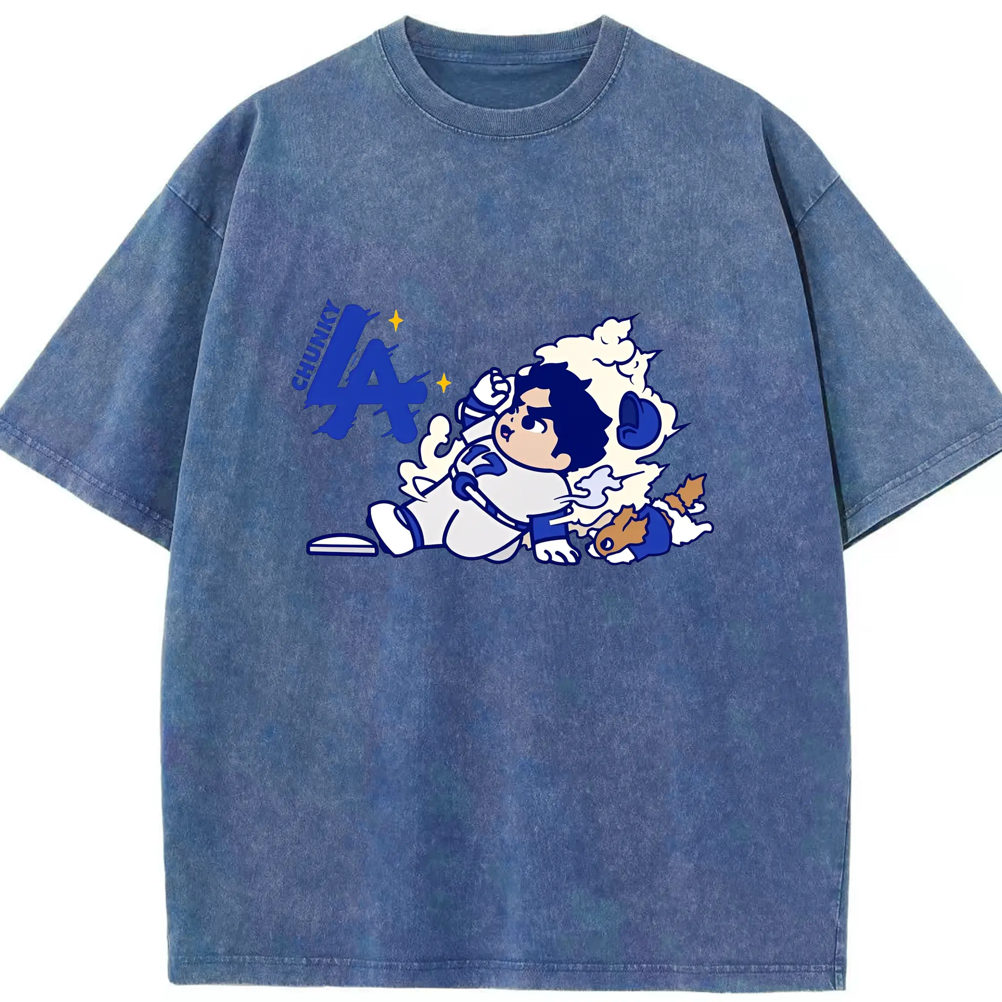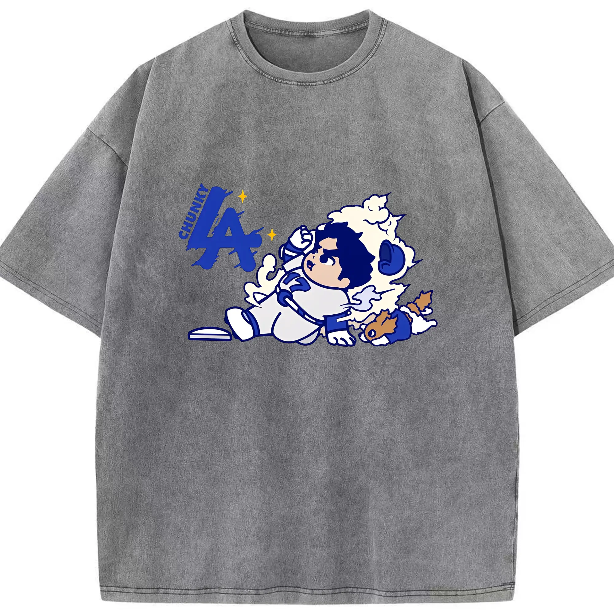 大谷翔平愛犬 LAロゴコラボ chunkyデザイン 新作アイテム - 綿100% 半袖Tシャツ ・ フロントプリント ・ 快適 通気性 ・ 日常使い 散歩 スポーツ用