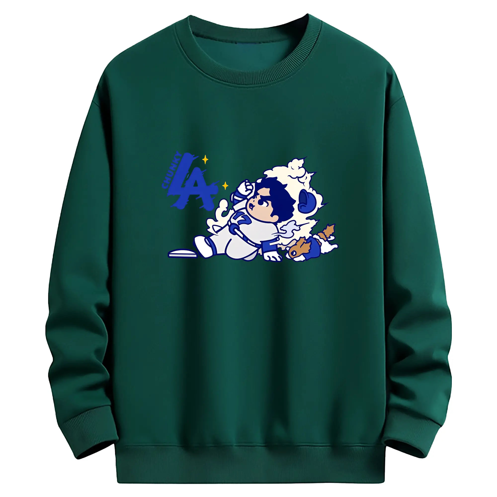 大谷翔平愛犬 LAロゴコラボ chunkyデザイン 新作アイテム - 綿100% 半袖Tシャツ ・ フロントプリント ・ 快適 通気性 ・ 日常使い 散歩 スポーツ用