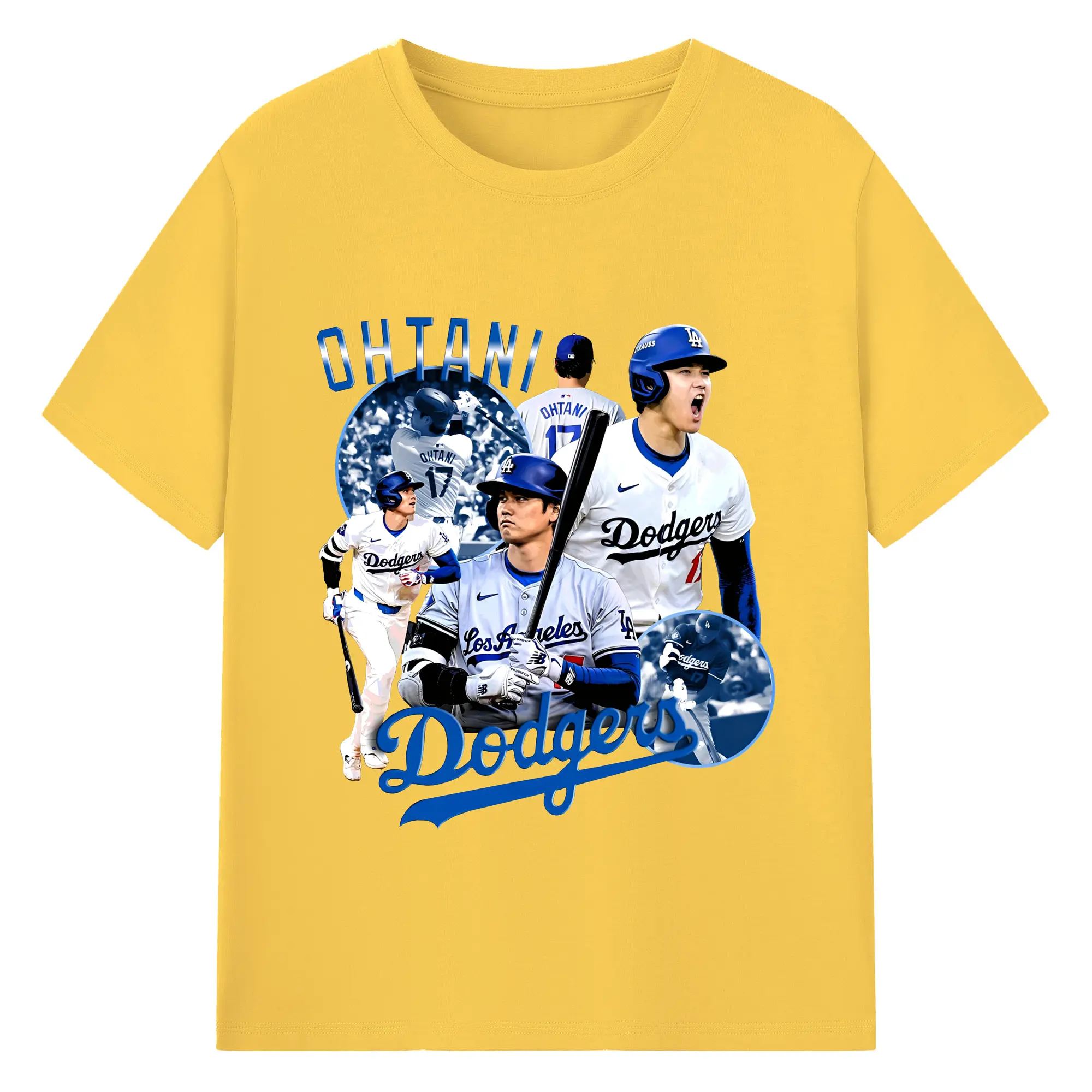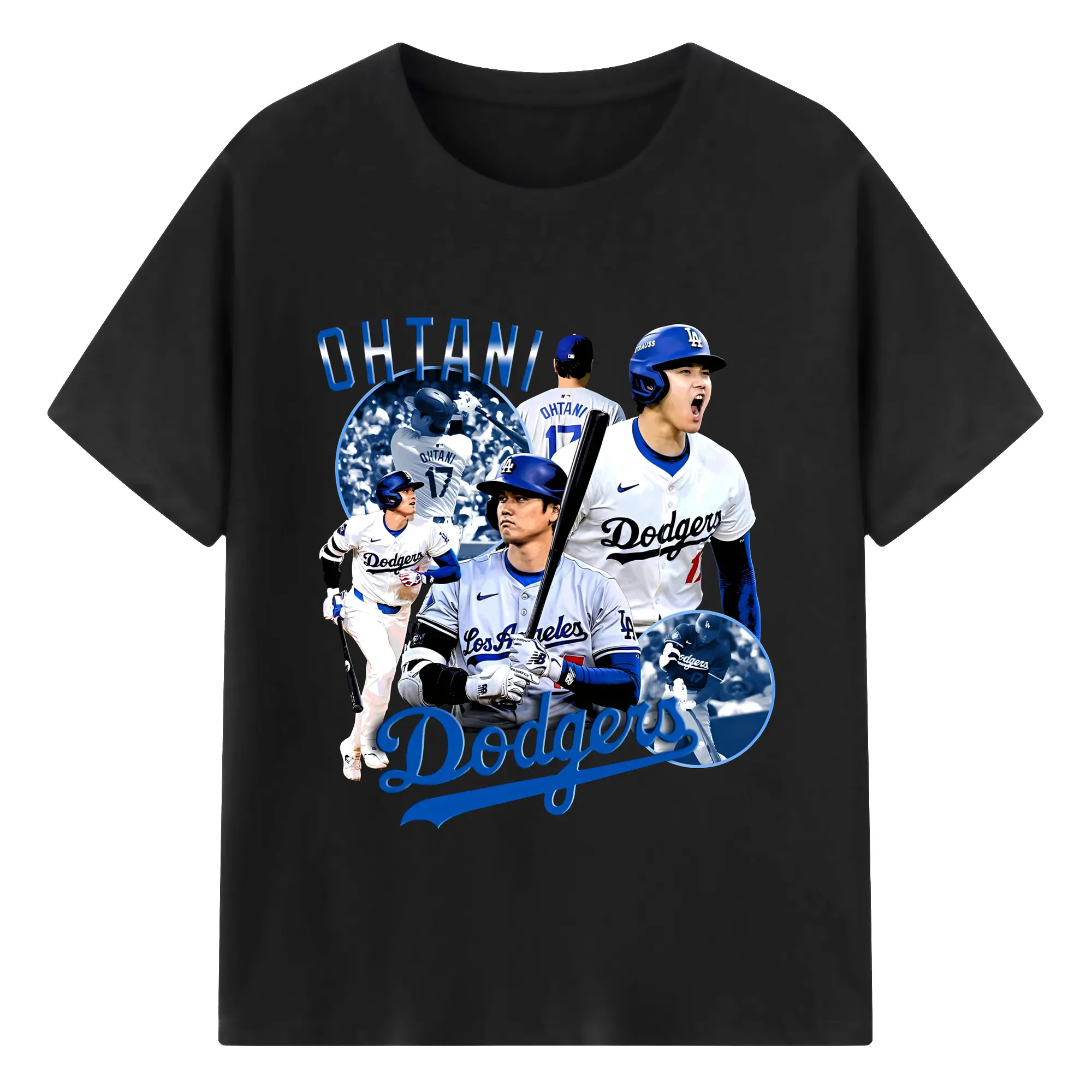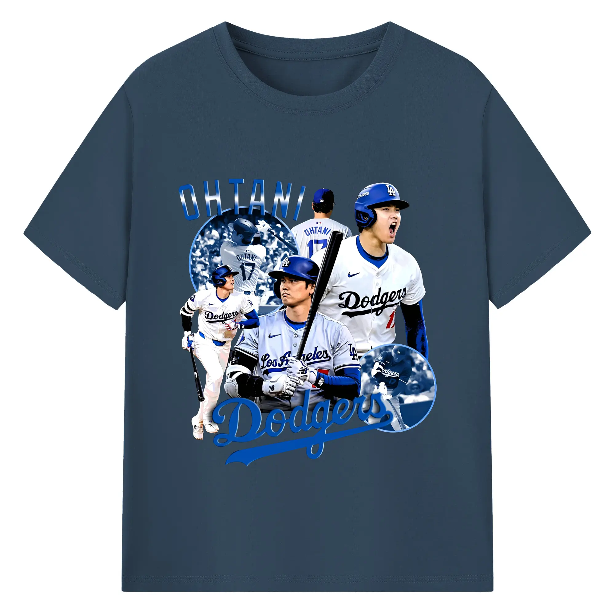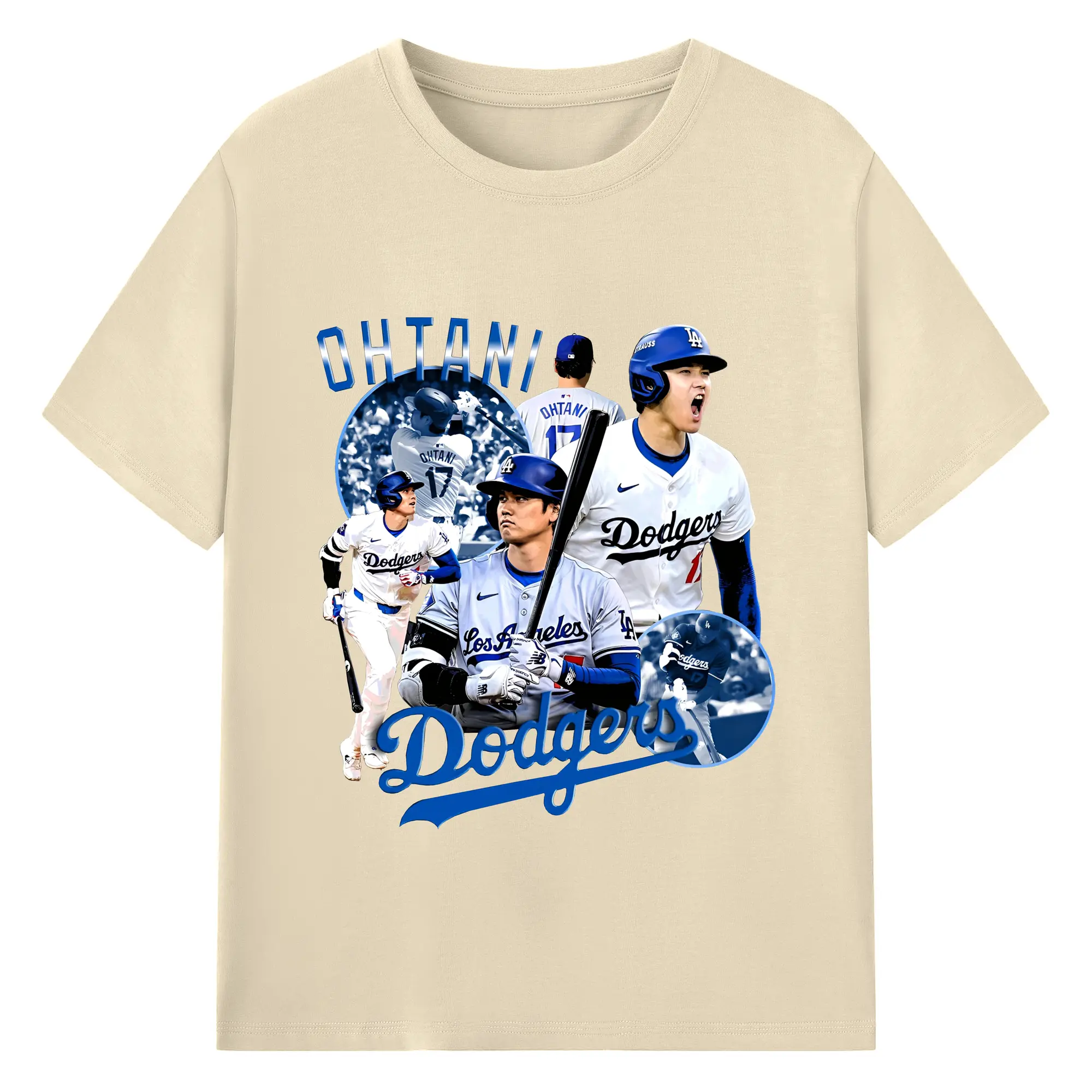 大谷翔平 ドジャース 新時代スーパースターアート - 綿100% ヴィンテージ風 半袖Tシャツ ・ フロントプリント ・ 柔らか肌触り ・ 通気性 快適 ・ スポーツ カジュアル 外出用