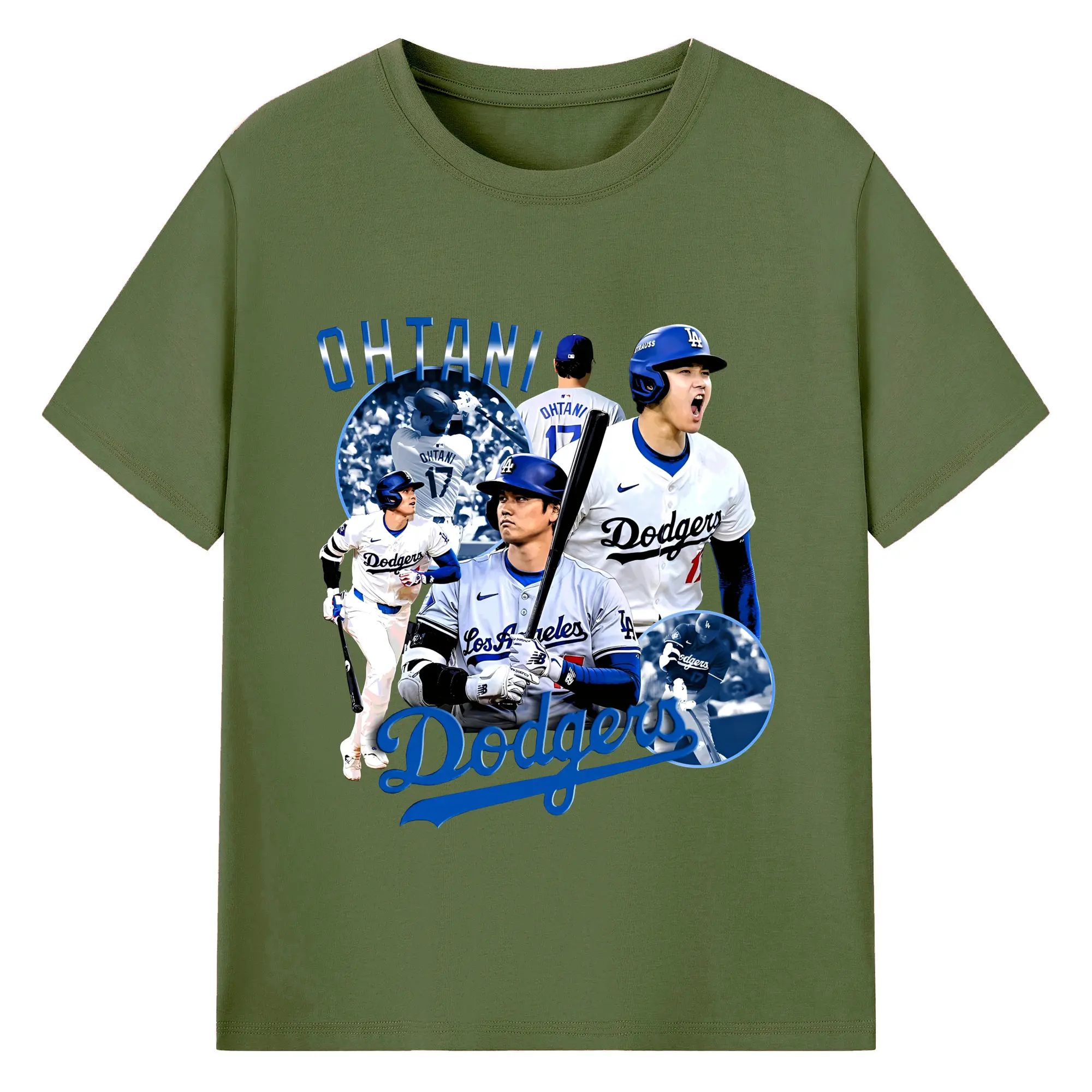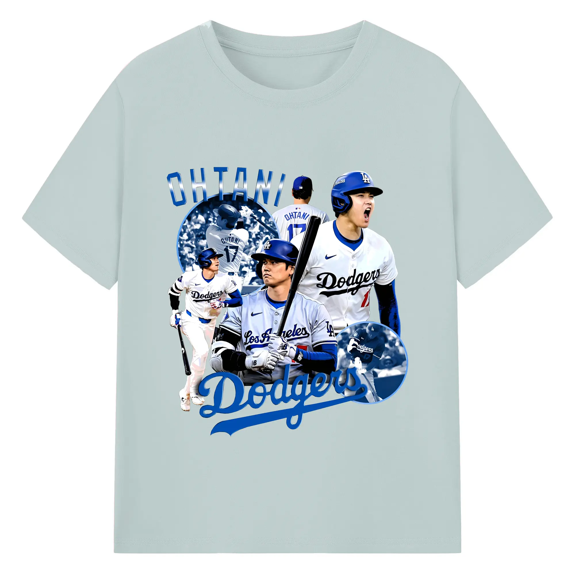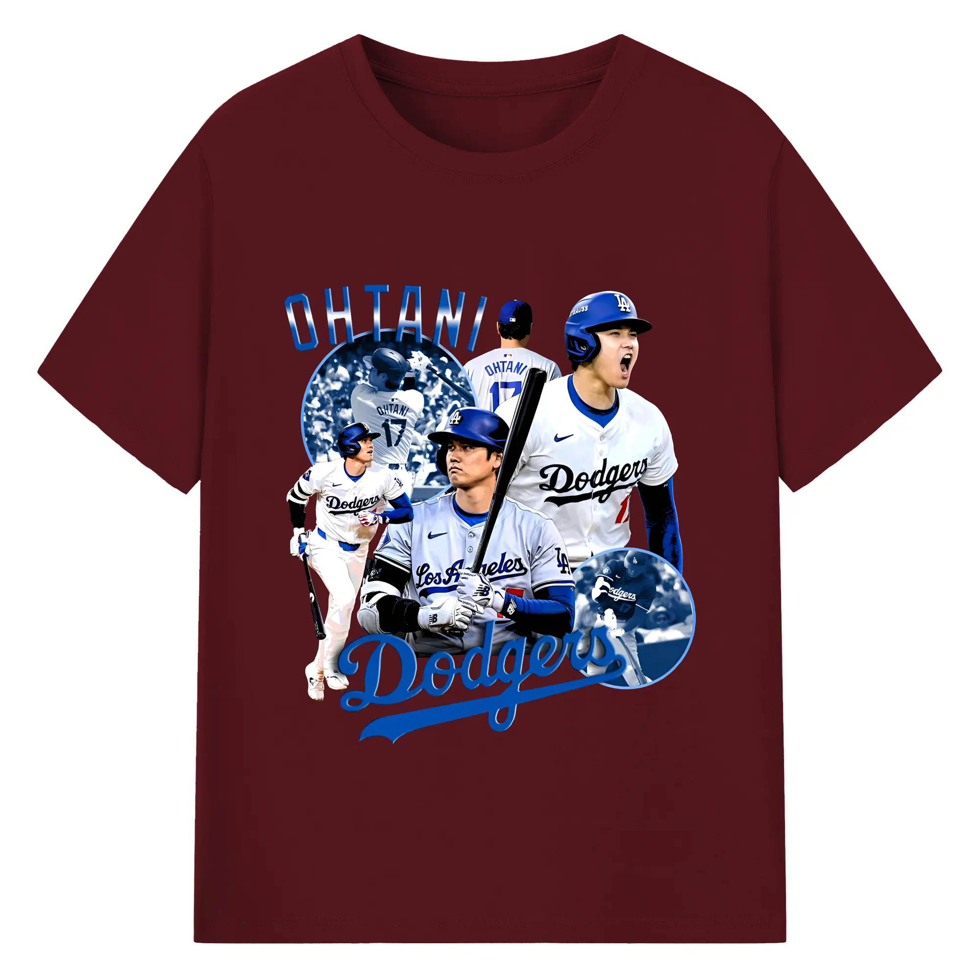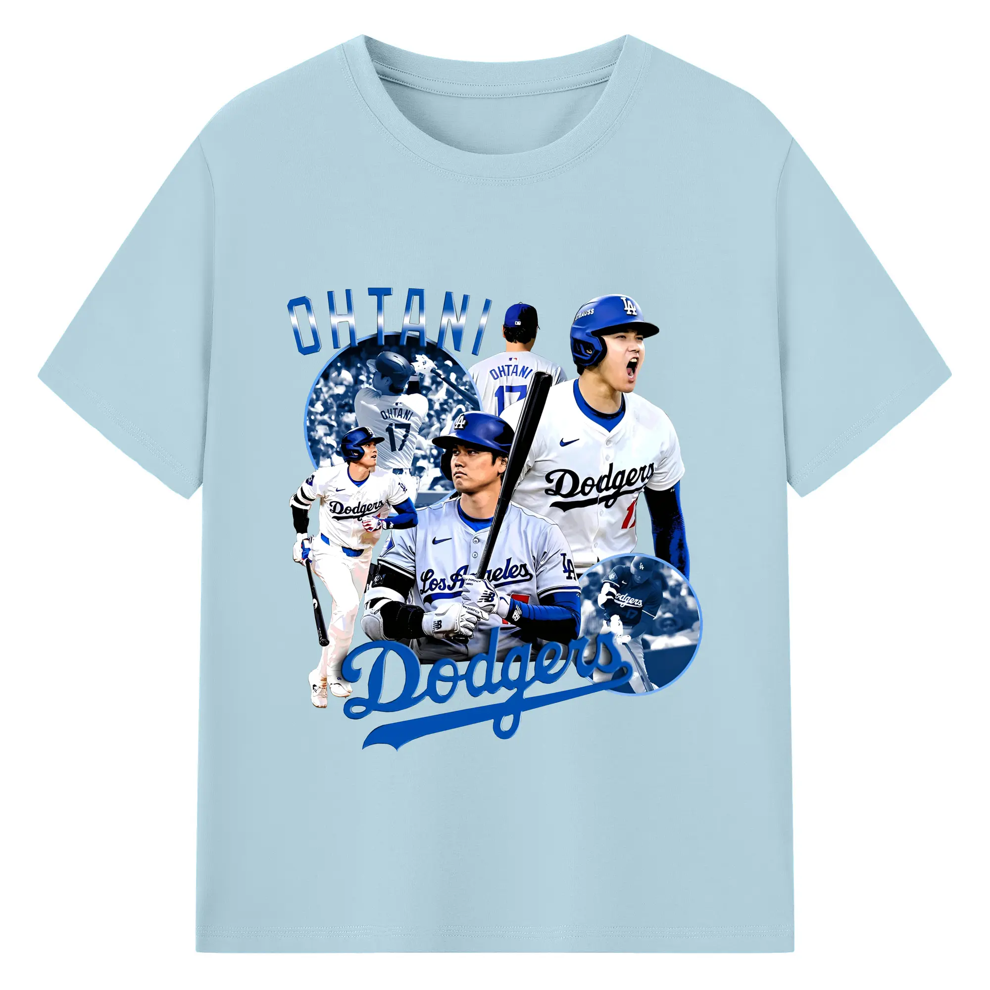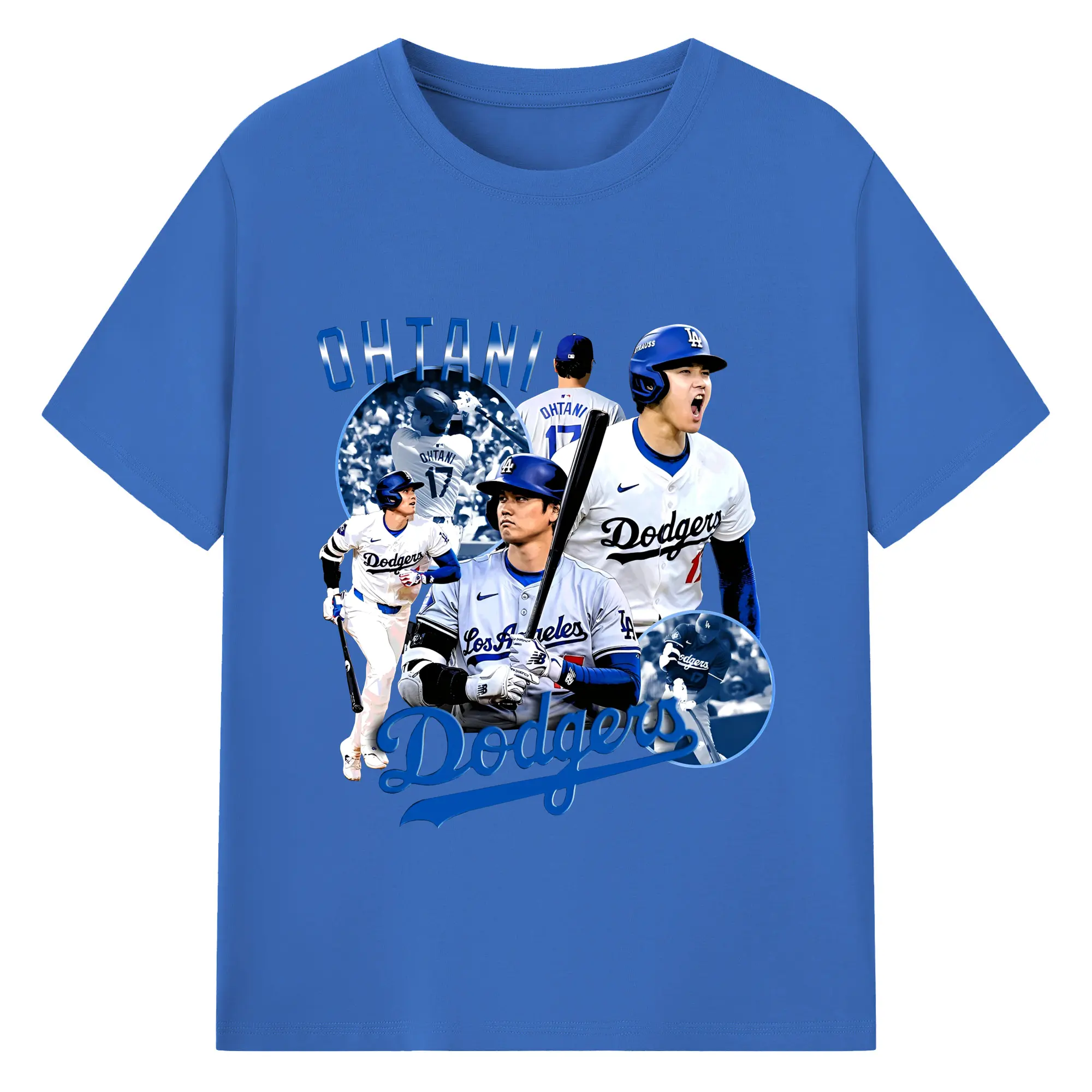 大谷翔平 ドジャース 新時代スーパースターアート - 綿100% ヴィンテージ風 半袖Tシャツ ・ フロントプリント ・ 柔らか肌触り ・ 通気性 快適 ・ スポーツ カジュアル 外出用