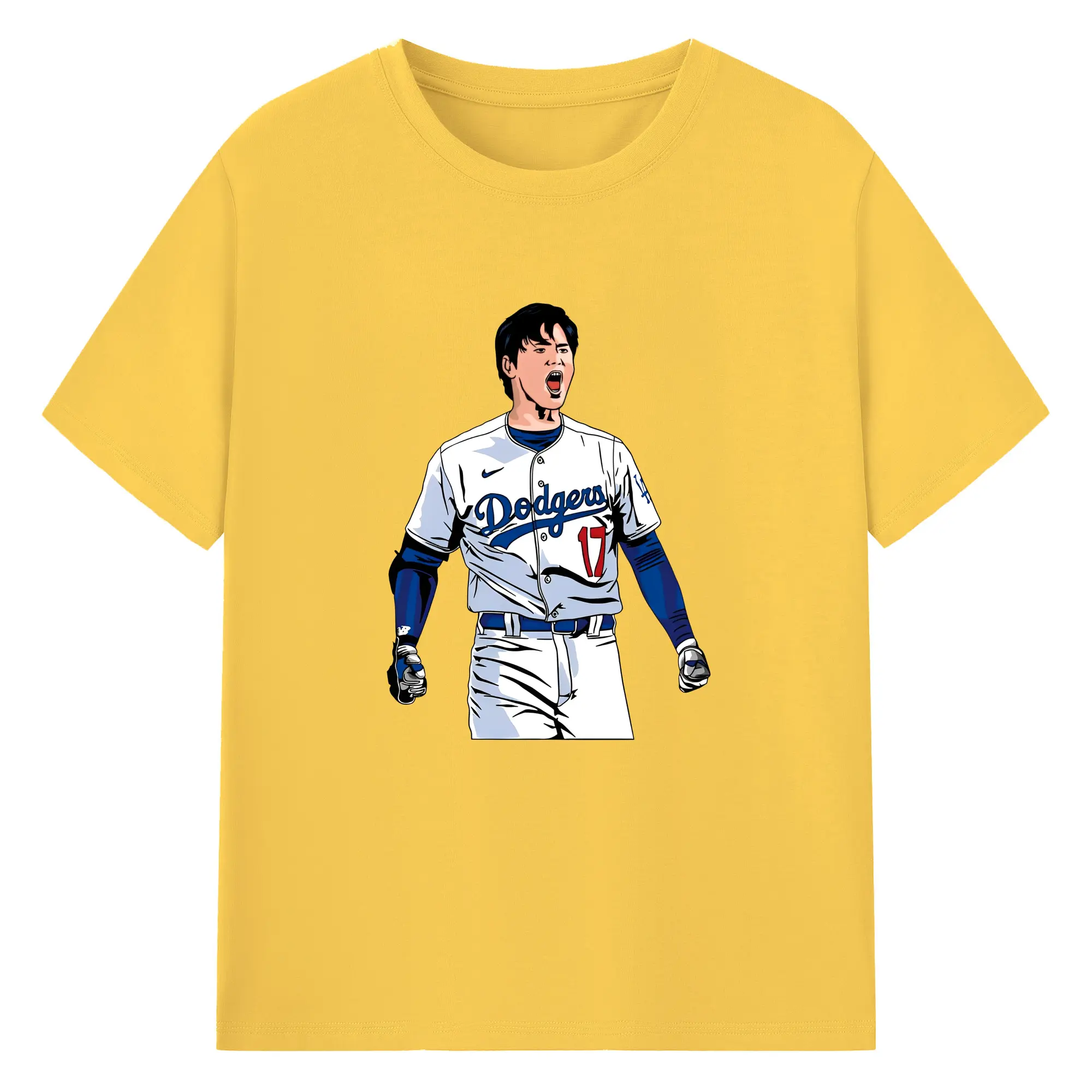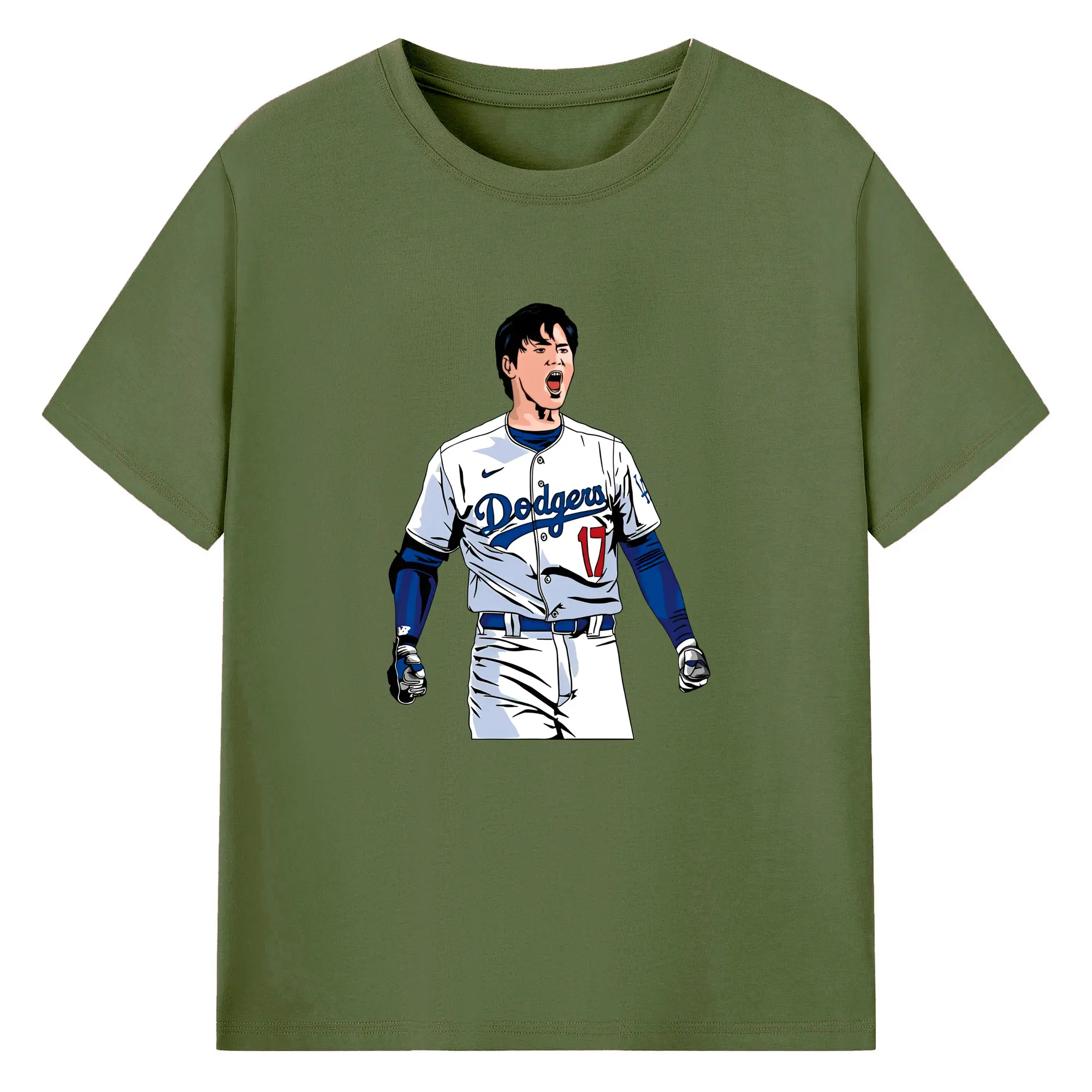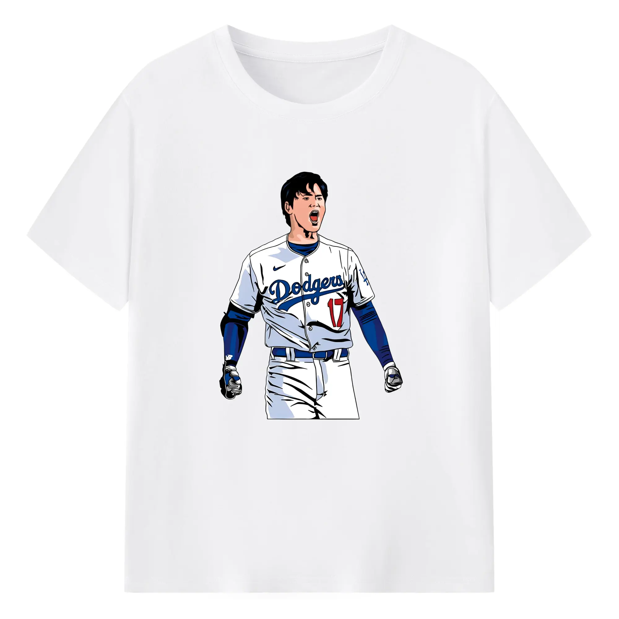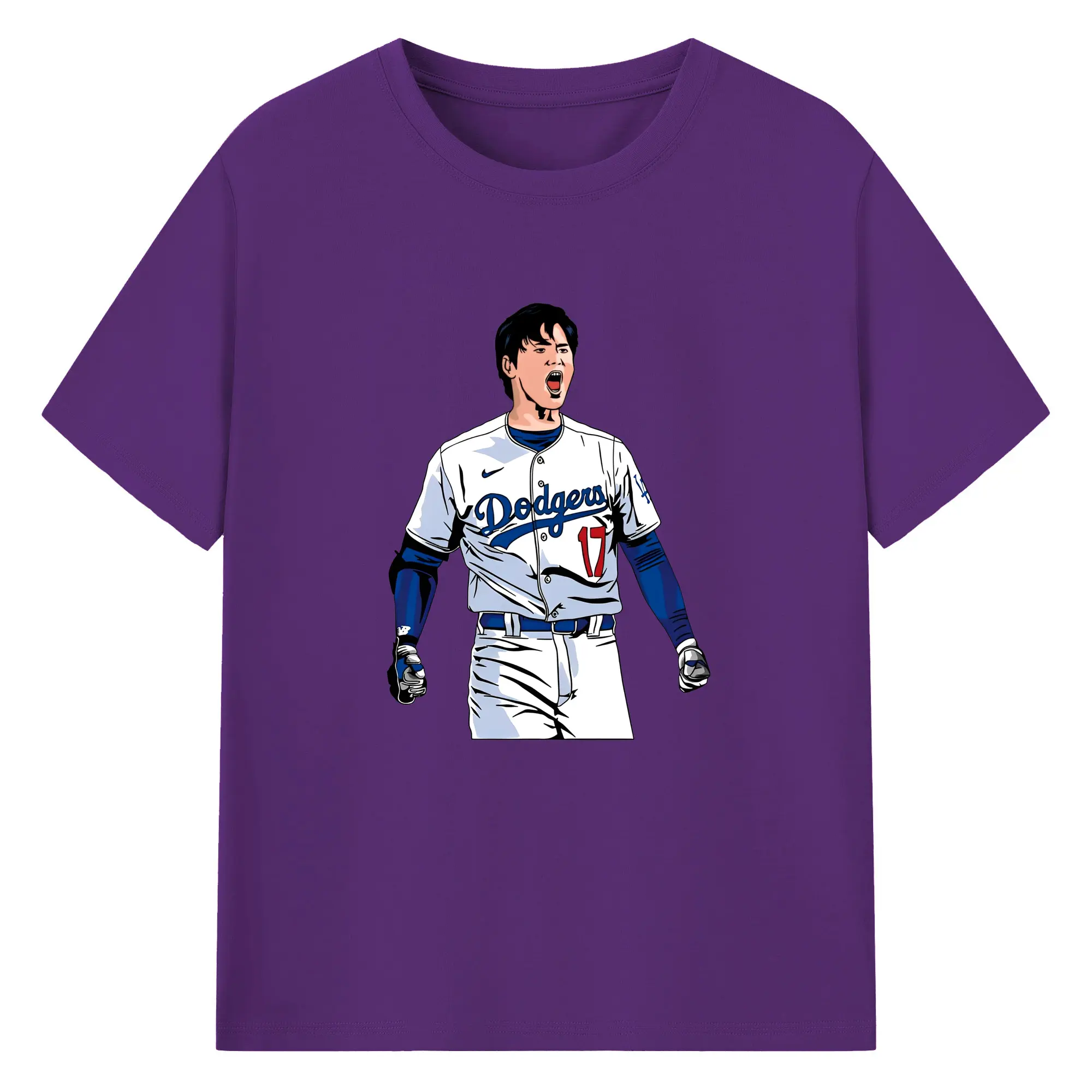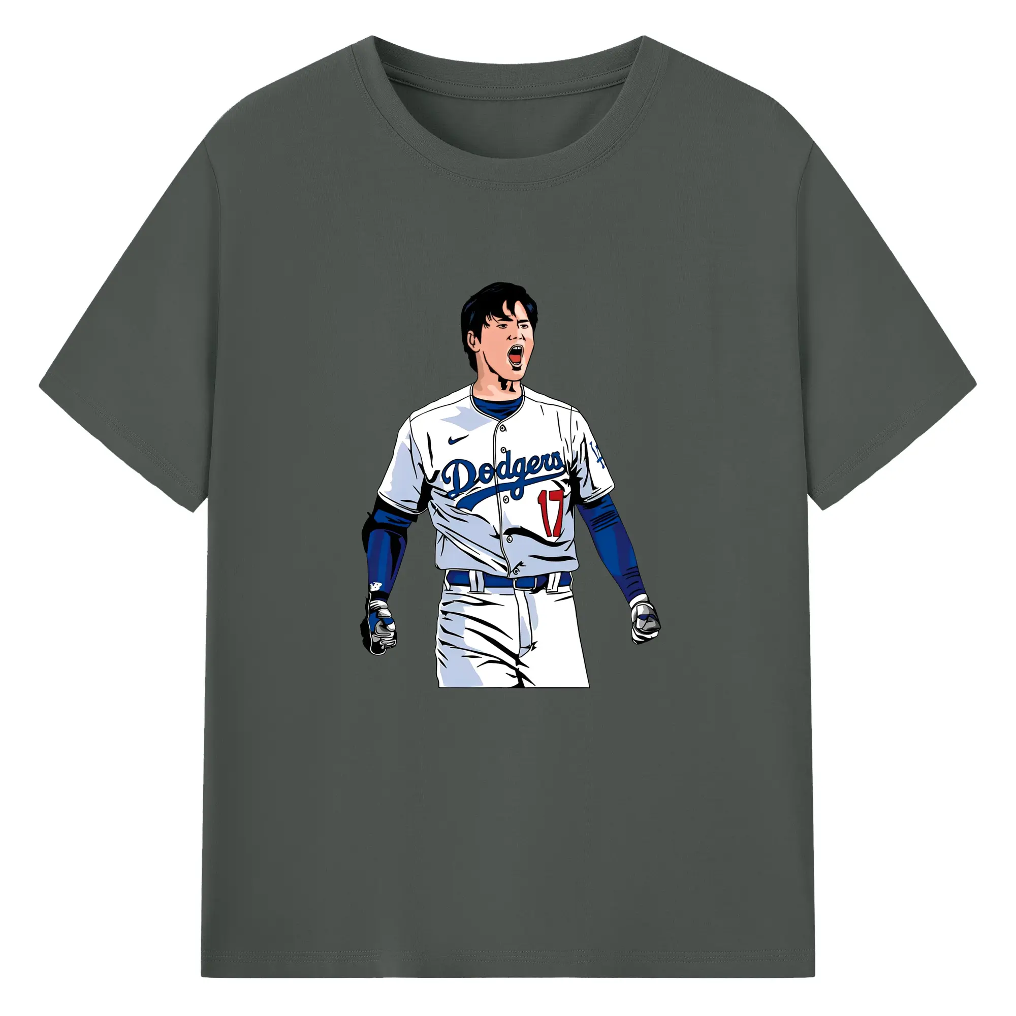 大谷翔平 ロサンゼルス・ドジャース MLB 話題の名場面 - 綿100% ヴィンテージ風 半袖Tシャツ ・ フロントプリント ・ 柔らか肌触り ・ 通気性 快適 ・ スポーツ カジュアル 外出用