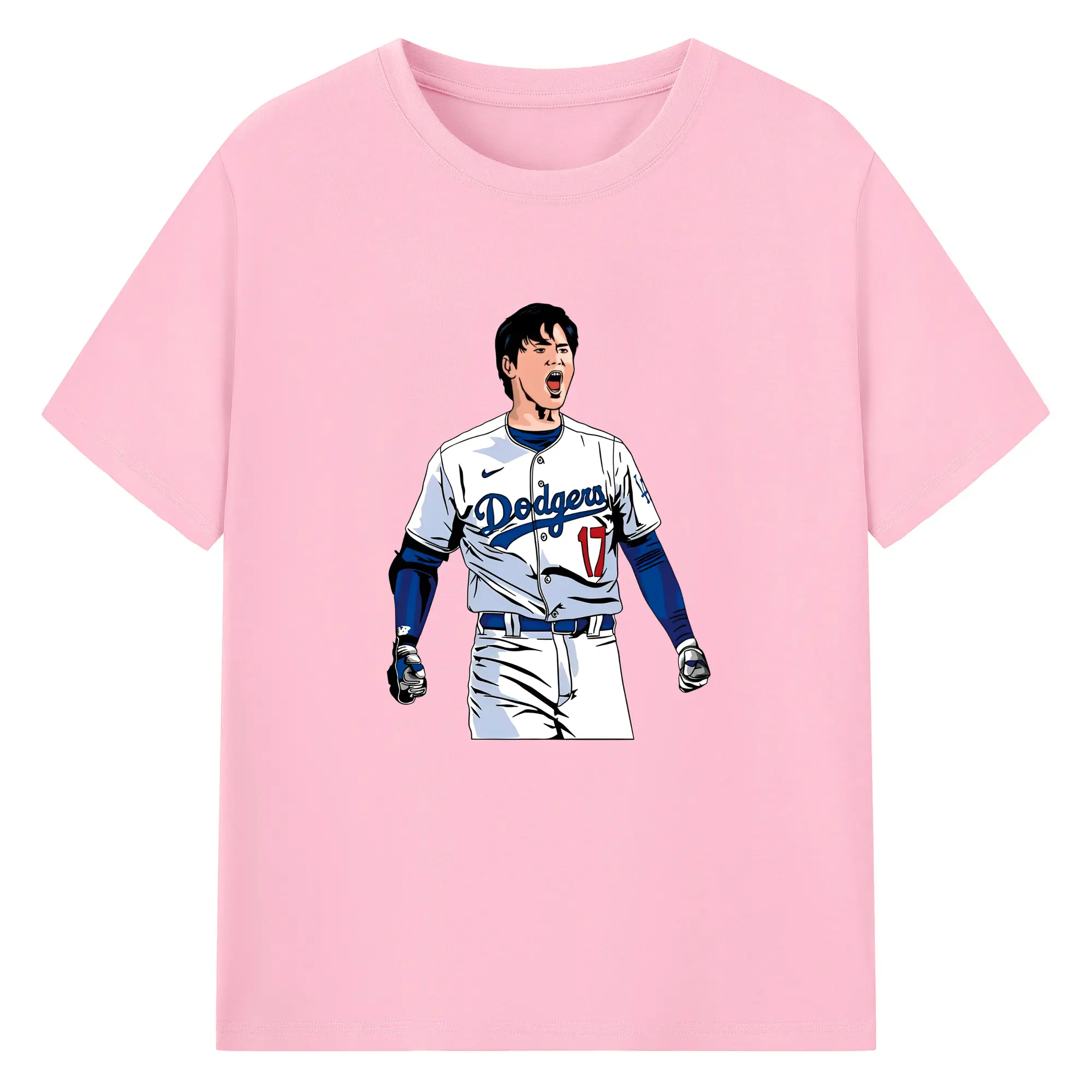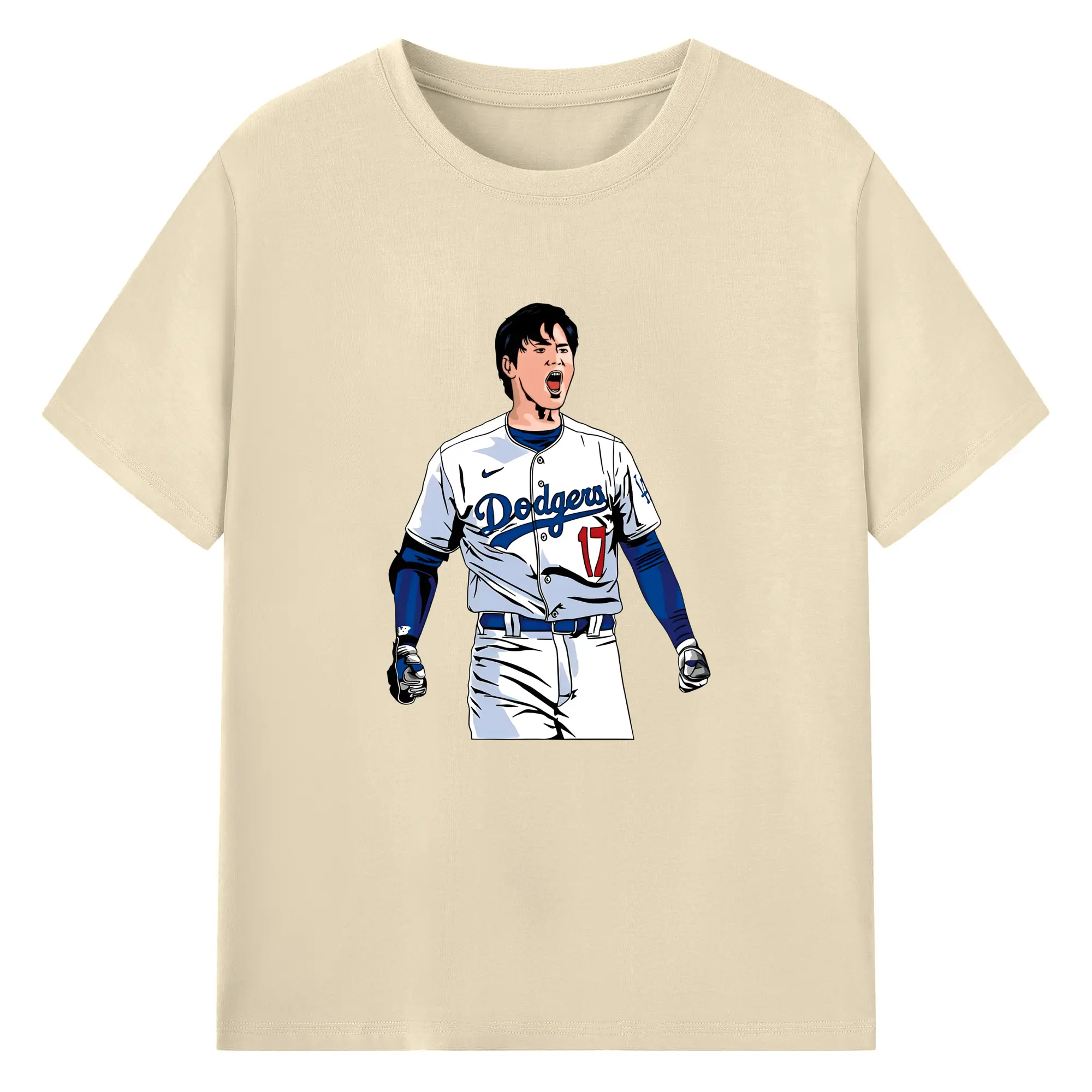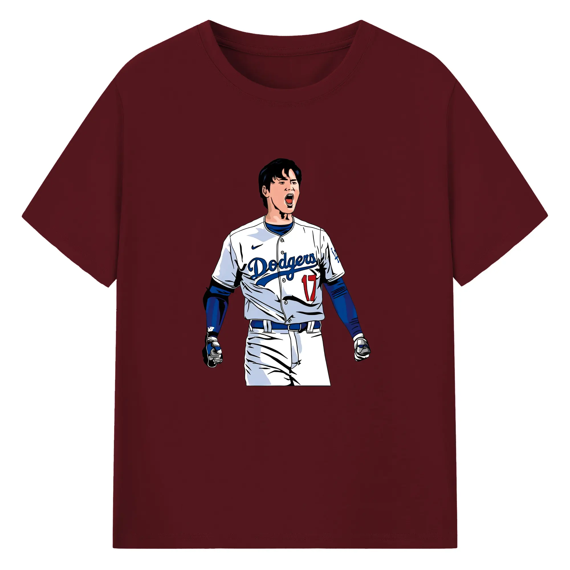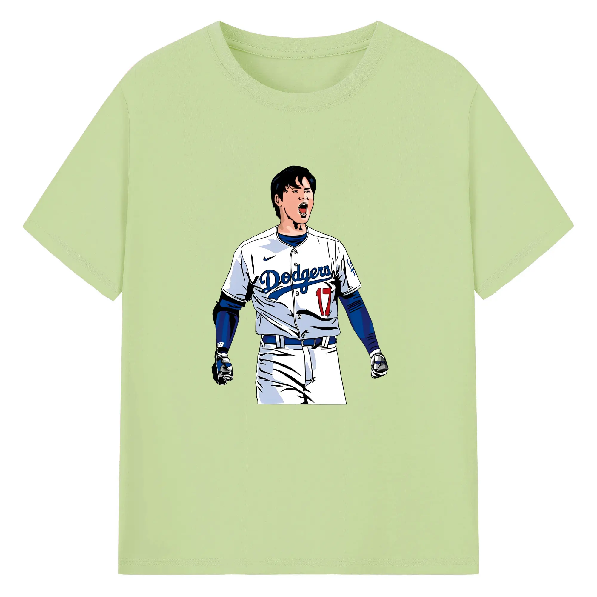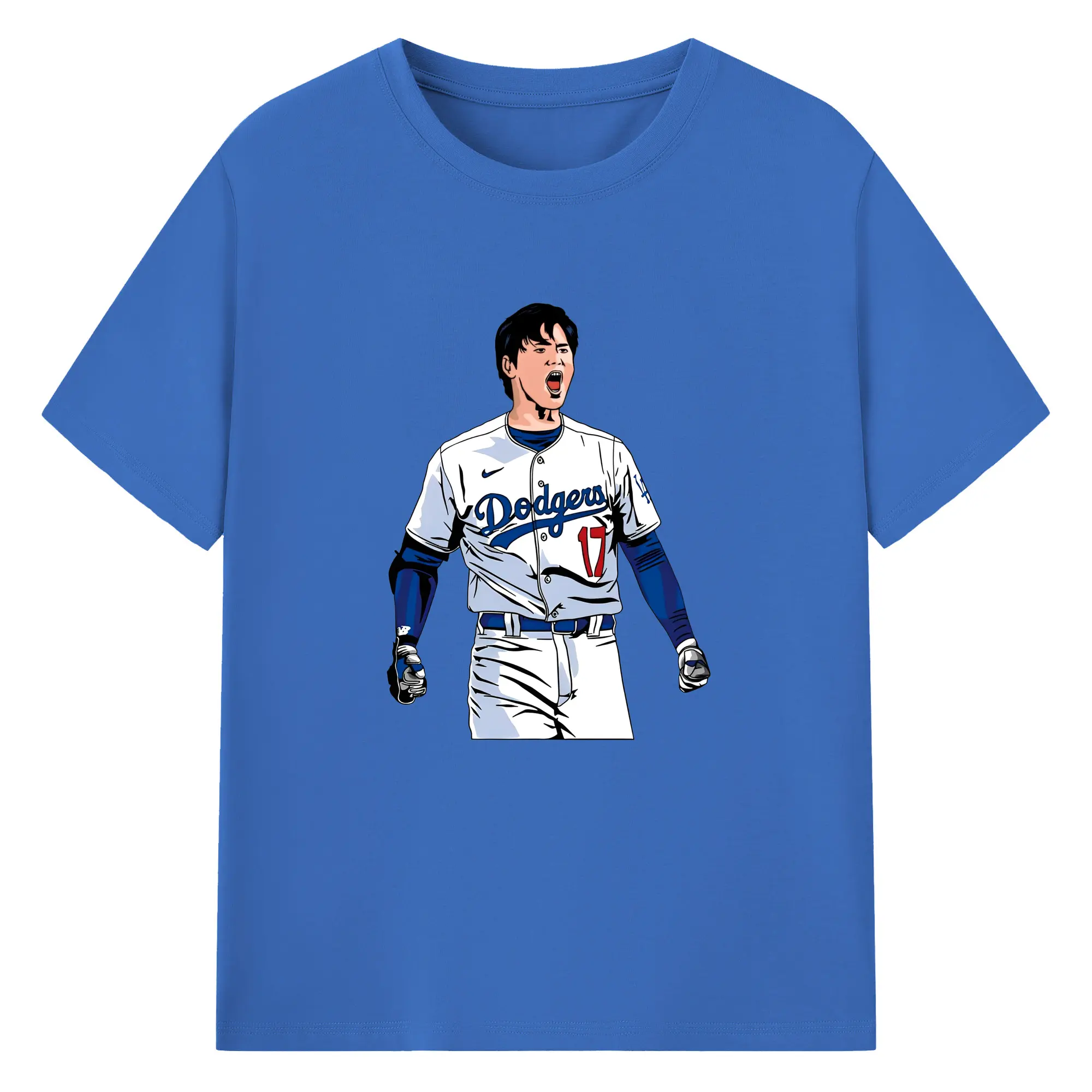 大谷翔平 ロサンゼルス・ドジャース MLB 話題の名場面 - 綿100% ヴィンテージ風 半袖Tシャツ ・ フロントプリント ・ 柔らか肌触り ・ 通気性 快適 ・ スポーツ カジュアル 外出用