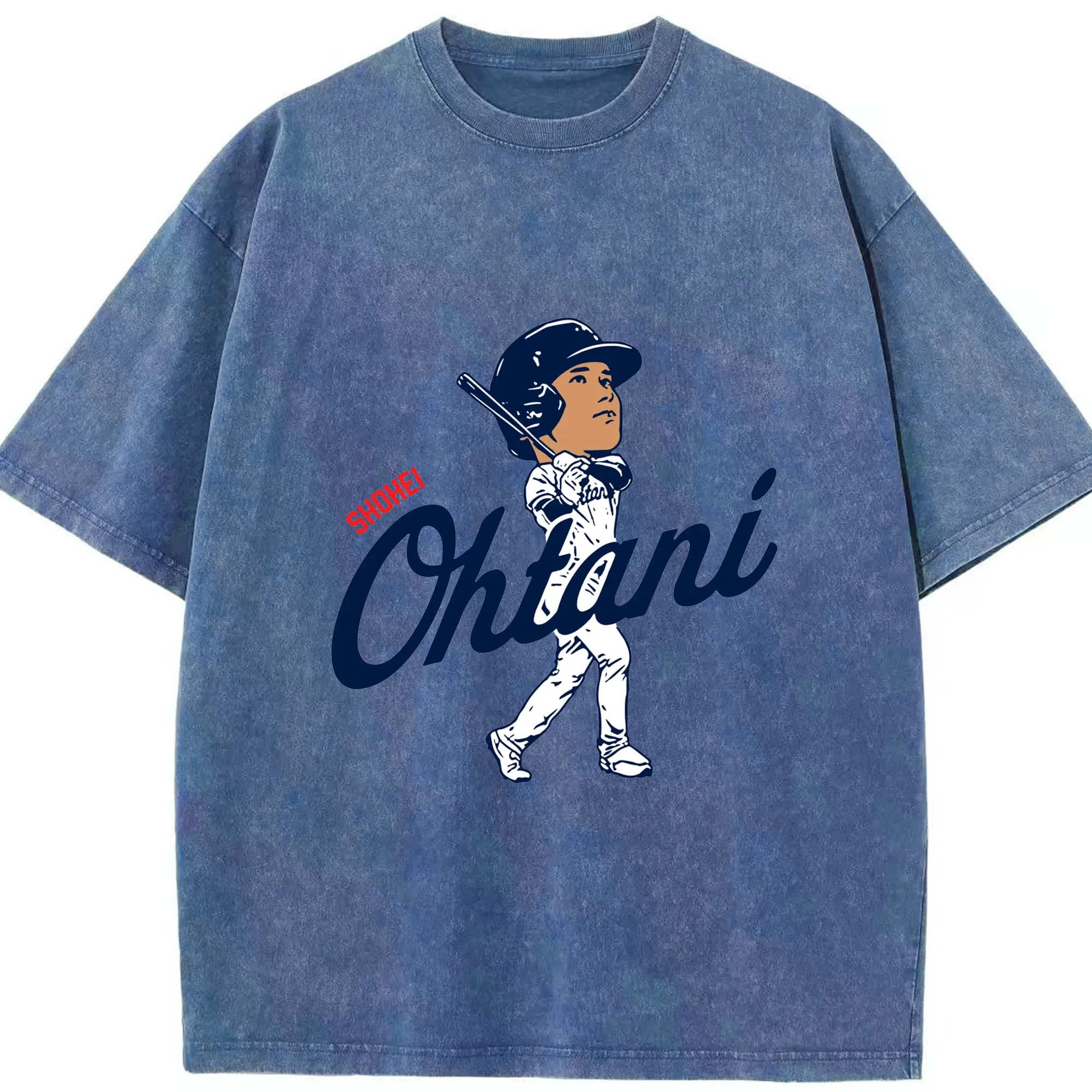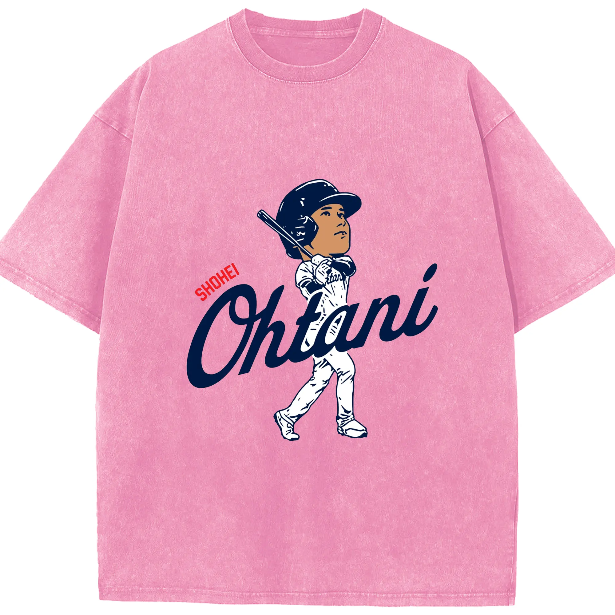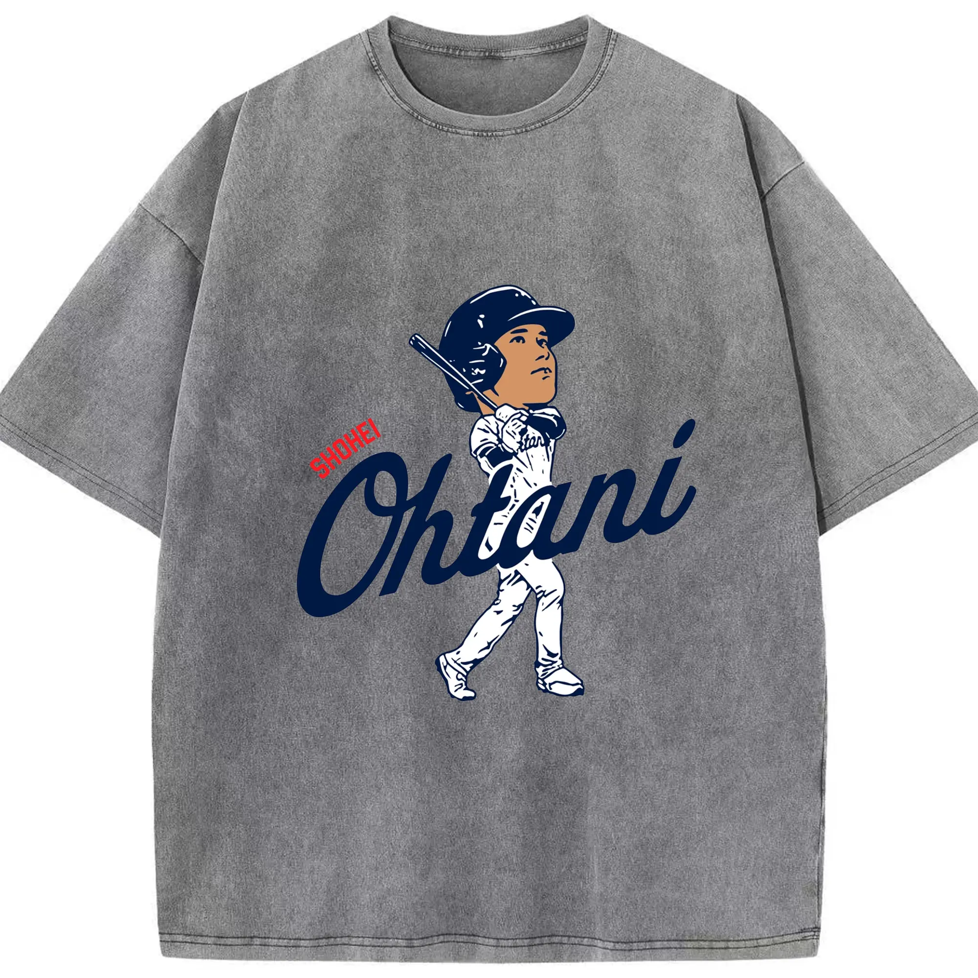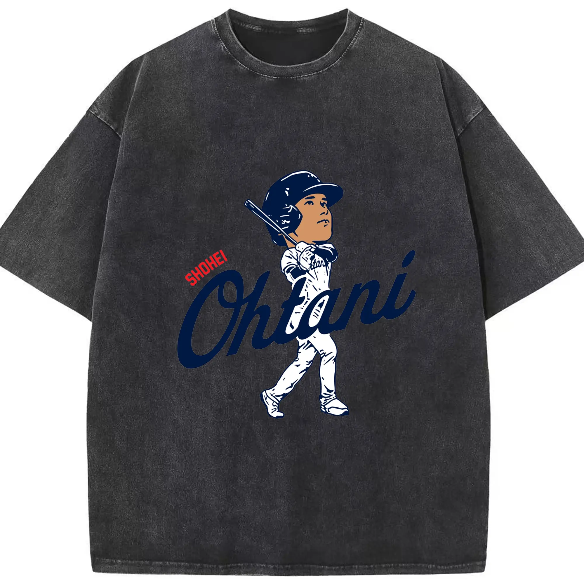 大谷翔平 代表アクション カートゥーン 限定&話題 - 綿100% 半袖Tシャツ ・ フロントプリント ・ 快適 通気性 ・ 日常使い 散歩 スポーツ用