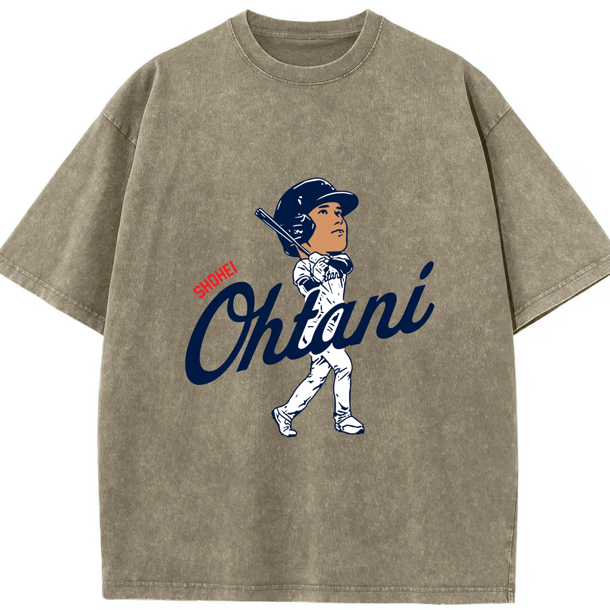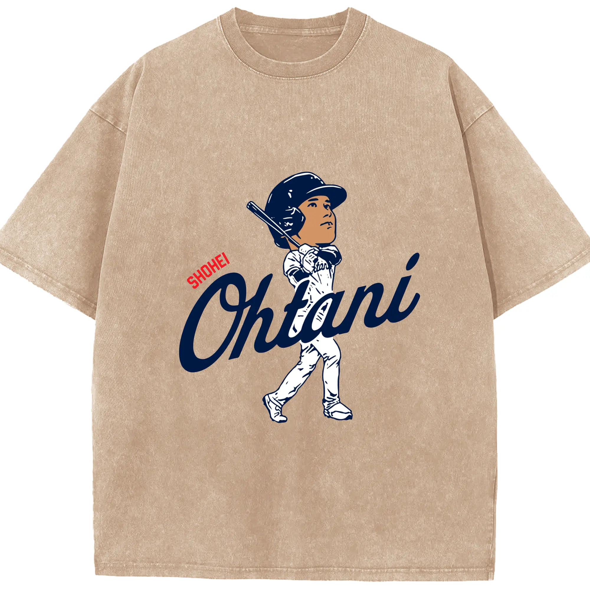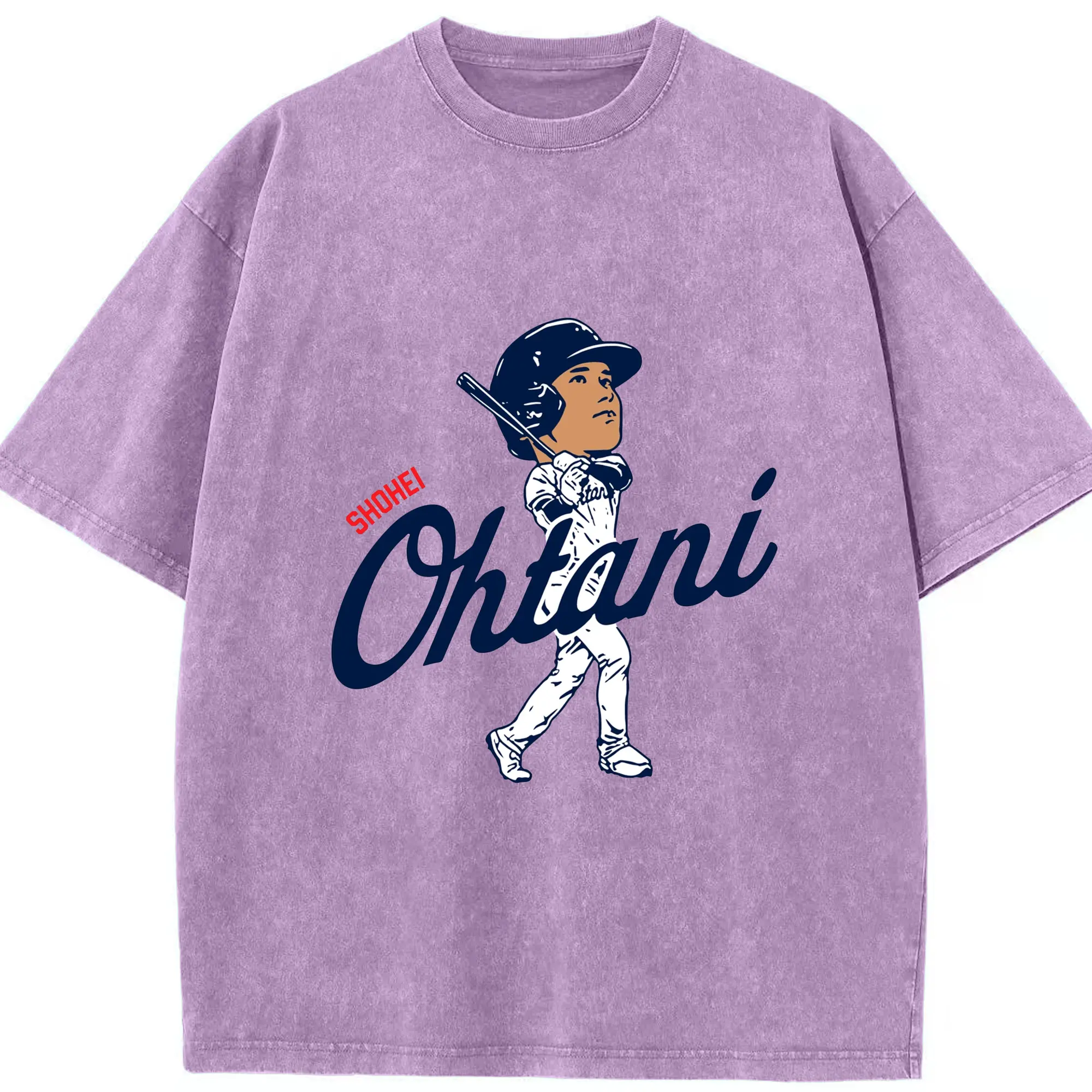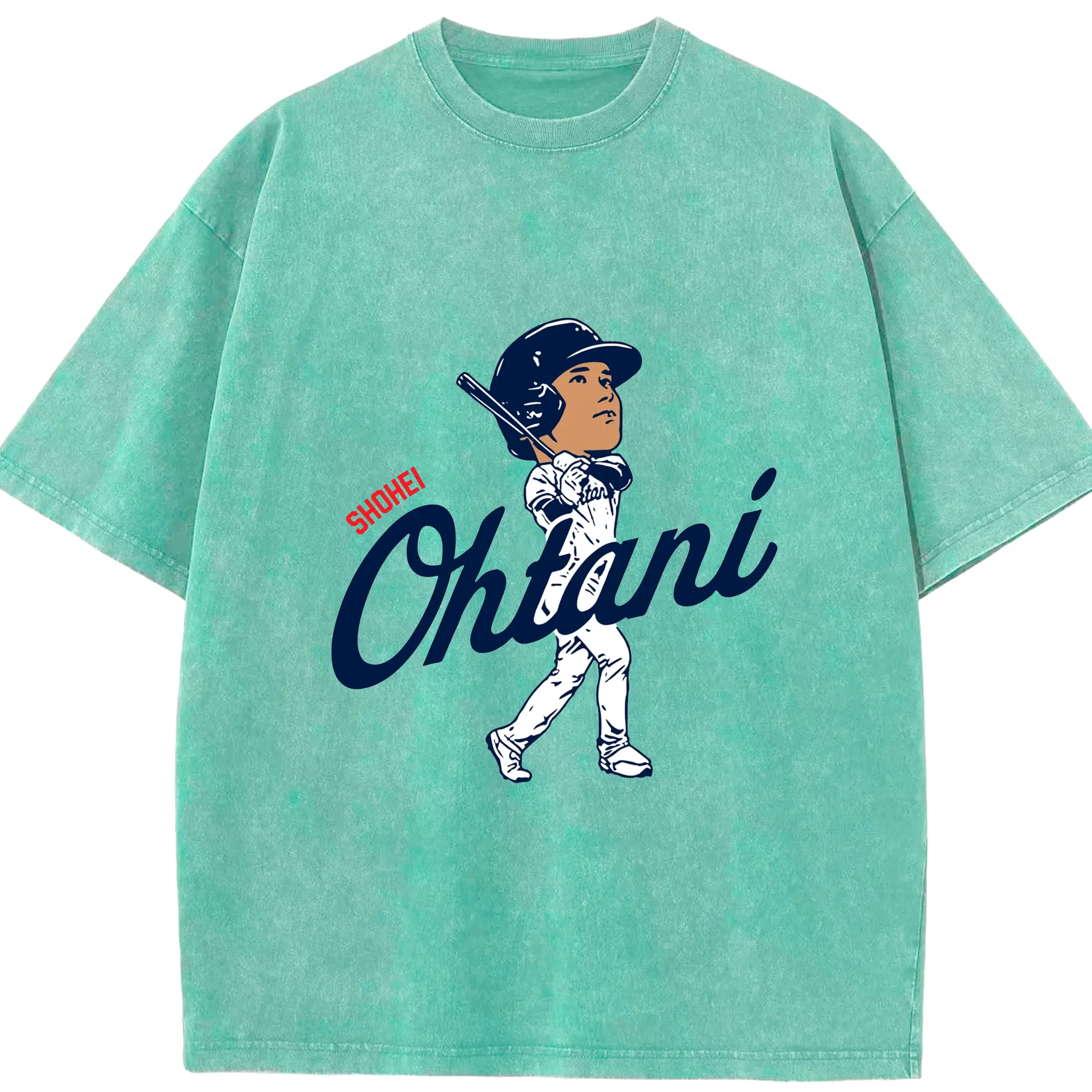 大谷翔平 代表アクション カートゥーン 限定&話題 - 綿100% 半袖Tシャツ ・ フロントプリント ・ 快適 通気性 ・ 日常使い 散歩 スポーツ用