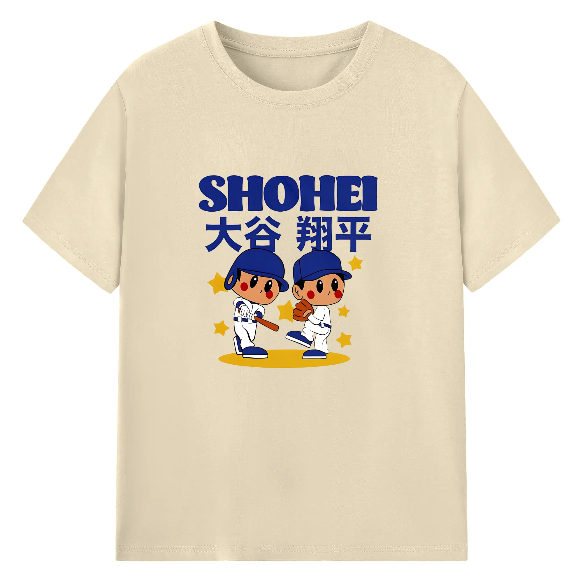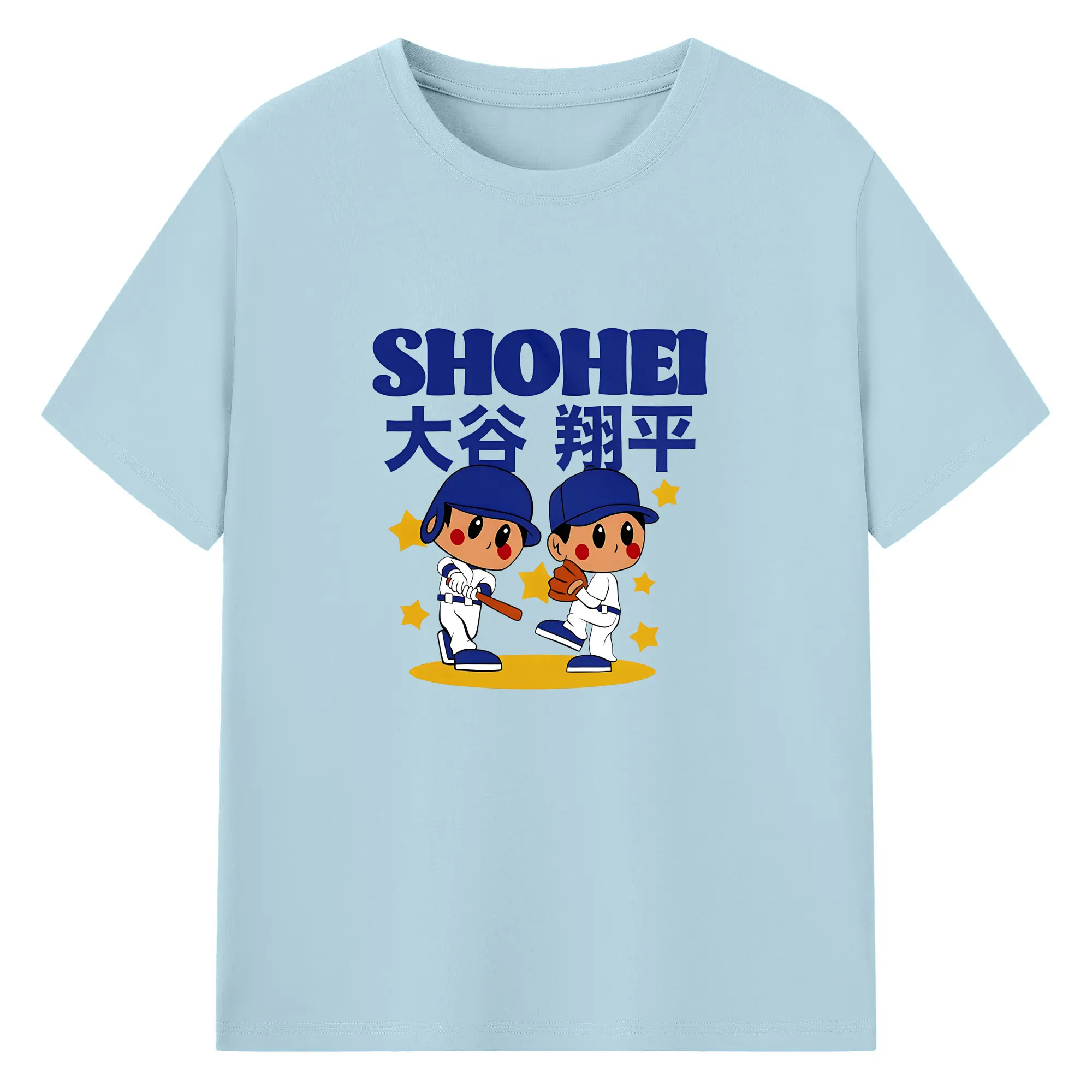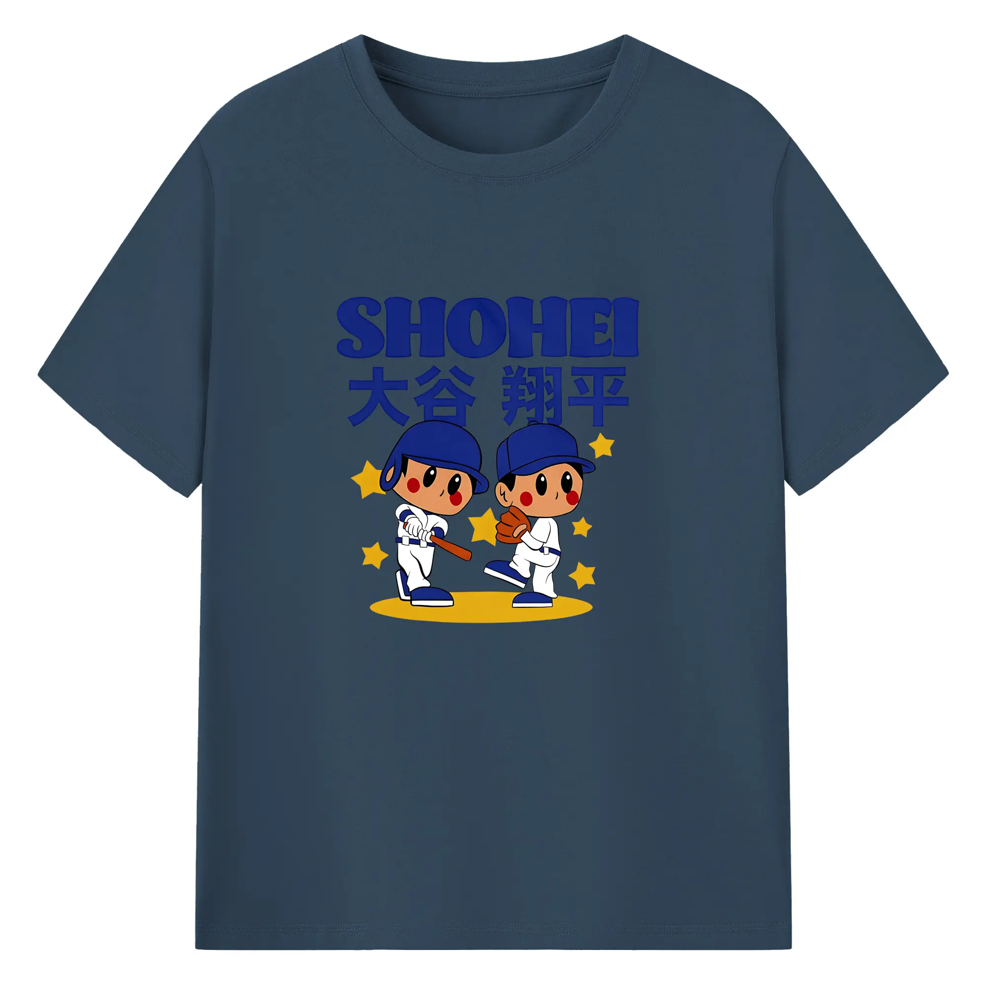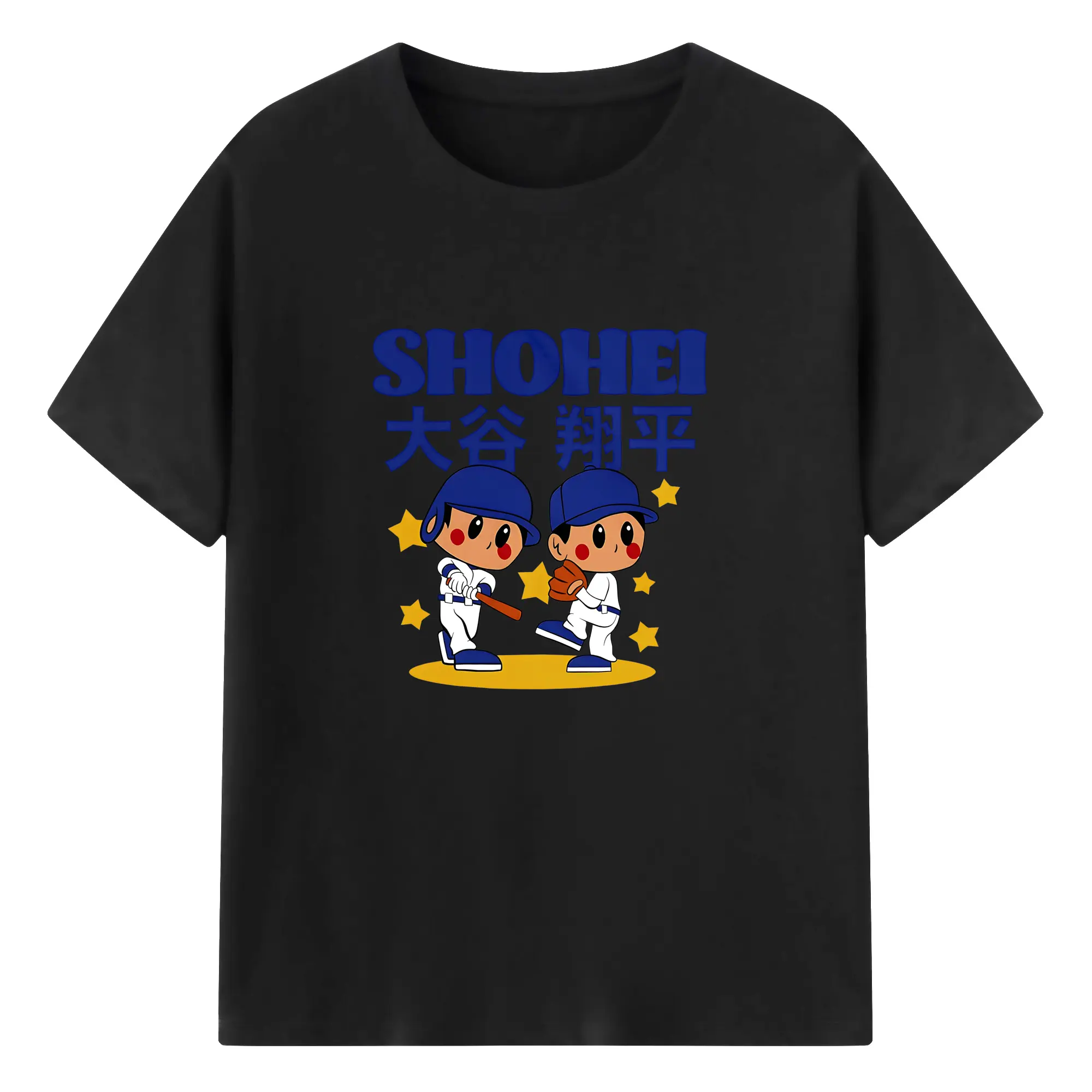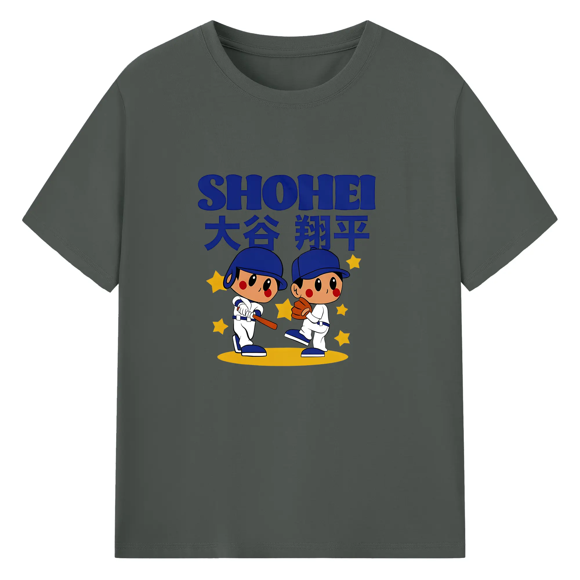 大谷翔平 可愛いカートゥーン × ロサンゼルス・ドジャース 人気限定 - 綿100% ヴィンテージ風 半袖Tシャツ ・ フロントプリント ・ 柔らか肌触り ・ 通気性 快適 ・ スポーツ カジュアル 外出用