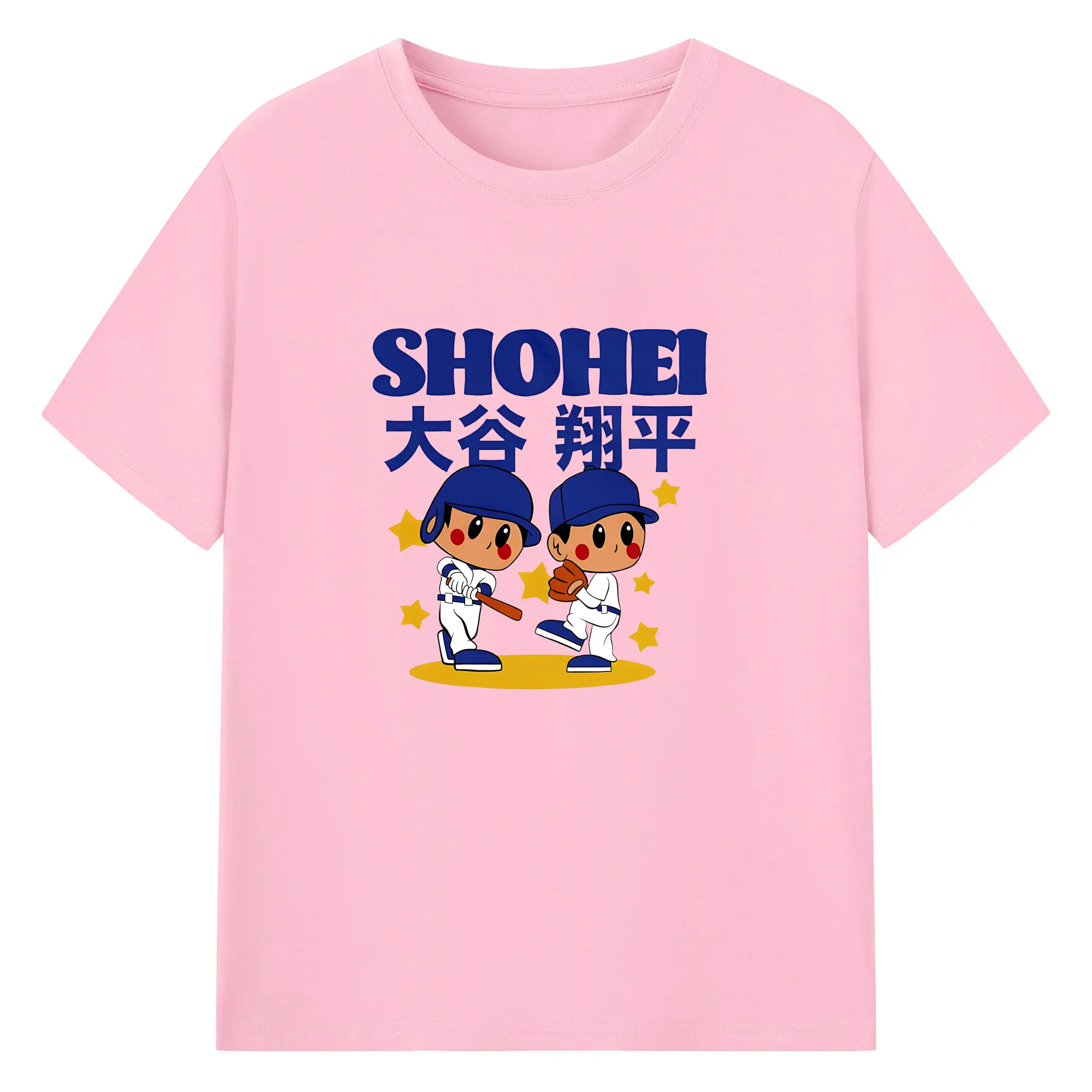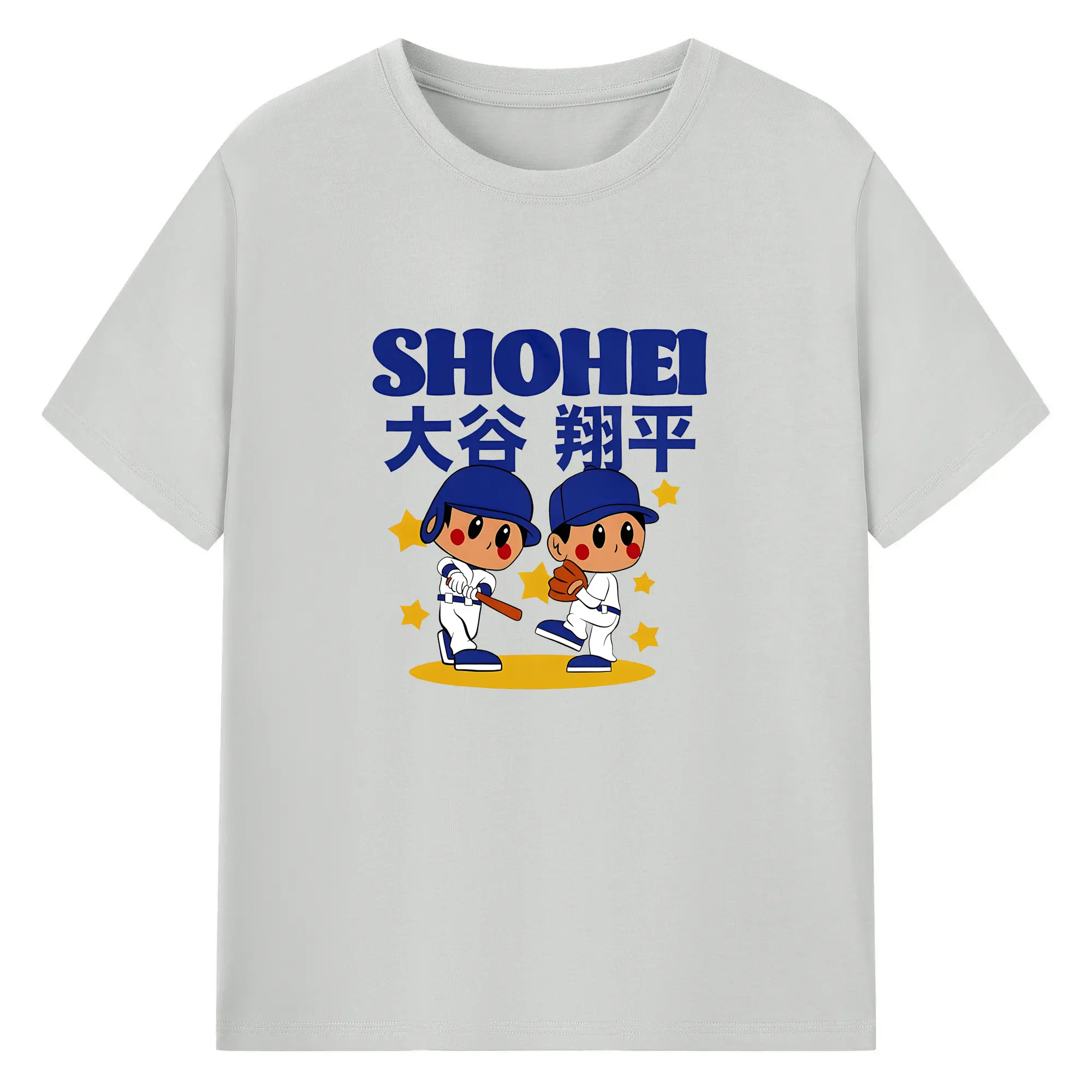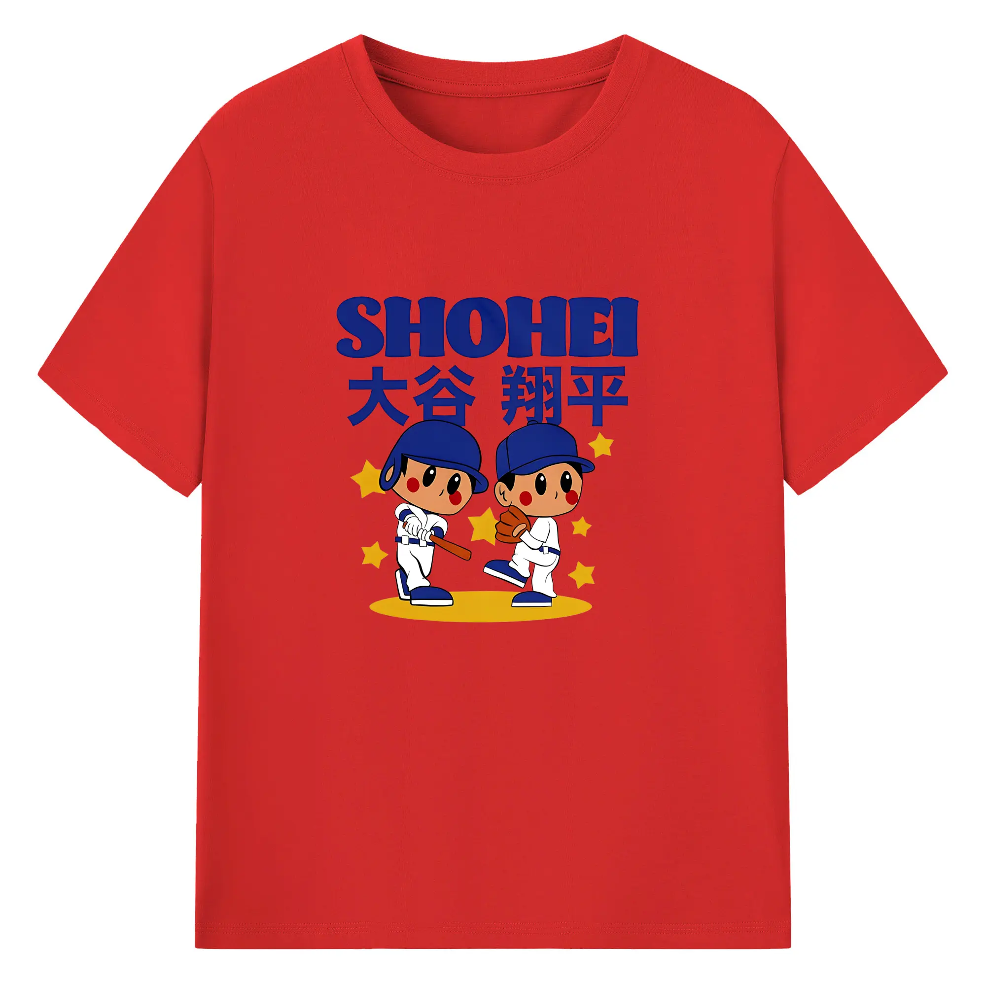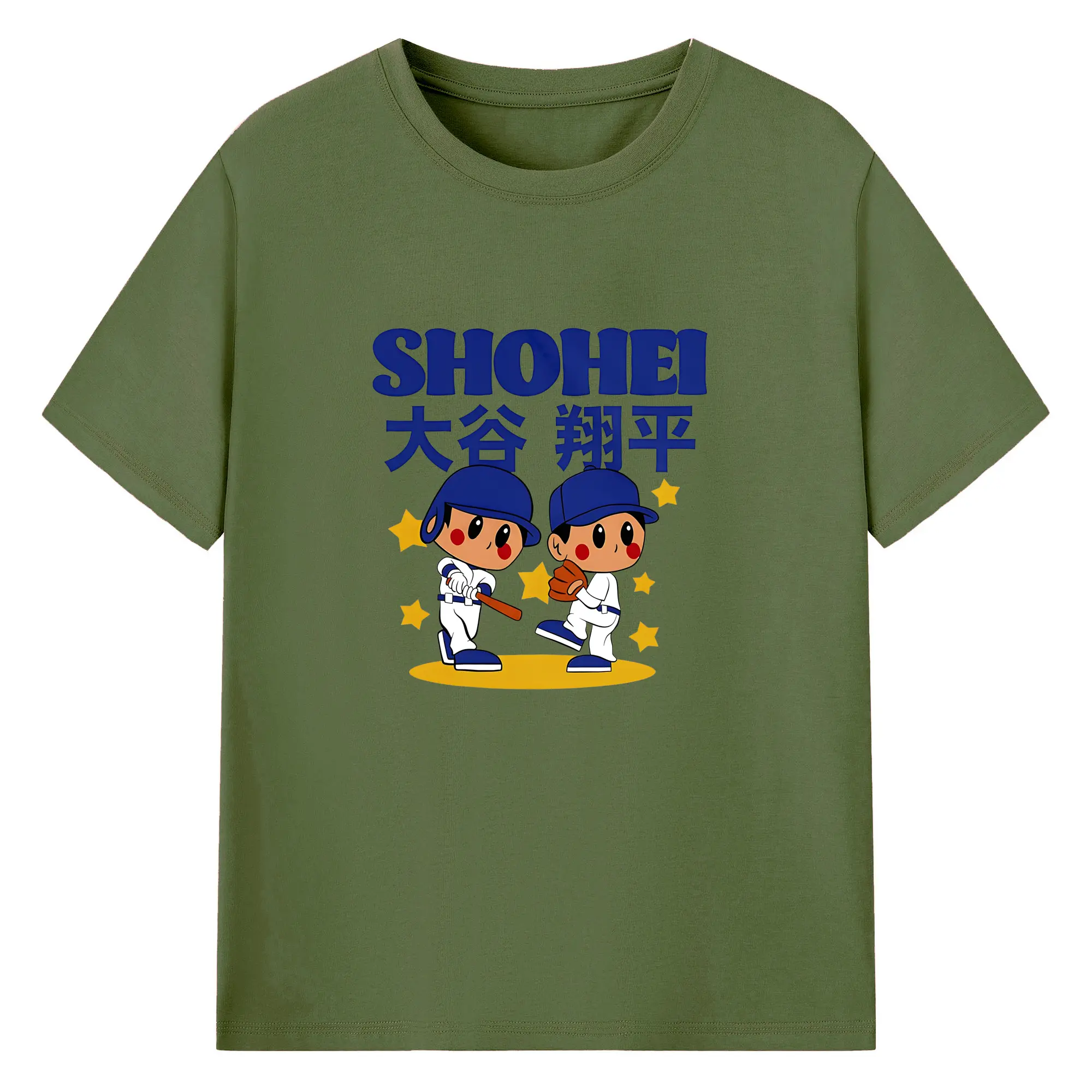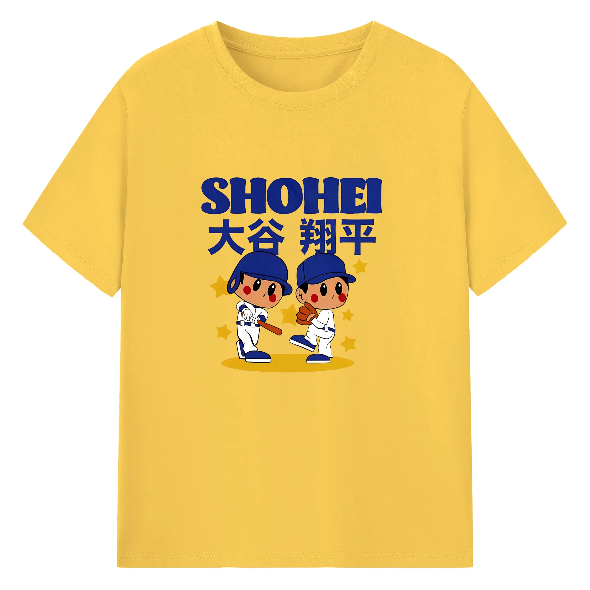 大谷翔平 可愛いカートゥーン × ロサンゼルス・ドジャース 人気限定 - 綿100% ヴィンテージ風 半袖Tシャツ ・ フロントプリント ・ 柔らか肌触り ・ 通気性 快適 ・ スポーツ カジュアル 外出用