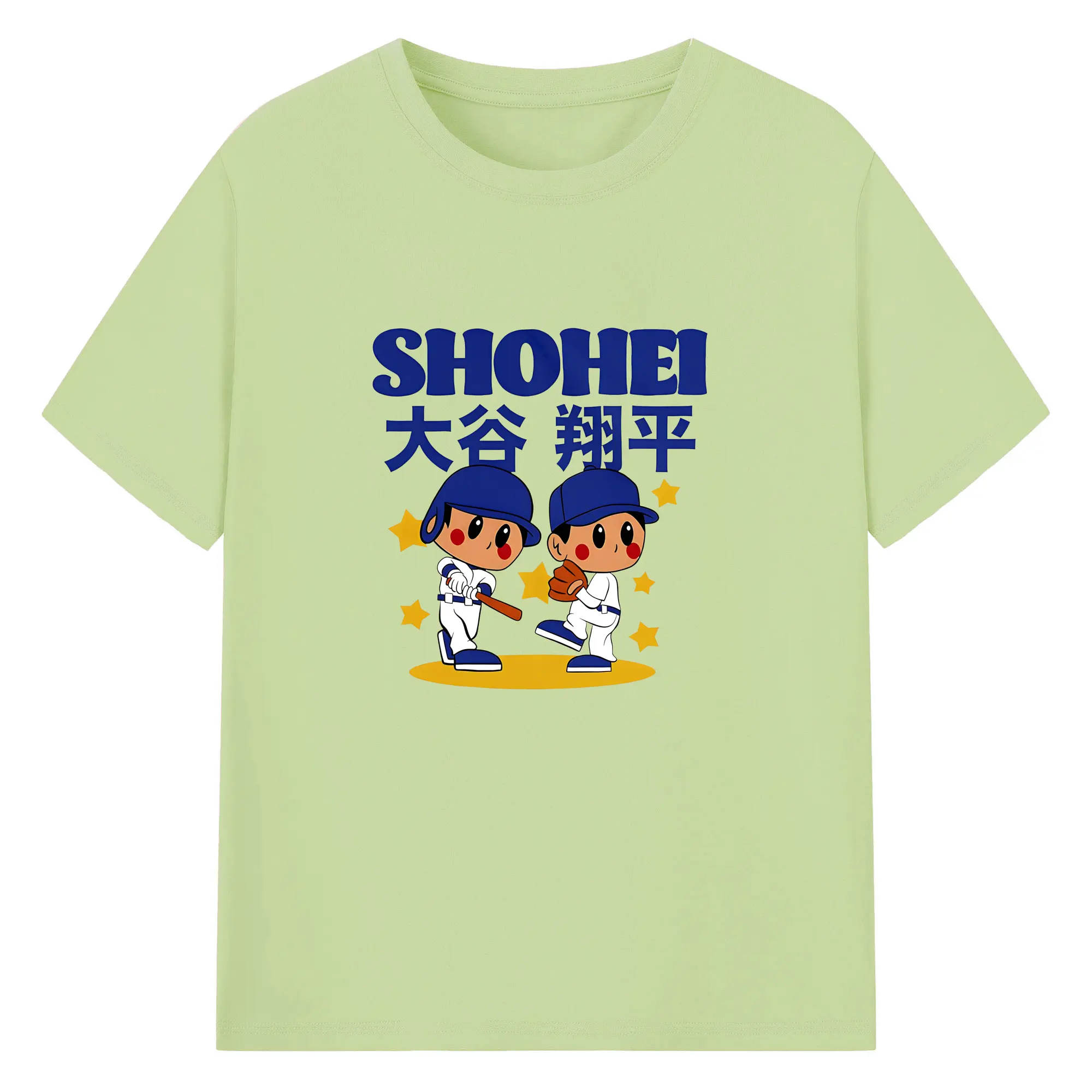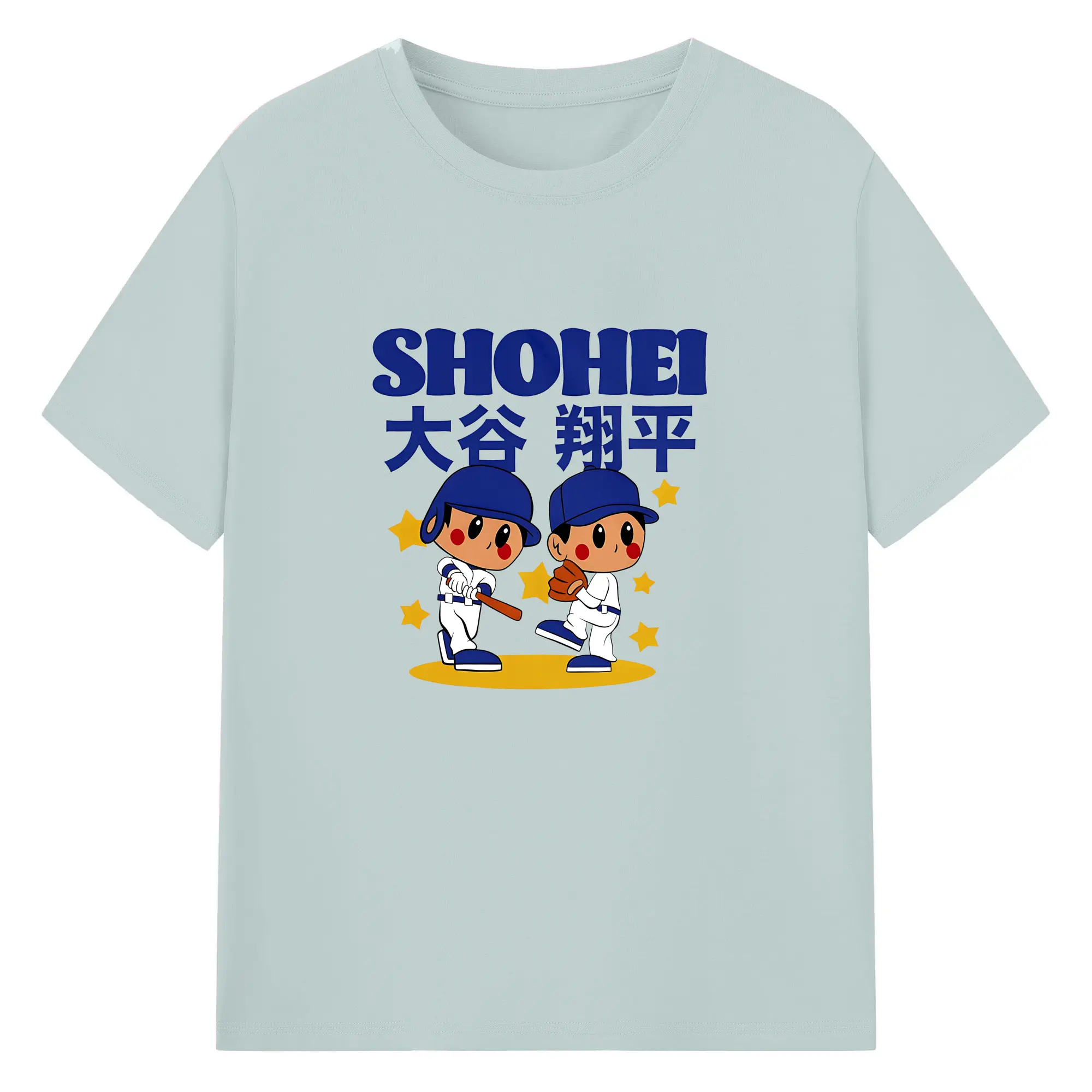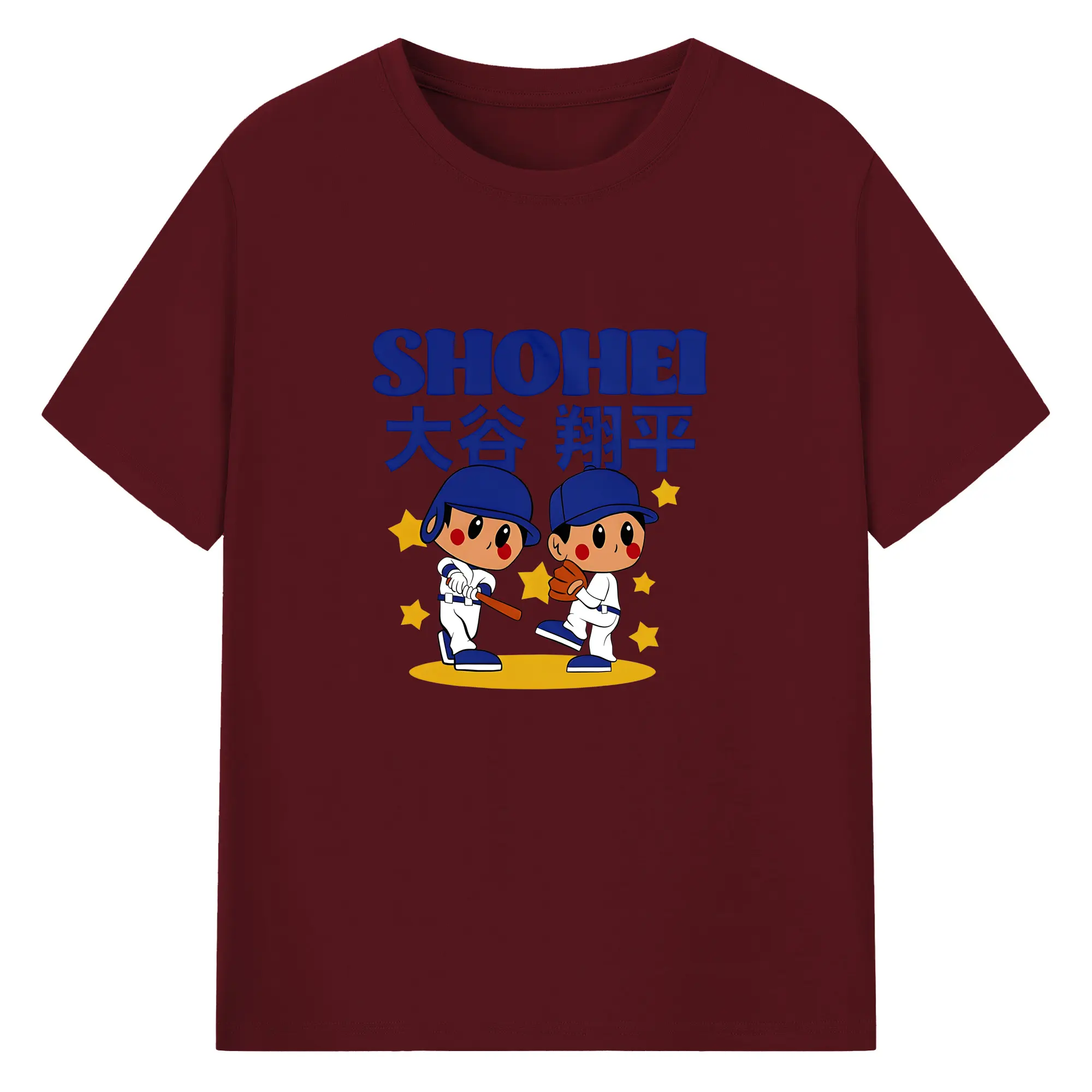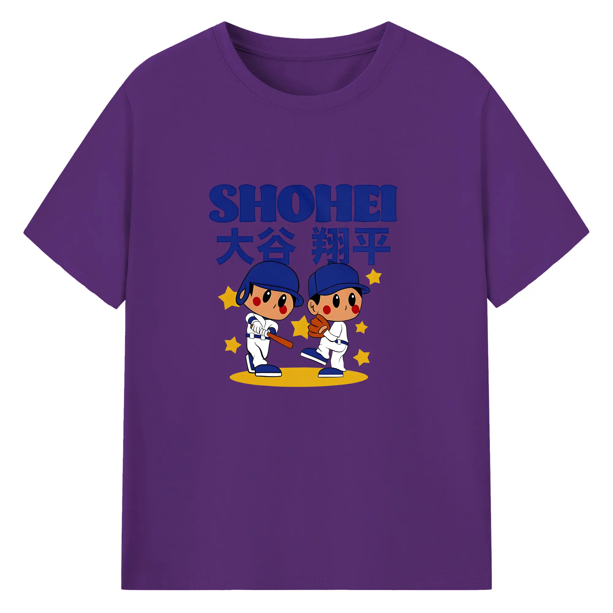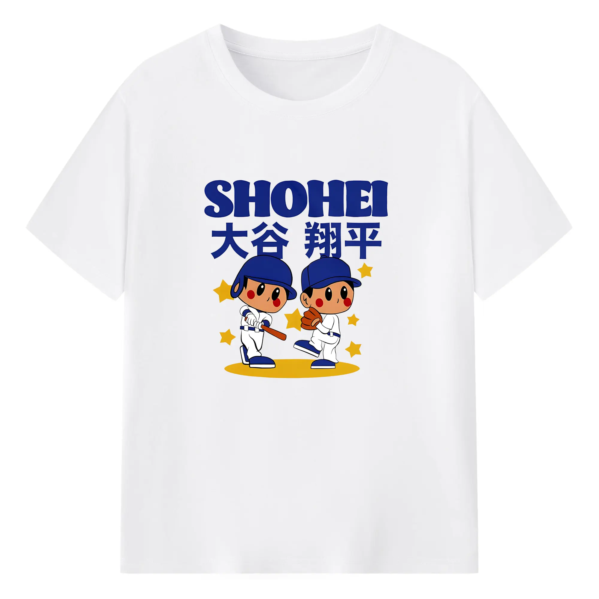 大谷翔平 可愛いカートゥーン × ロサンゼルス・ドジャース 人気限定 - 綿100% ヴィンテージ風 半袖Tシャツ ・ フロントプリント ・ 柔らか肌触り ・ 通気性 快適 ・ スポーツ カジュアル 外出用