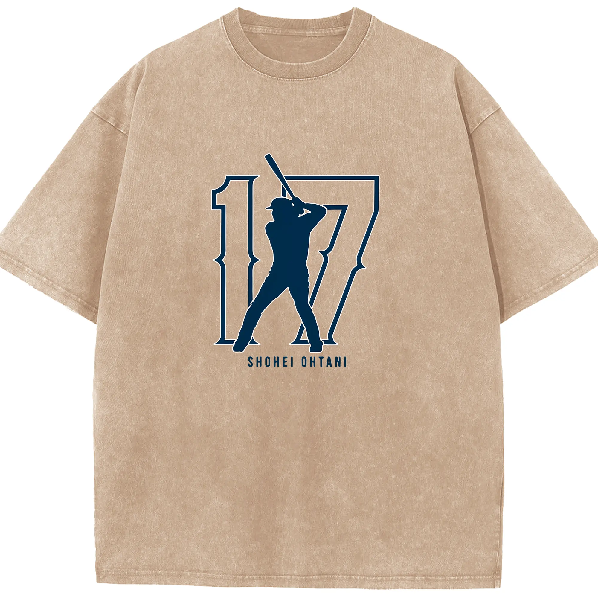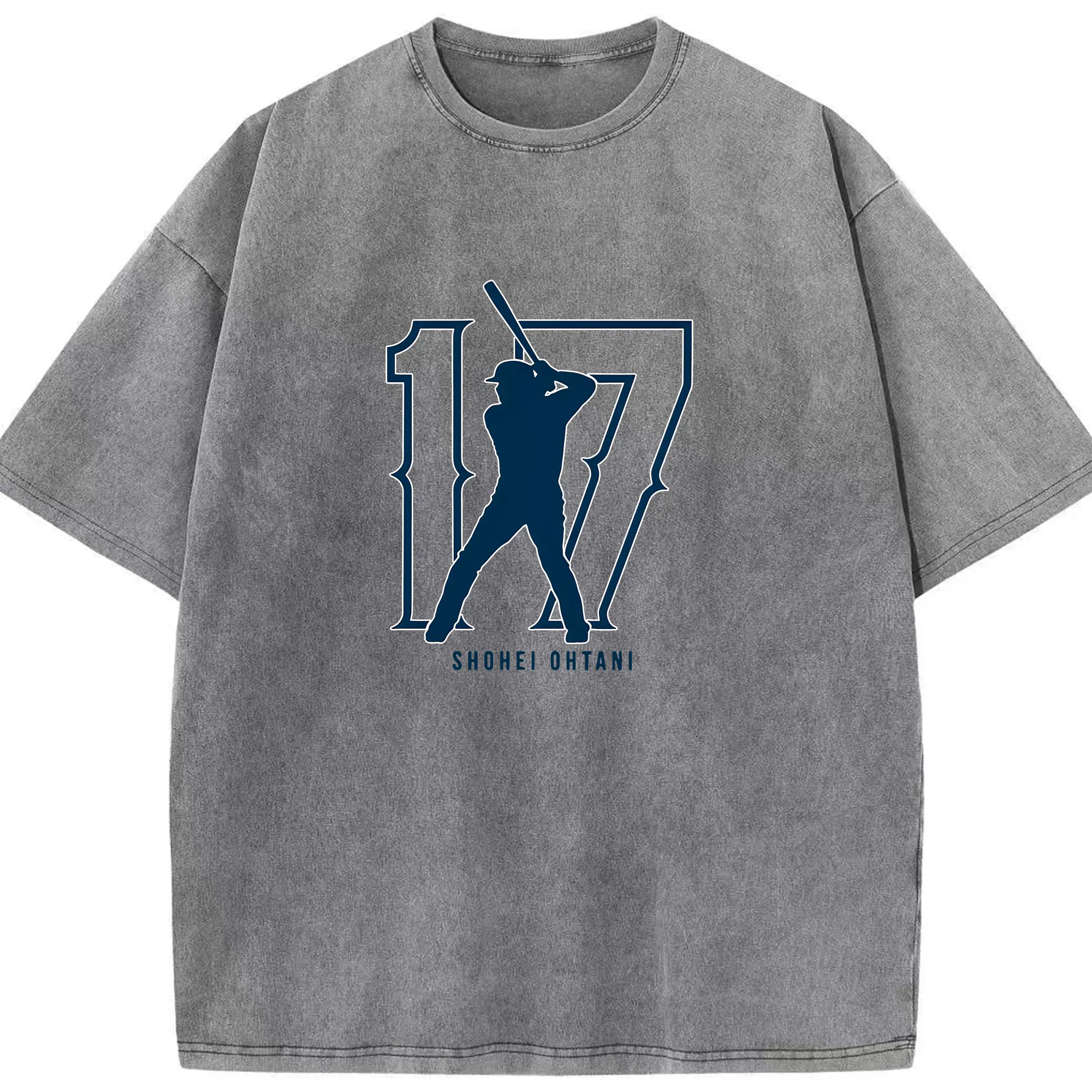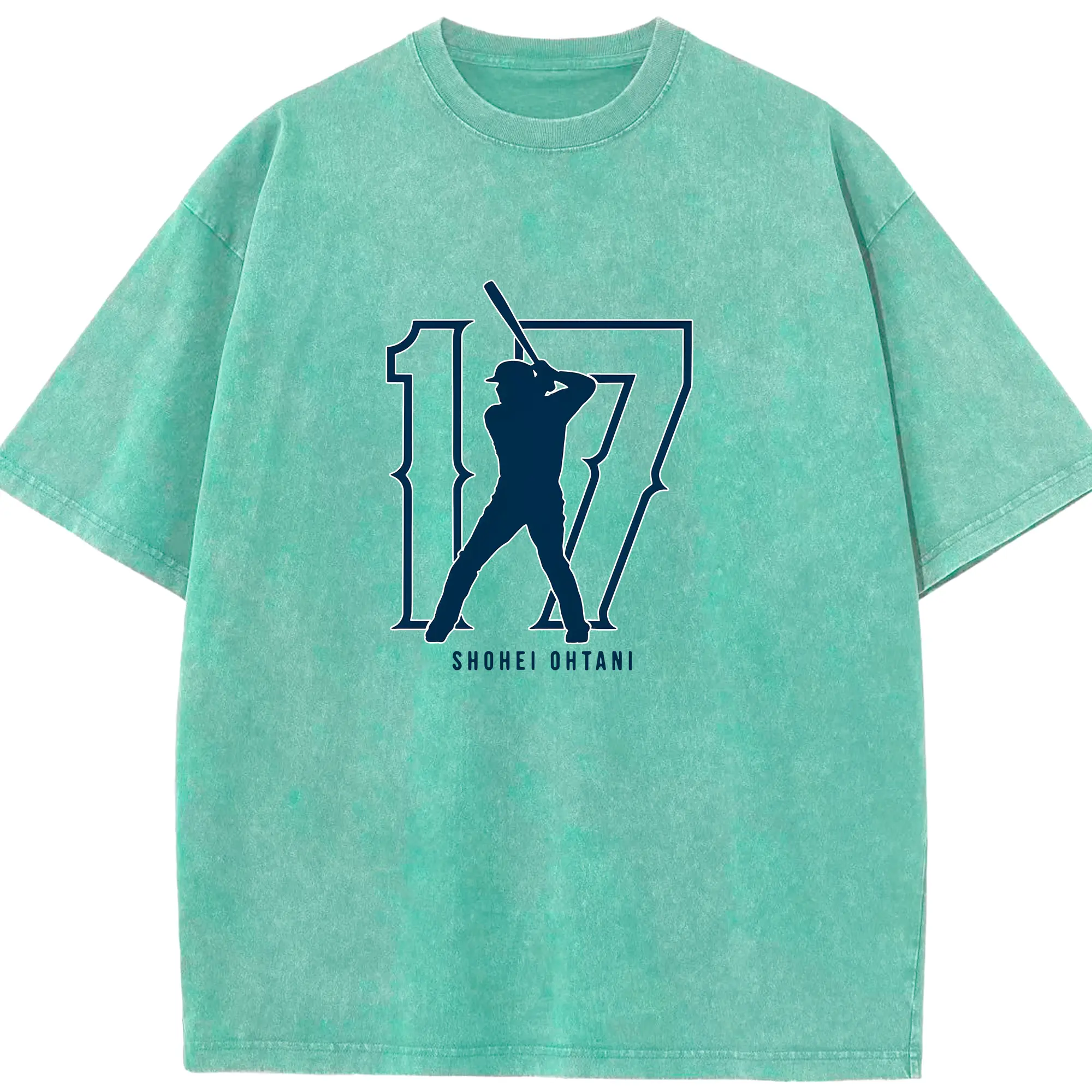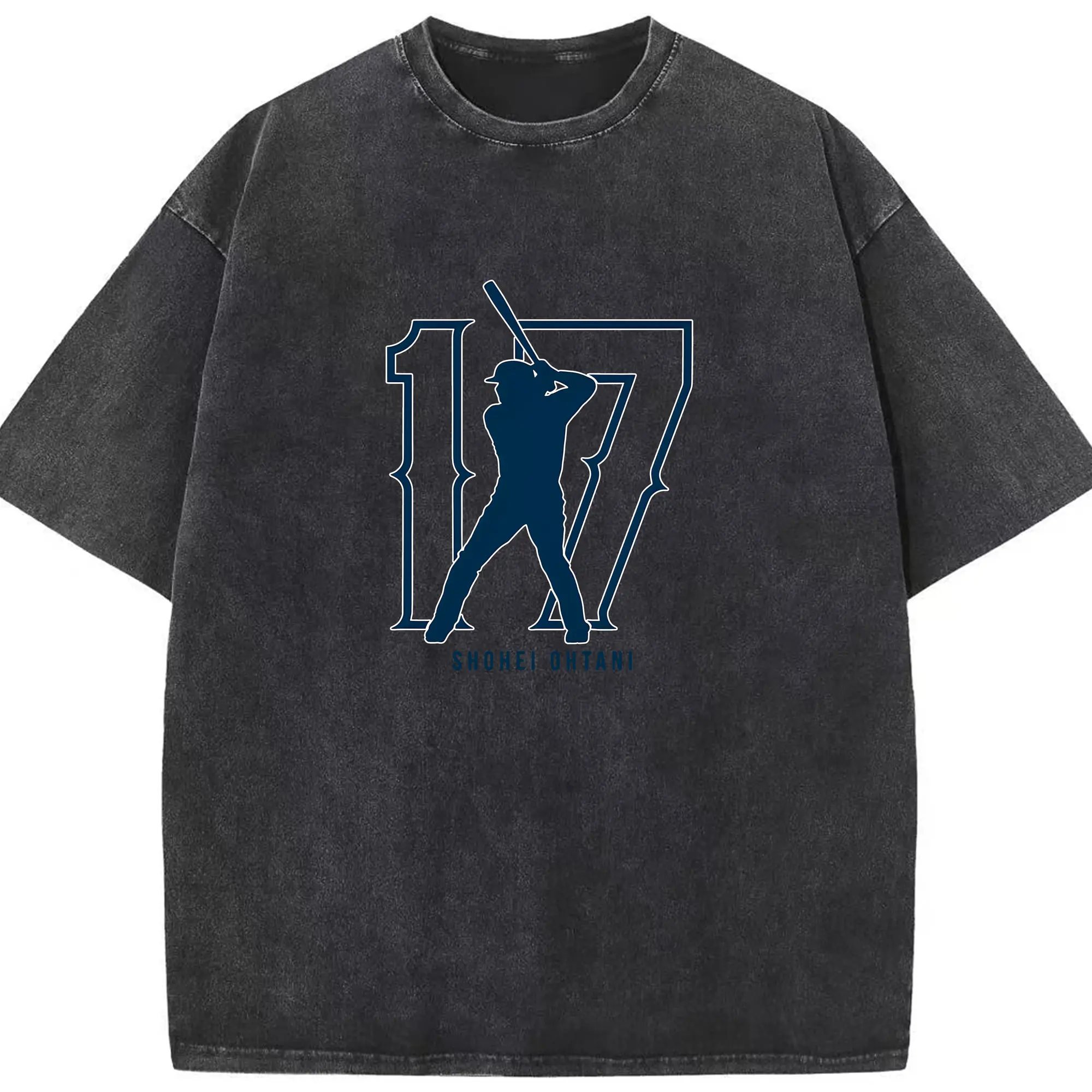 大谷翔平 背番号17 コレクターズアイテム - 綿100% 半袖Tシャツ ・ フロントプリント ・ 快適 通気性 ・ 日常使い 散歩 スポーツ用