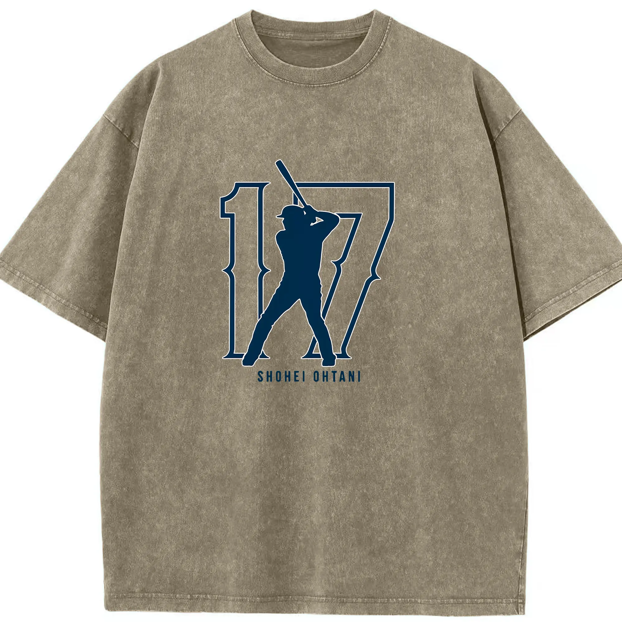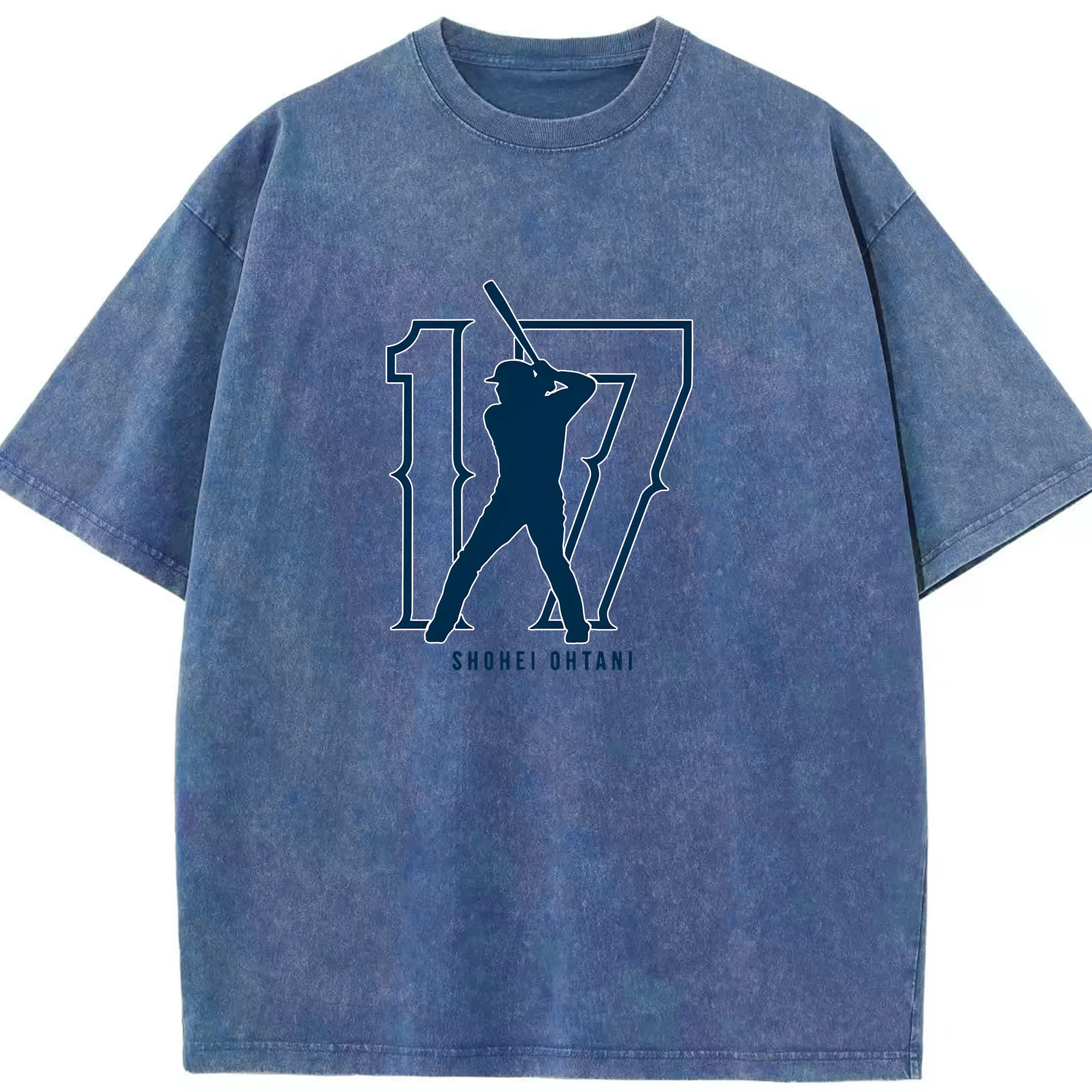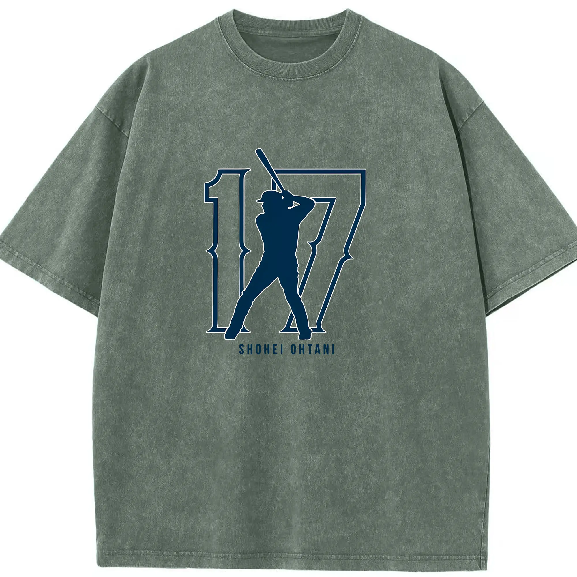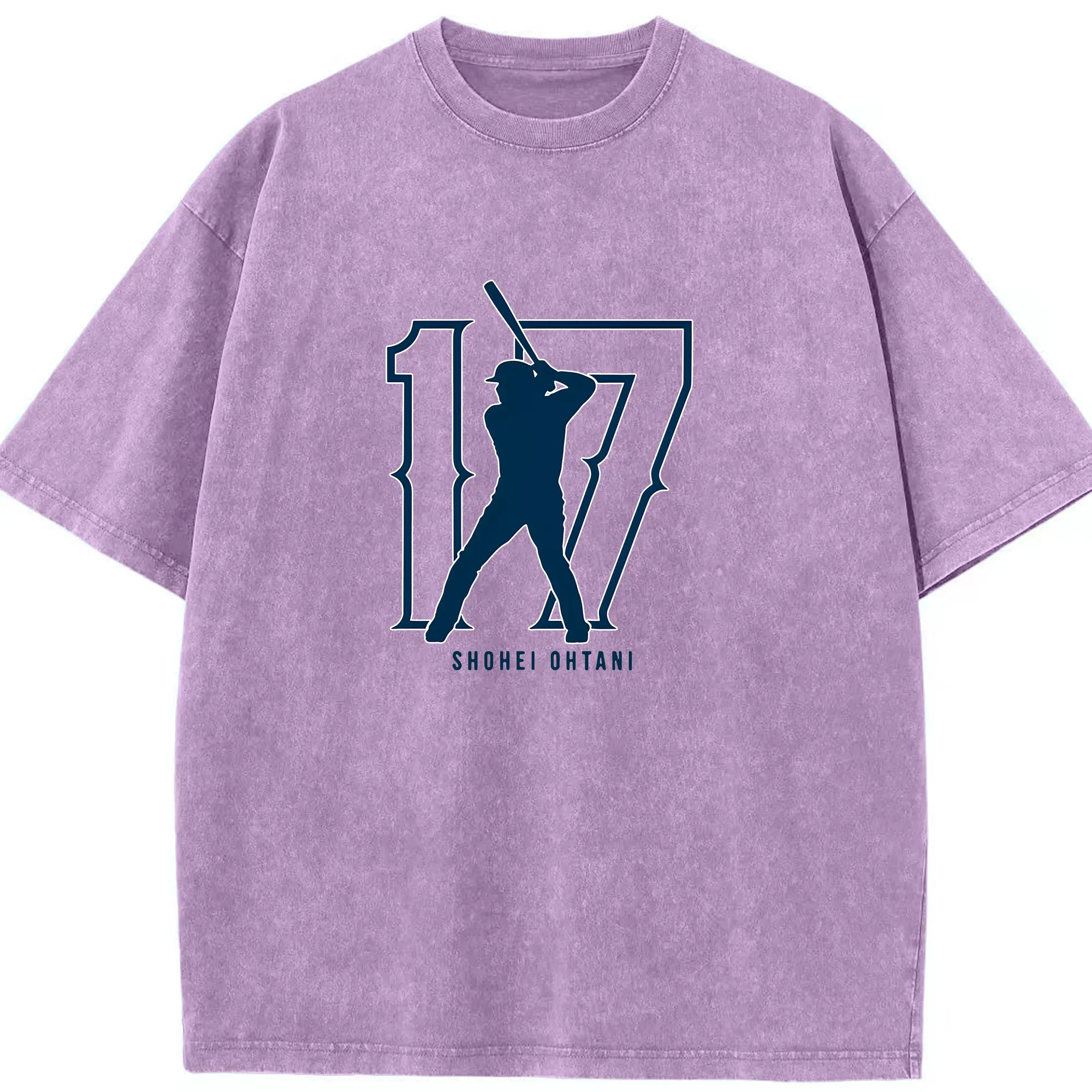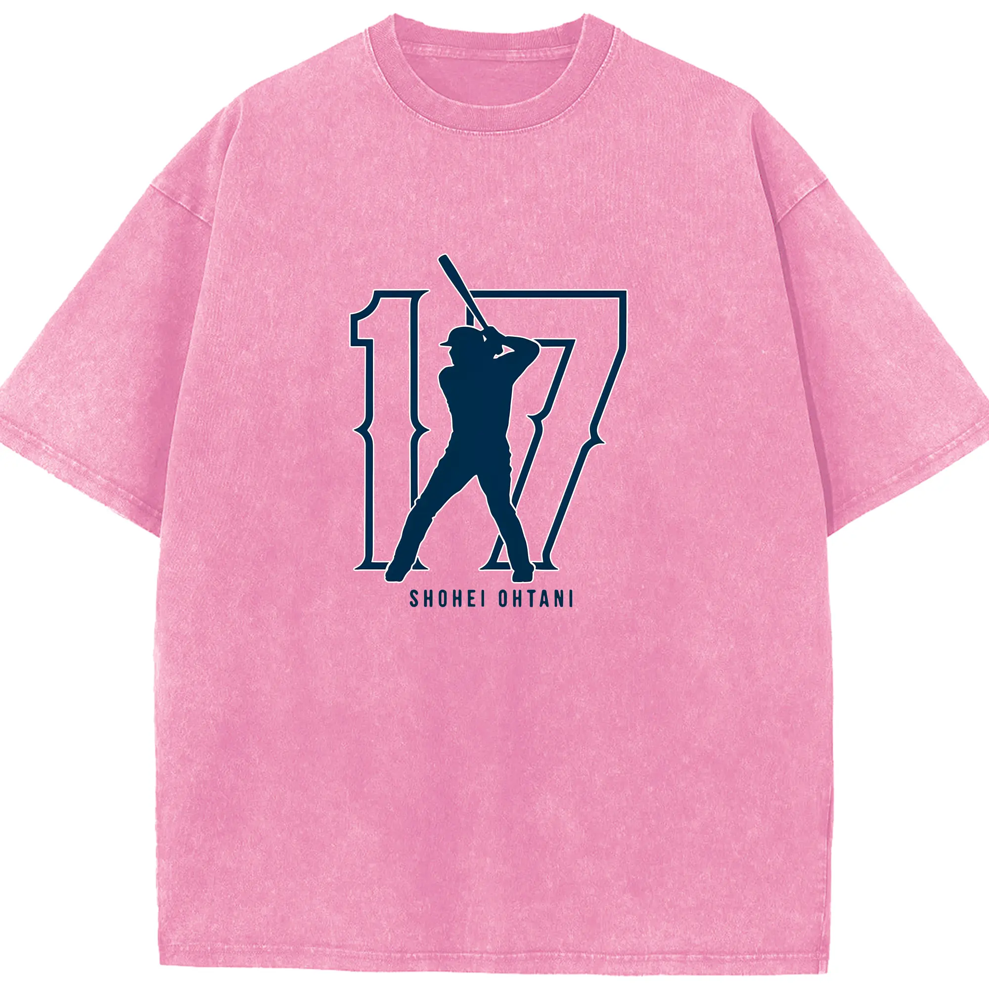 大谷翔平 背番号17 コレクターズアイテム - 綿100% 半袖Tシャツ ・ フロントプリント ・ 快適 通気性 ・ 日常使い 散歩 スポーツ用