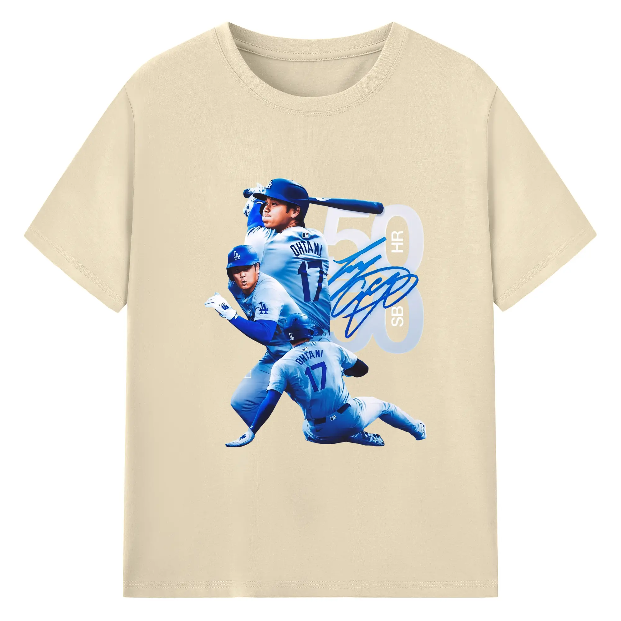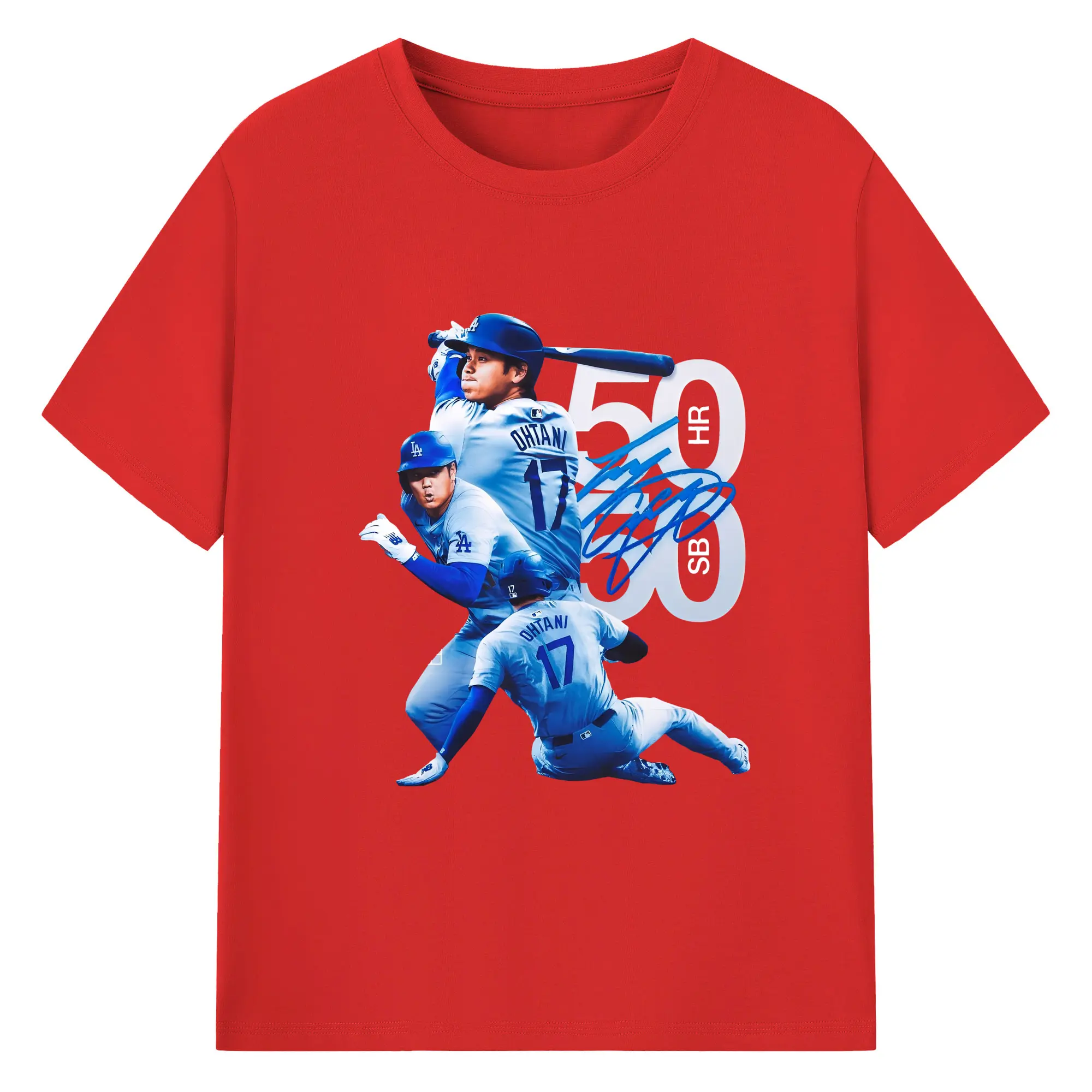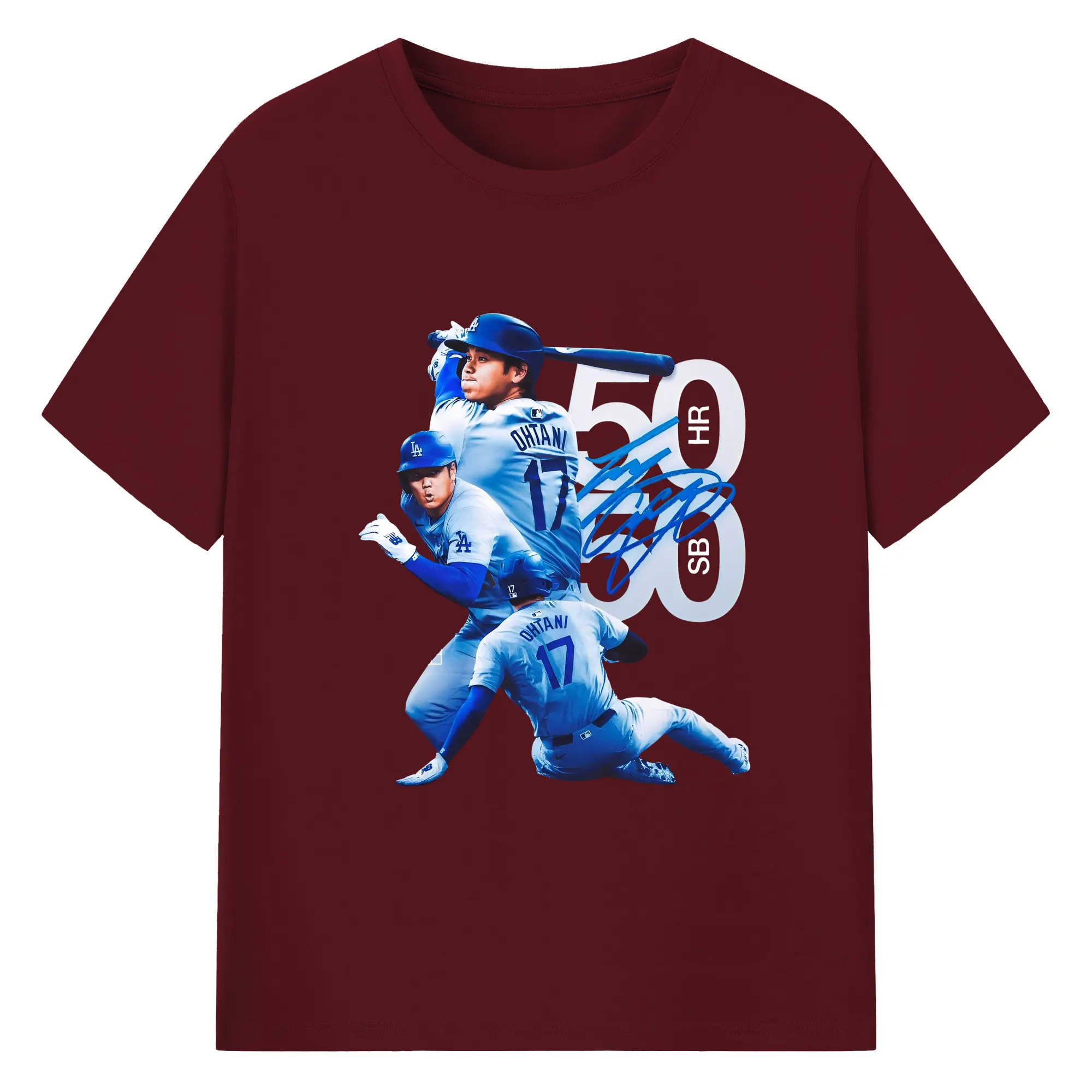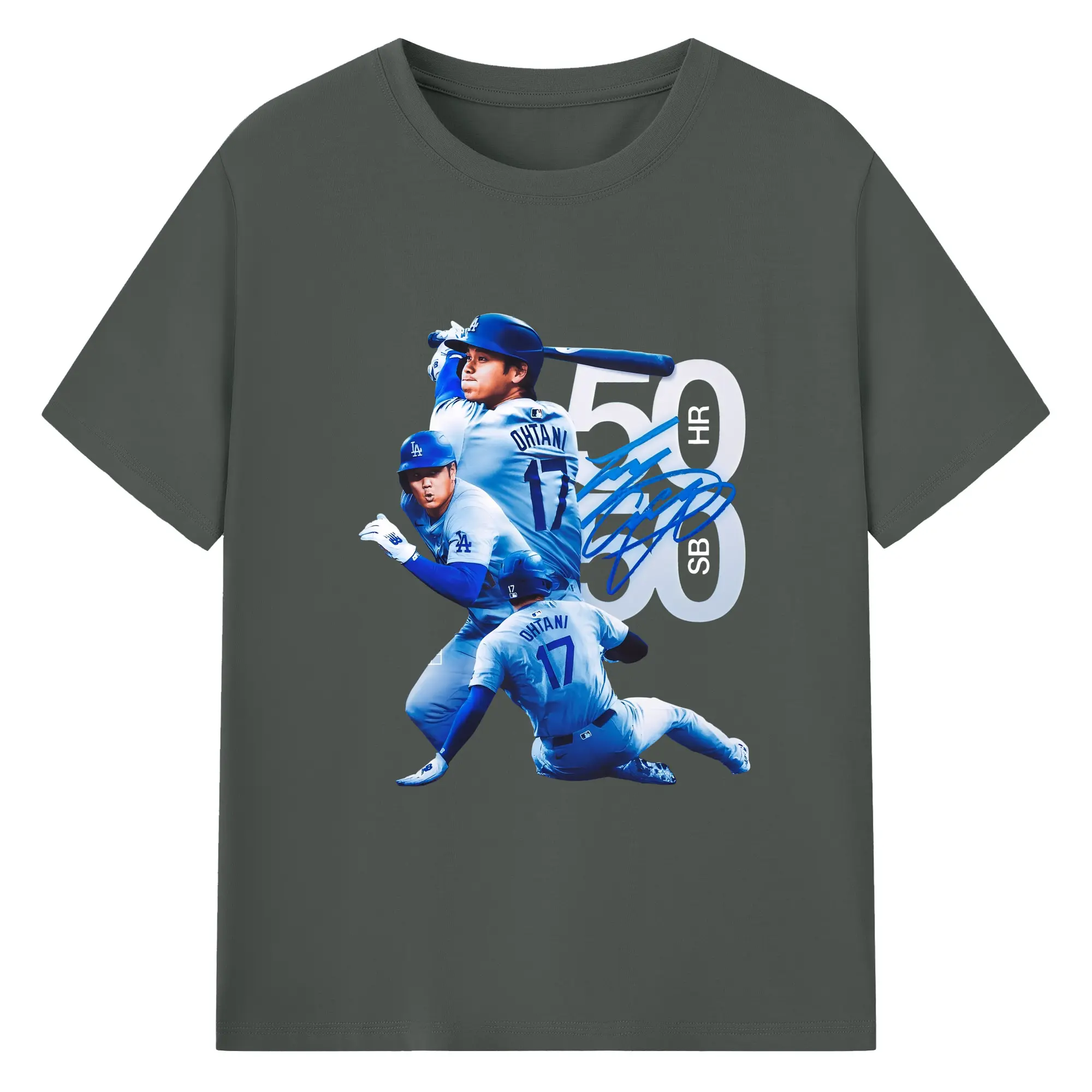 大谷翔平 MLB初の50/50達成!歴史的名場面⚡️ - 綿100% ヴィンテージ風 半袖Tシャツ ・ フロントプリント ・ 柔らか肌触り ・ 通気性 快適 ・ スポーツ カジュアル 外出用