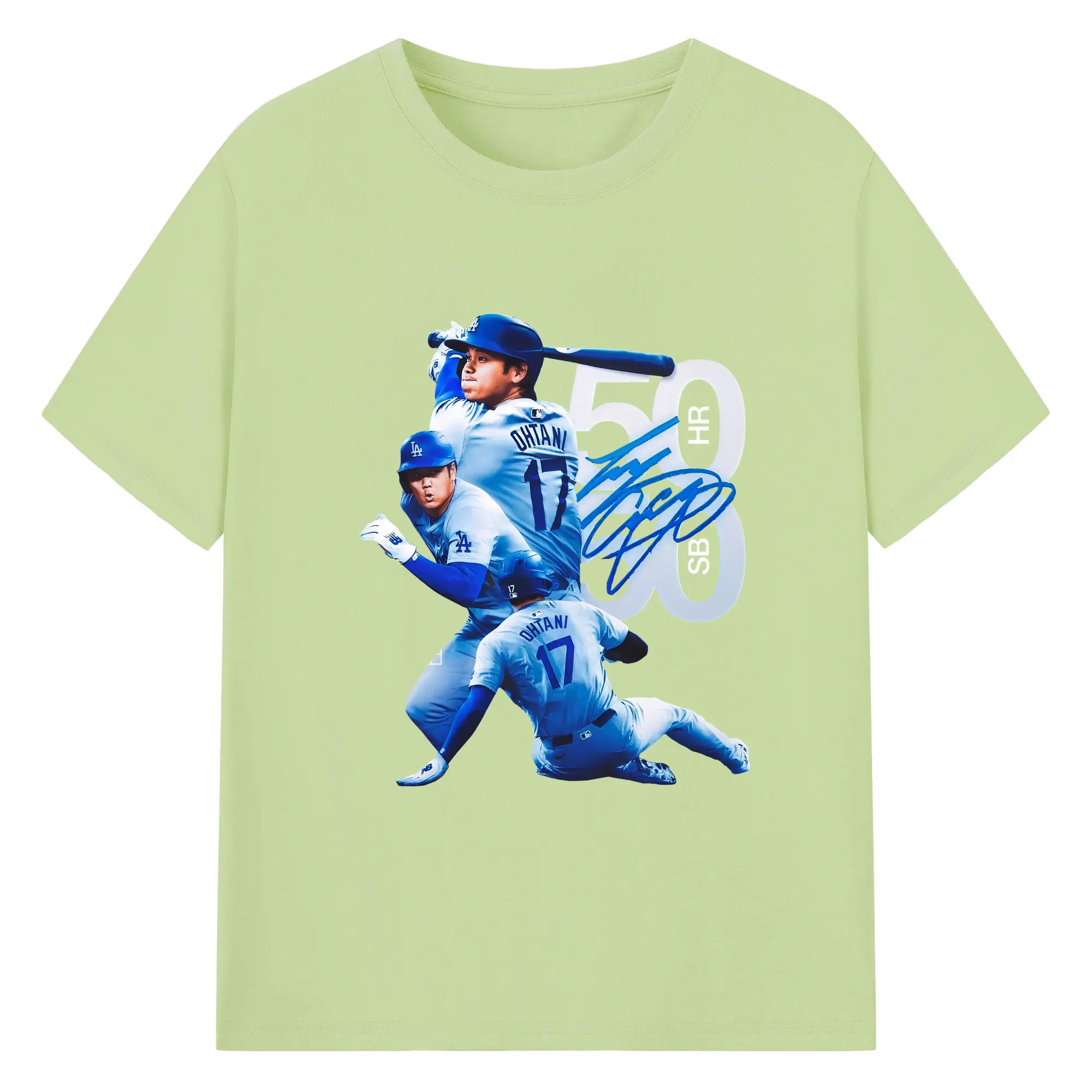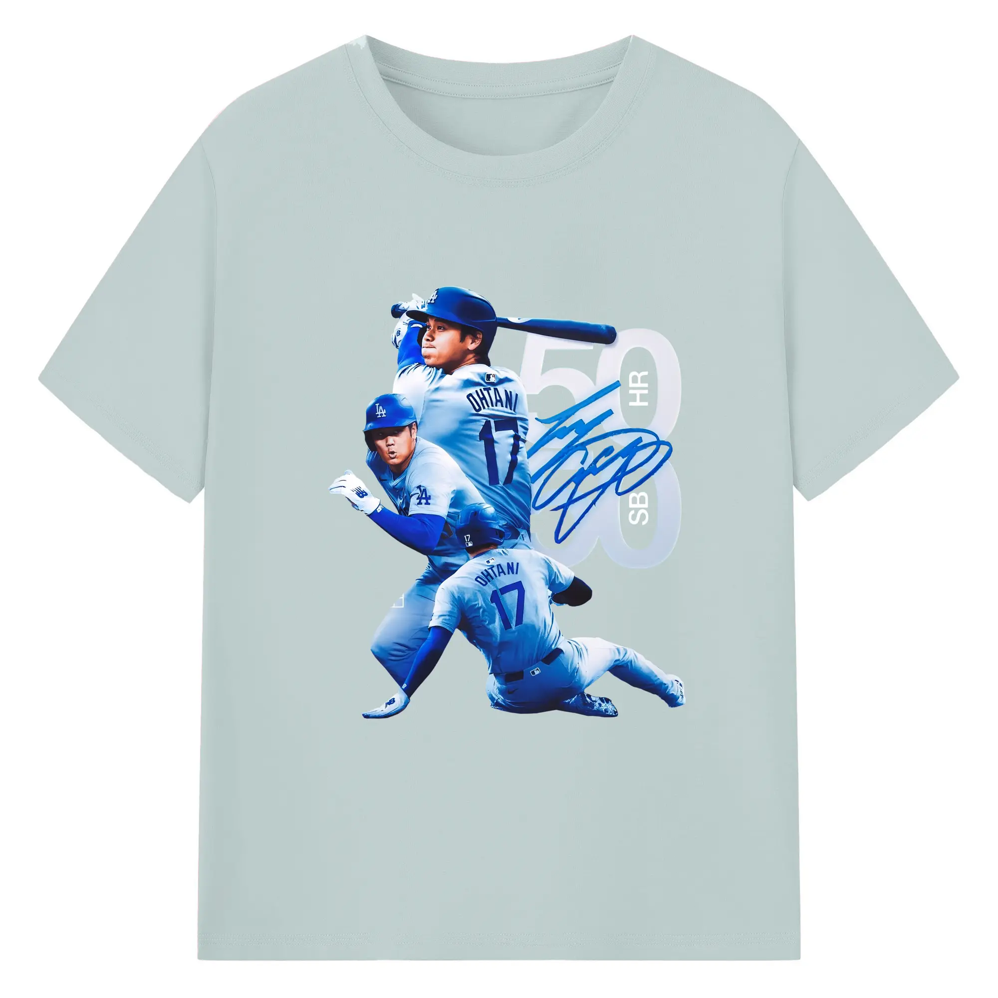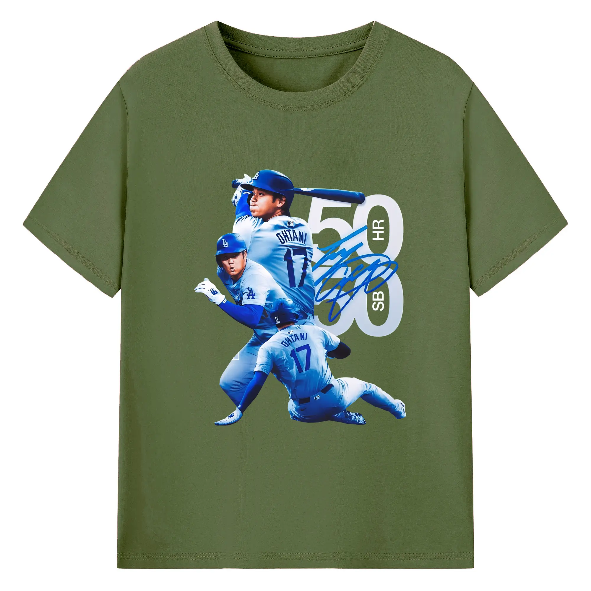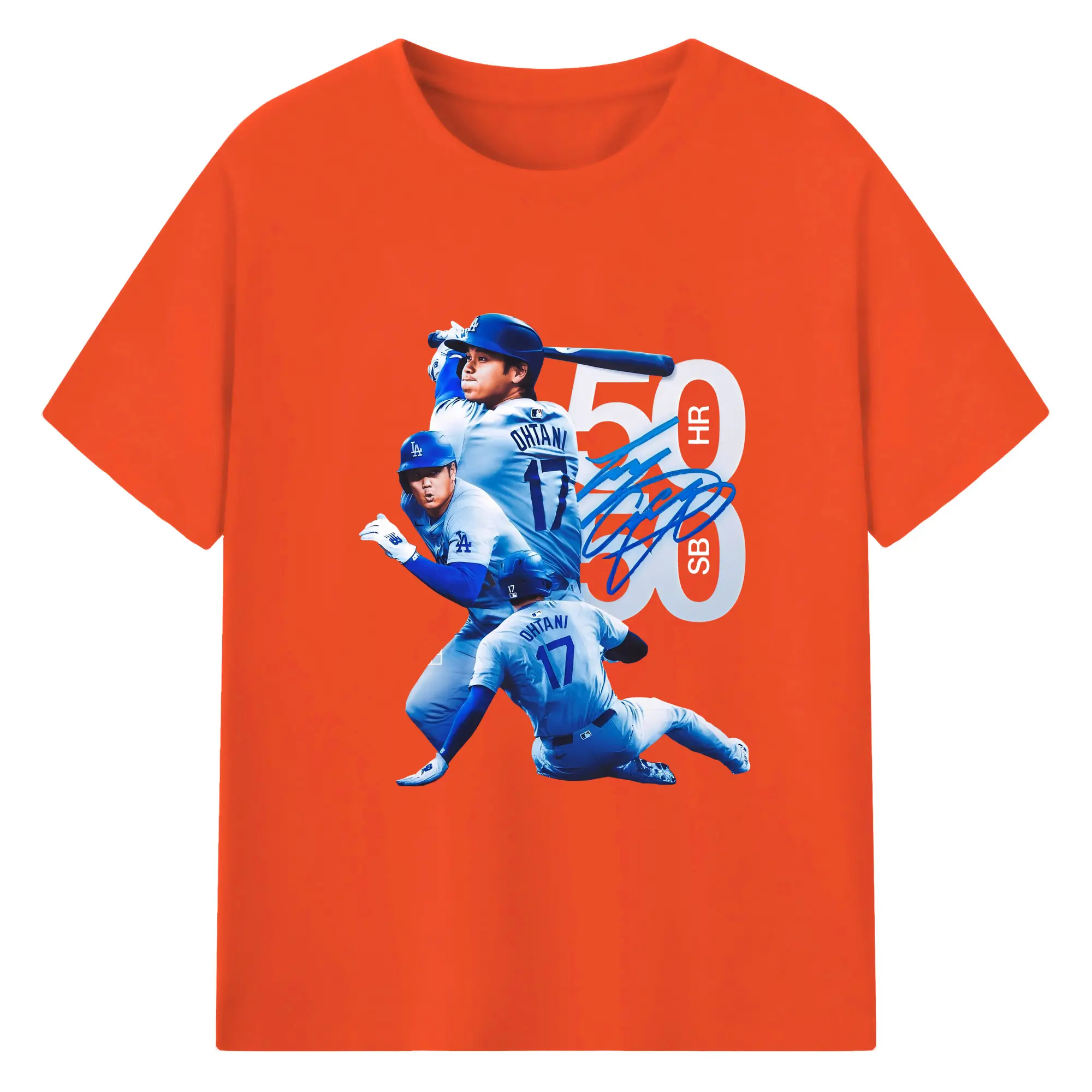 大谷翔平 MLB初の50/50達成!歴史的名場面⚡️ - 綿100% ヴィンテージ風 半袖Tシャツ ・ フロントプリント ・ 柔らか肌触り ・ 通気性 快適 ・ スポーツ カジュアル 外出用