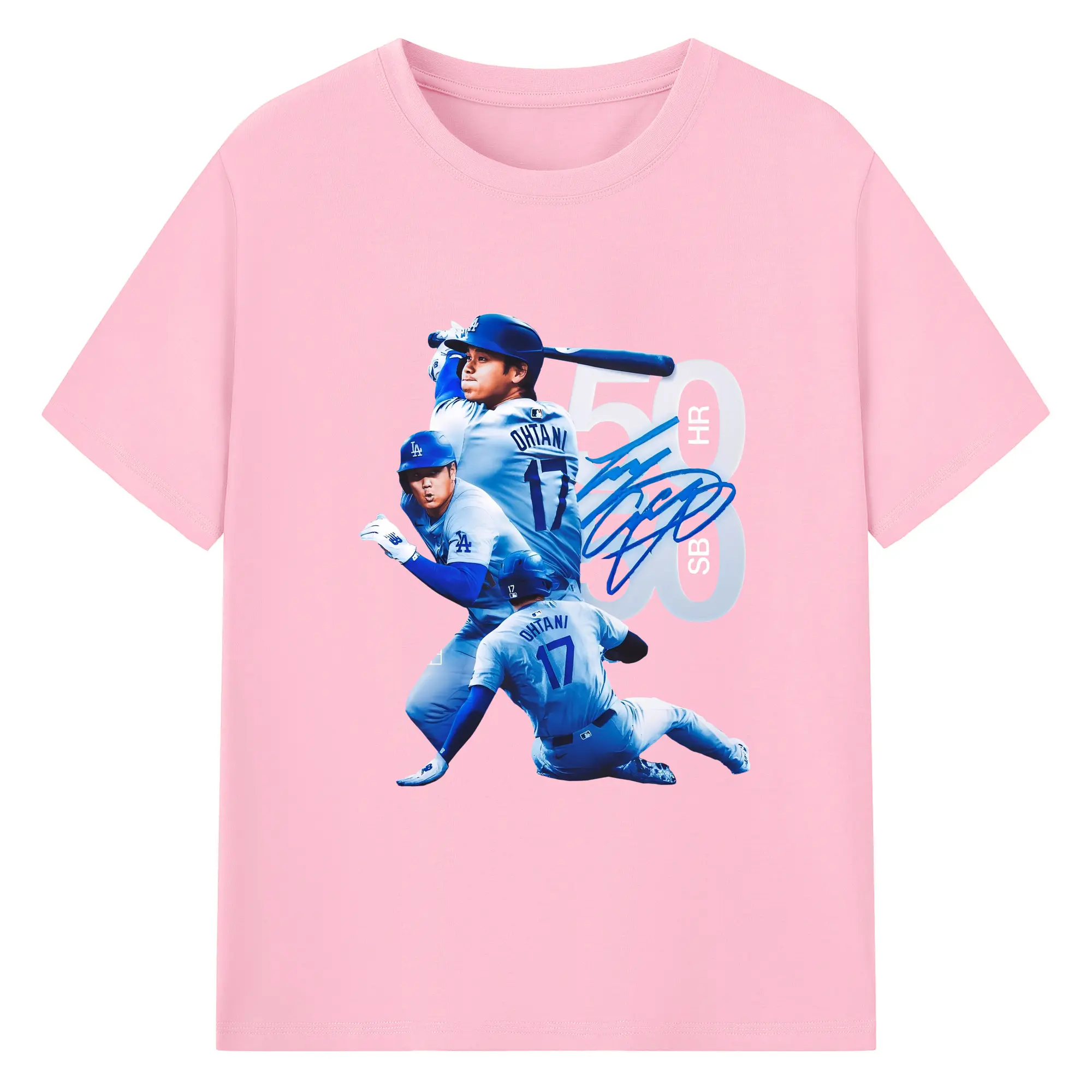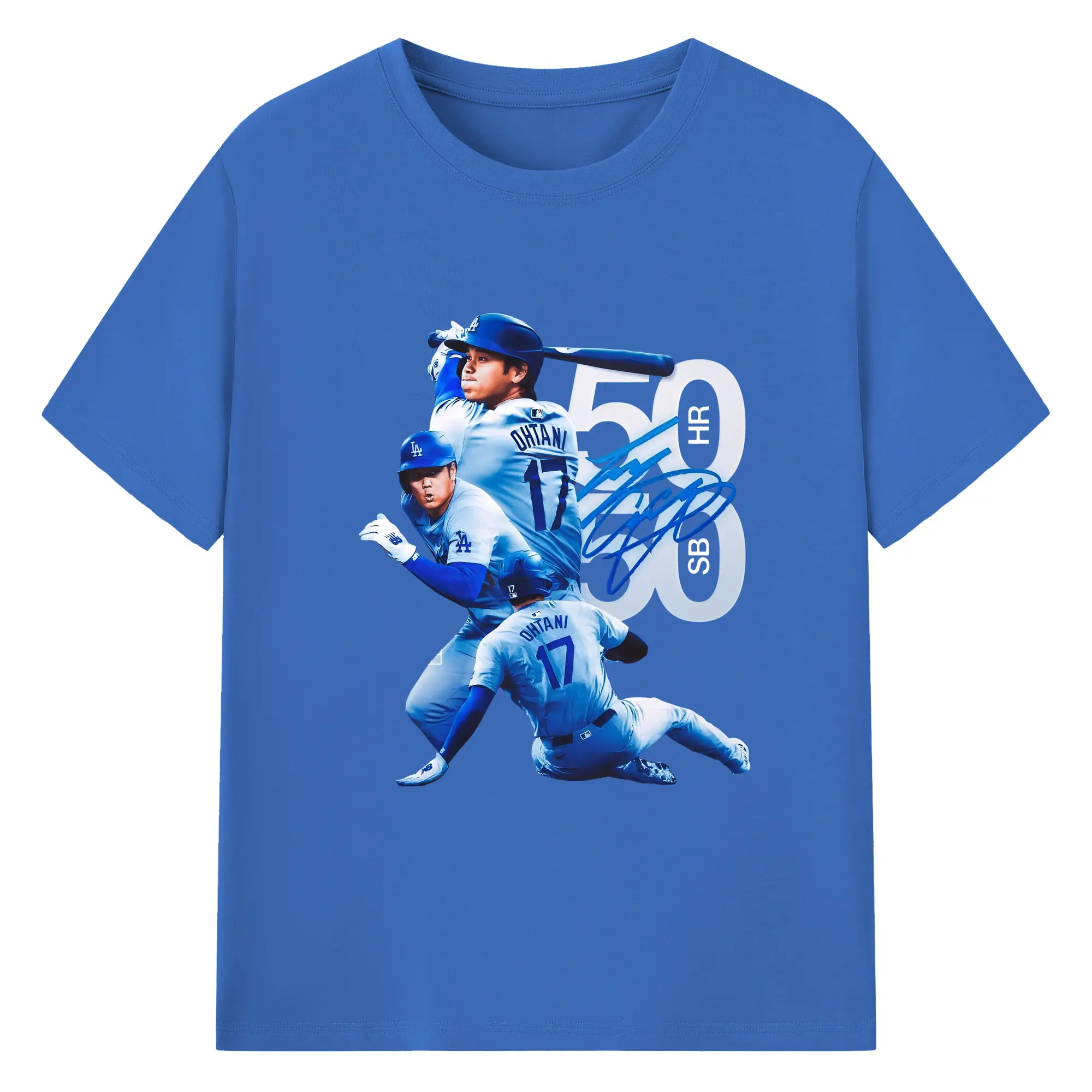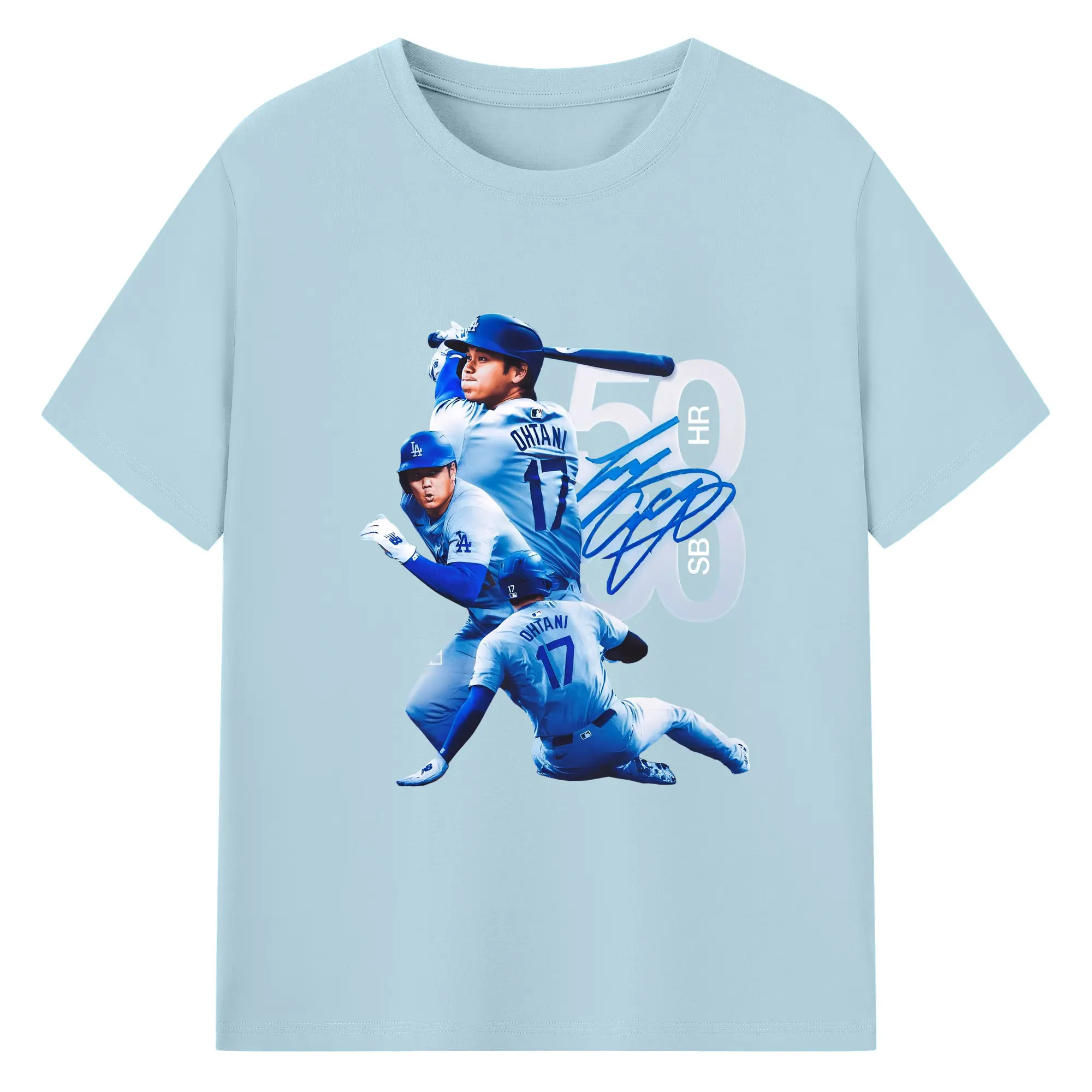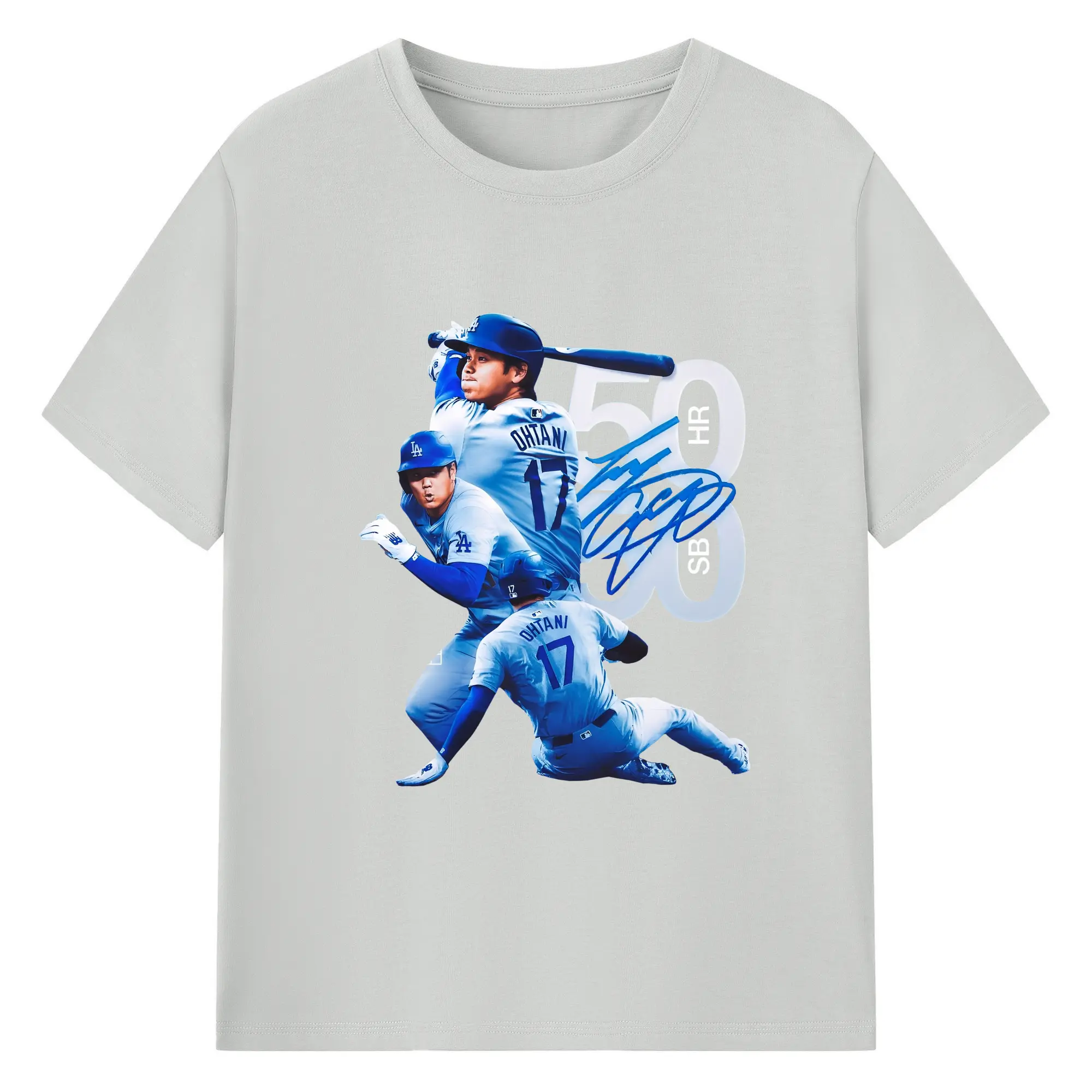 大谷翔平 MLB初の50/50達成!歴史的名場面⚡️ - 綿100% ヴィンテージ風 半袖Tシャツ ・ フロントプリント ・ 柔らか肌触り ・ 通気性 快適 ・ スポーツ カジュアル 外出用