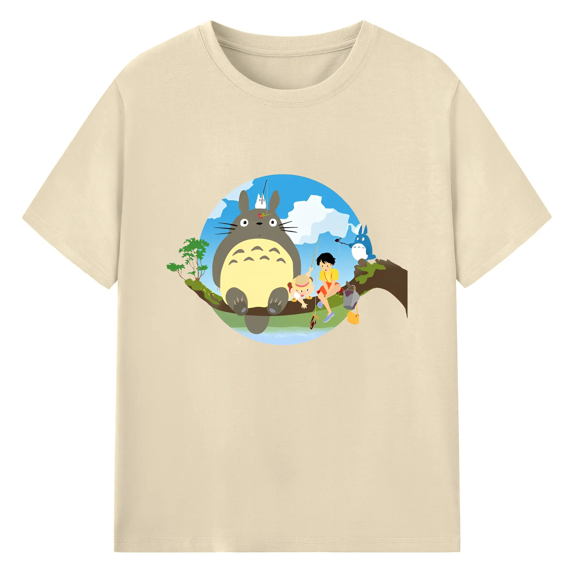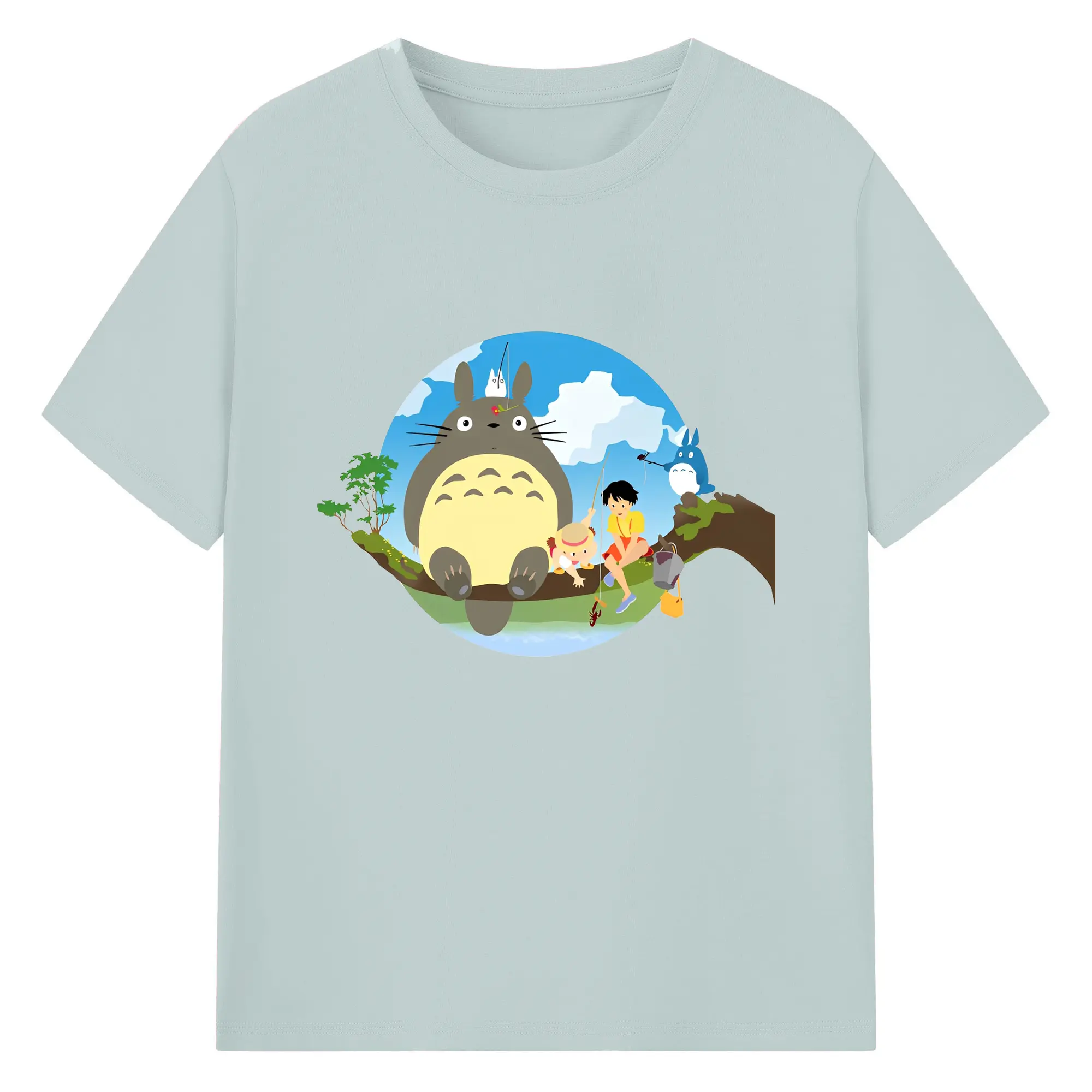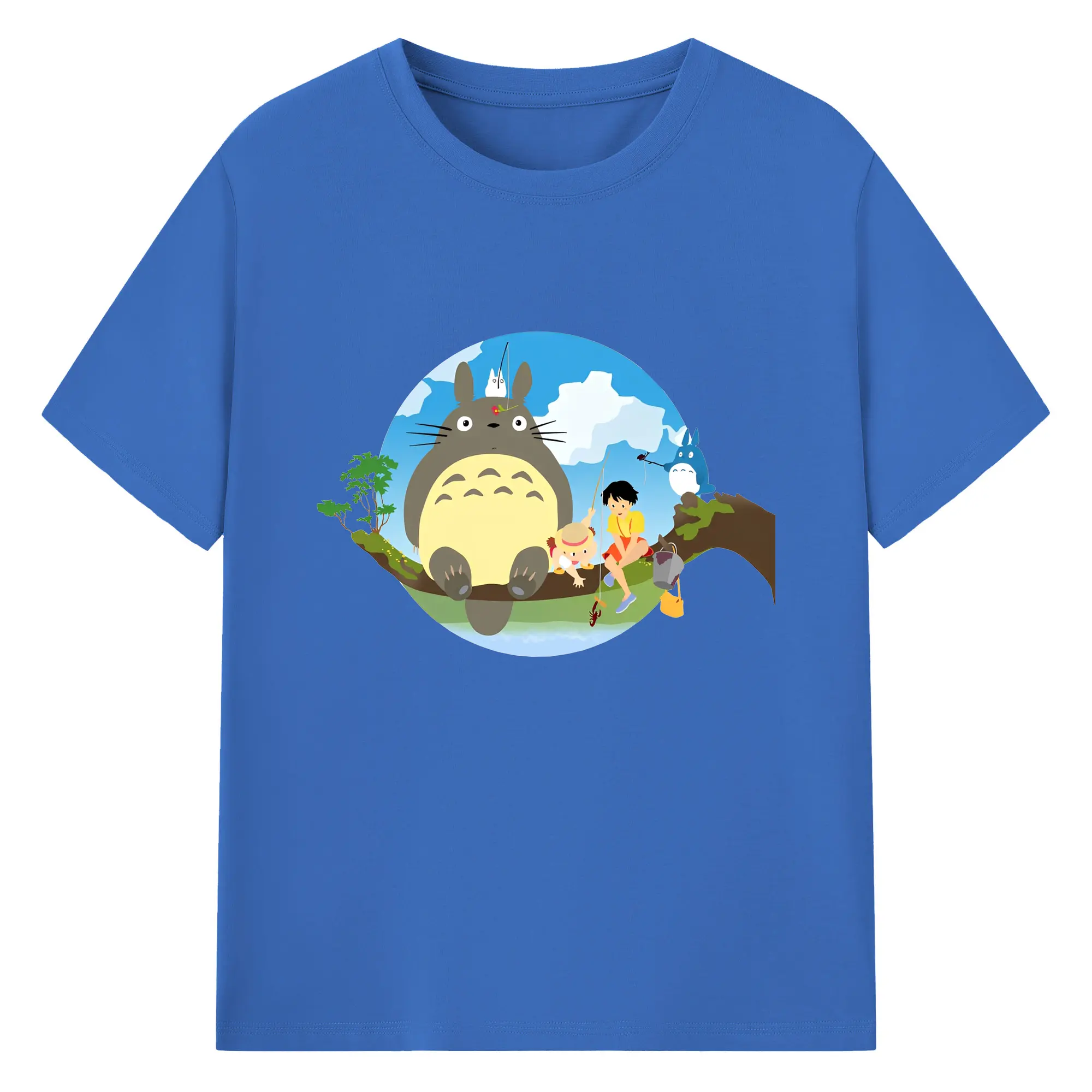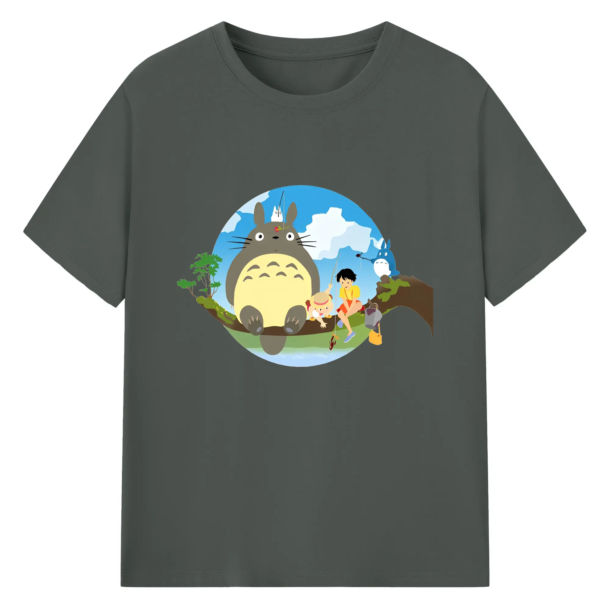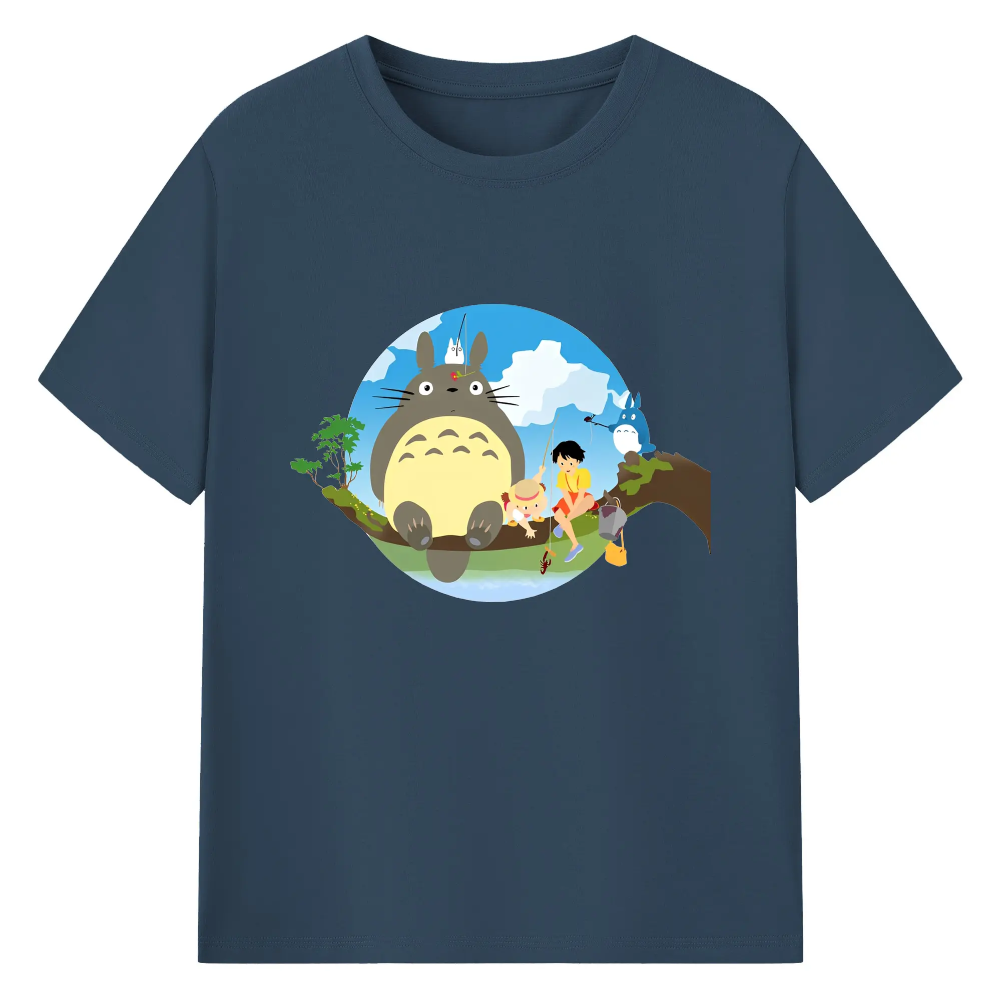 宮崎駿 アニメ トトロ キャラクター - 綿100% ヴィンテージ風 半袖Tシャツ ・ フロントプリント ・ 柔らか肌触り ・ 通気性 快適 ・ スポーツ カジュアル 外出用