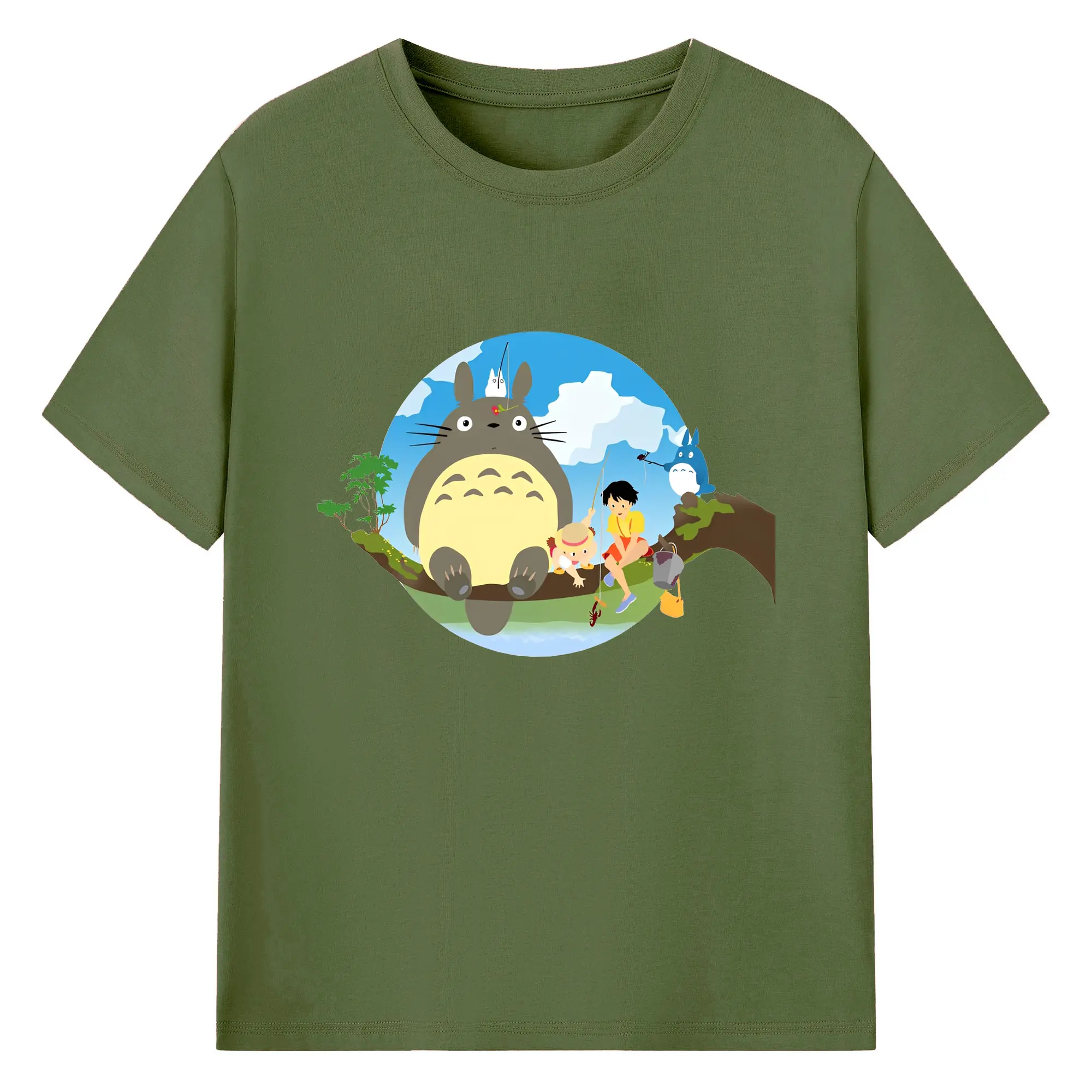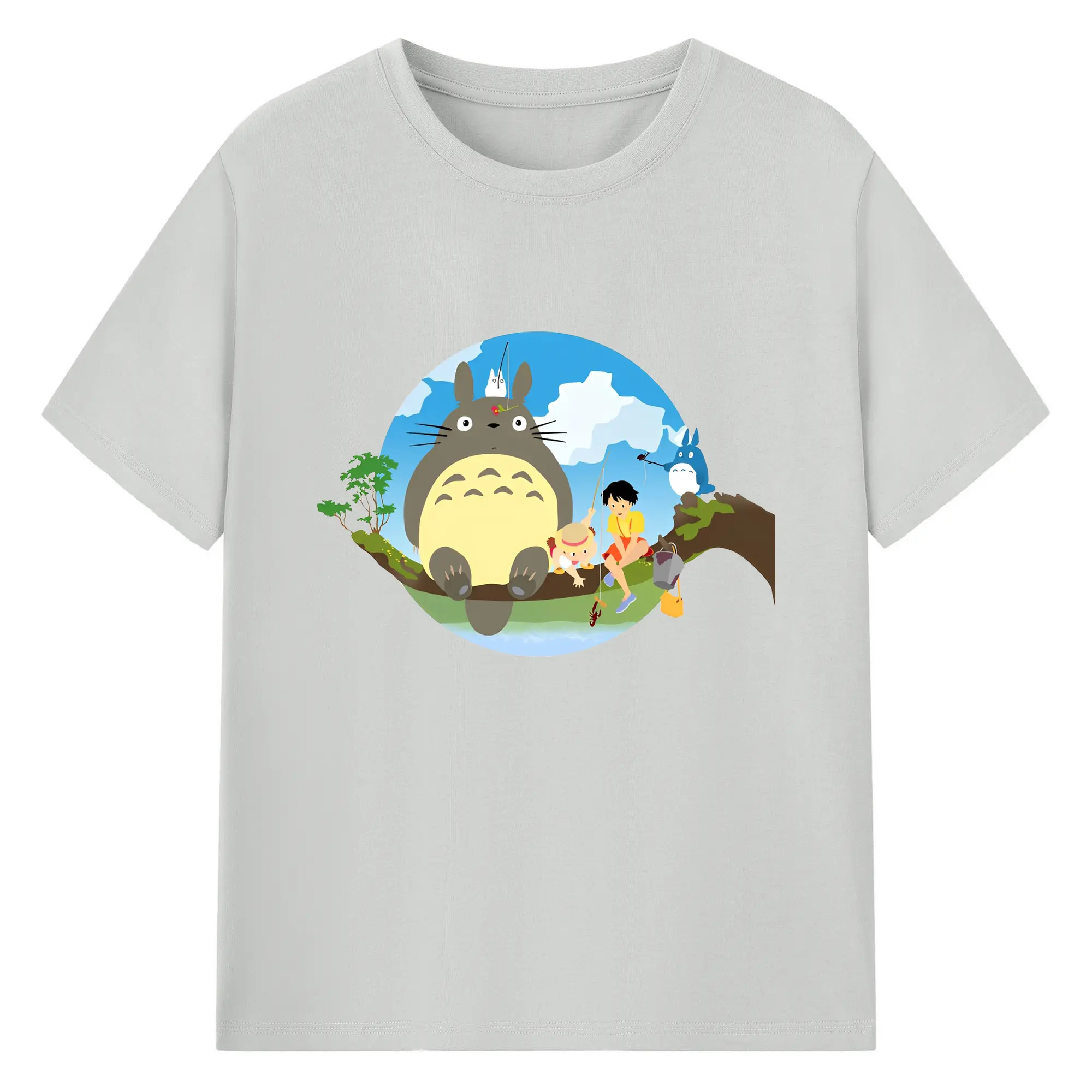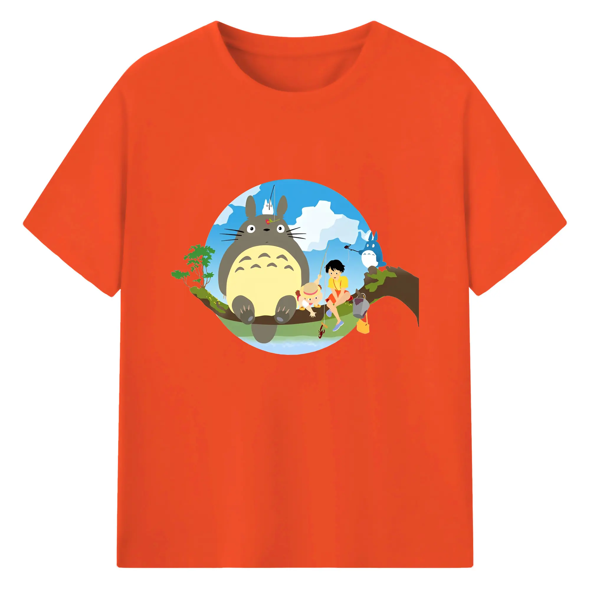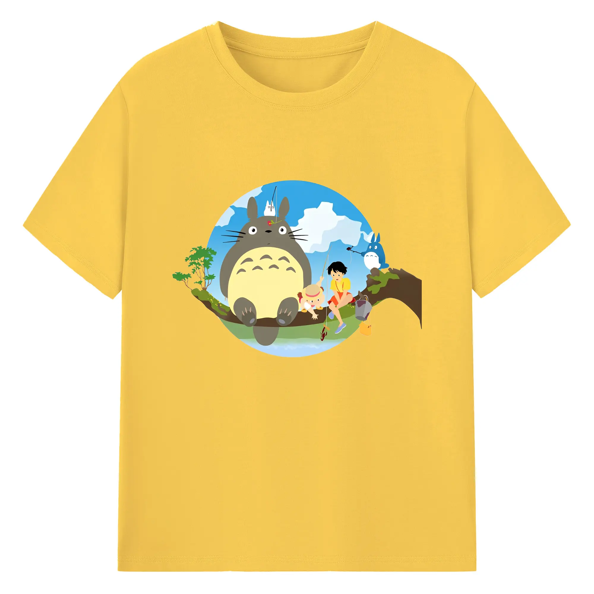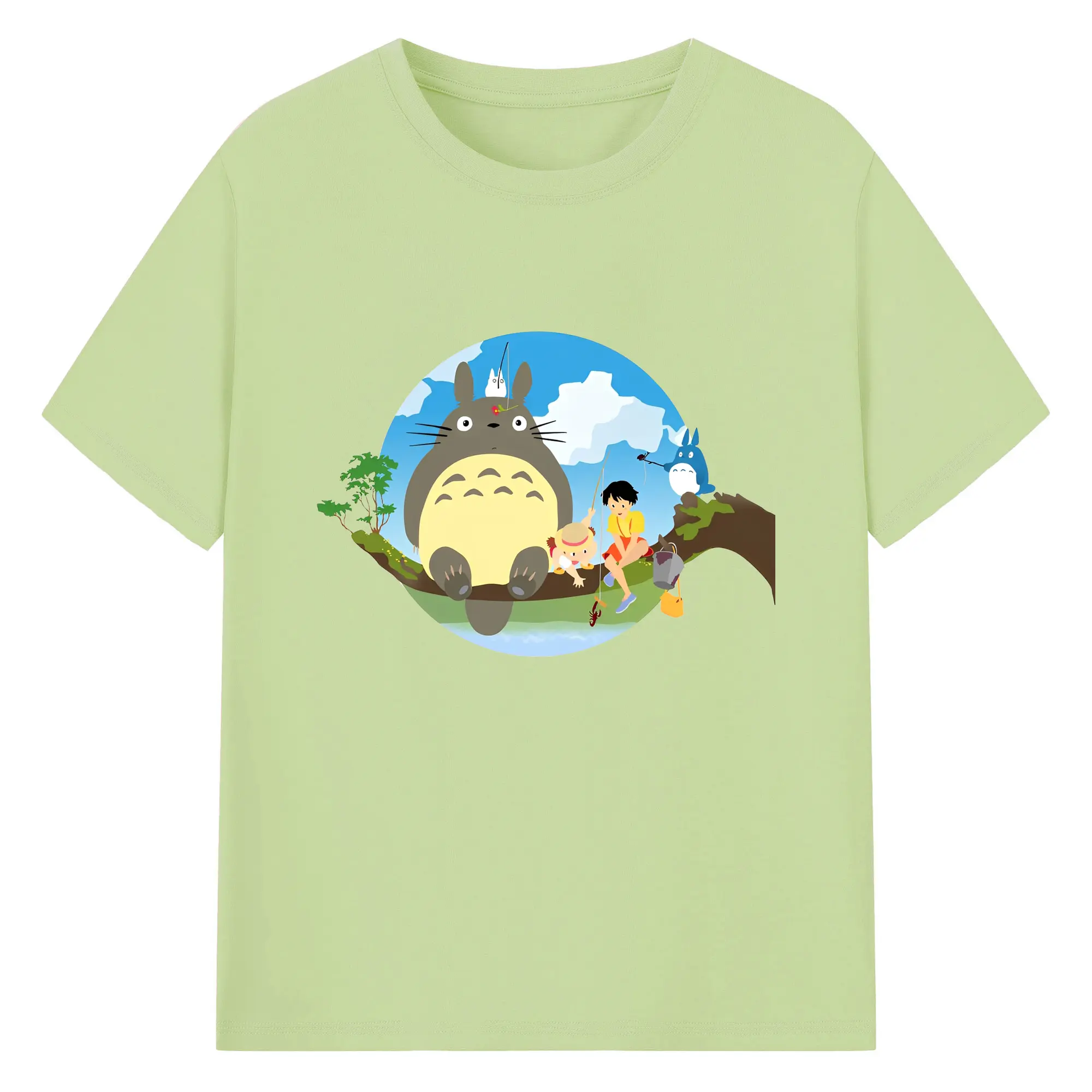 宮崎駿 アニメ トトロ キャラクター - 綿100% ヴィンテージ風 半袖Tシャツ ・ フロントプリント ・ 柔らか肌触り ・ 通気性 快適 ・ スポーツ カジュアル 外出用
