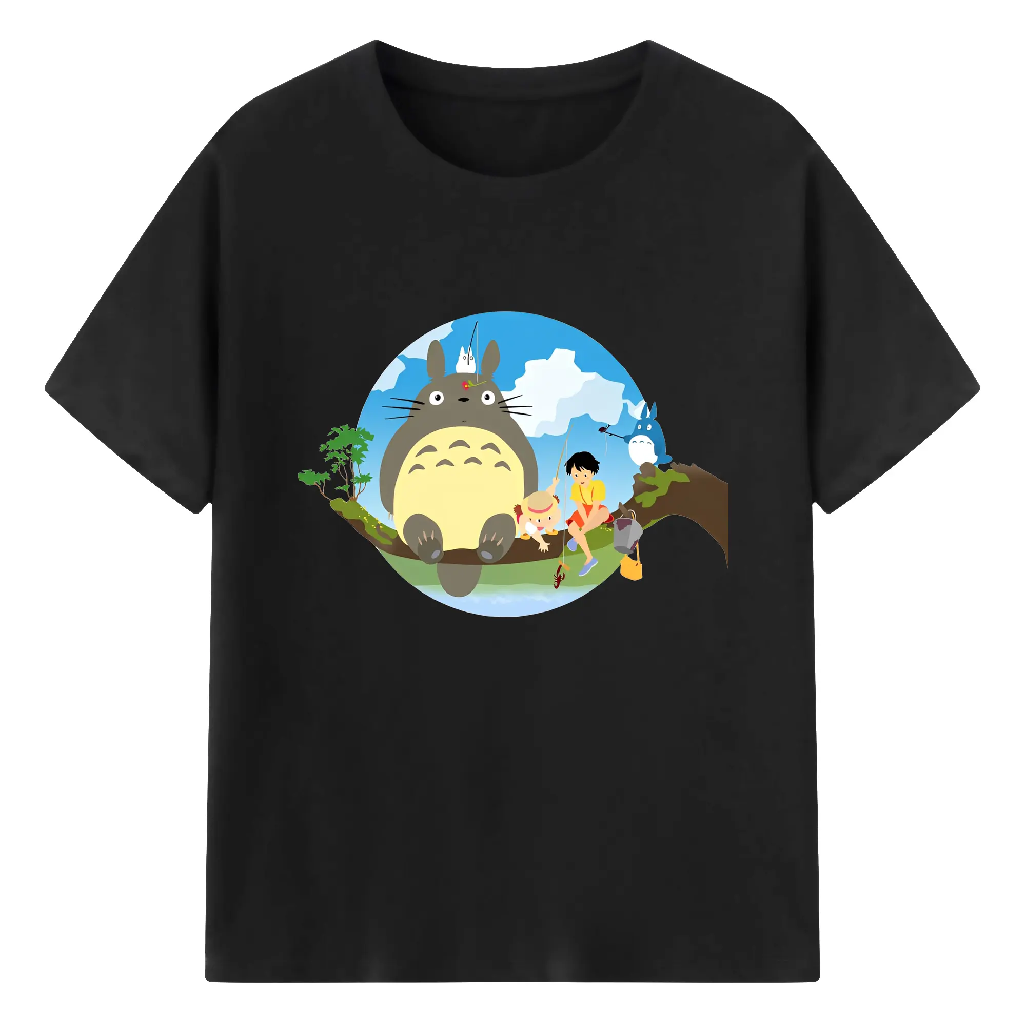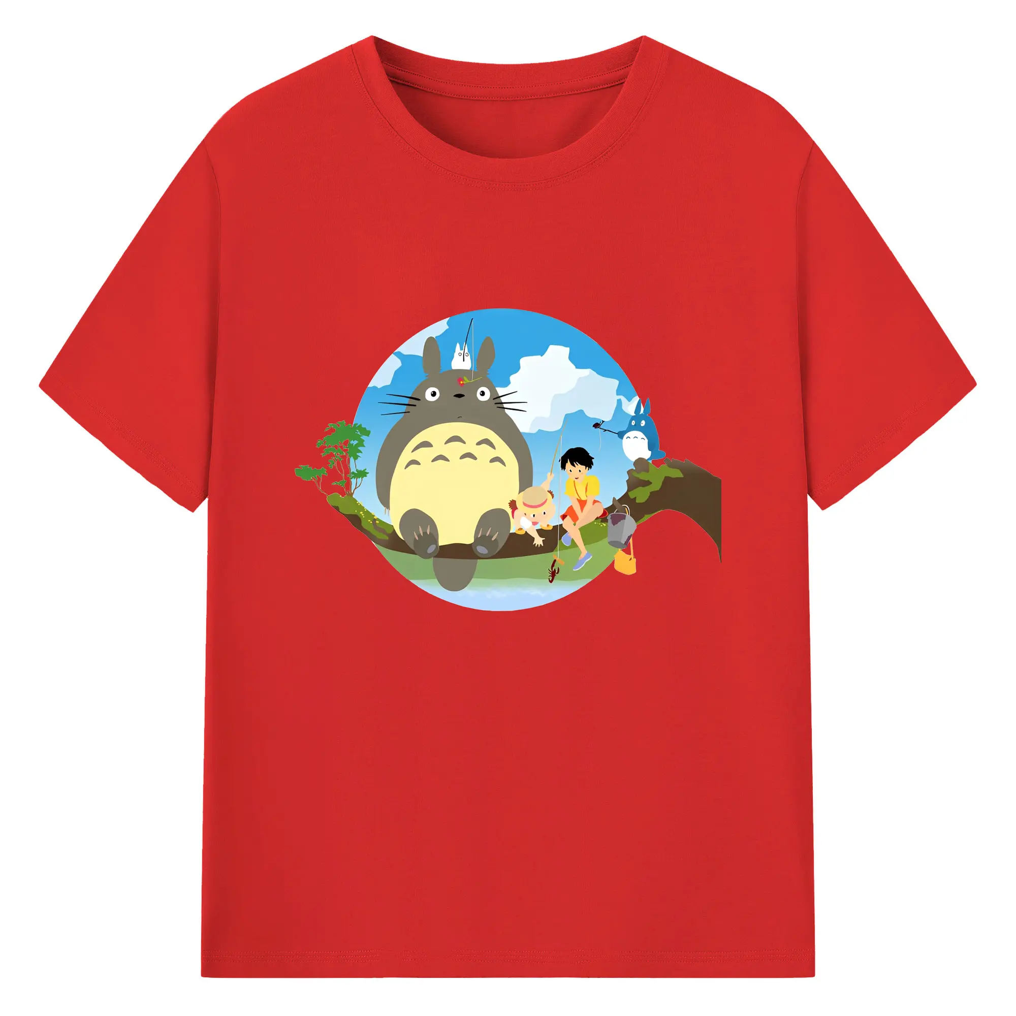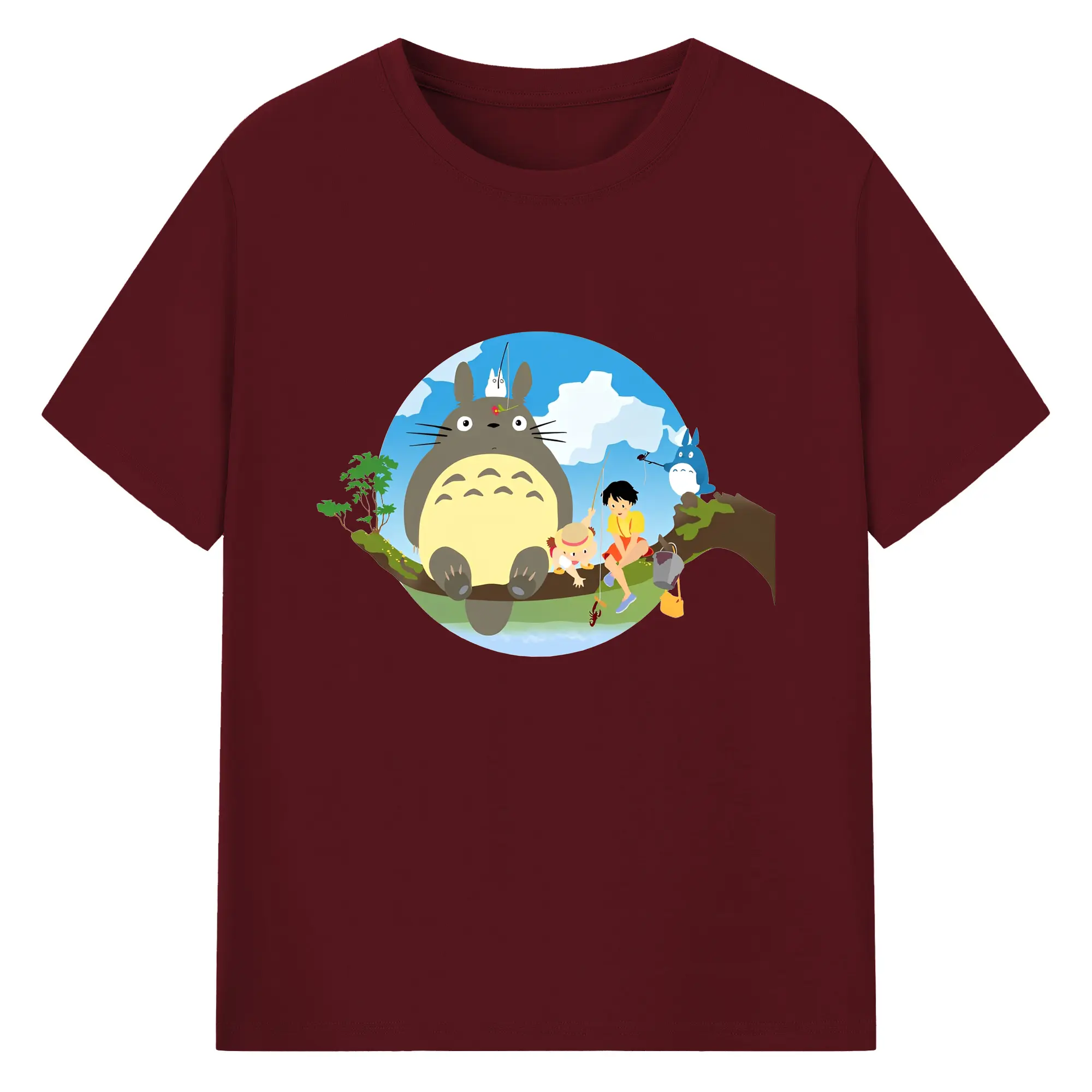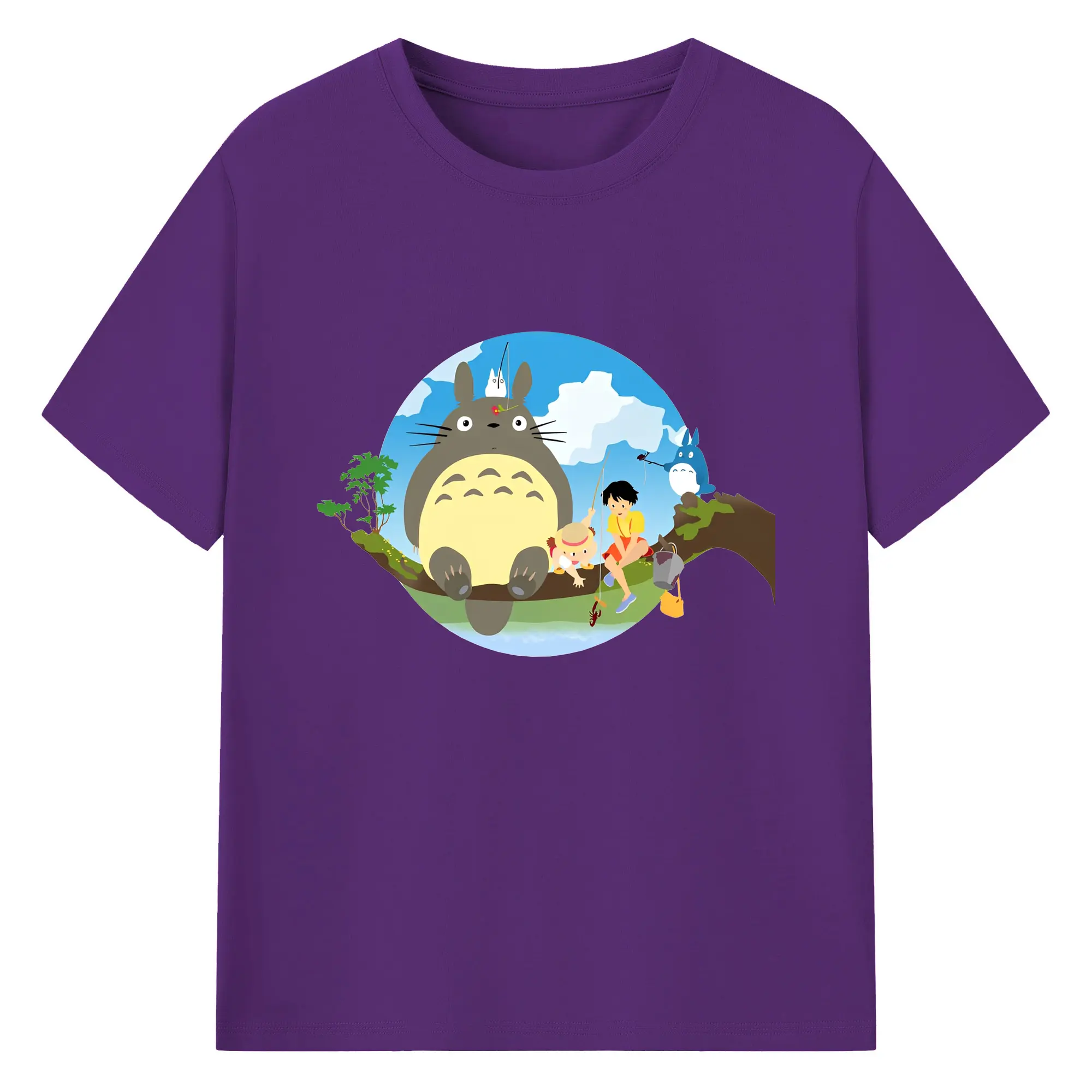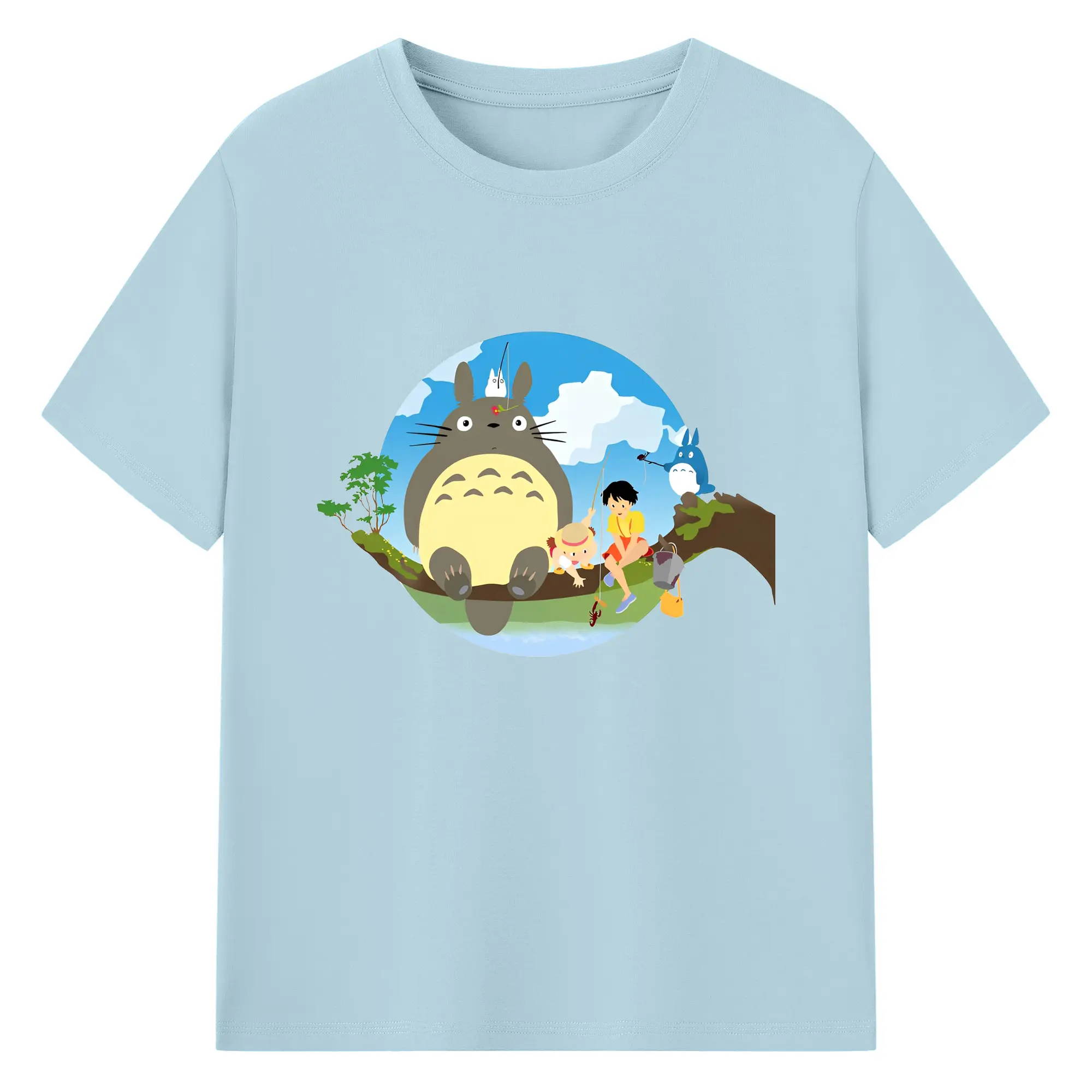 宮崎駿 アニメ トトロ キャラクター - 綿100% ヴィンテージ風 半袖Tシャツ ・ フロントプリント ・ 柔らか肌触り ・ 通気性 快適 ・ スポーツ カジュアル 外出用