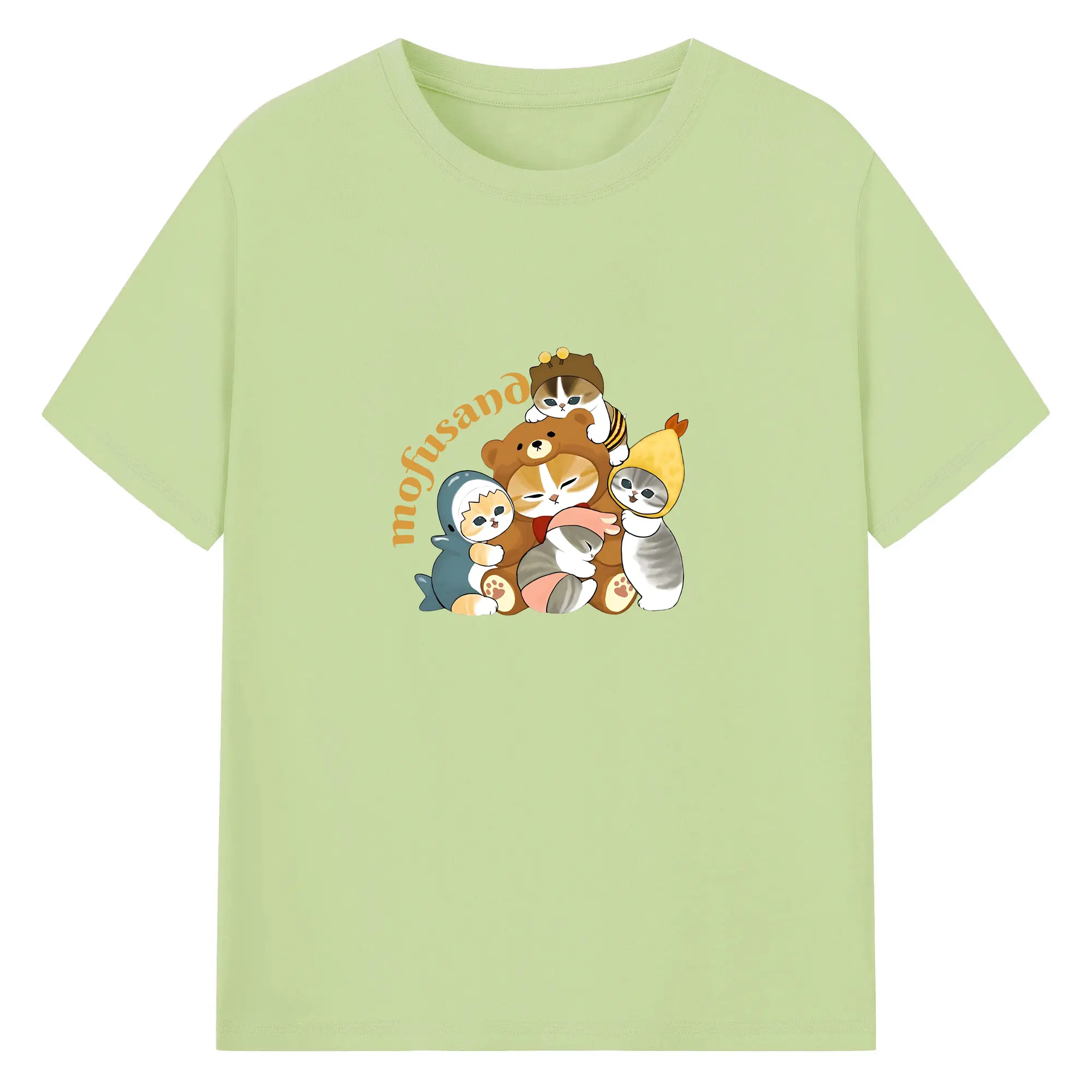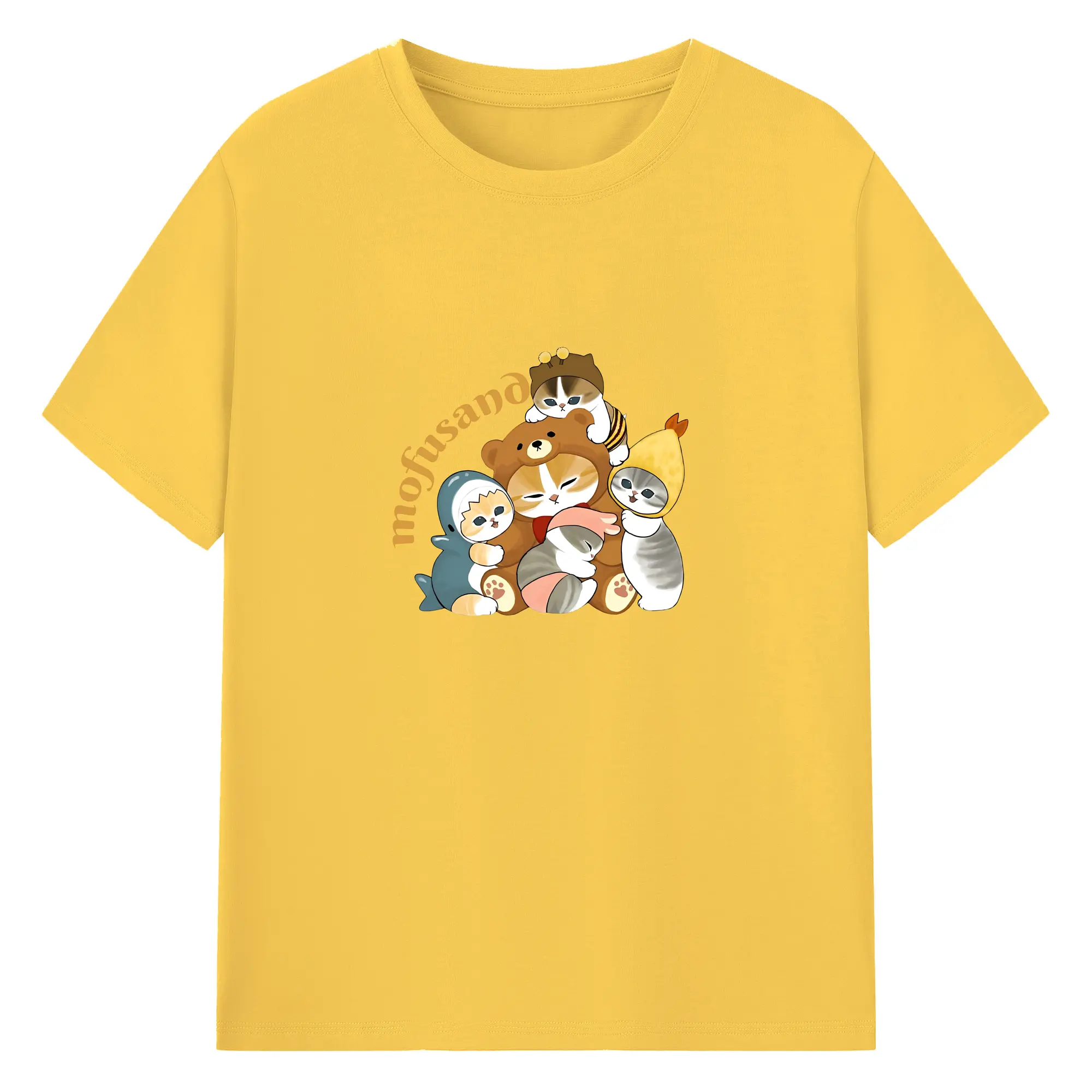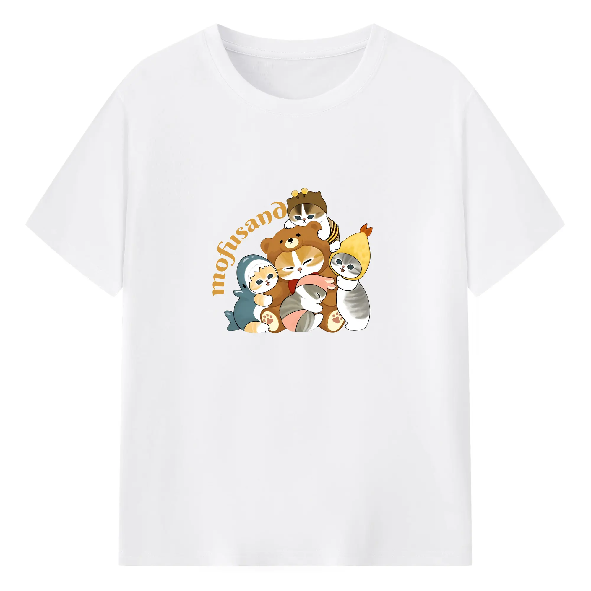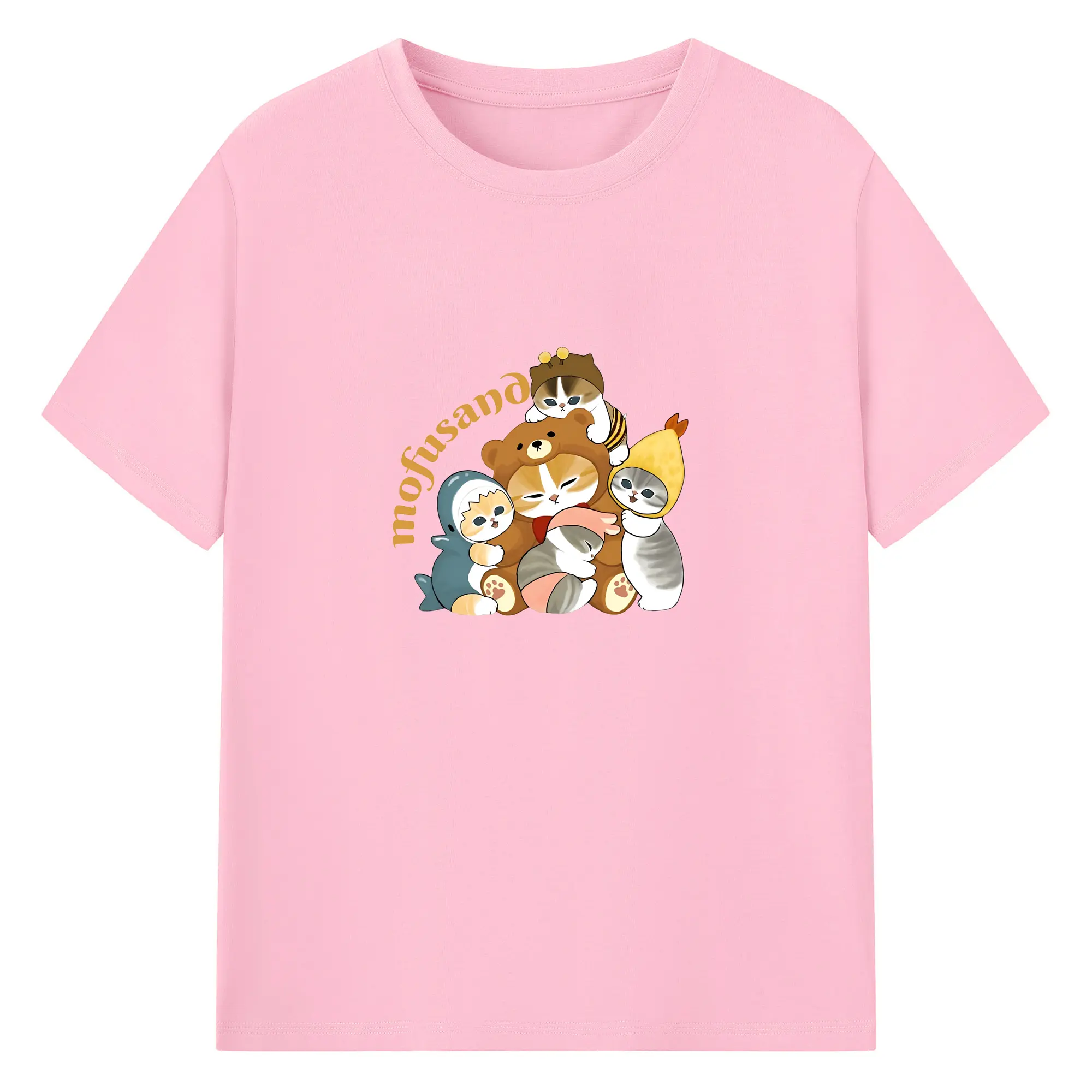 Mofusand ネコ×ドーナツ キャラクター 可愛いデザイン - 綿100% 半袖Tシャツ ・ フロントプリント ・ 快適 通気性 ・ 日常使い 散歩 スポーツ用