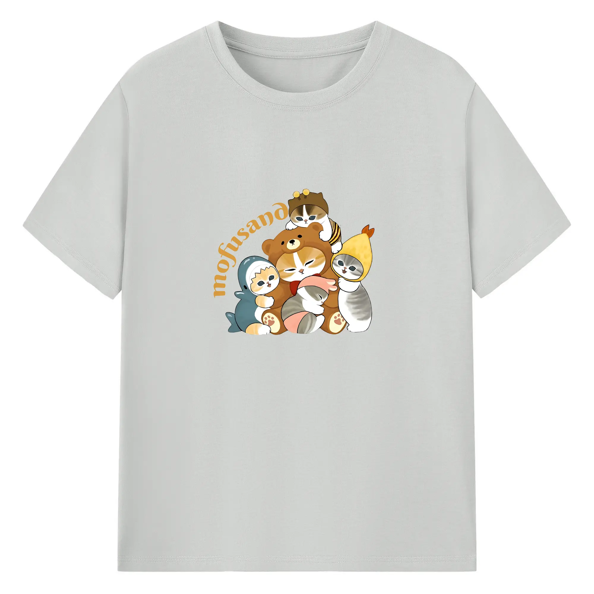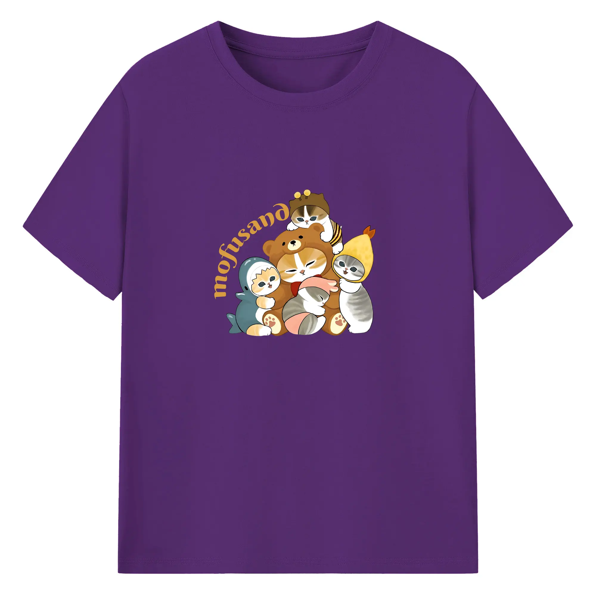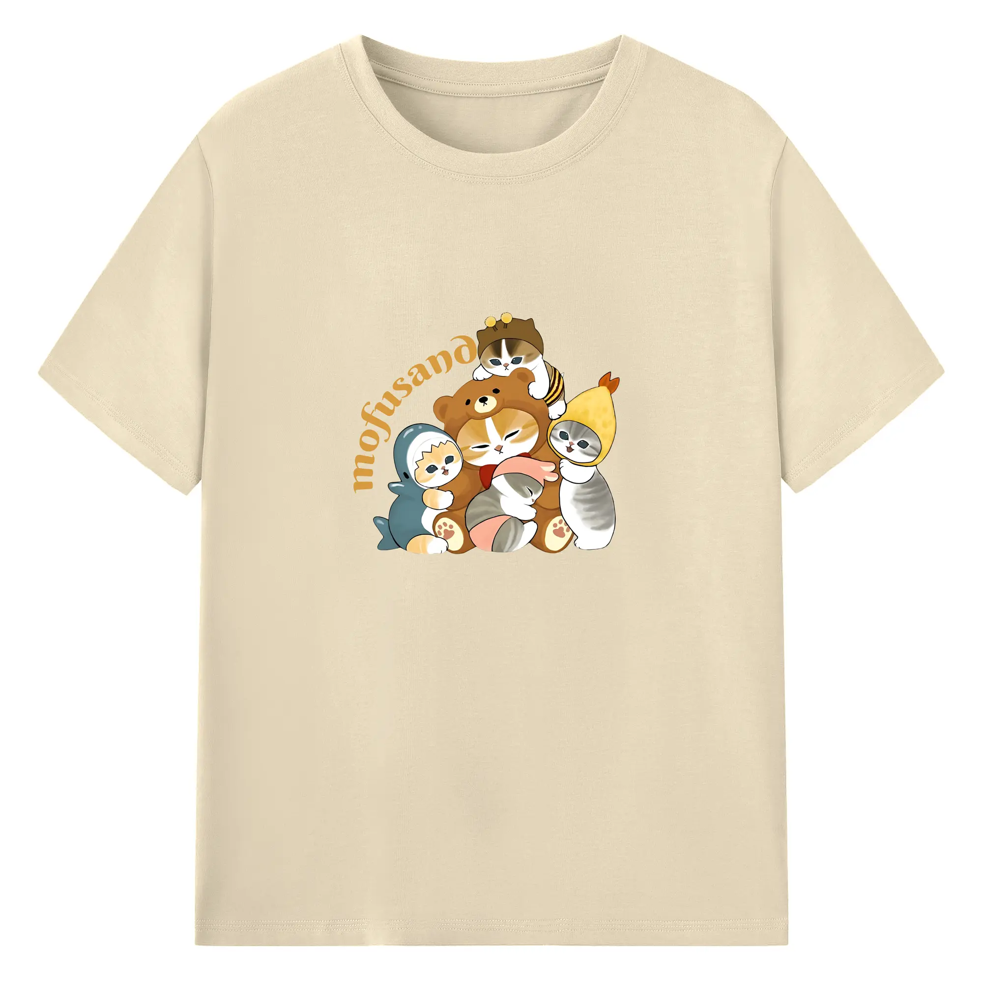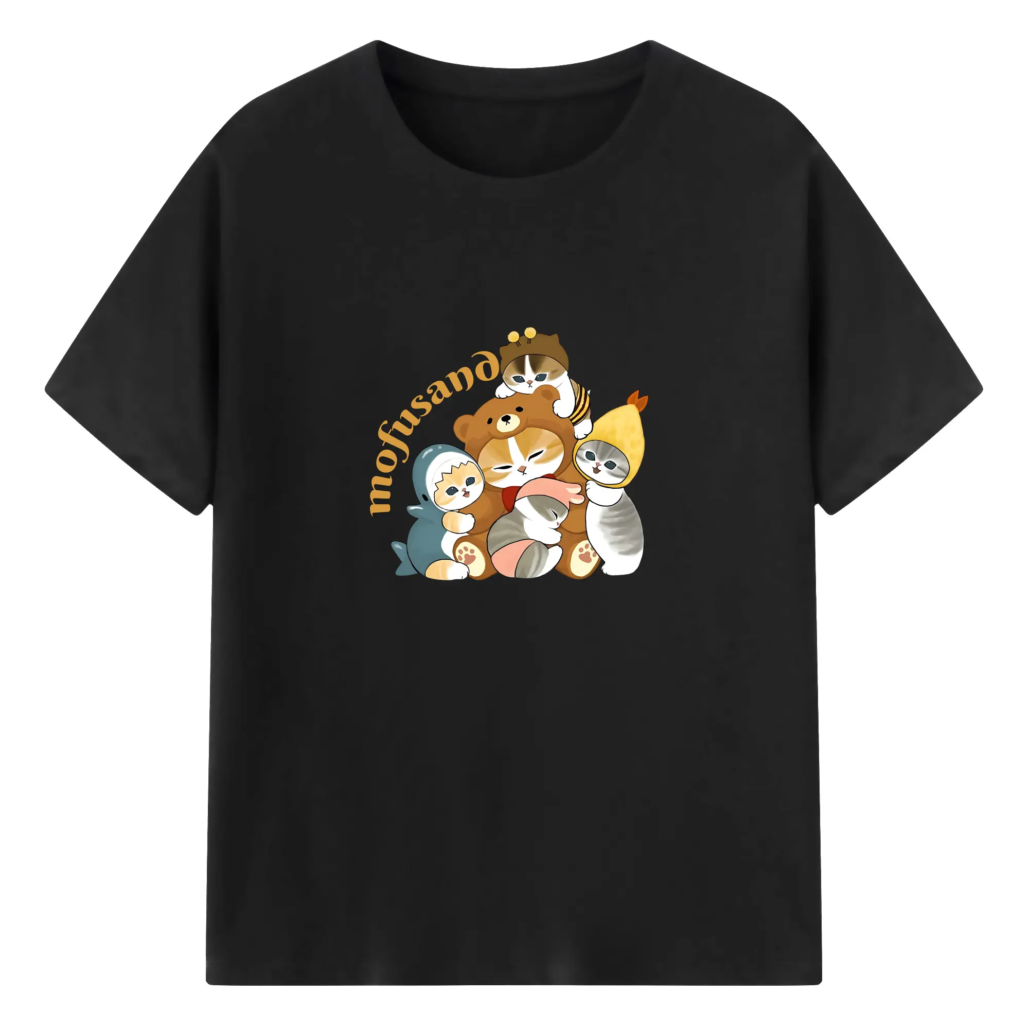 Mofusand ネコ×ドーナツ キャラクター 可愛いデザイン - 綿100% 半袖Tシャツ ・ フロントプリント ・ 快適 通気性 ・ 日常使い 散歩 スポーツ用