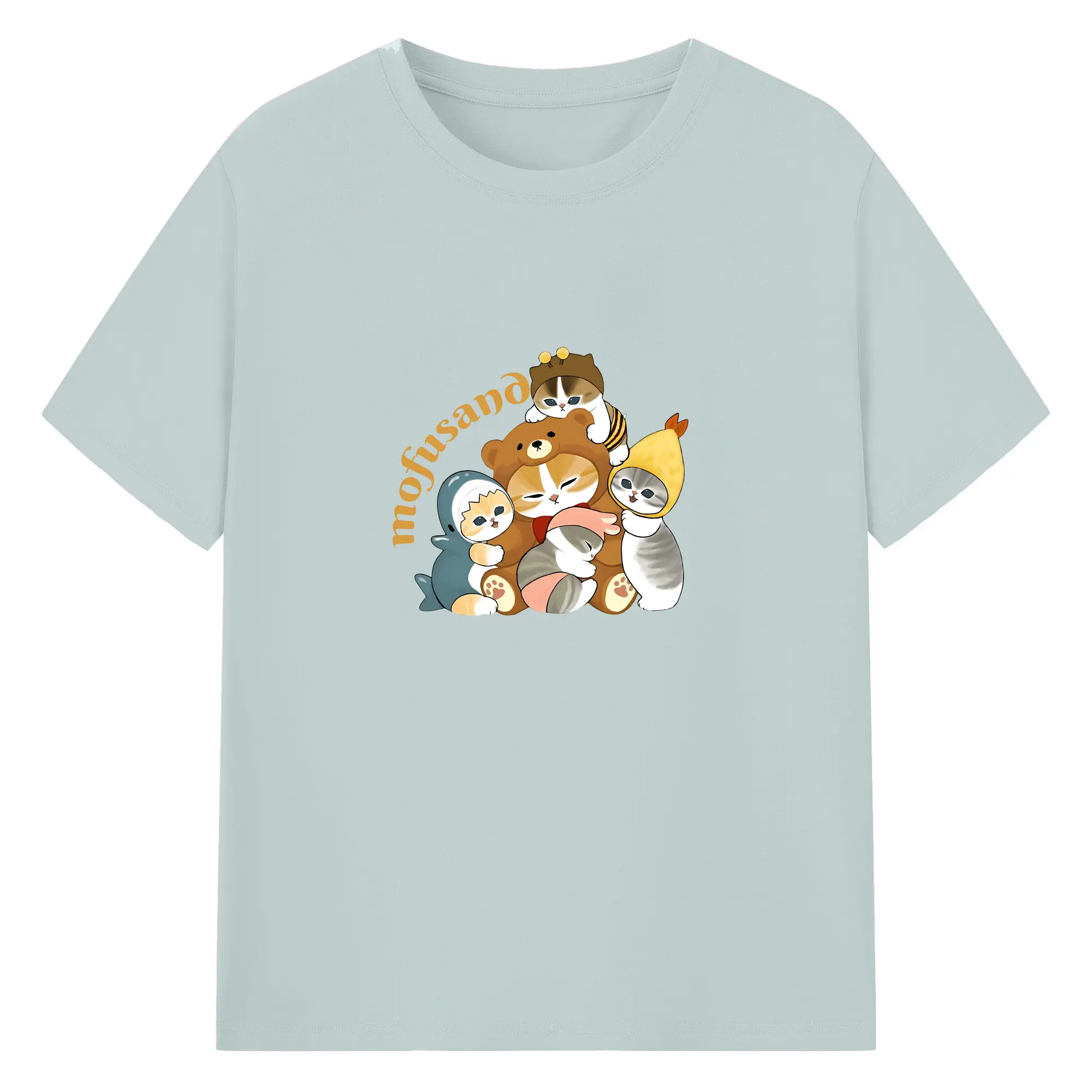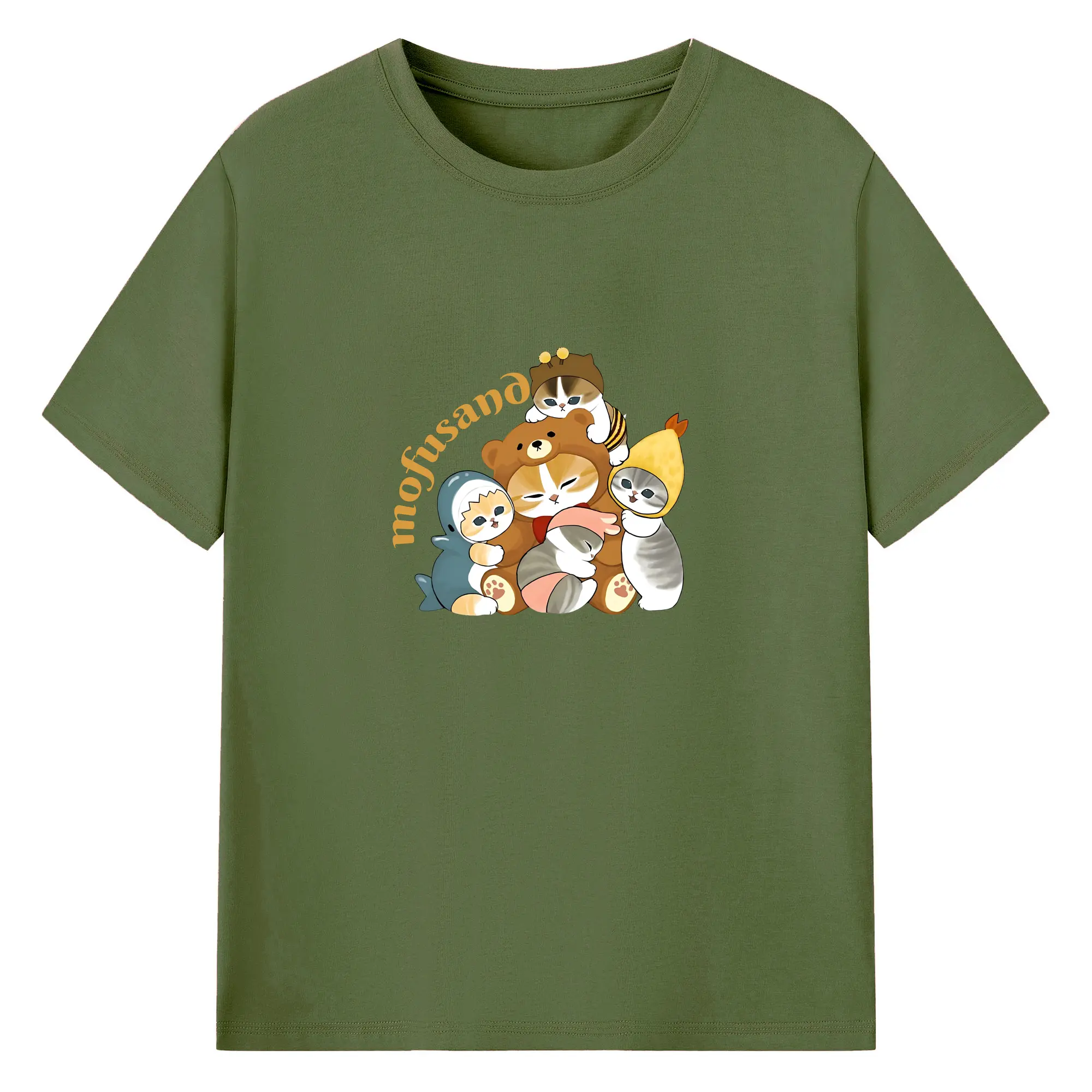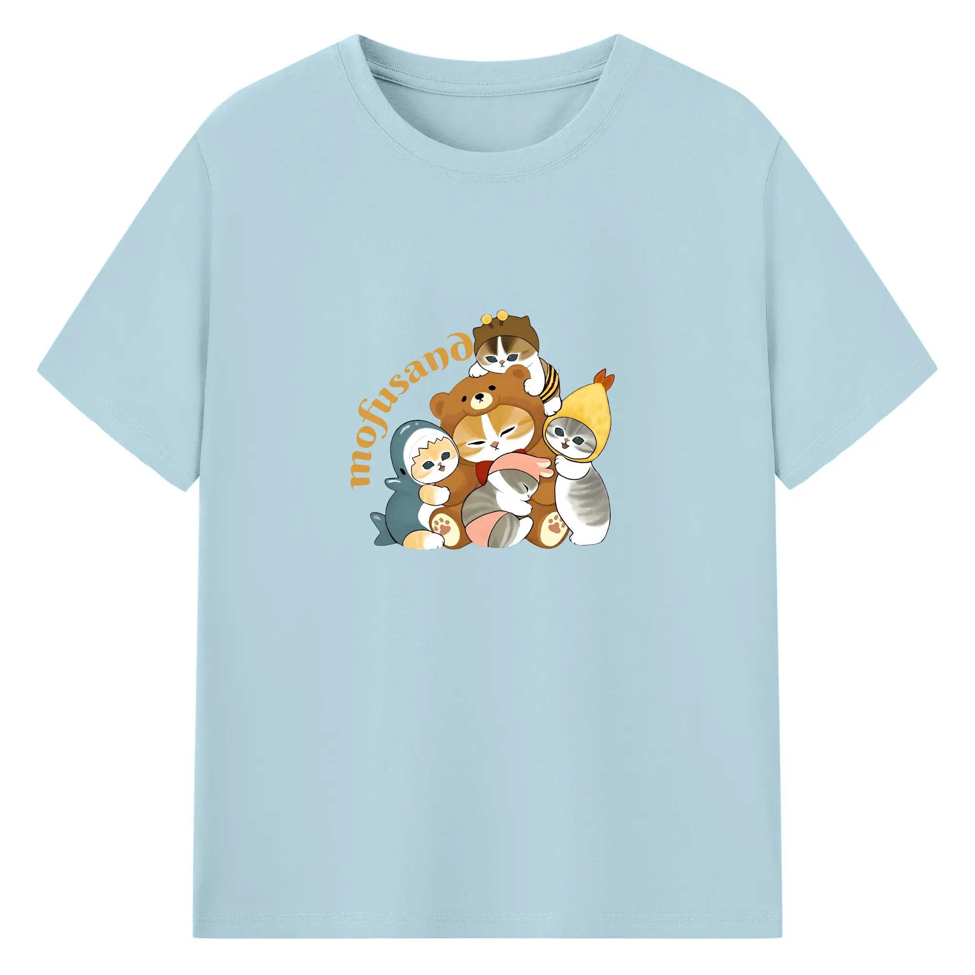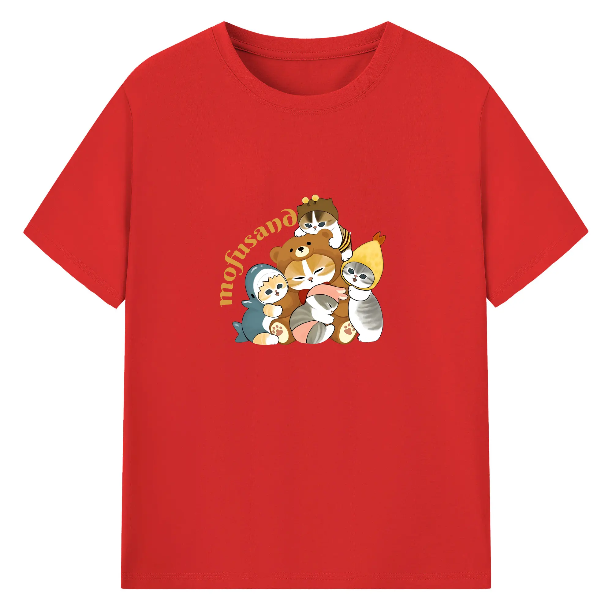 Mofusand ネコ×ドーナツ キャラクター 可愛いデザイン - 綿100% 半袖Tシャツ ・ フロントプリント ・ 快適 通気性 ・ 日常使い 散歩 スポーツ用