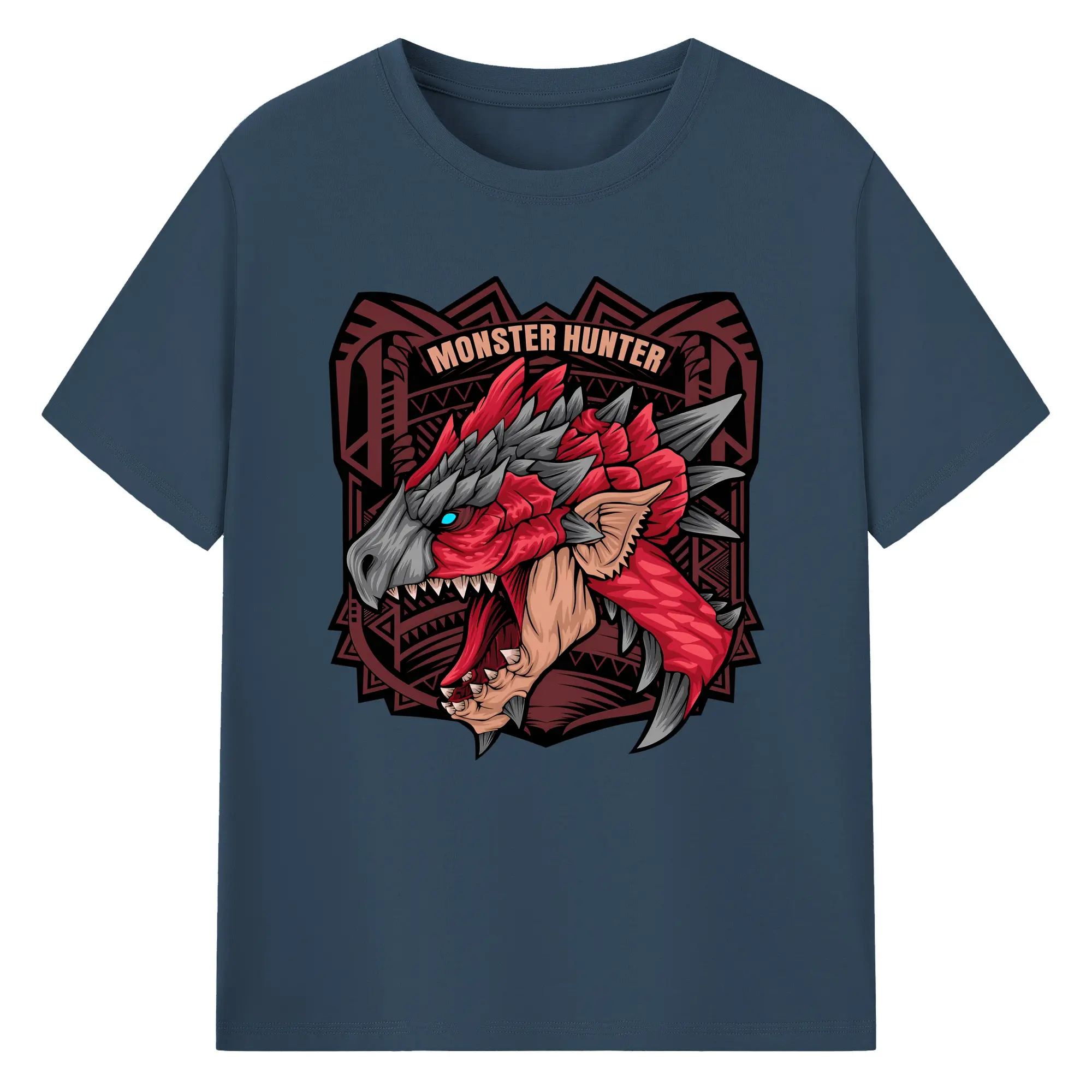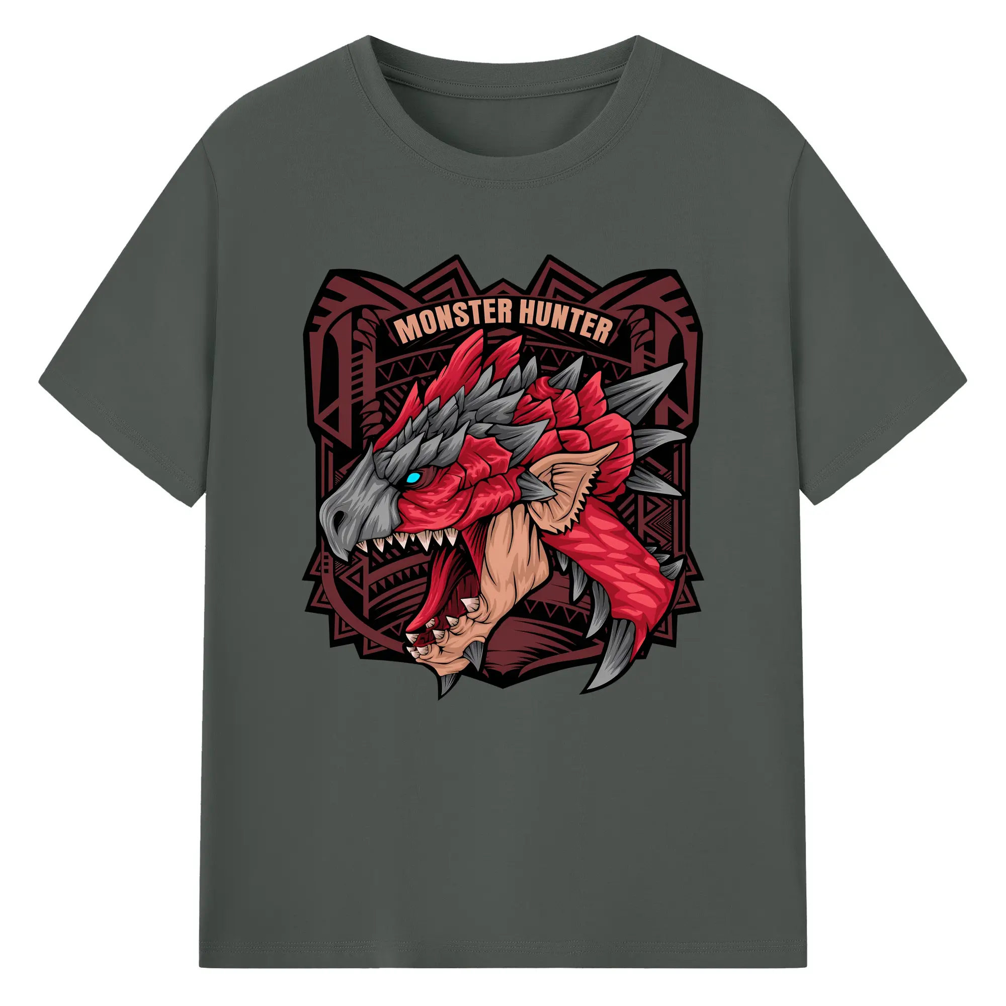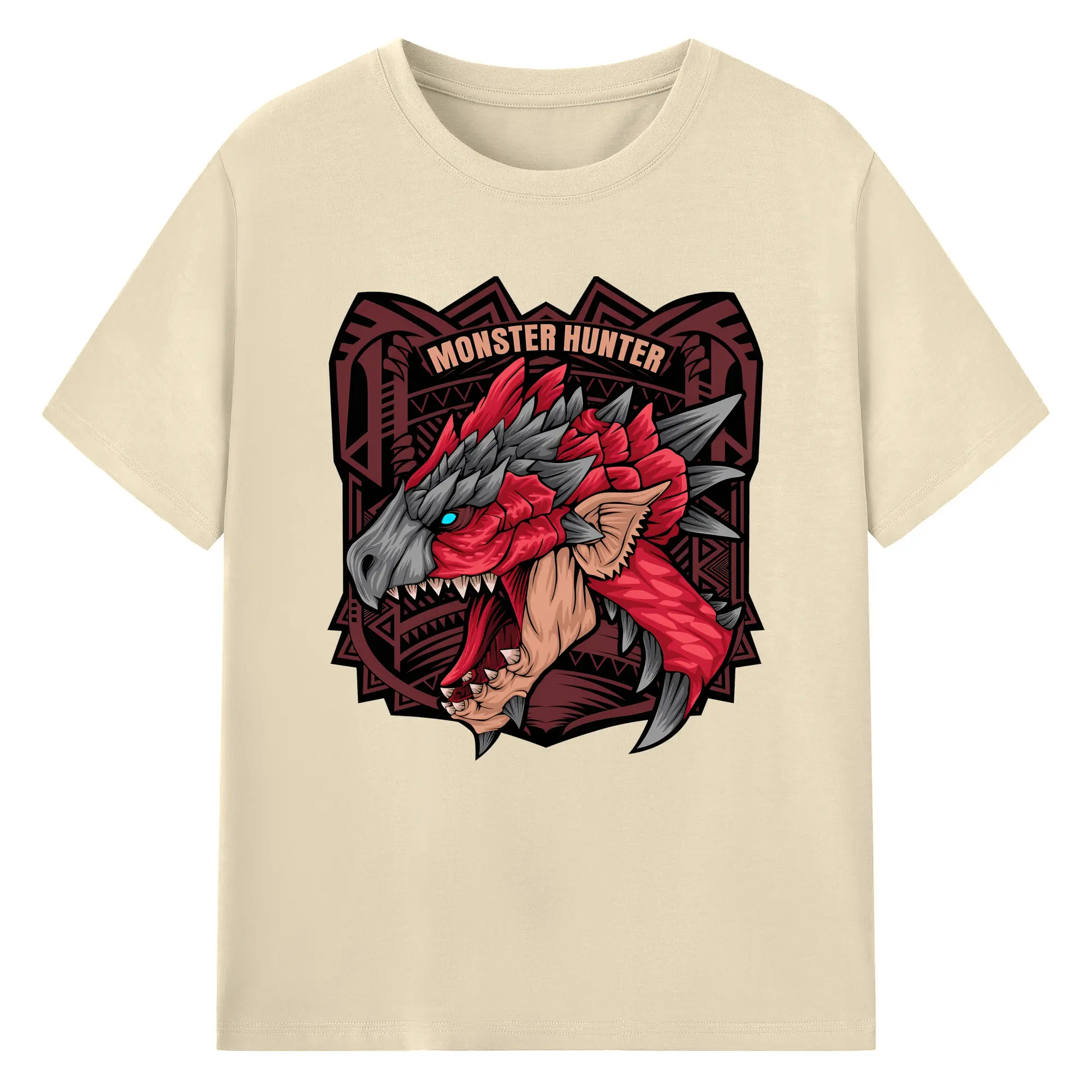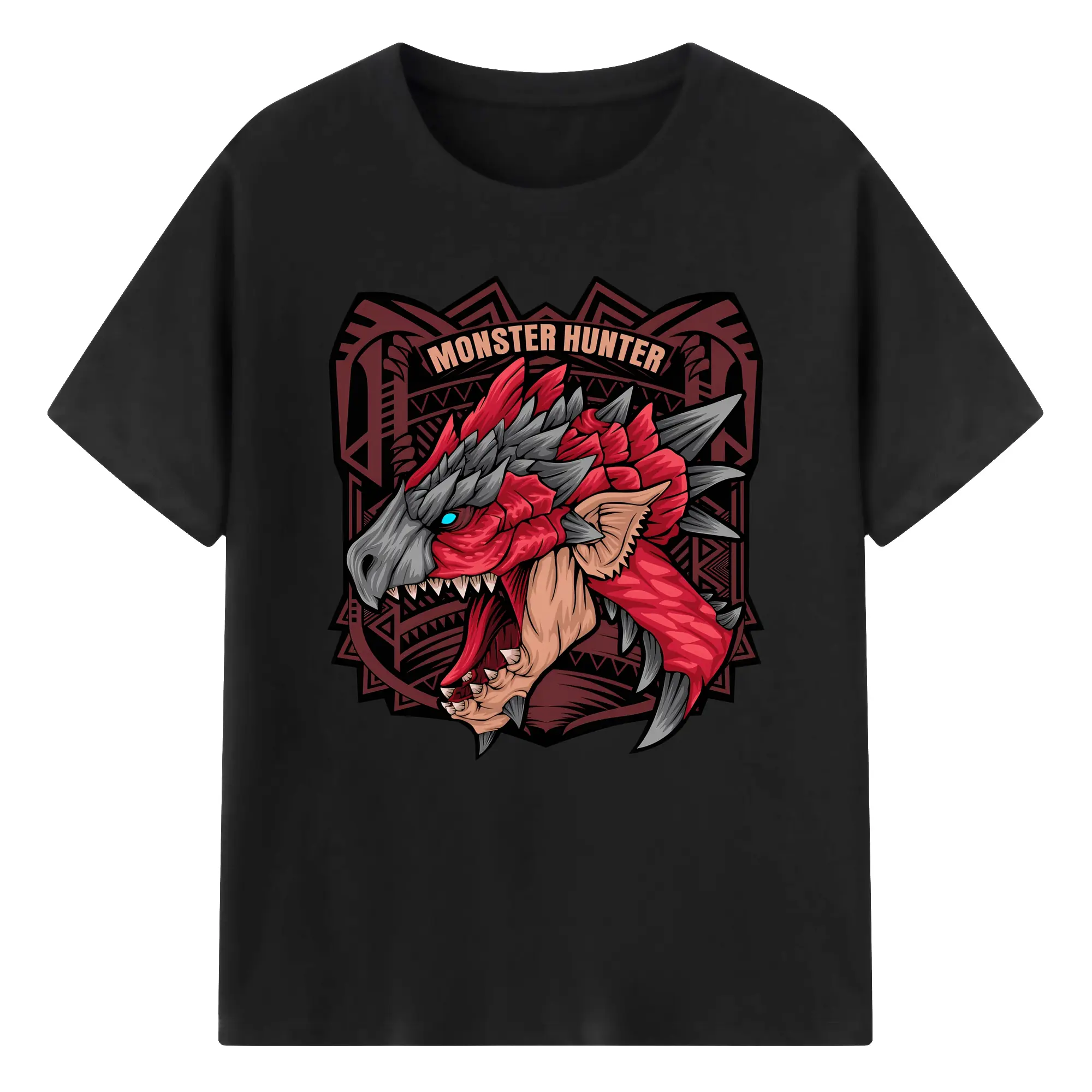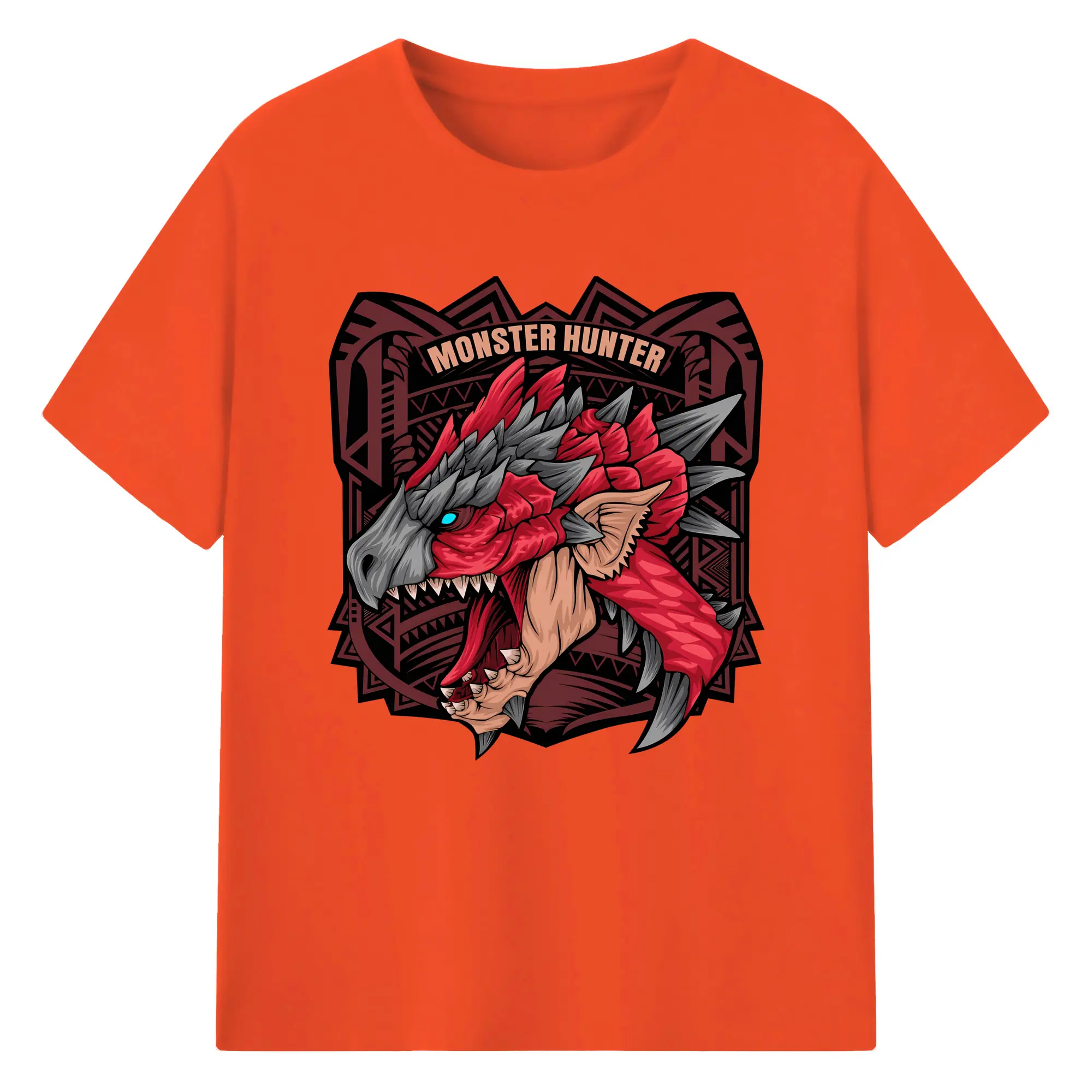 怒涛の火炎ブレス!リオレウス ド迫力デザイン - 綿100% ヴィンテージ風 半袖Tシャツ ・ フロントプリント ・ 柔らか肌触り ・ 通気性 快適 ・ スポーツ カジュアル 外出用