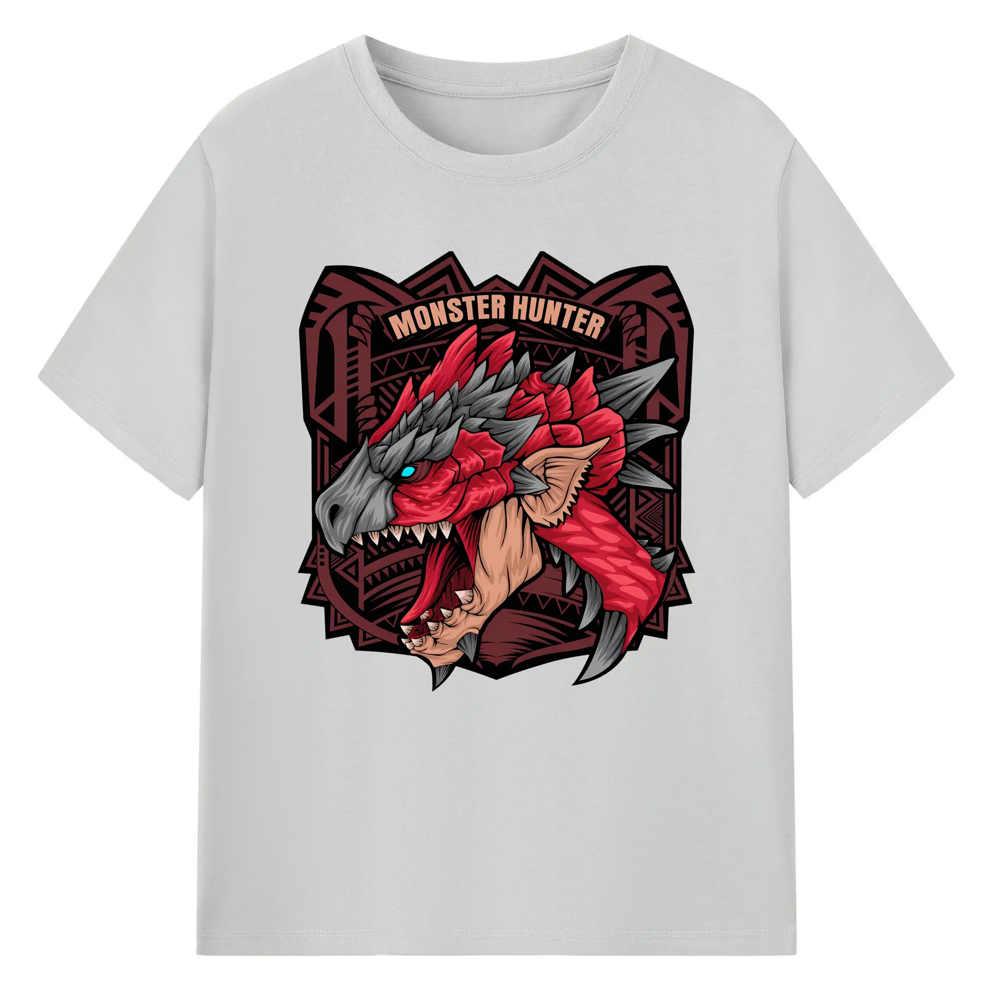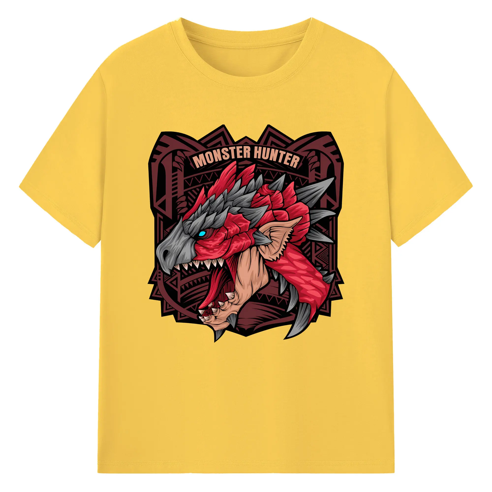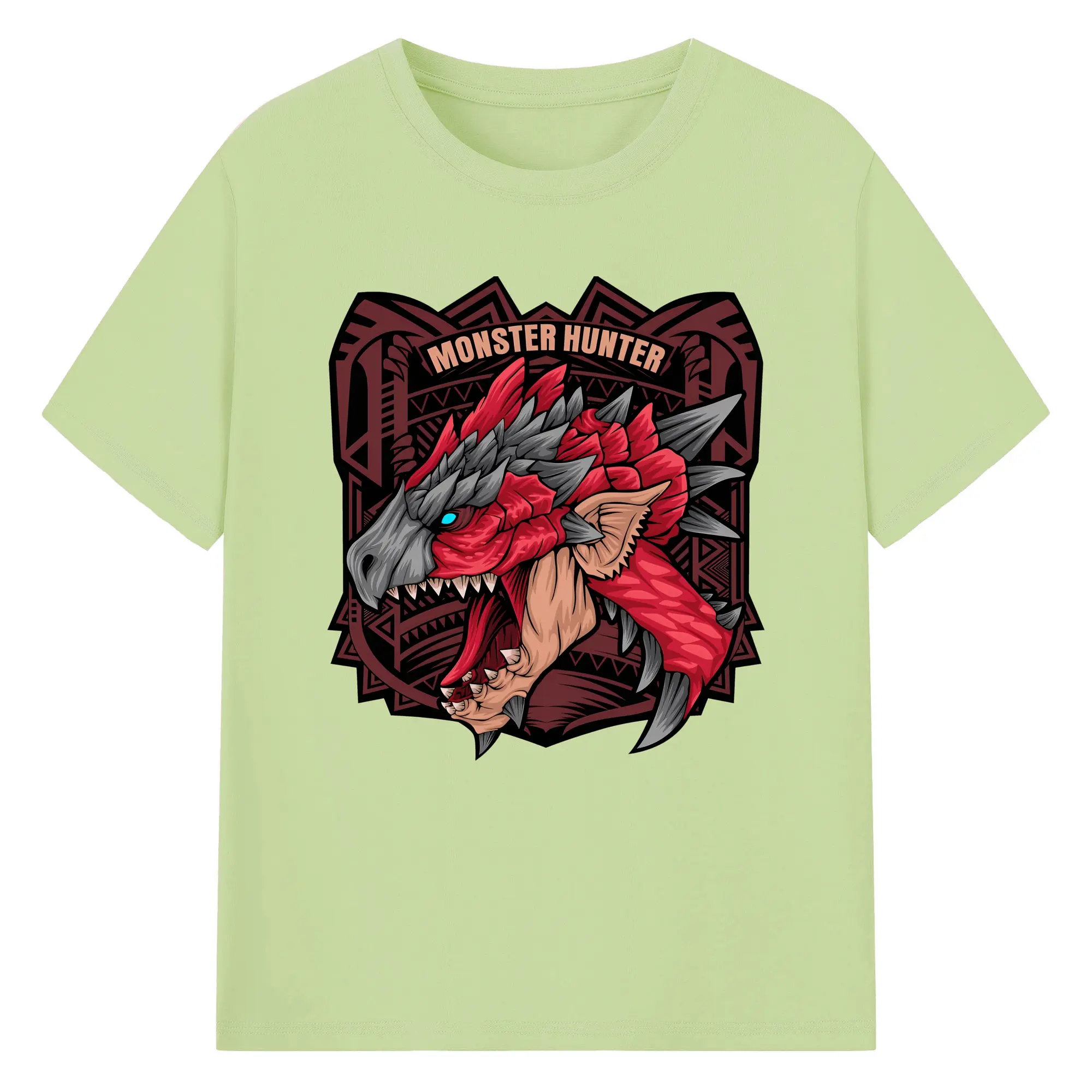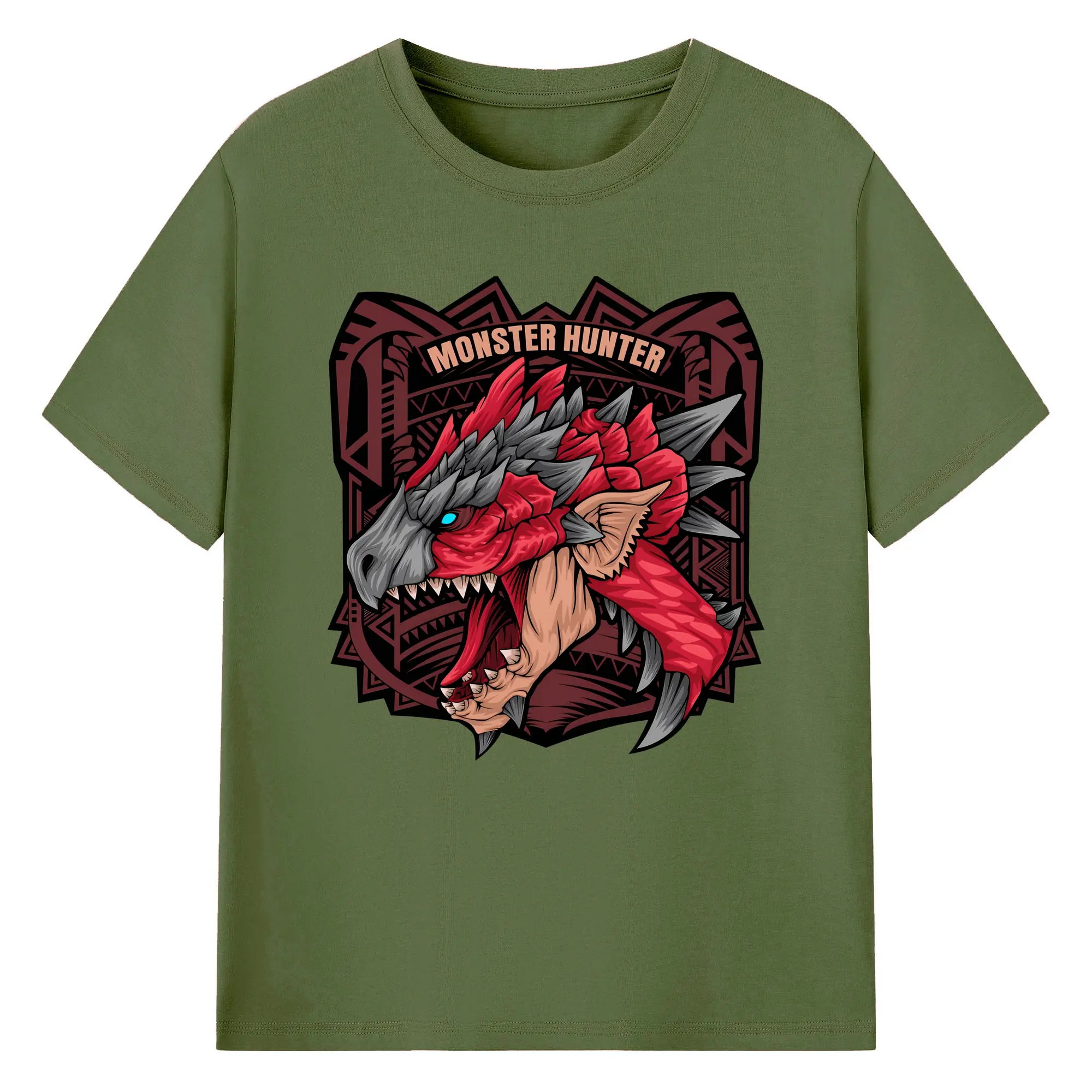 怒涛の火炎ブレス!リオレウス ド迫力デザイン - 綿100% ヴィンテージ風 半袖Tシャツ ・ フロントプリント ・ 柔らか肌触り ・ 通気性 快適 ・ スポーツ カジュアル 外出用