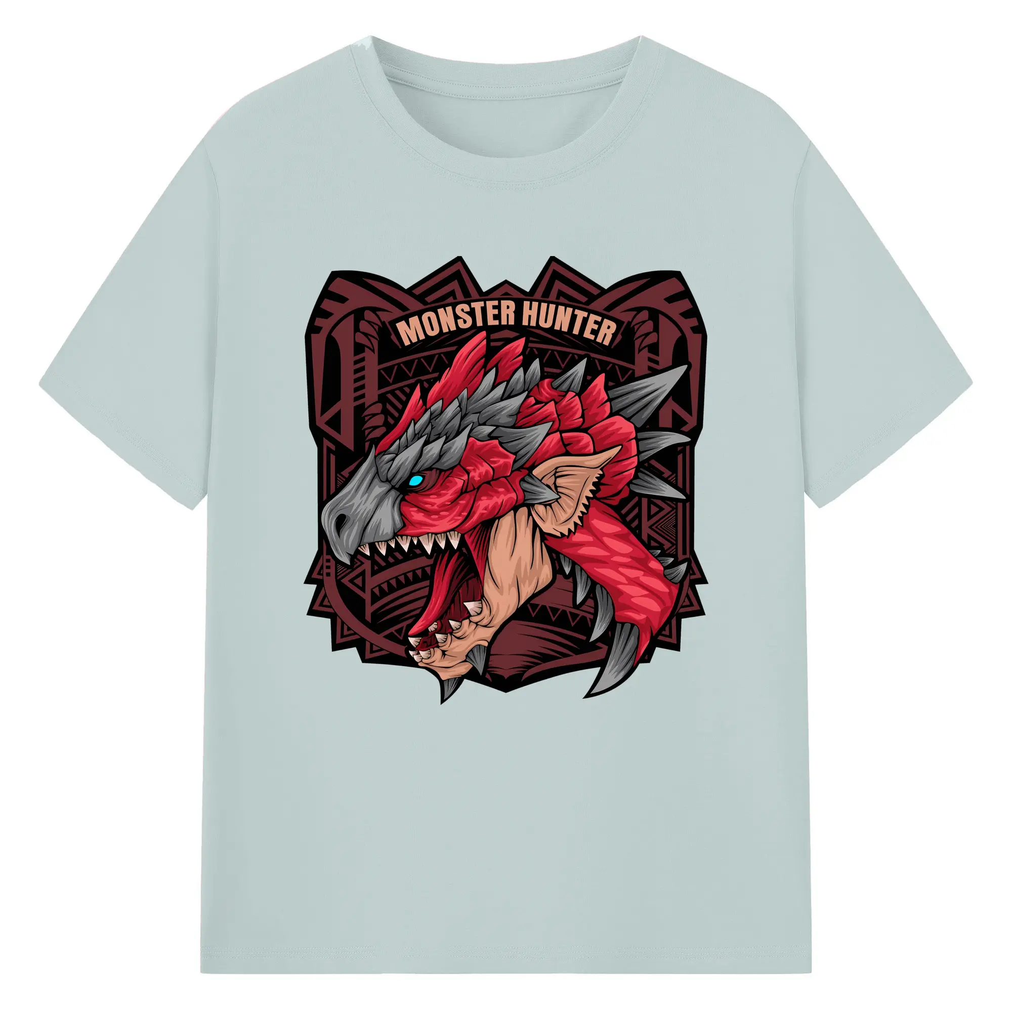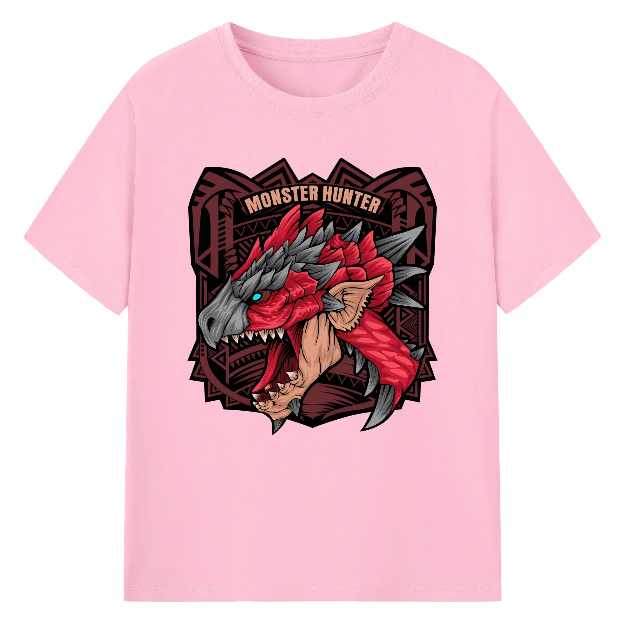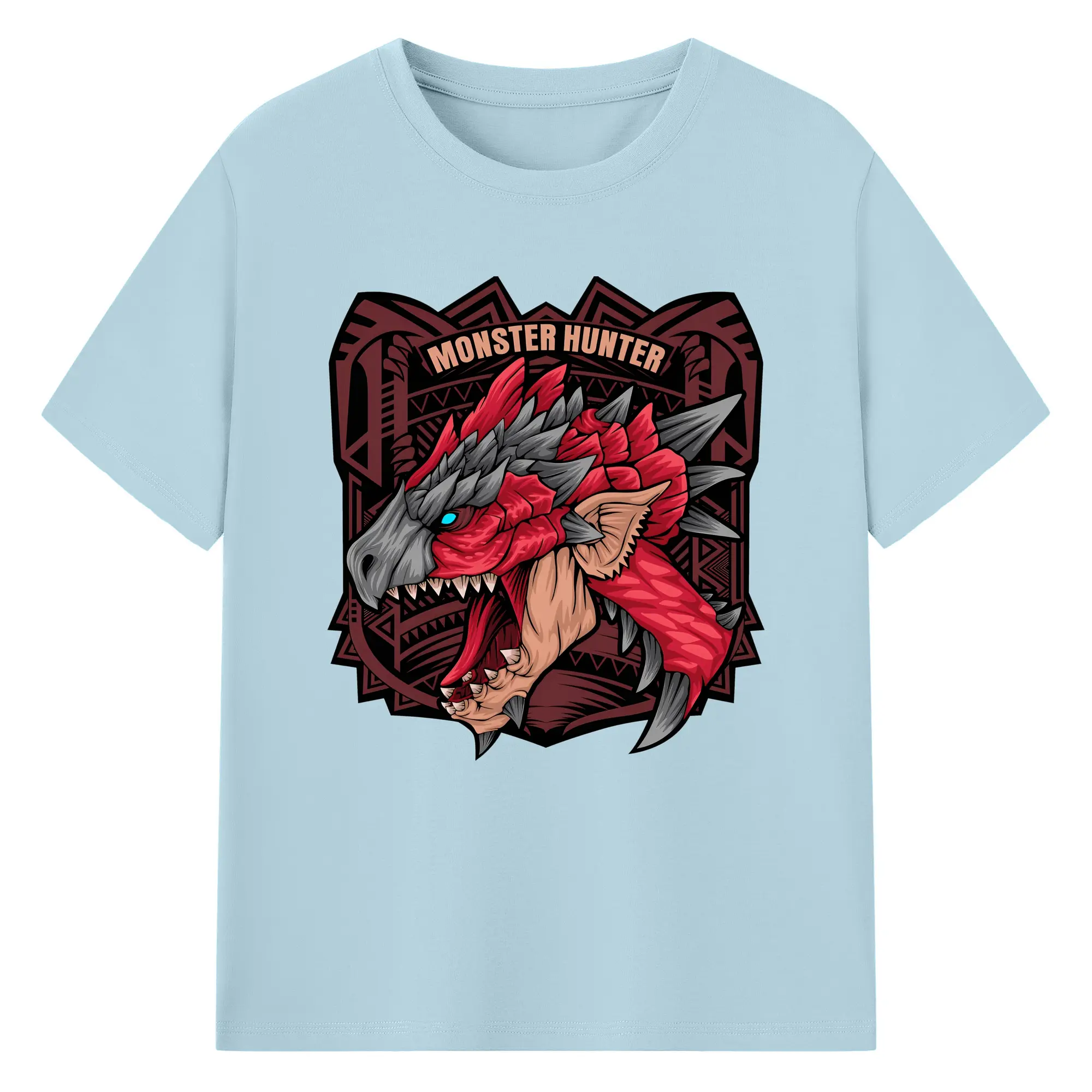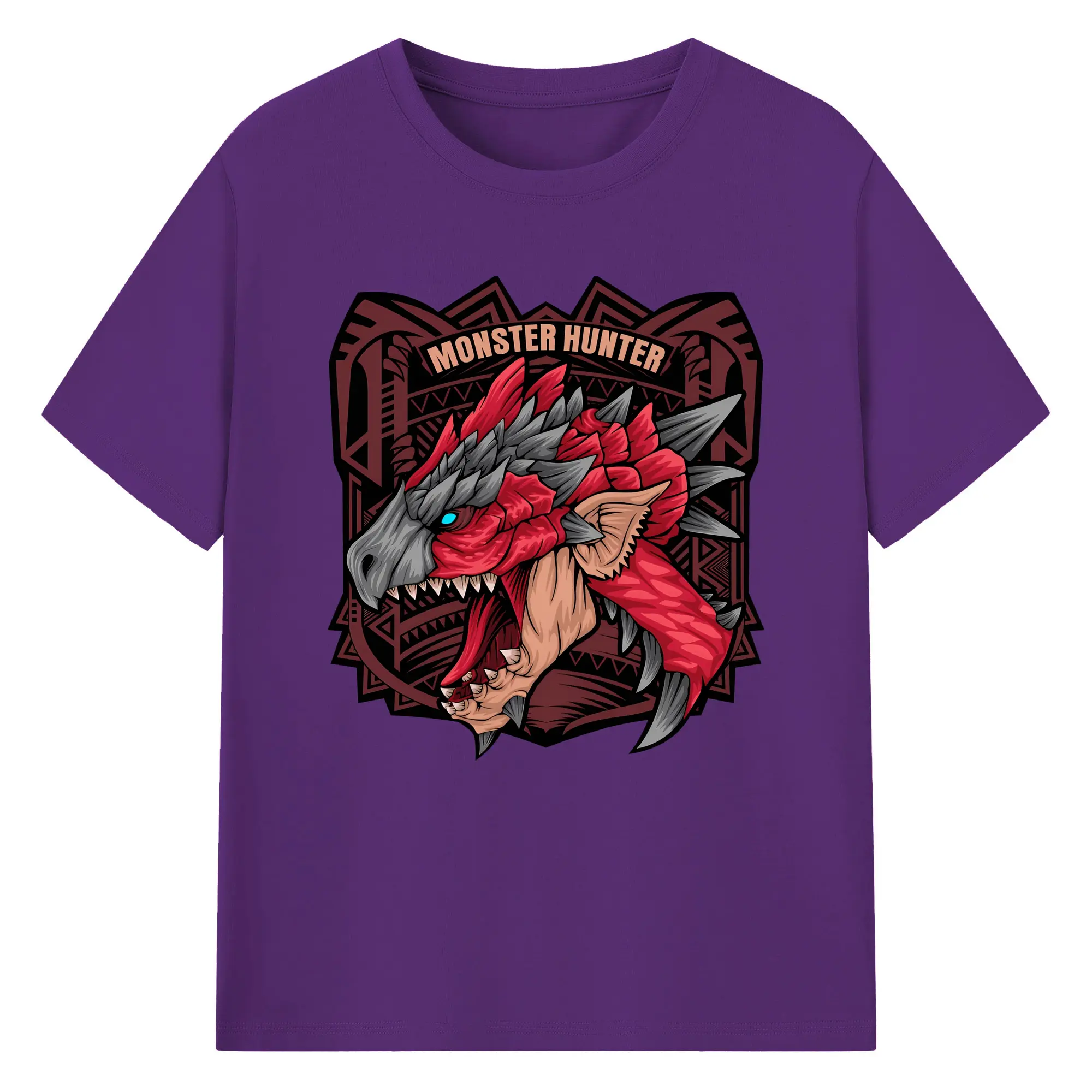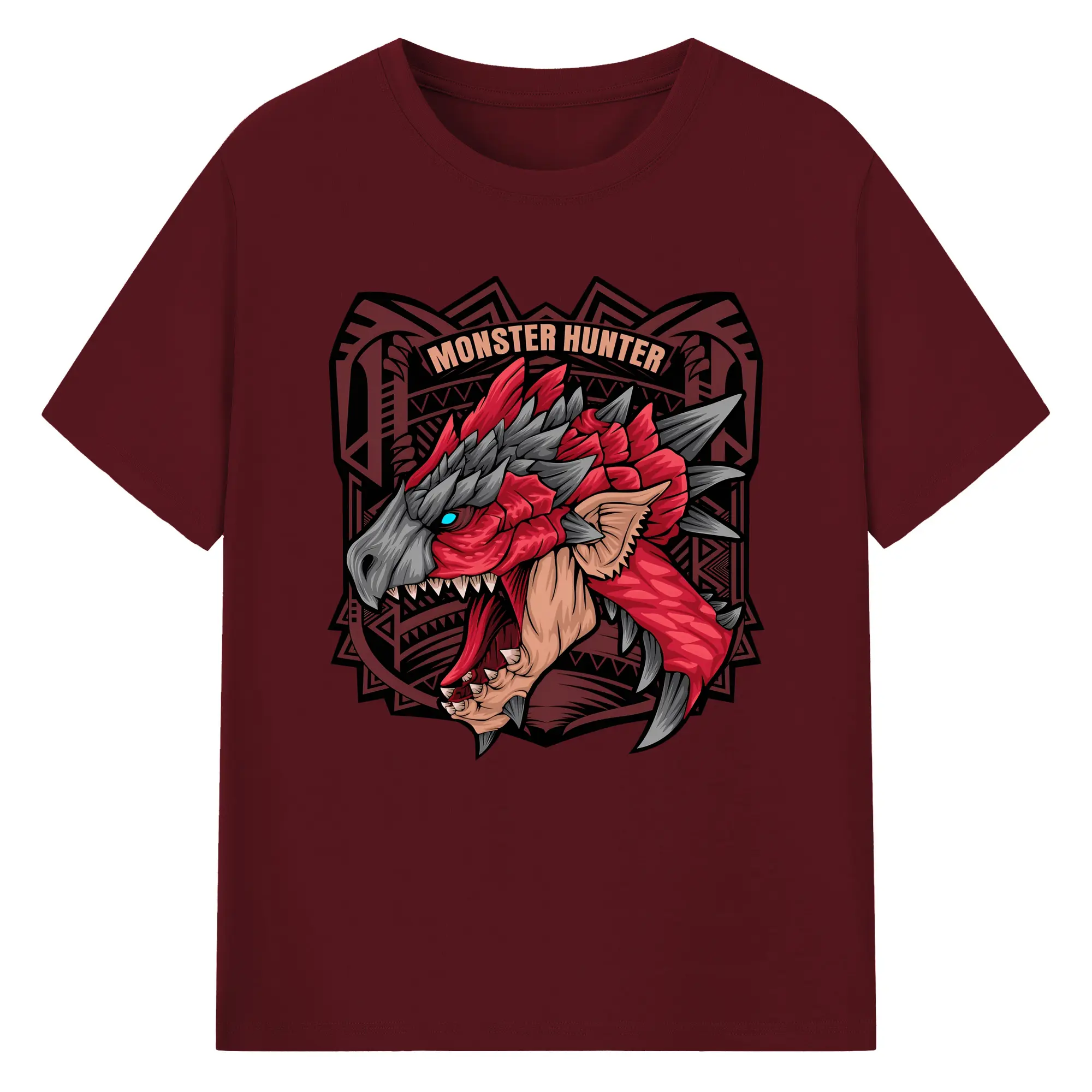 怒涛の火炎ブレス!リオレウス ド迫力デザイン - 綿100% ヴィンテージ風 半袖Tシャツ ・ フロントプリント ・ 柔らか肌触り ・ 通気性 快適 ・ スポーツ カジュアル 外出用