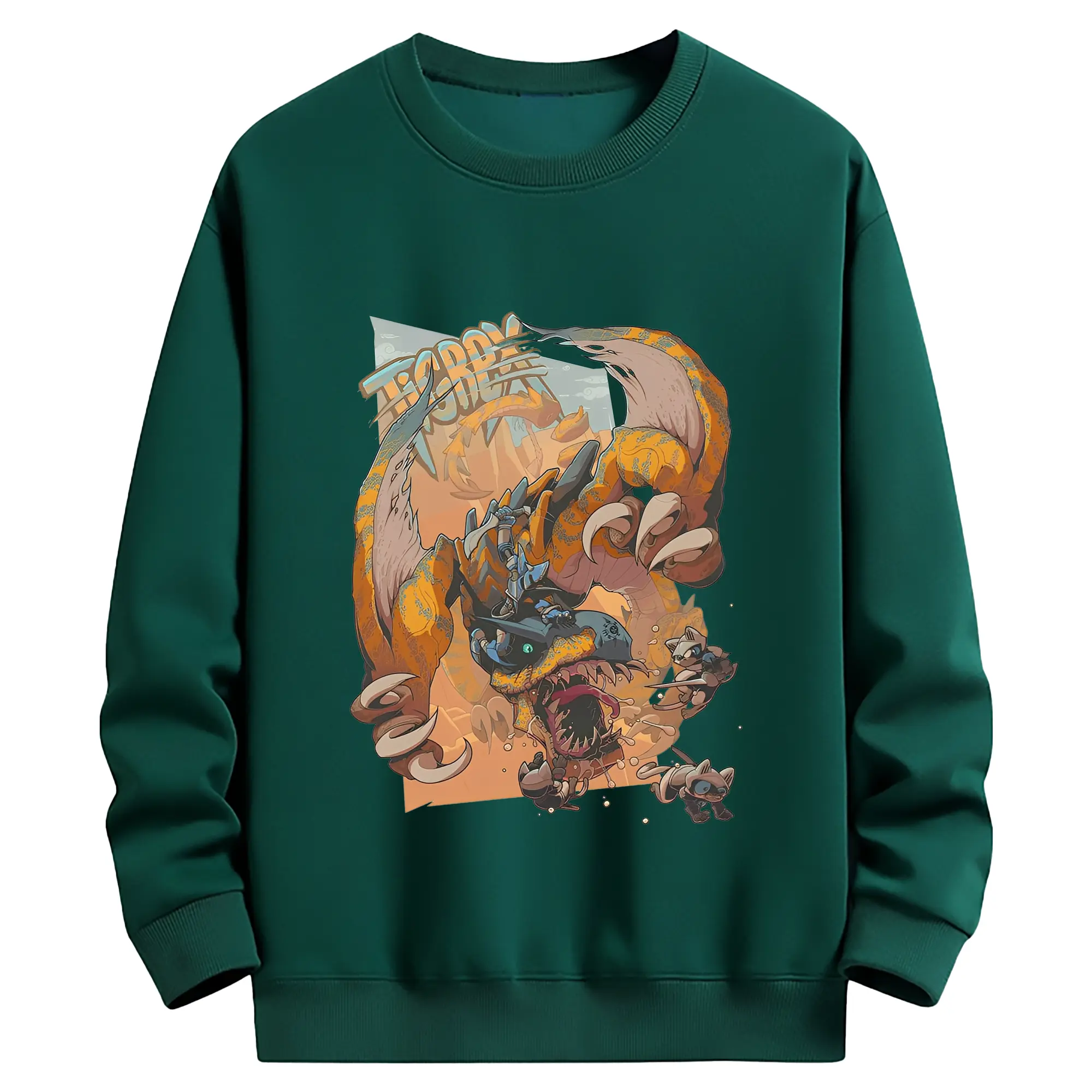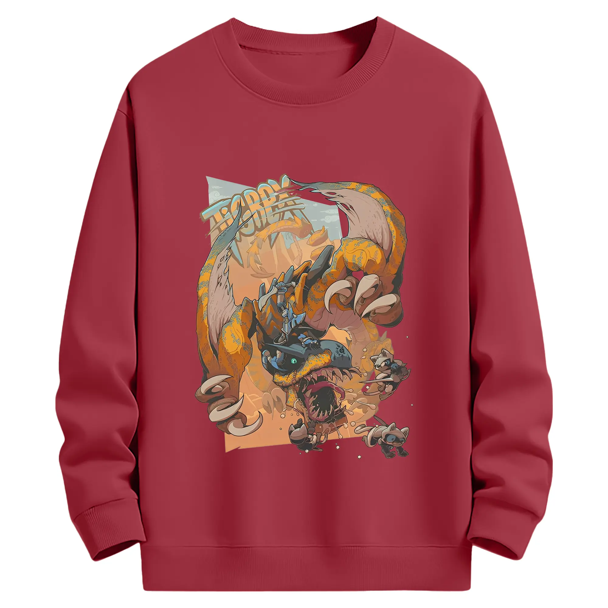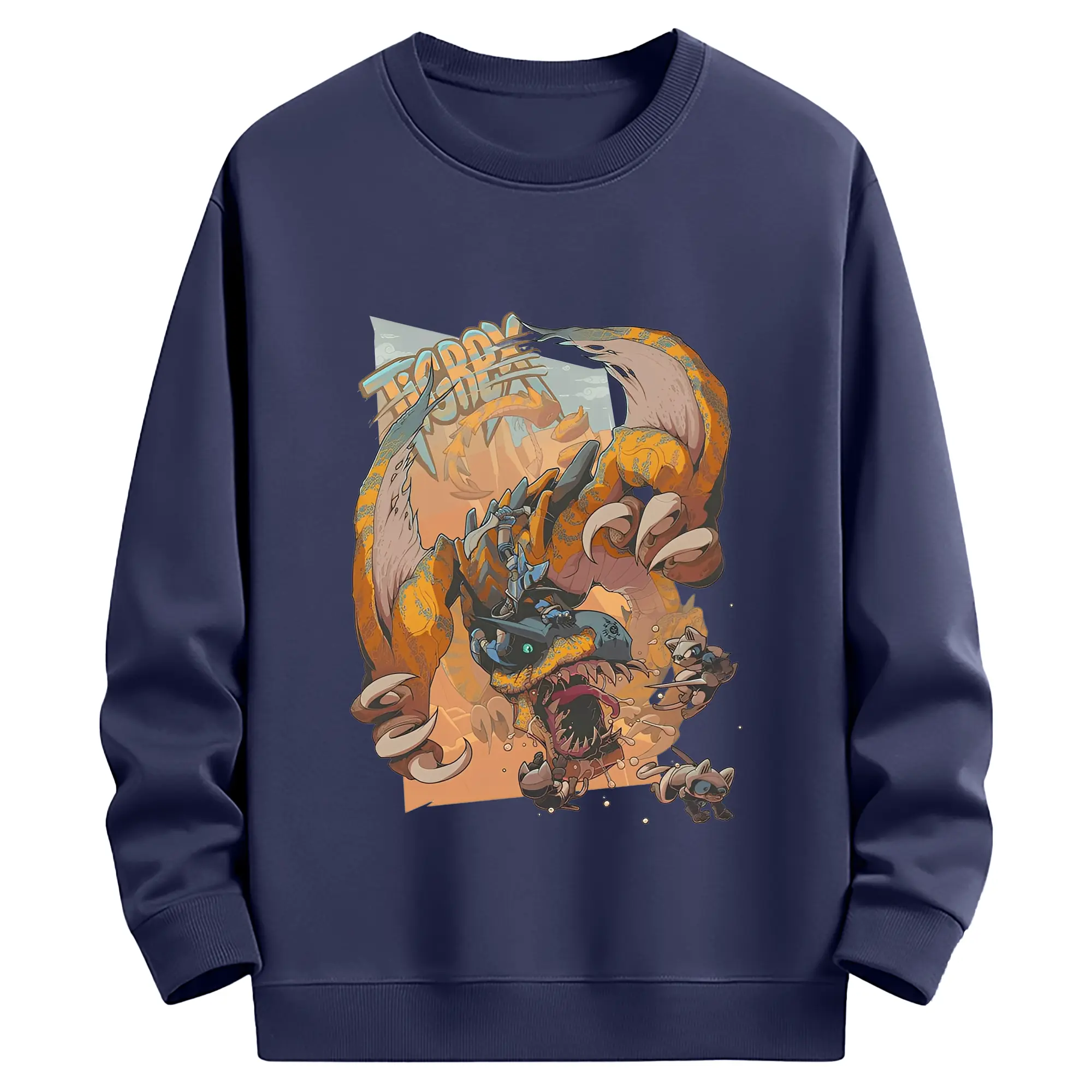 怒涛の突進!ティガレックス ド迫力プリント - 綿100% ヴィンテージ風 半袖Tシャツ ・ フロントプリント ・ 柔らか肌触り ・ 通気性 快適 ・ スポーツ カジュアル 外出用