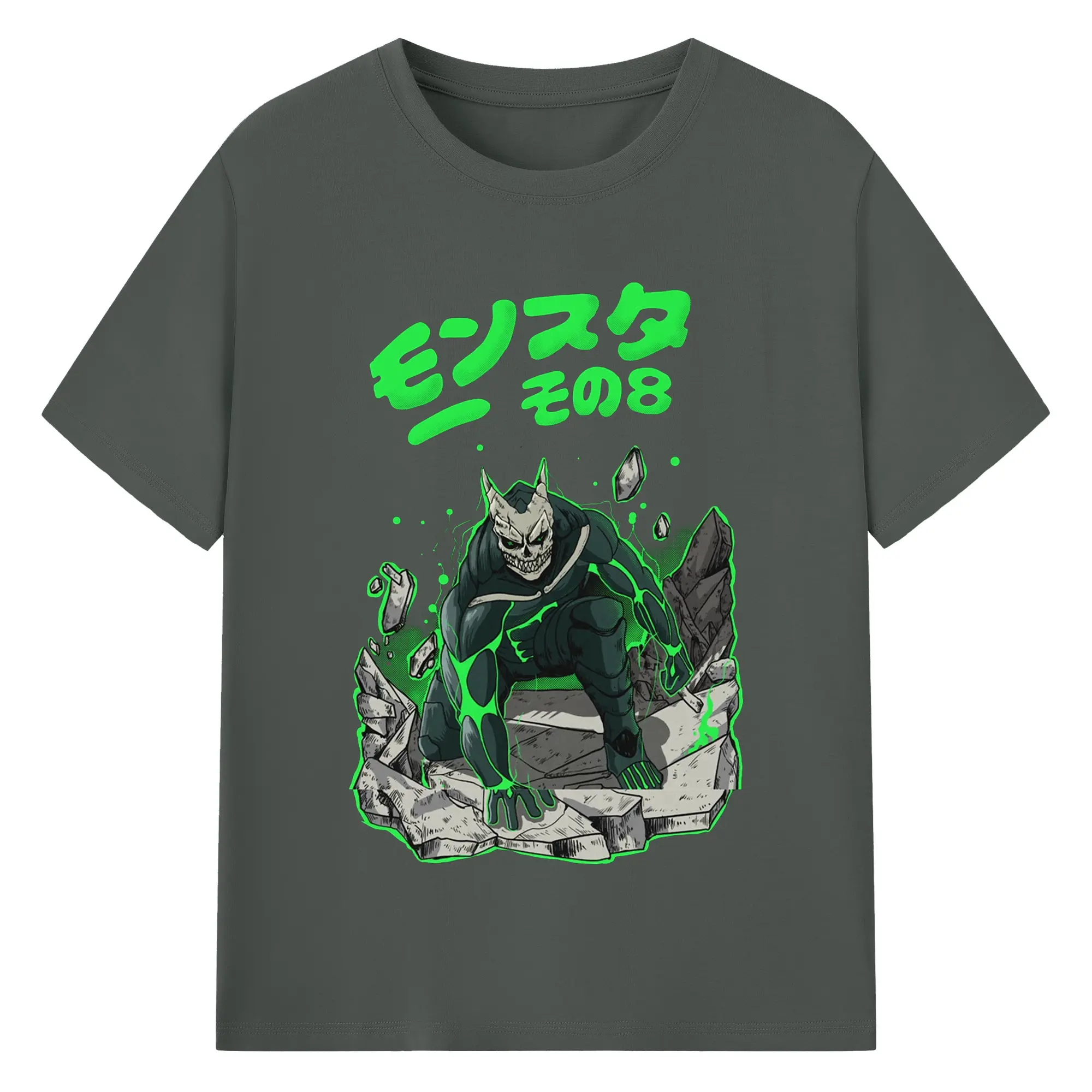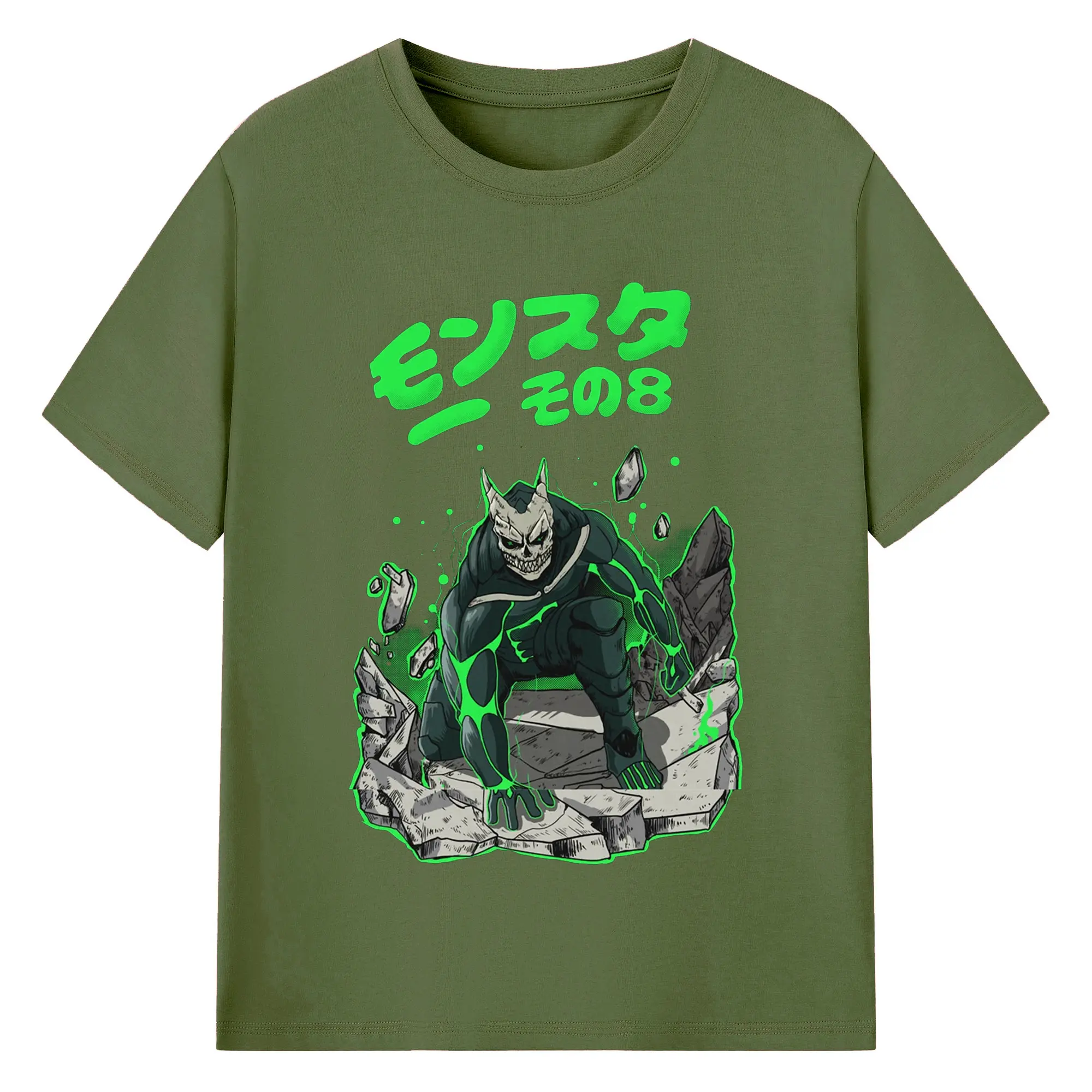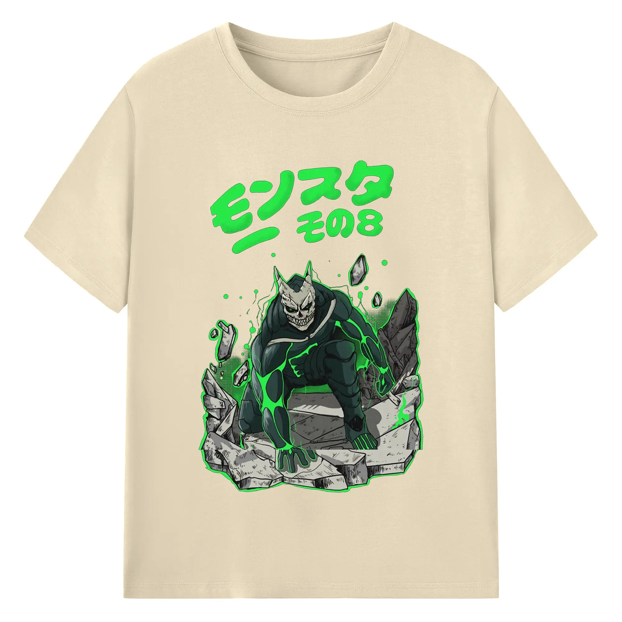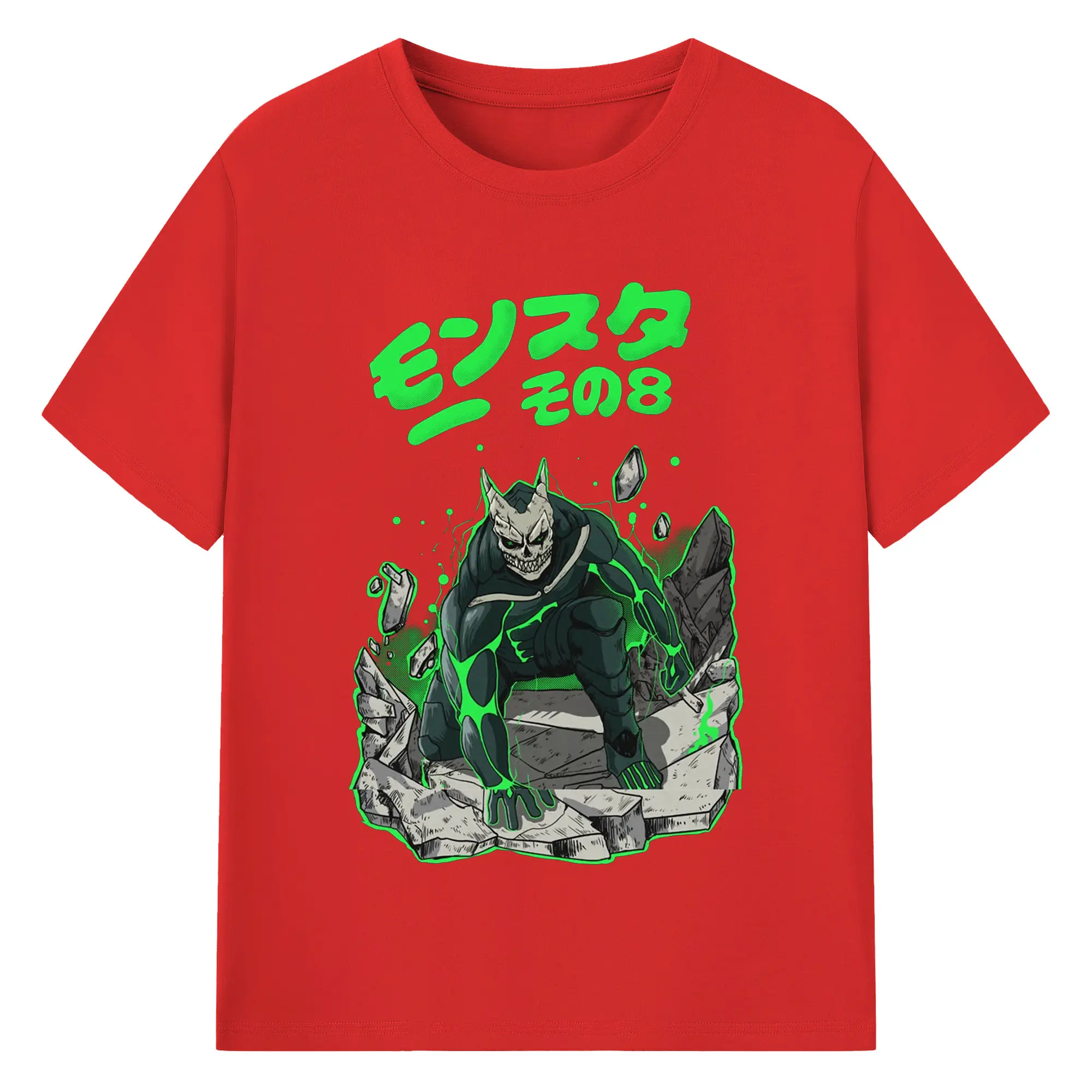 怪獣8号モンスターその8限定 - 綿100% ヴィンテージ風 半袖Tシャツ ・ フロントプリント ・ 柔らか肌触り ・ 通気性 快適 ・ スポーツ カジュアル 外出用