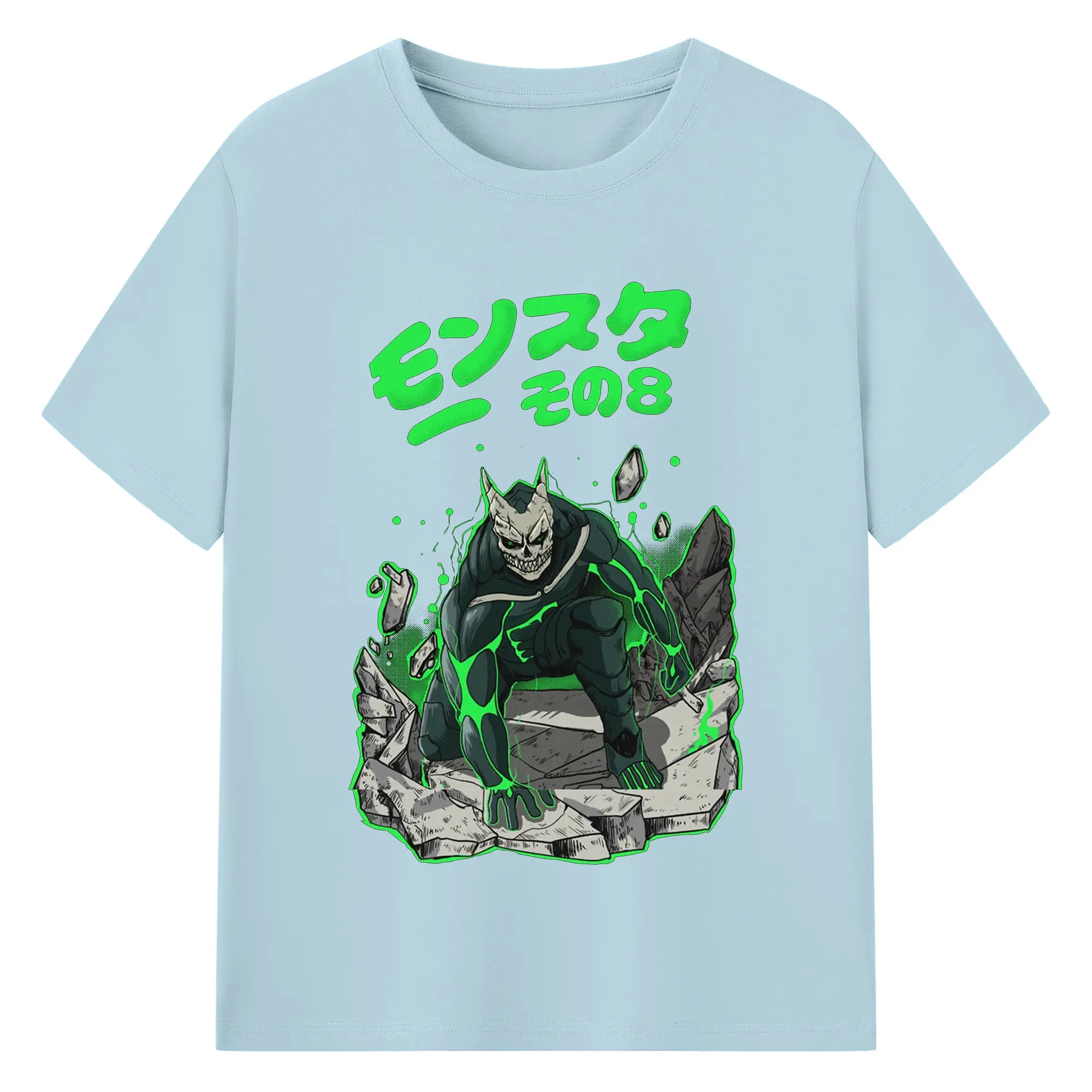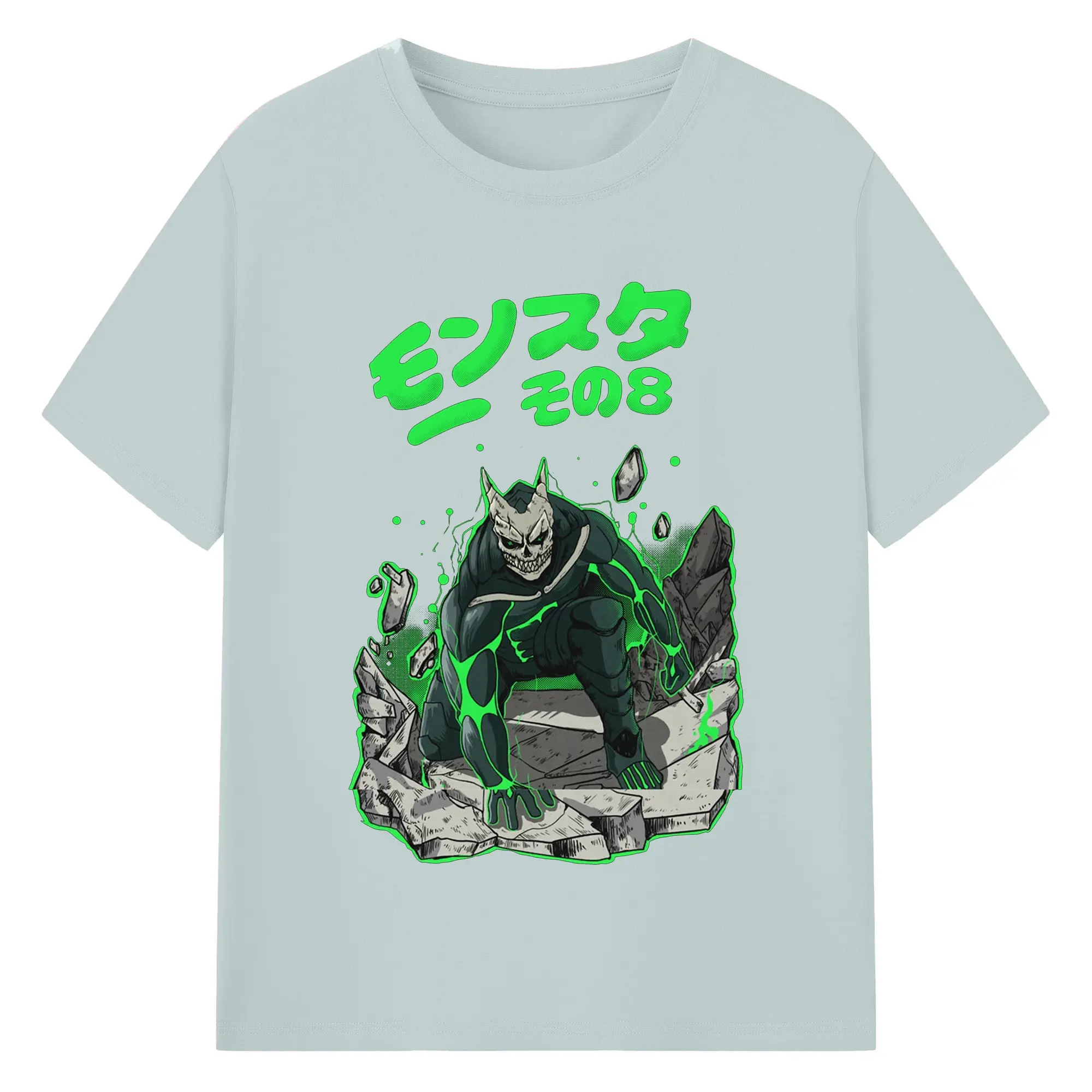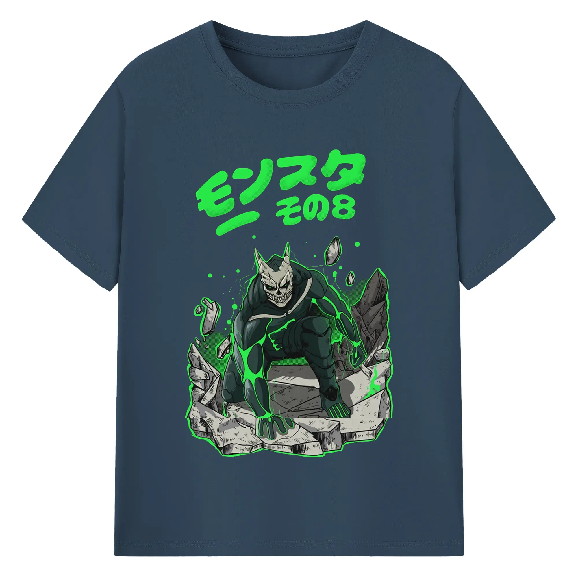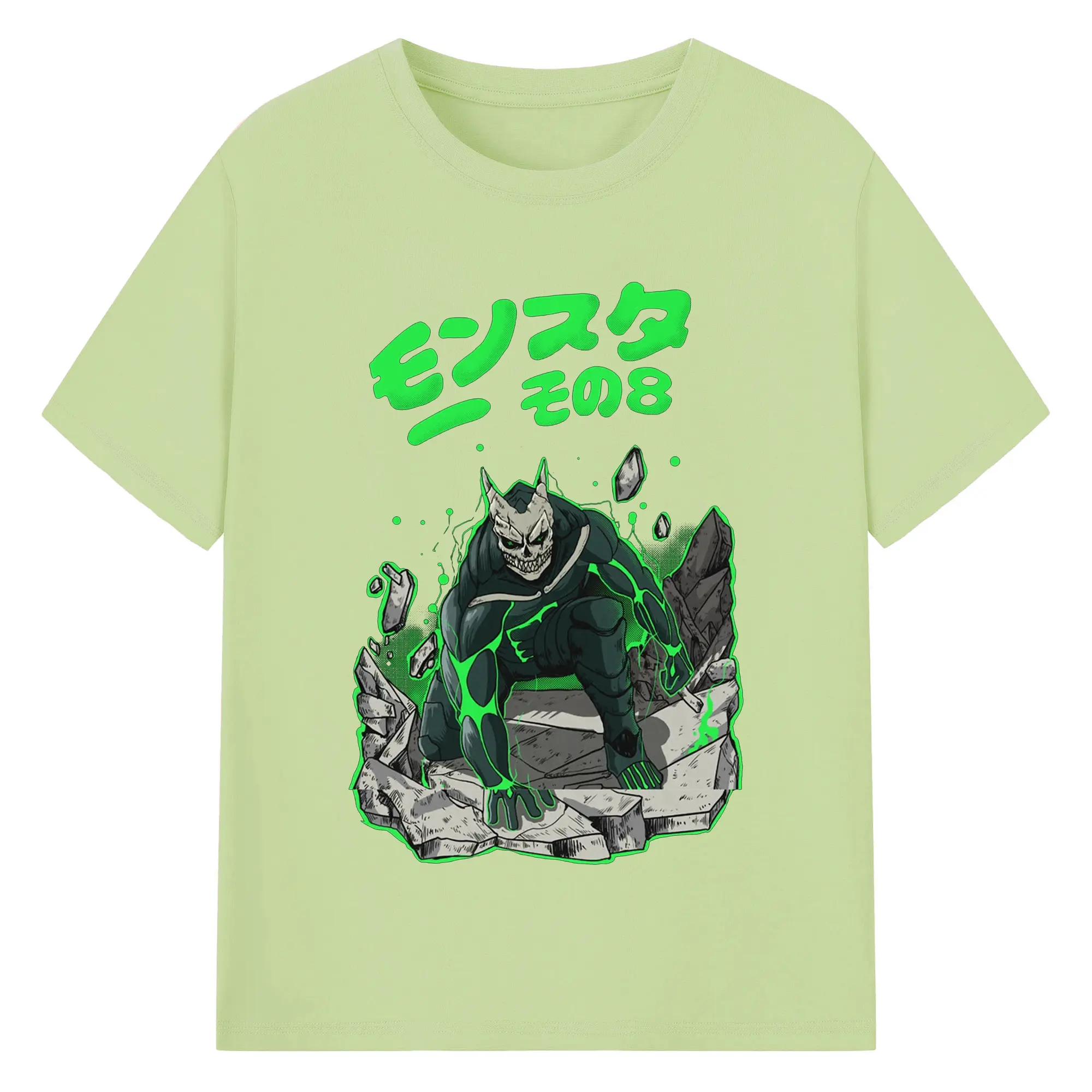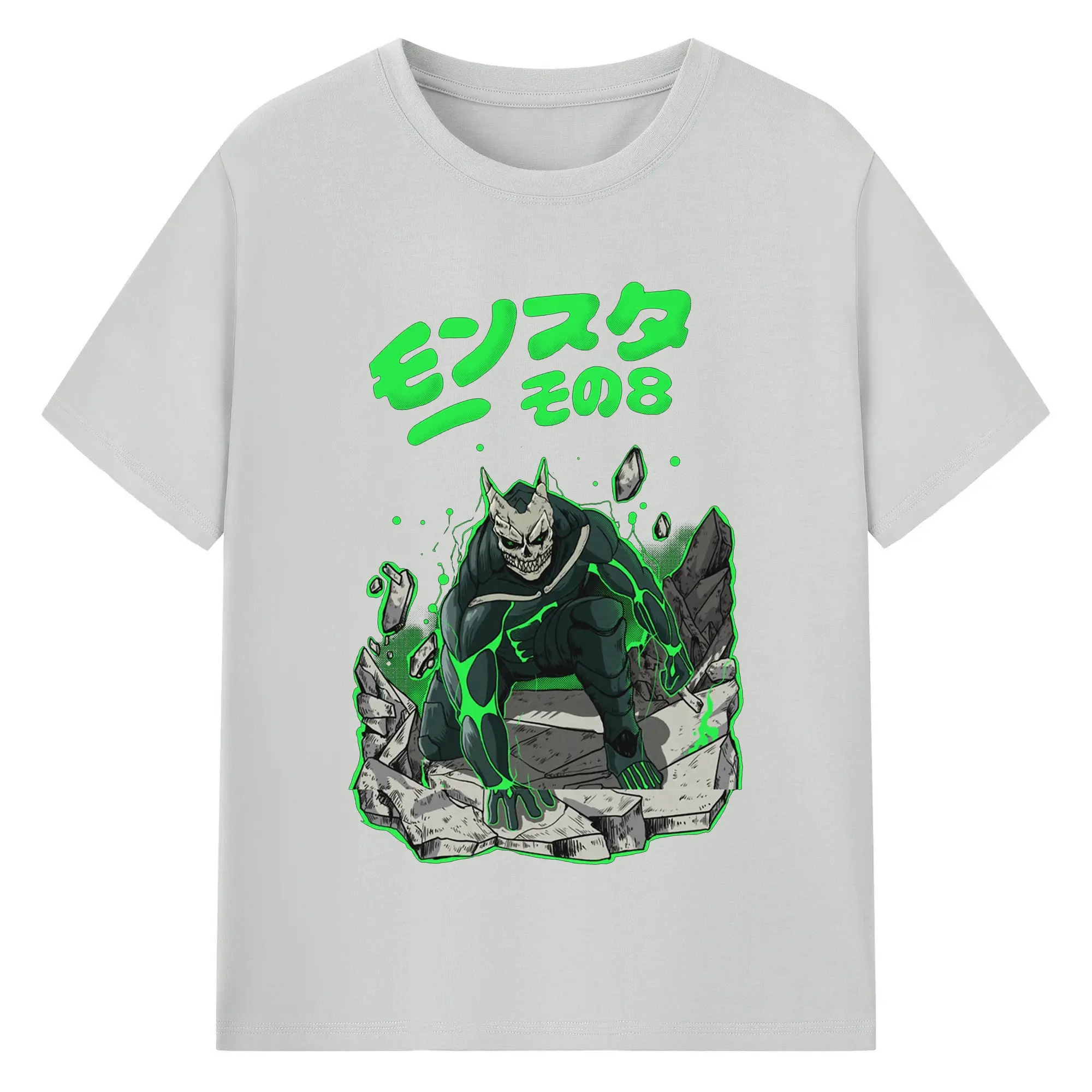 怪獣8号モンスターその8限定 - 綿100% ヴィンテージ風 半袖Tシャツ ・ フロントプリント ・ 柔らか肌触り ・ 通気性 快適 ・ スポーツ カジュアル 外出用