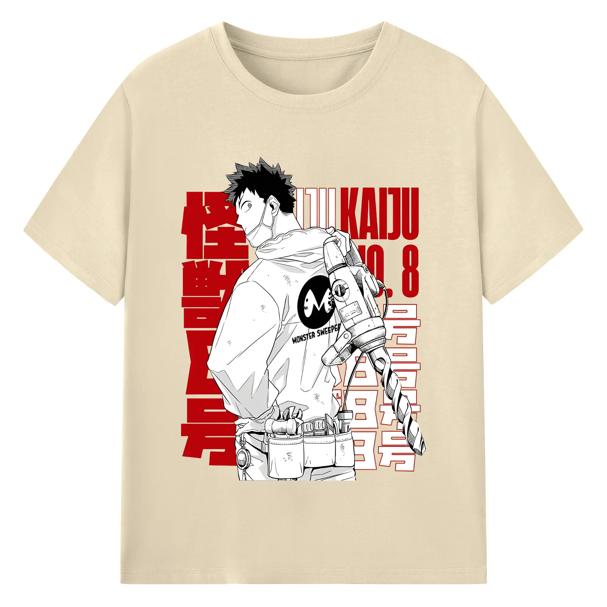 怪獣8号 主人公 日比野カフカ 新作 - 綿100% ヴィンテージ風 半袖Tシャツ ・ フロントプリント ・ 柔らか肌触り ・ 通気性 快適 ・ スポーツ カジュアル 外出用