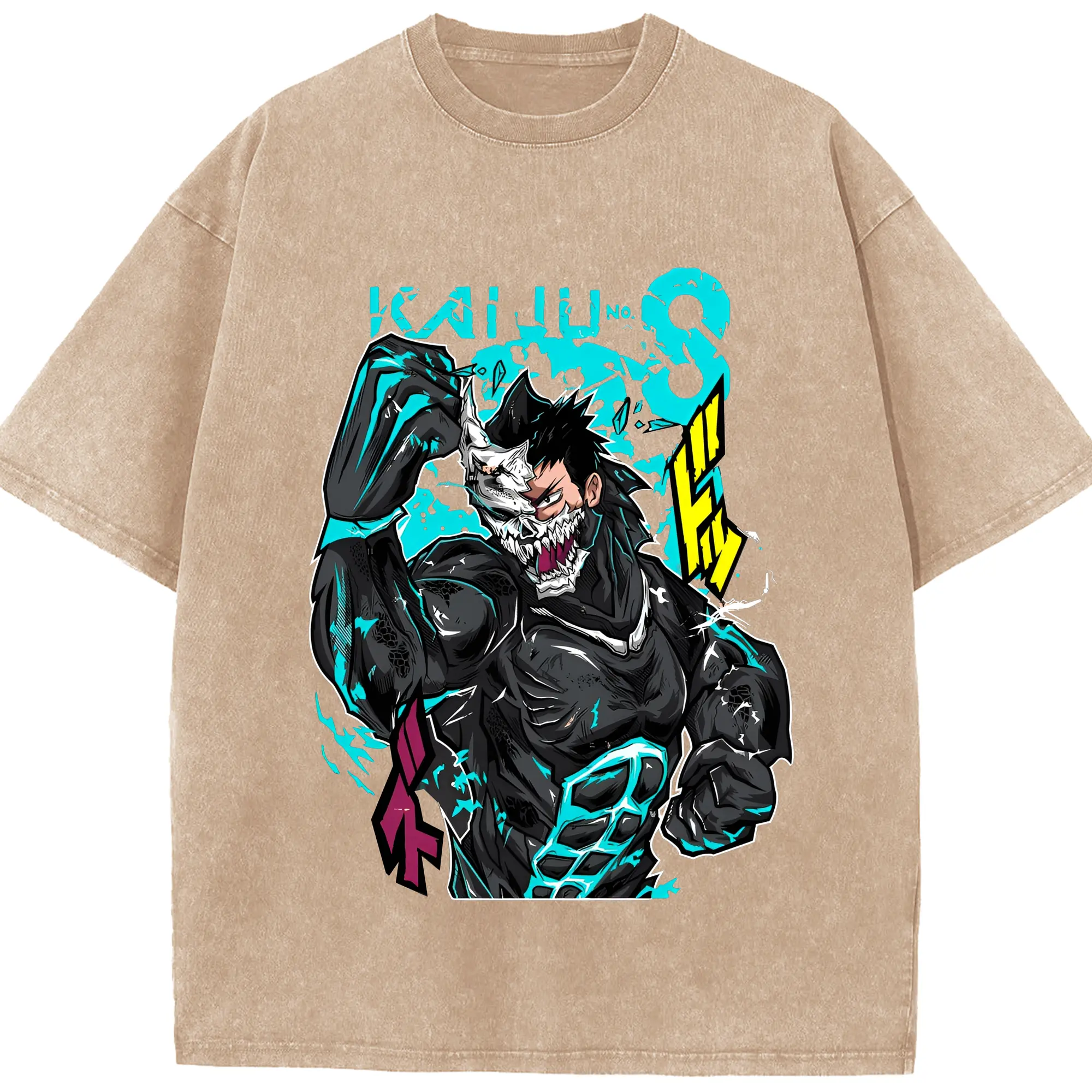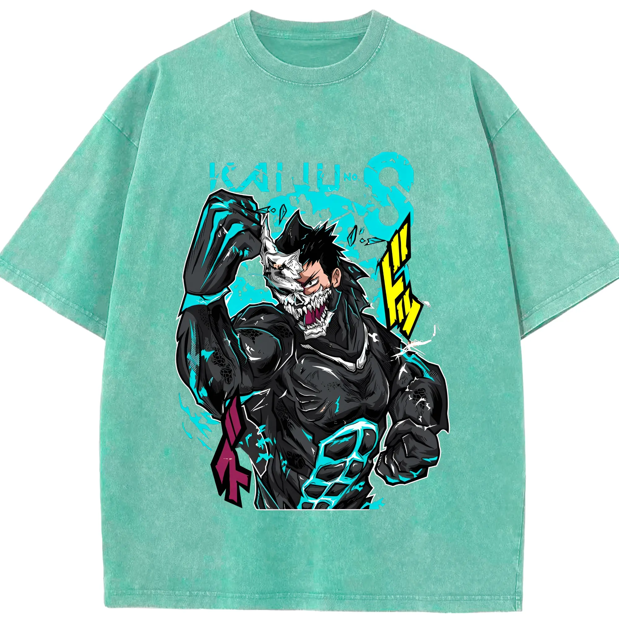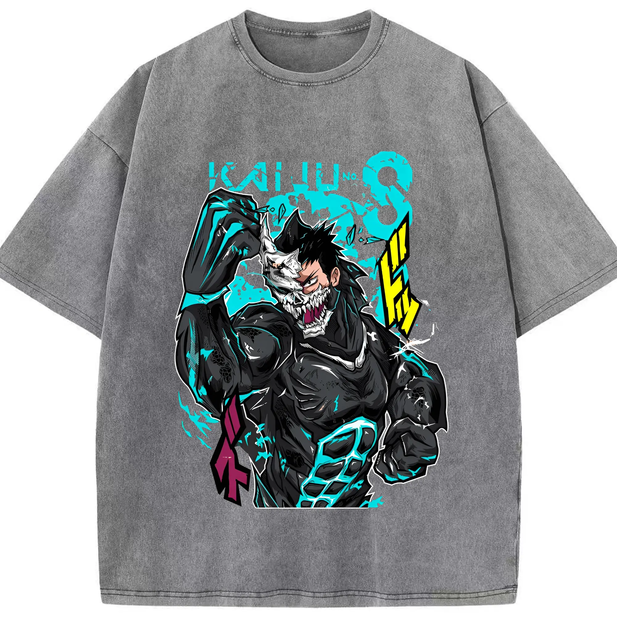 怪獣8号 日比野カフカ 合体デザイン - 綿100% 半袖Tシャツ ・ フロントプリント ・ 快適 通気性 ・ 日常使い 散歩 スポーツ用