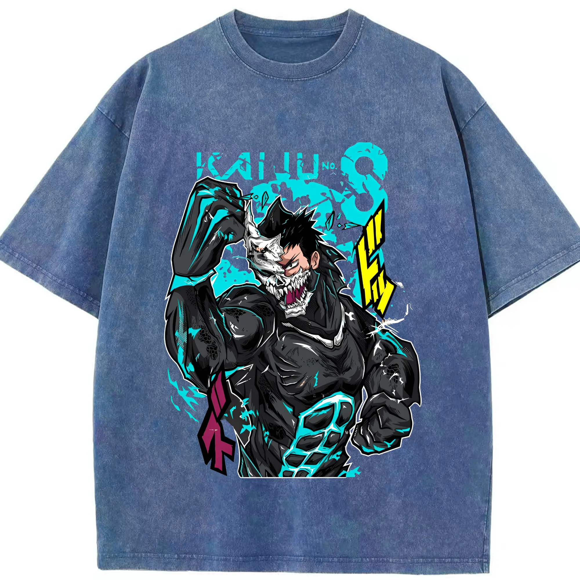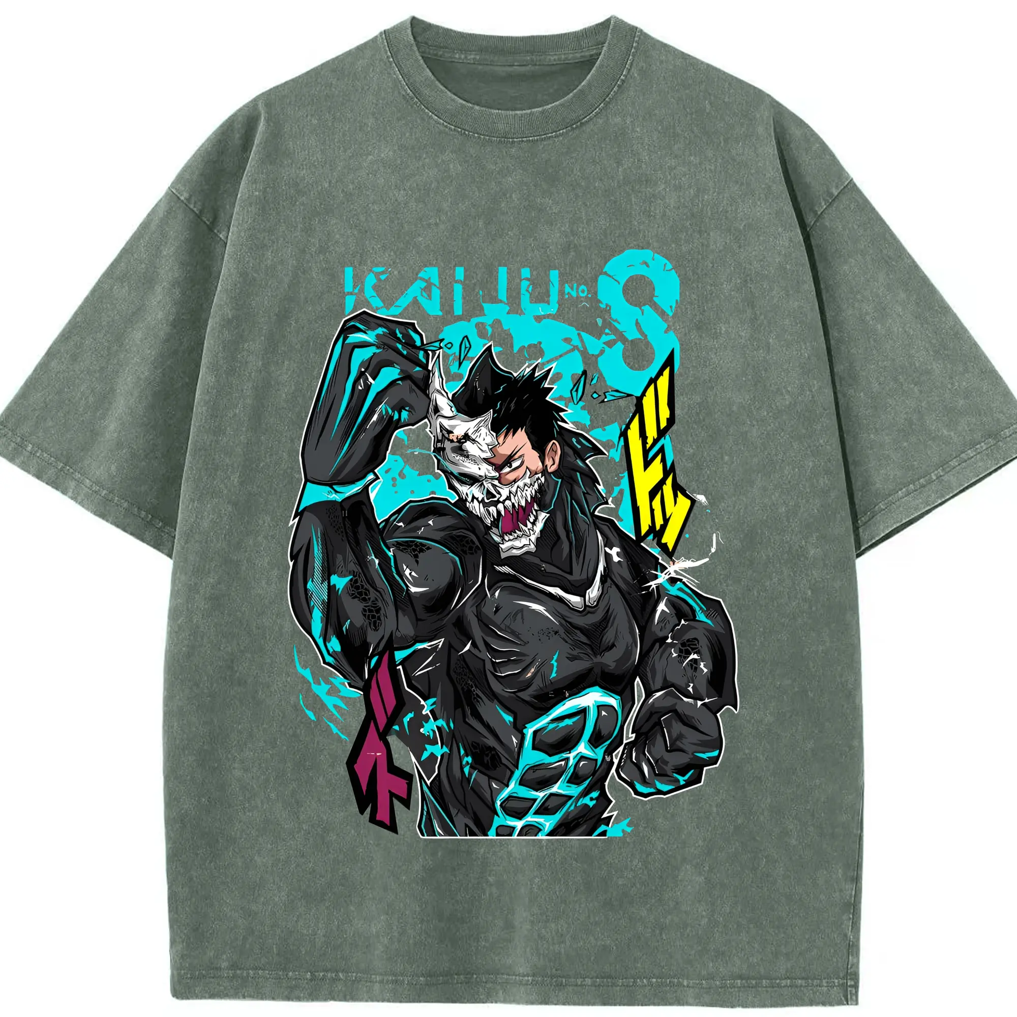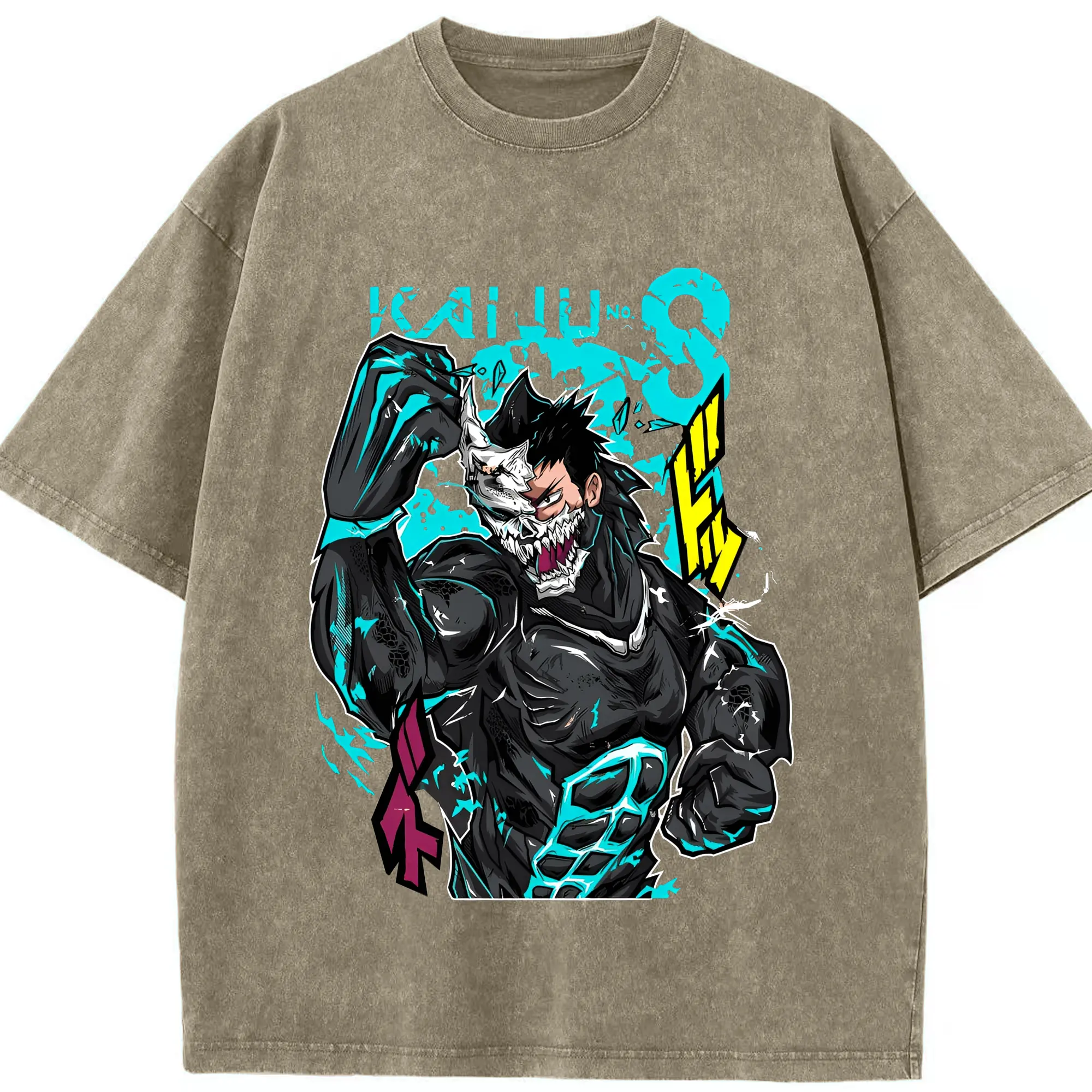 怪獣8号 日比野カフカ 合体デザイン - 綿100% 半袖Tシャツ ・ フロントプリント ・ 快適 通気性 ・ 日常使い 散歩 スポーツ用