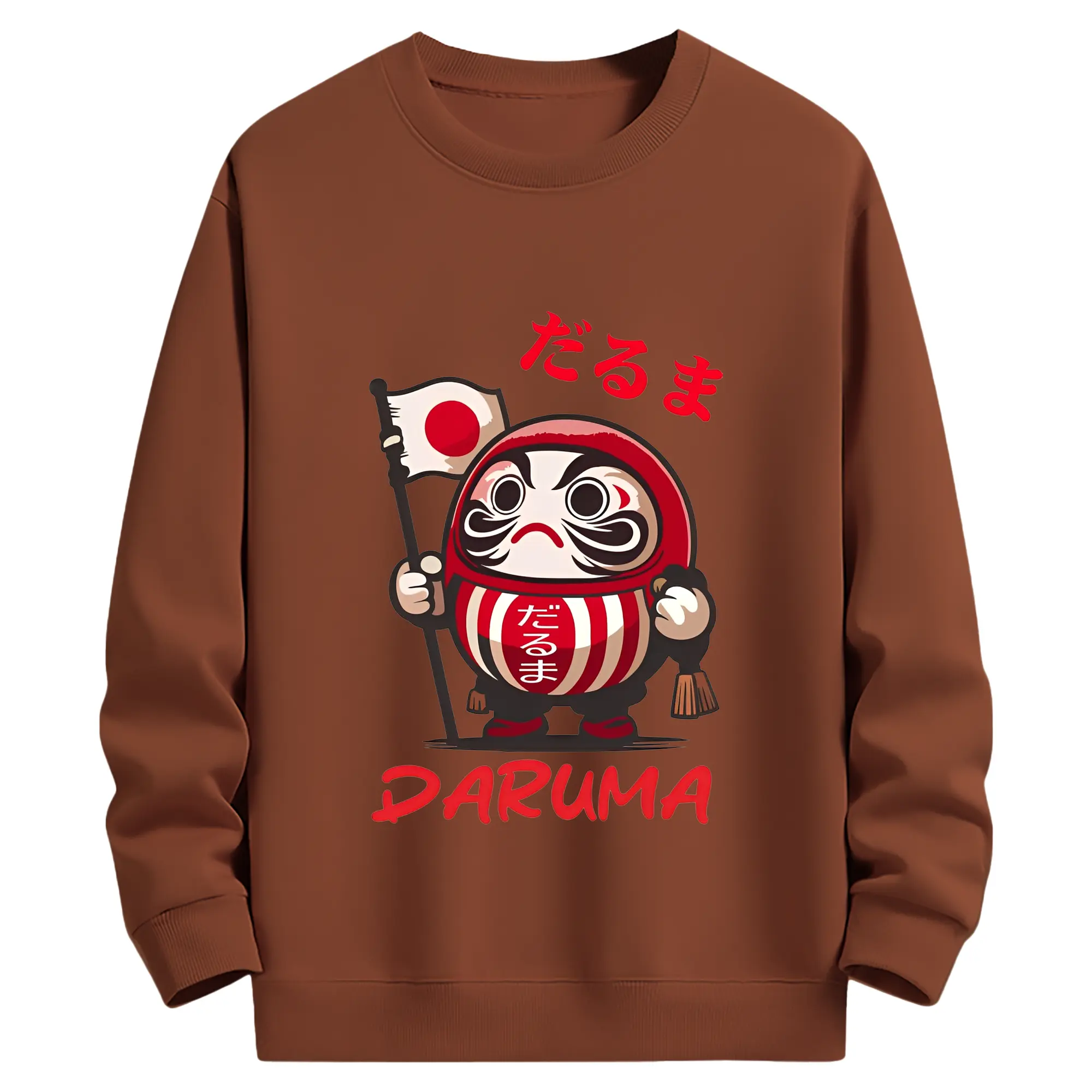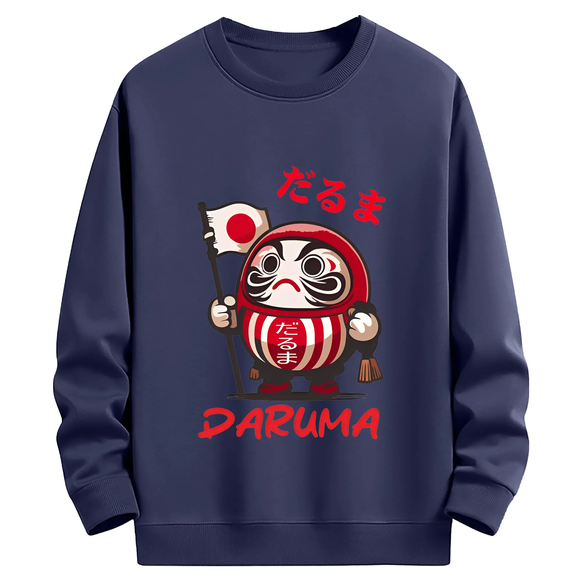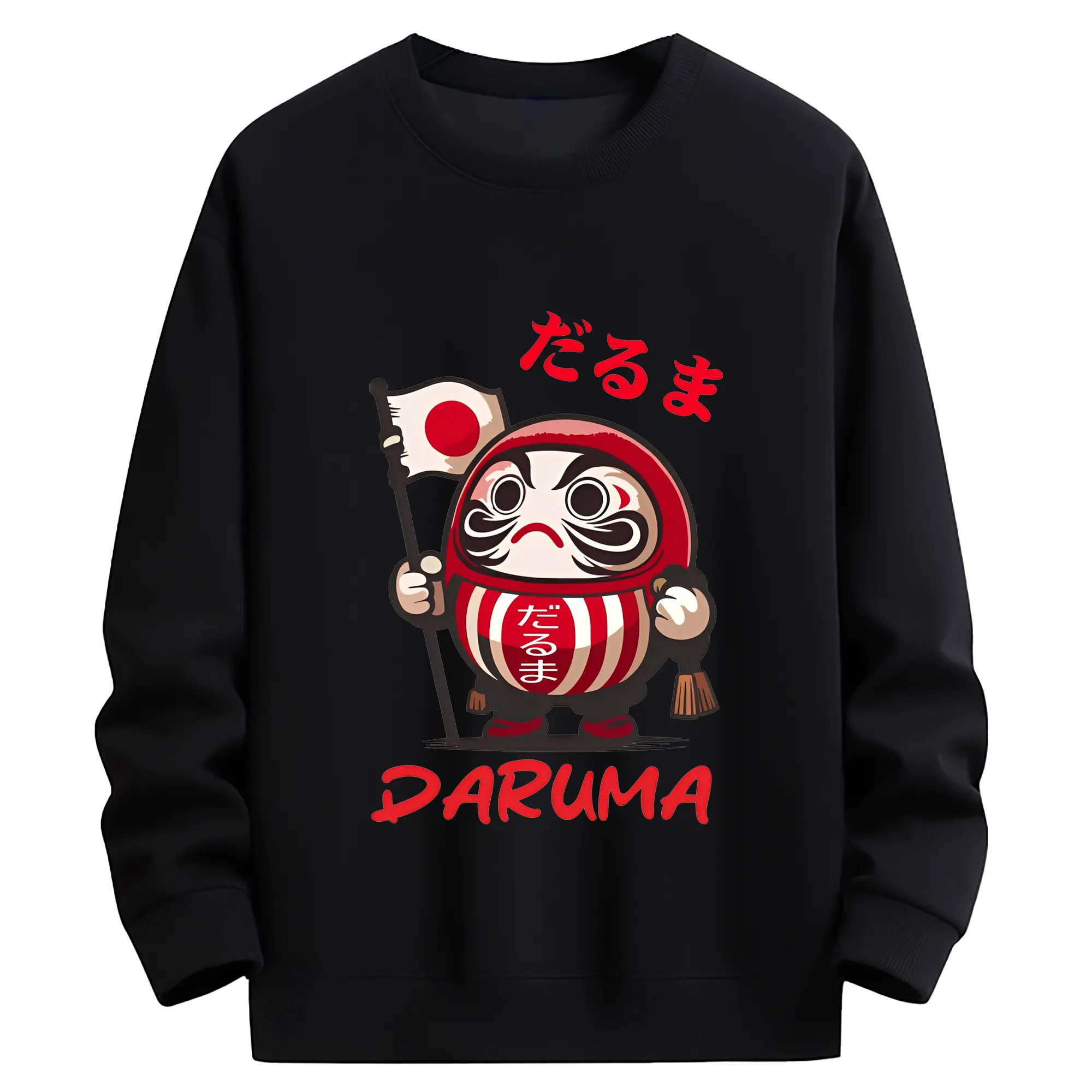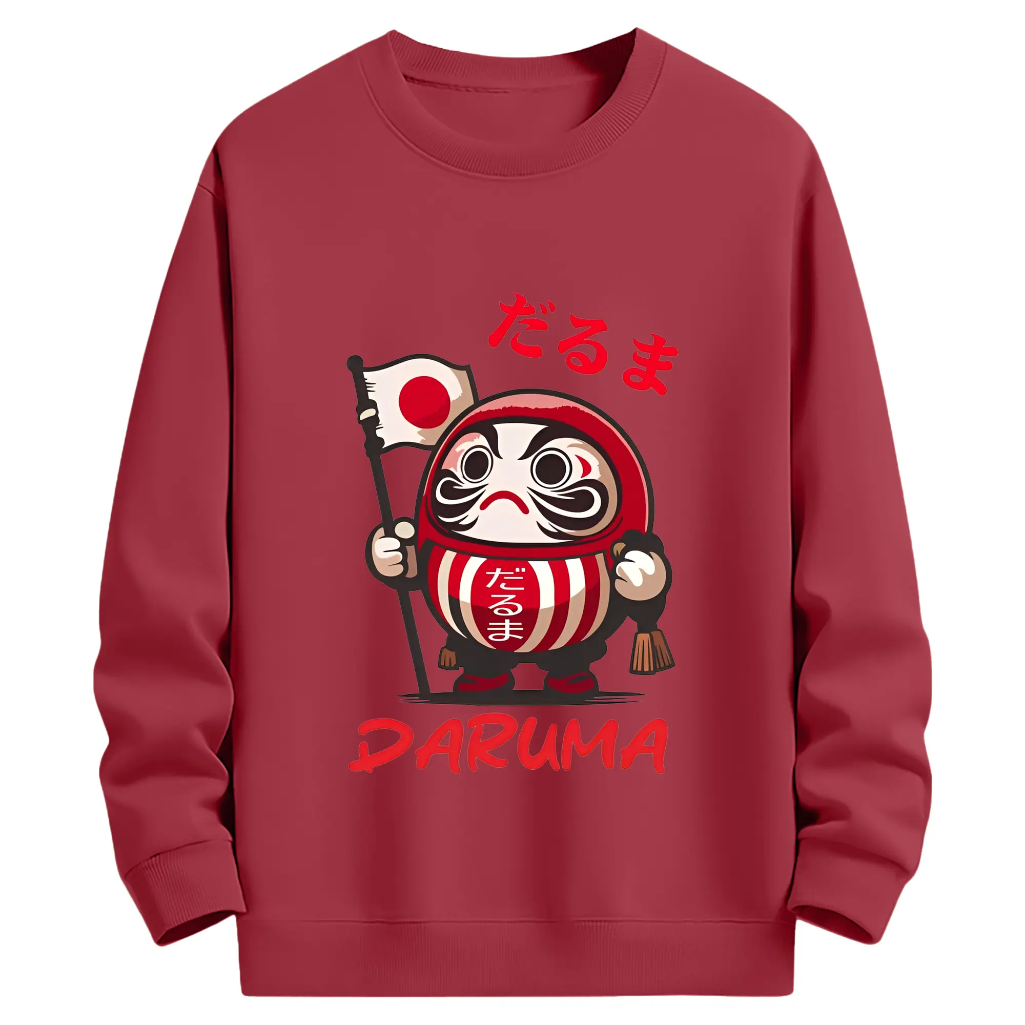 愛国和風スタイル 開運だるまキャラクター - 綿100% 半袖Tシャツ ・ フロントプリント ・ 快適 通気性 ・ 日常使い 散歩 スポーツ用