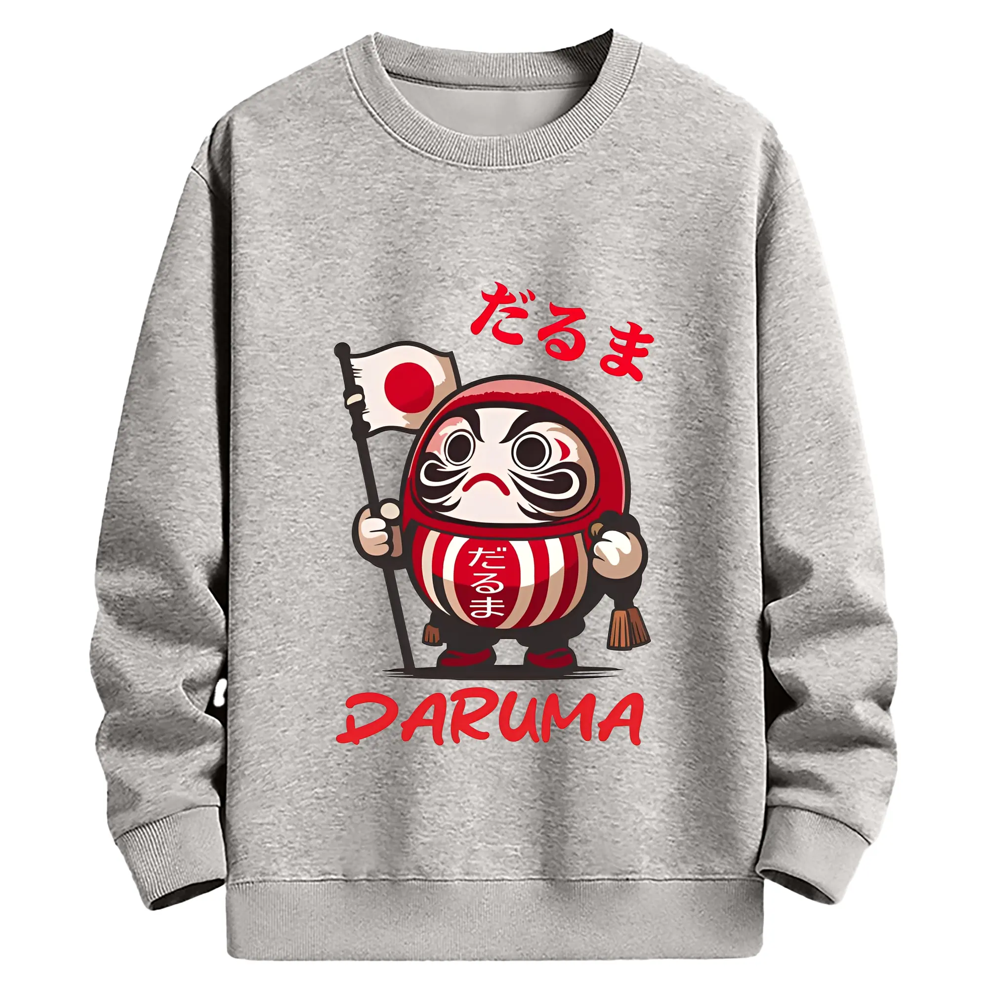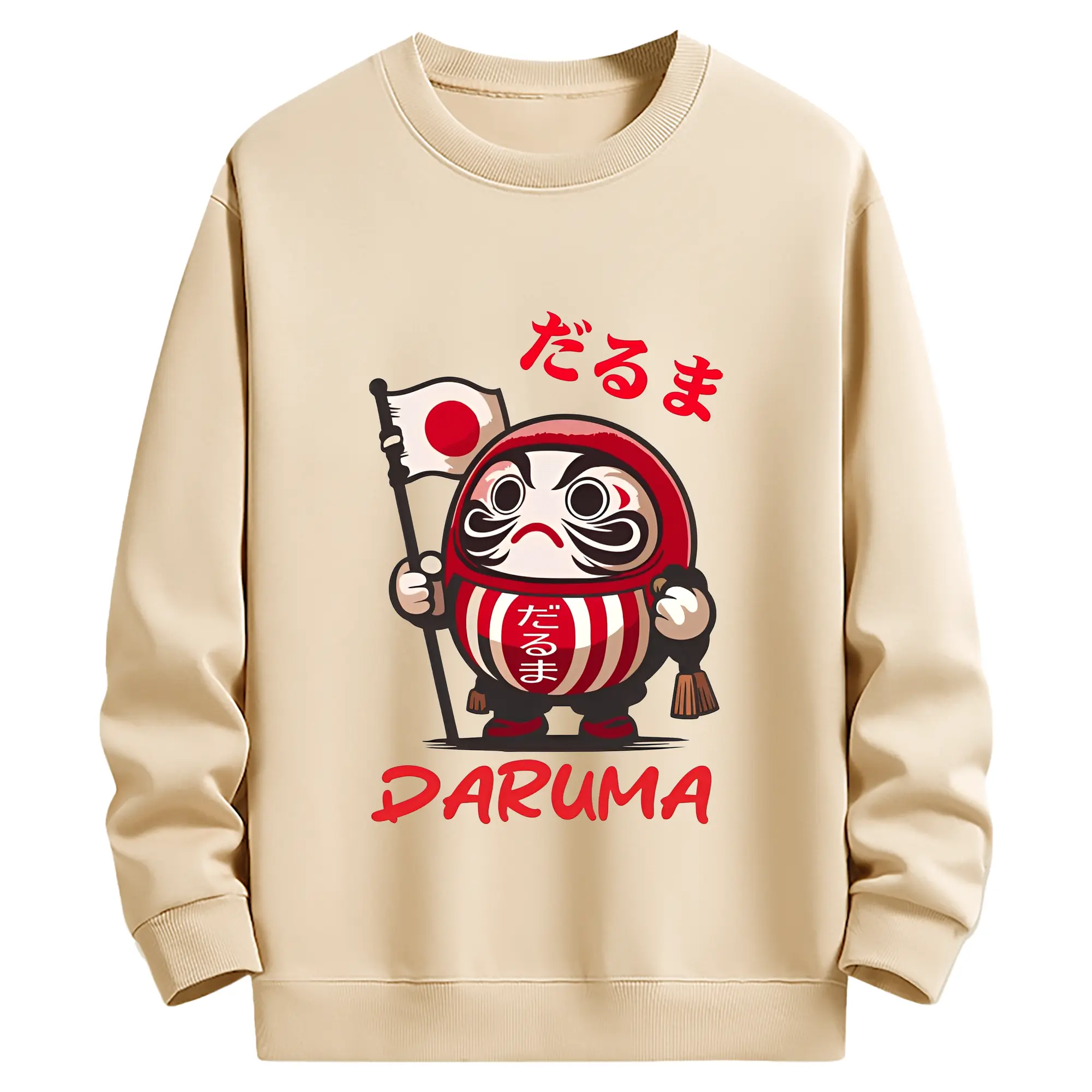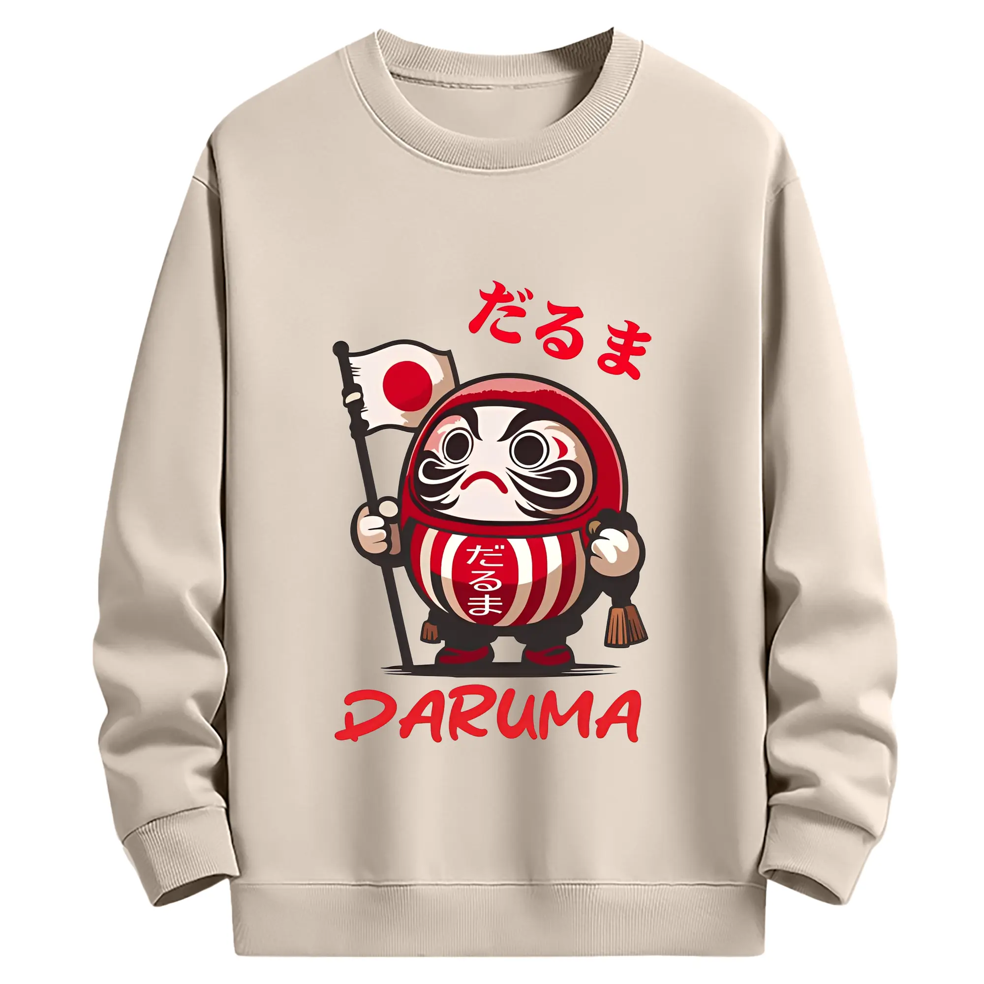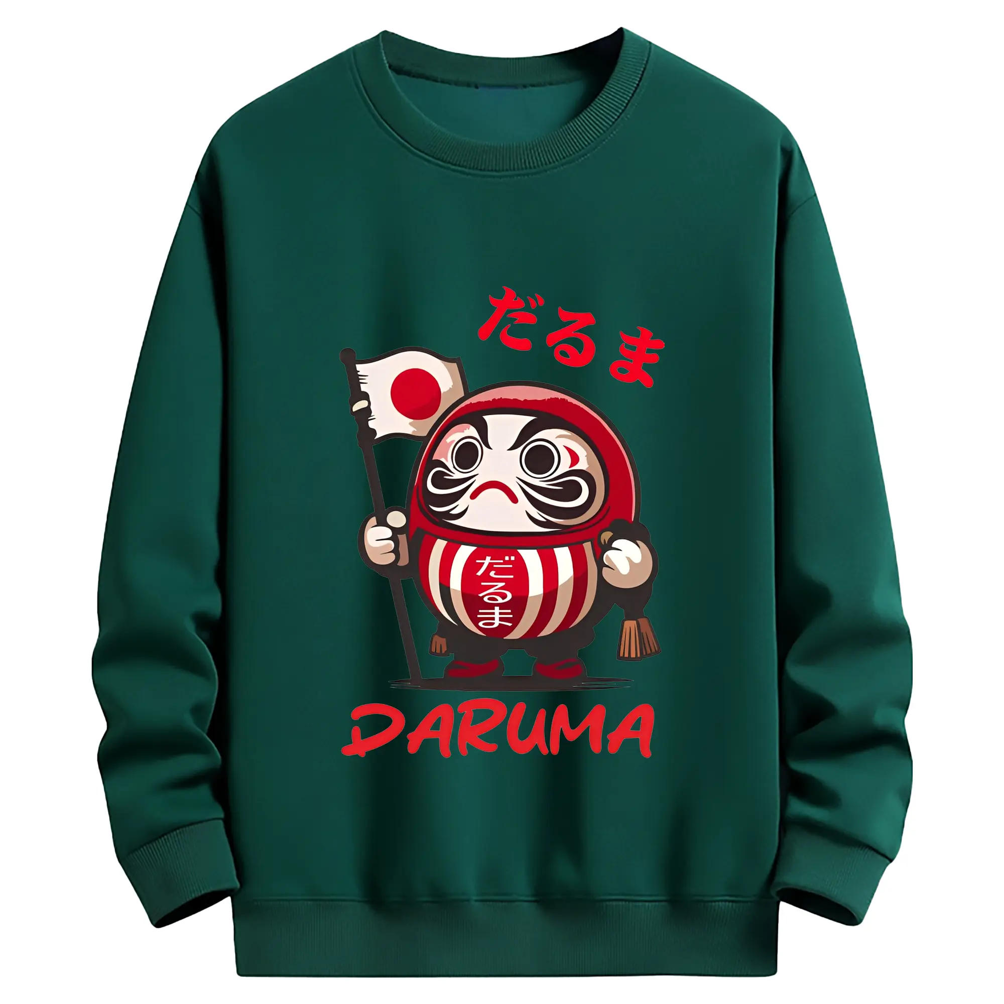 愛国和風スタイル 開運だるまキャラクター - 綿100% 半袖Tシャツ ・ フロントプリント ・ 快適 通気性 ・ 日常使い 散歩 スポーツ用