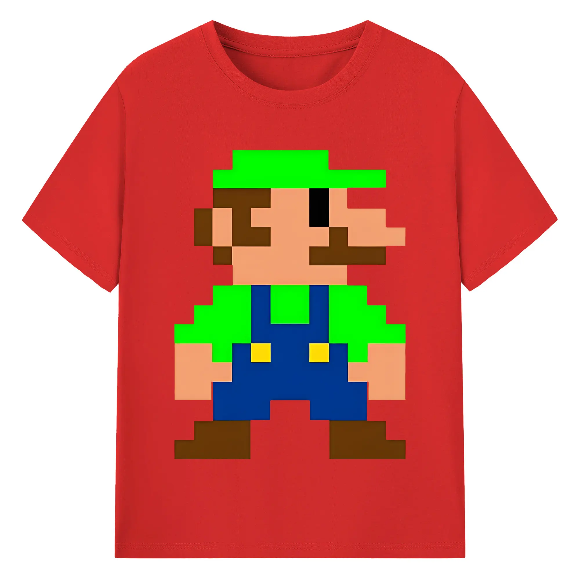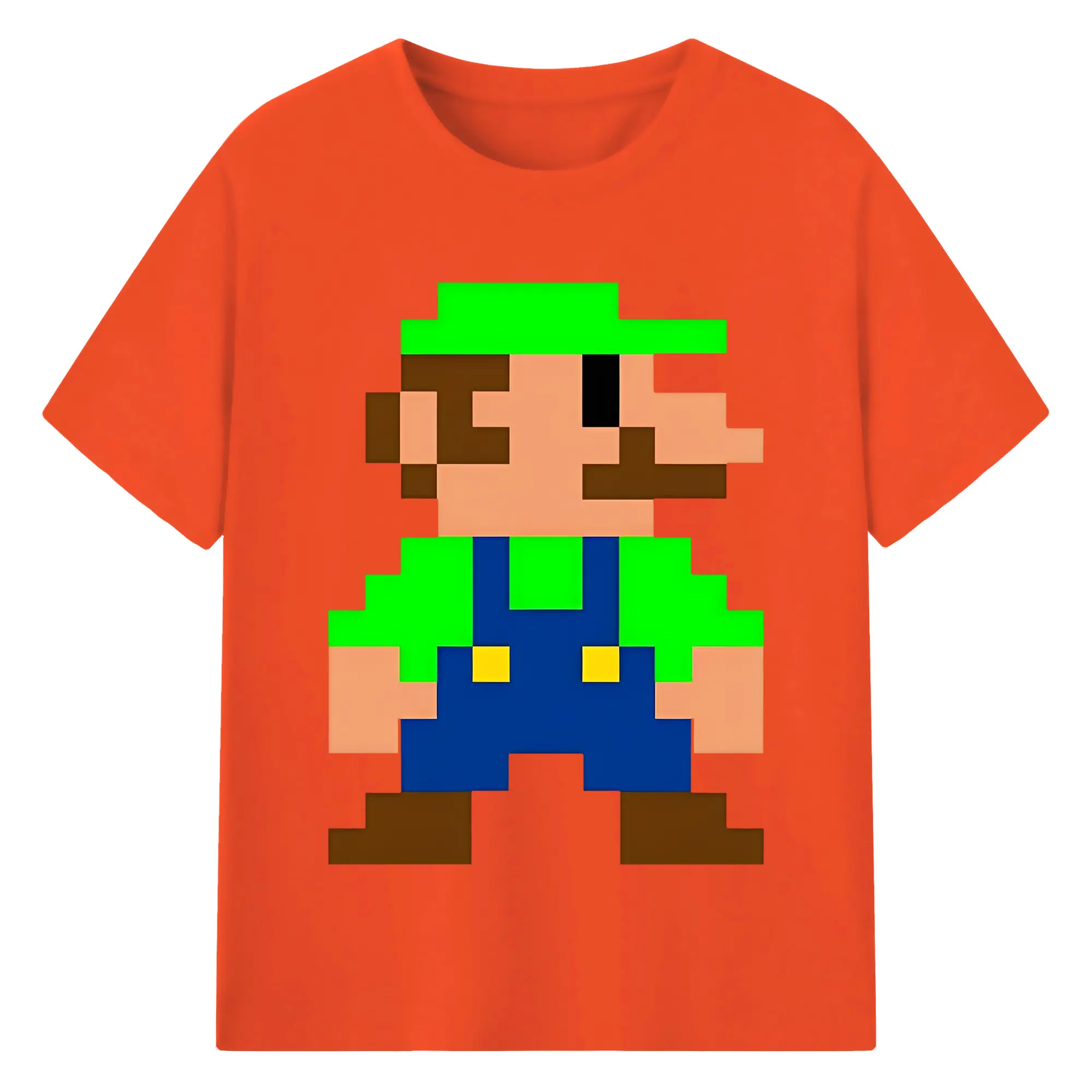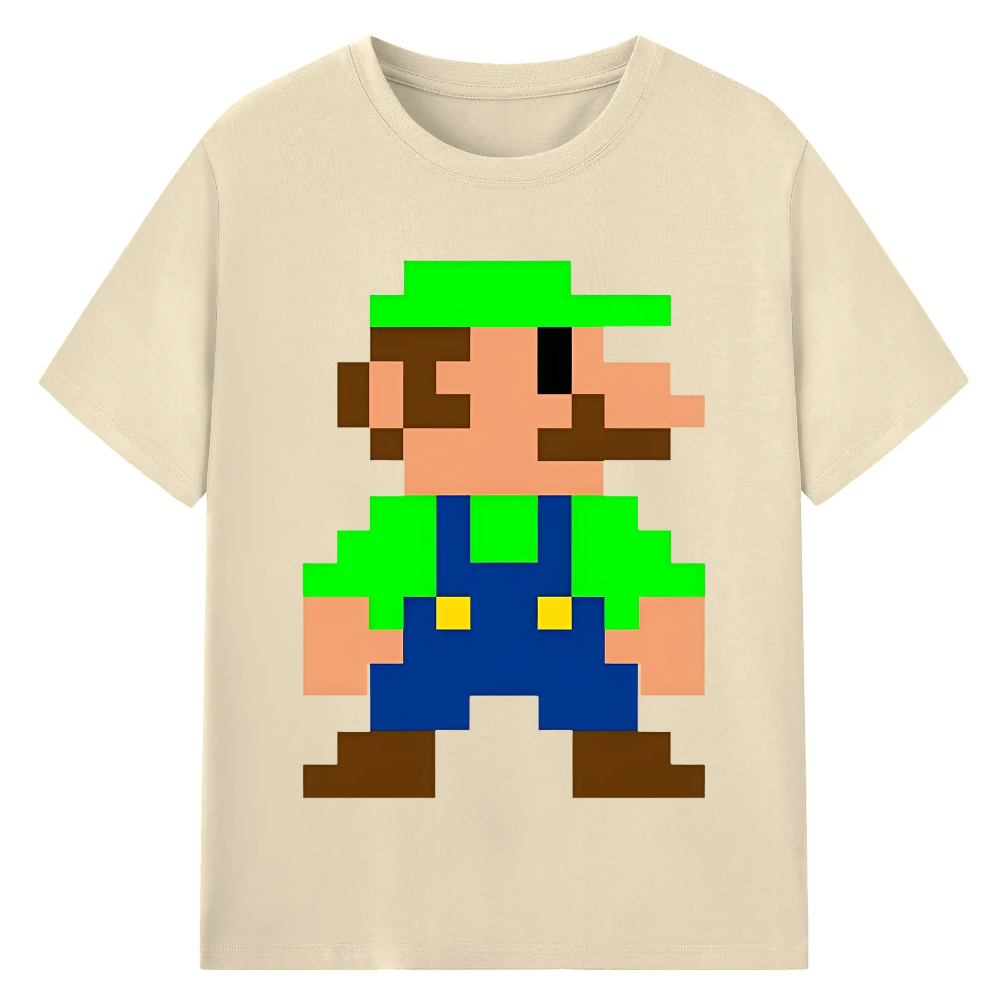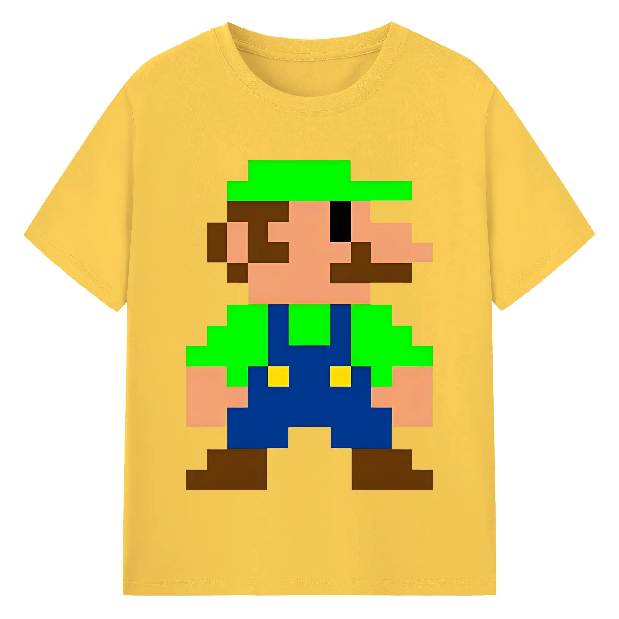 懐かしのスーパーマリオ&ルイージ 8ビット - 綿100% ヴィンテージ風 半袖Tシャツ ・ フロントプリント ・ 柔らか肌触り ・ 通気性 快適 ・ スポーツ カジュアル 外出用