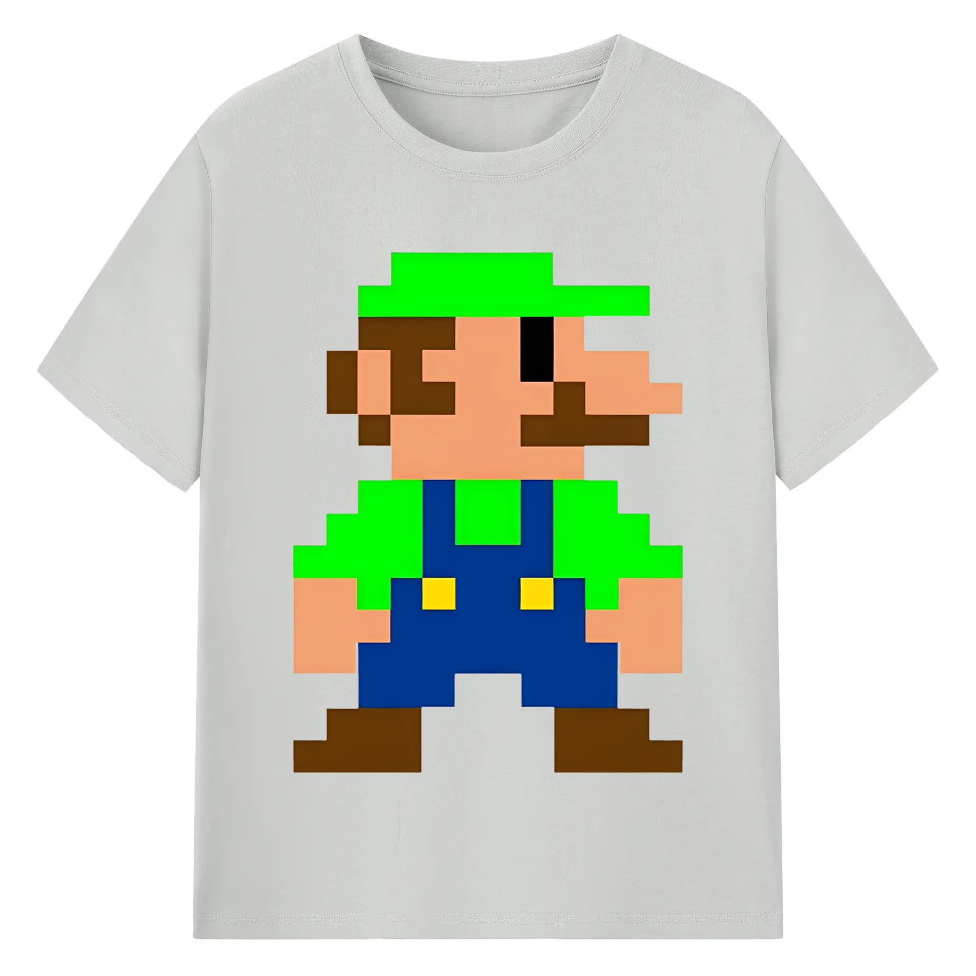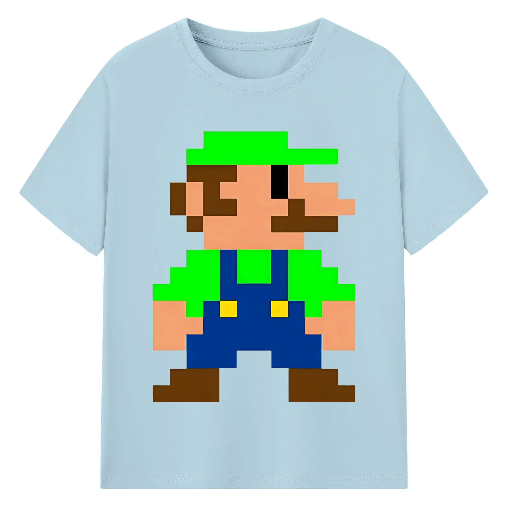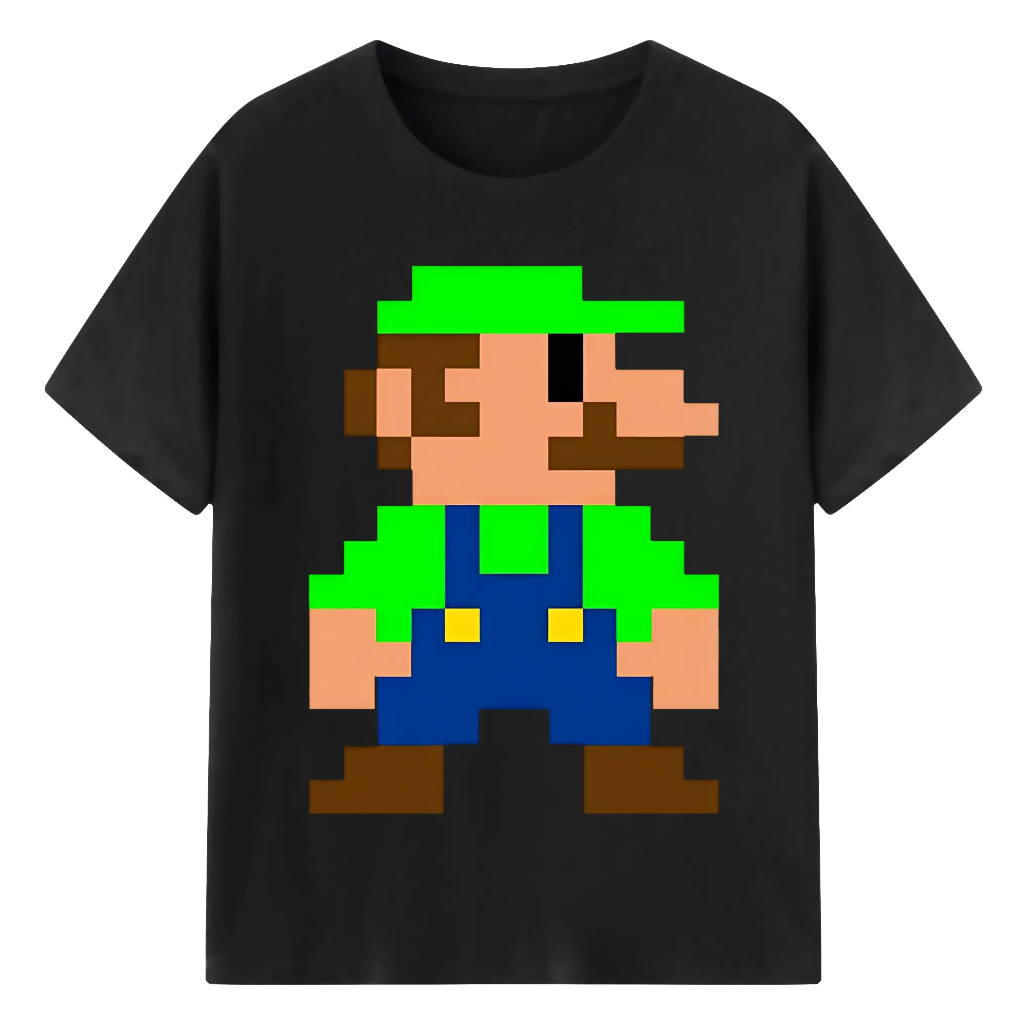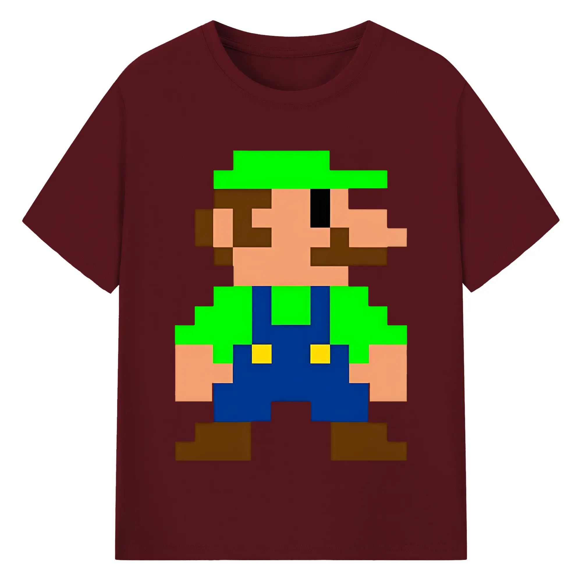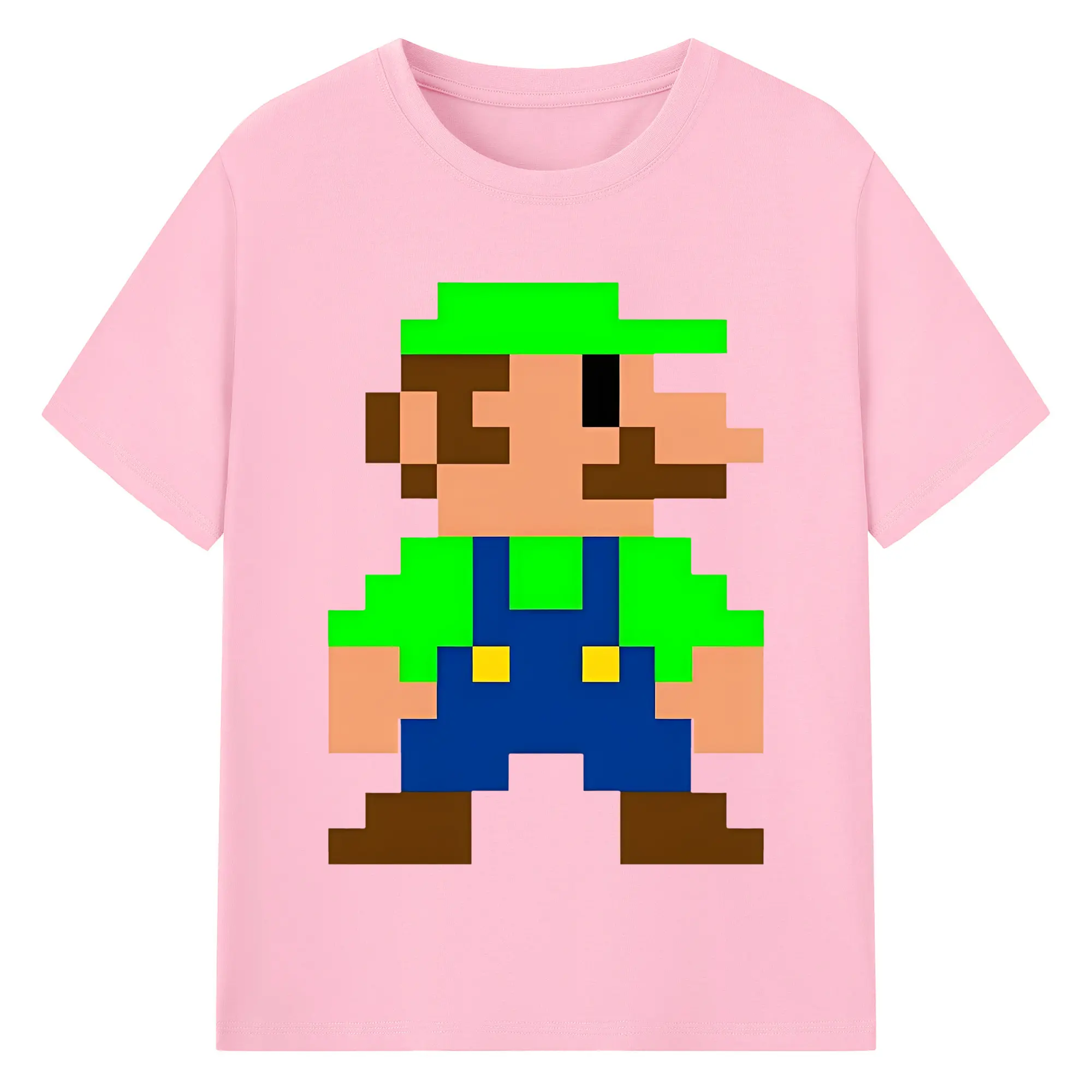 懐かしのスーパーマリオ&ルイージ 8ビット - 綿100% ヴィンテージ風 半袖Tシャツ ・ フロントプリント ・ 柔らか肌触り ・ 通気性 快適 ・ スポーツ カジュアル 外出用