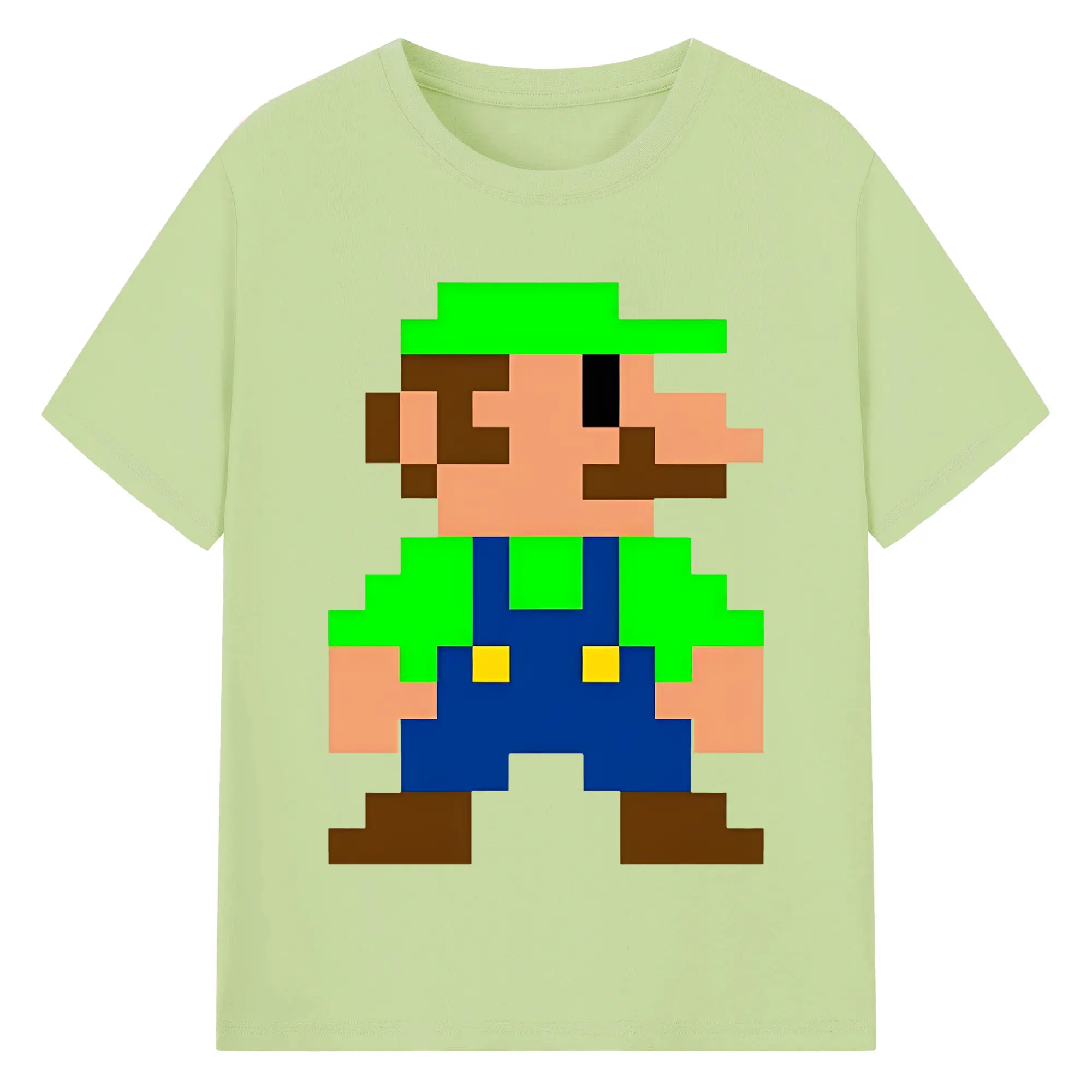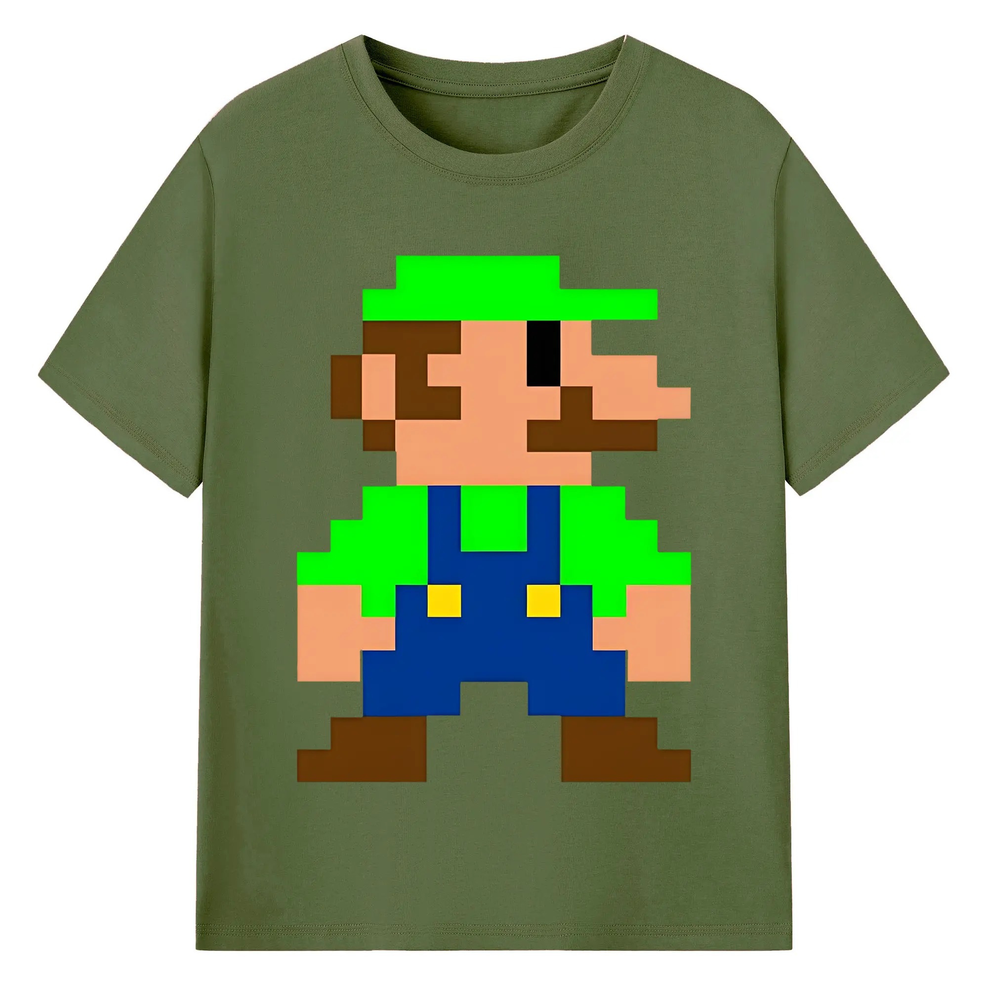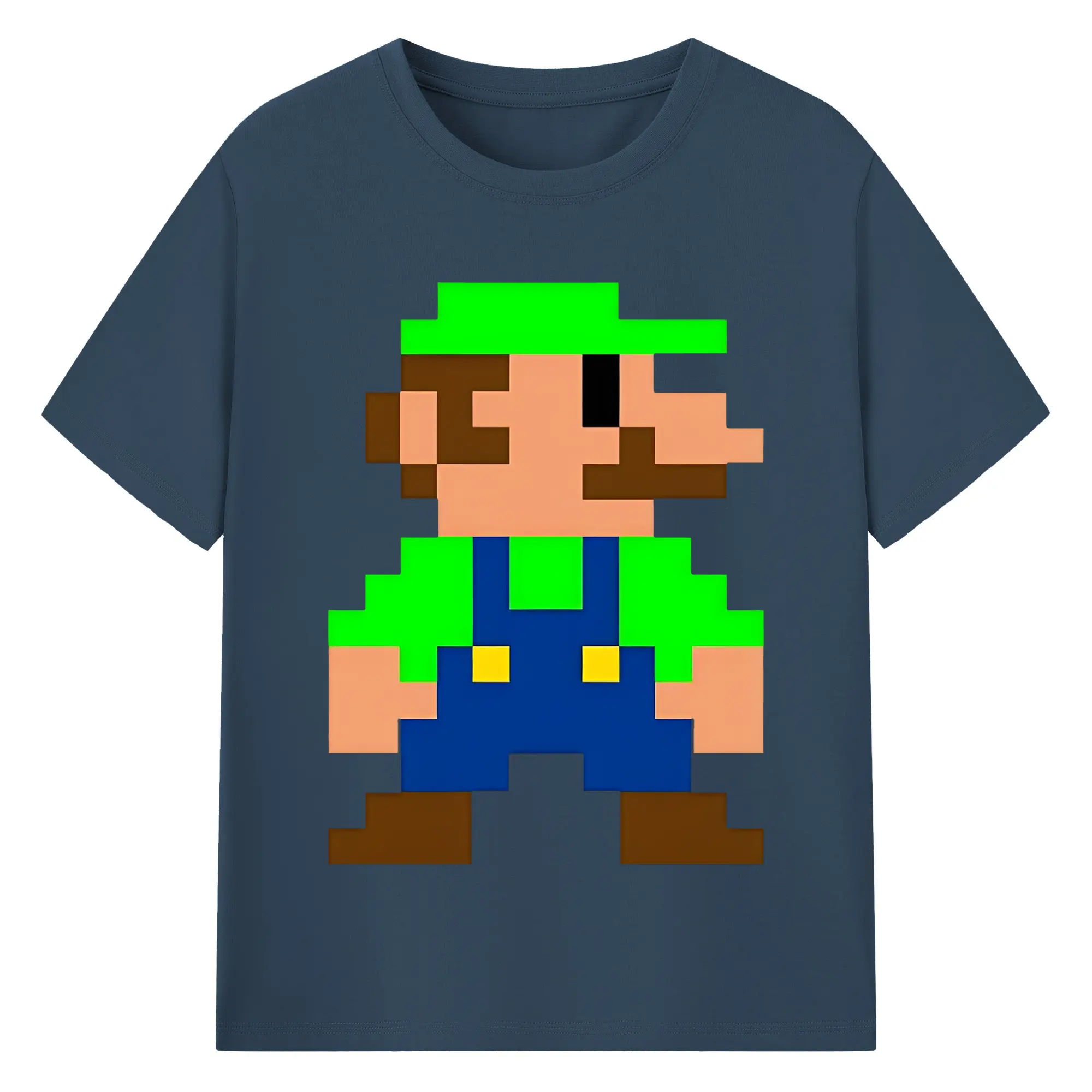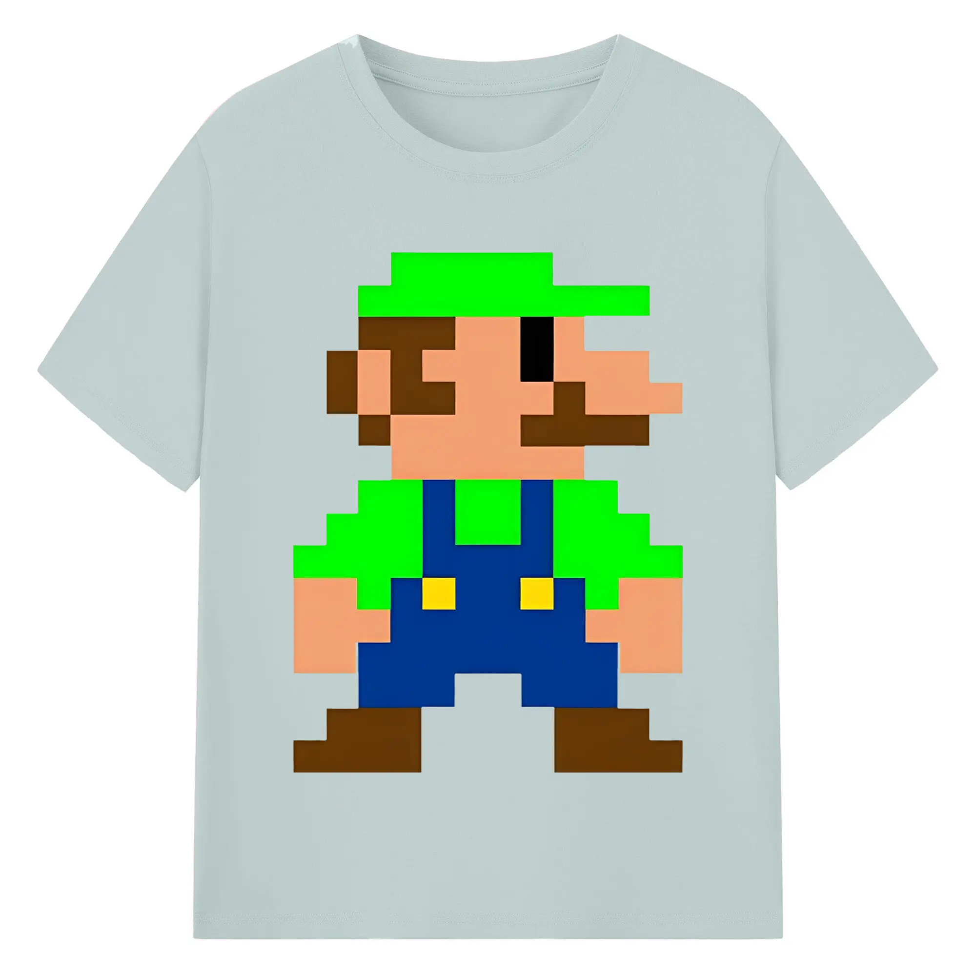 懐かしのスーパーマリオ&ルイージ 8ビット - 綿100% ヴィンテージ風 半袖Tシャツ ・ フロントプリント ・ 柔らか肌触り ・ 通気性 快適 ・ スポーツ カジュアル 外出用