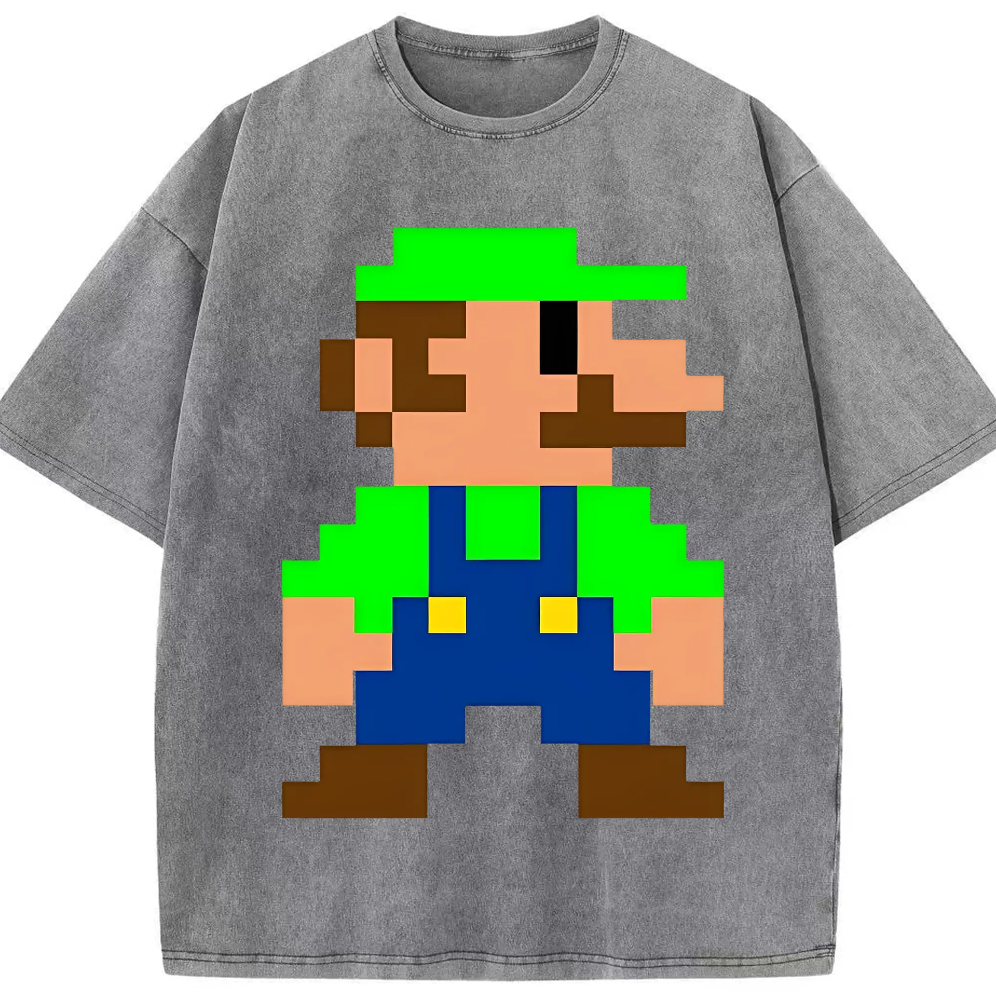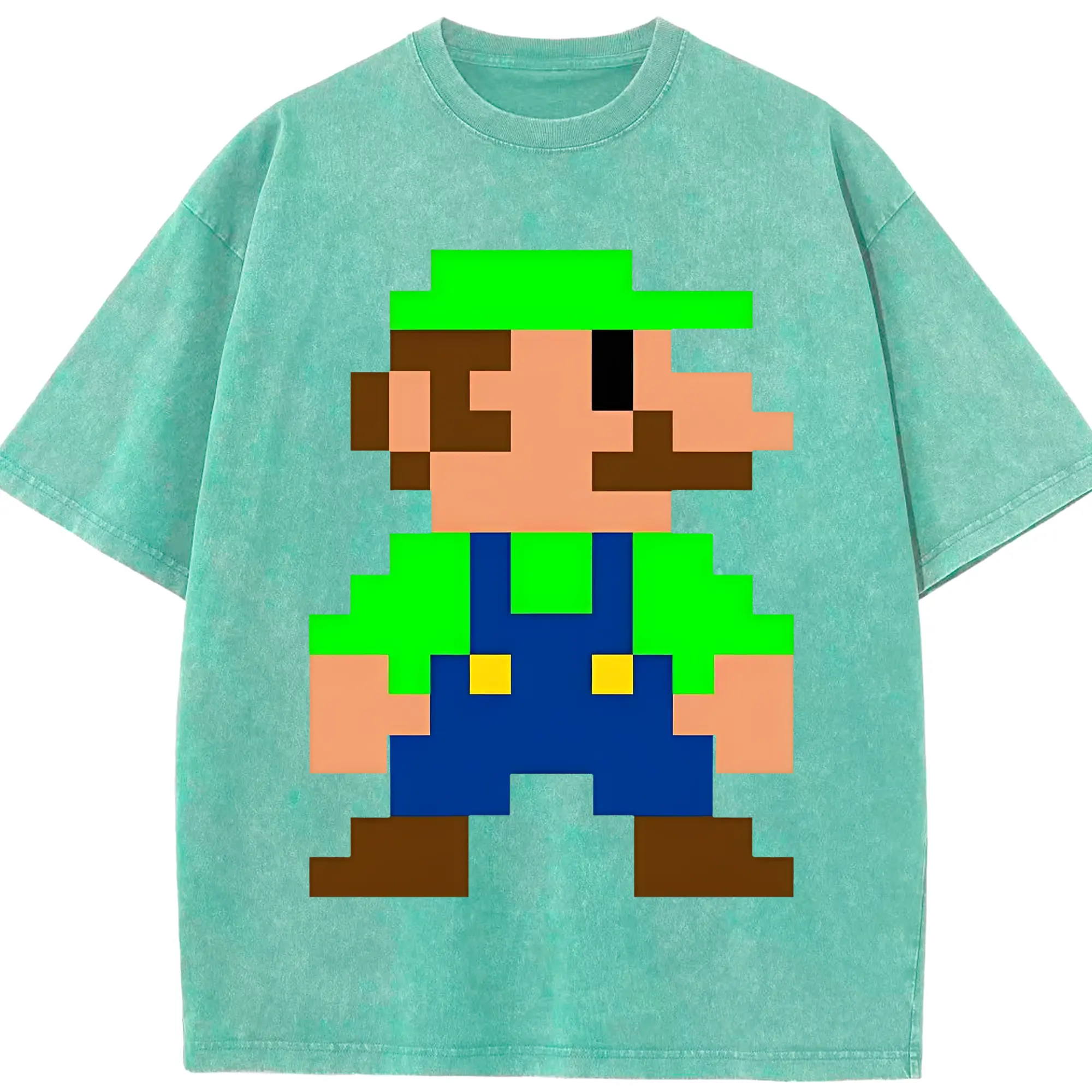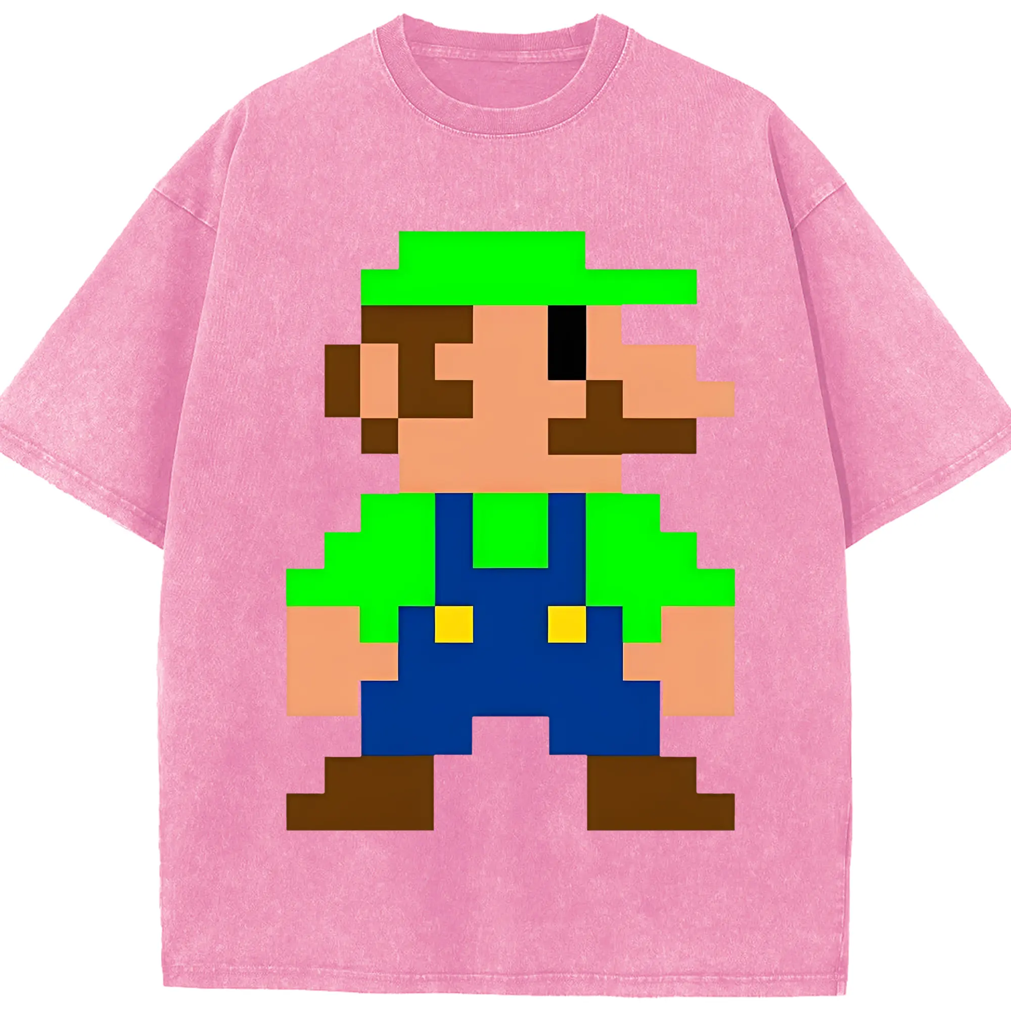 懐かしのスーパーマリオ&ルイージ 8ビット - 綿100% 半袖Tシャツ ・ フロントプリント ・ 快適 通気性 ・ 日常使い 散歩 スポーツ用