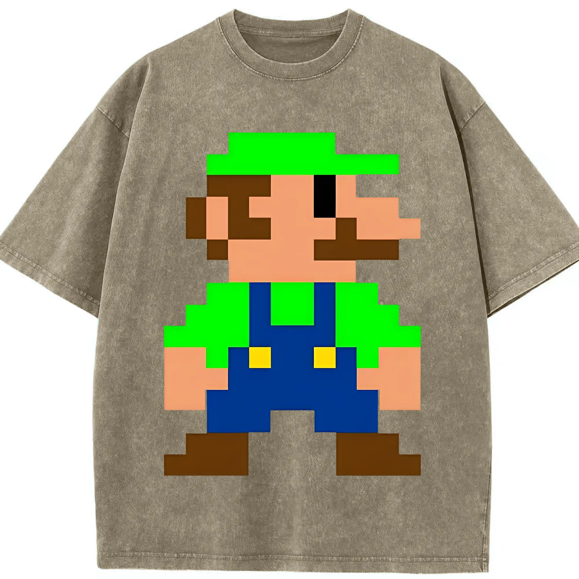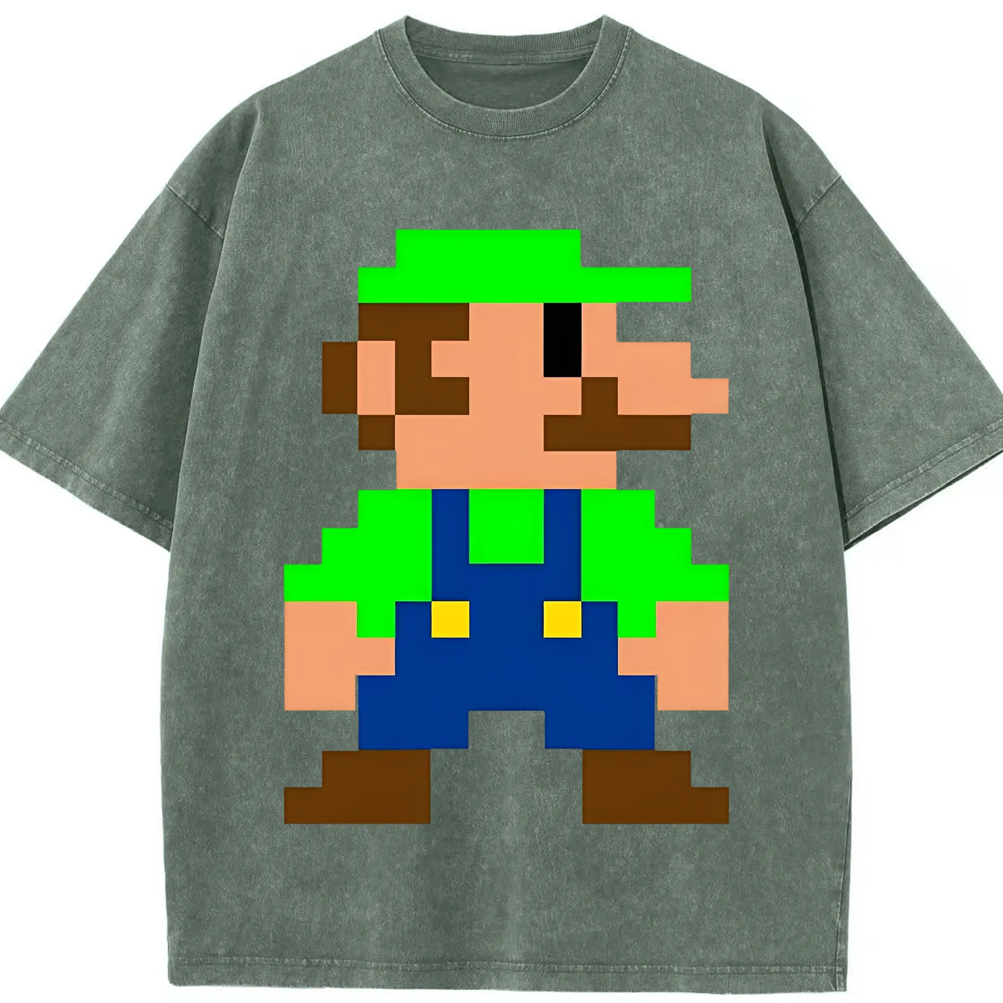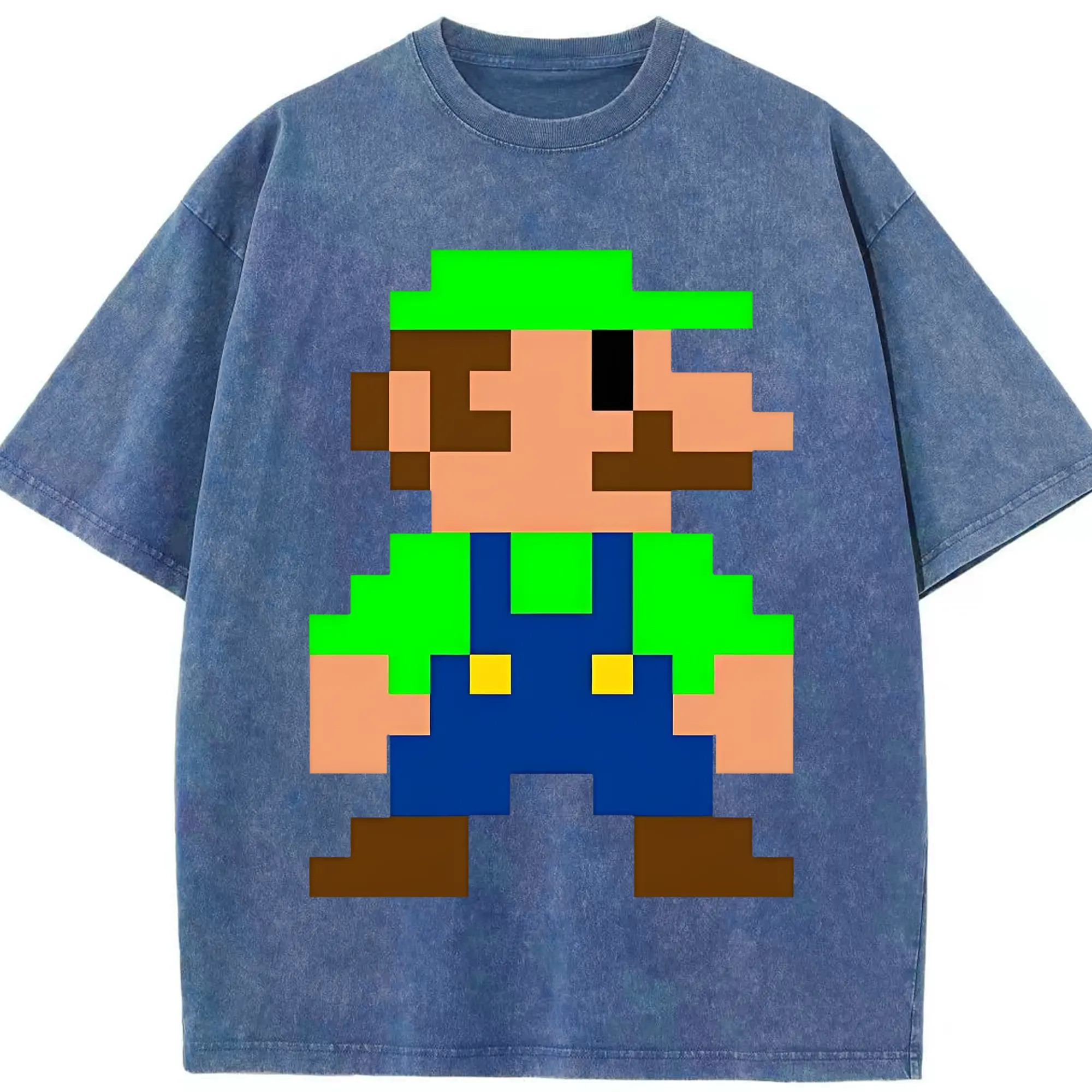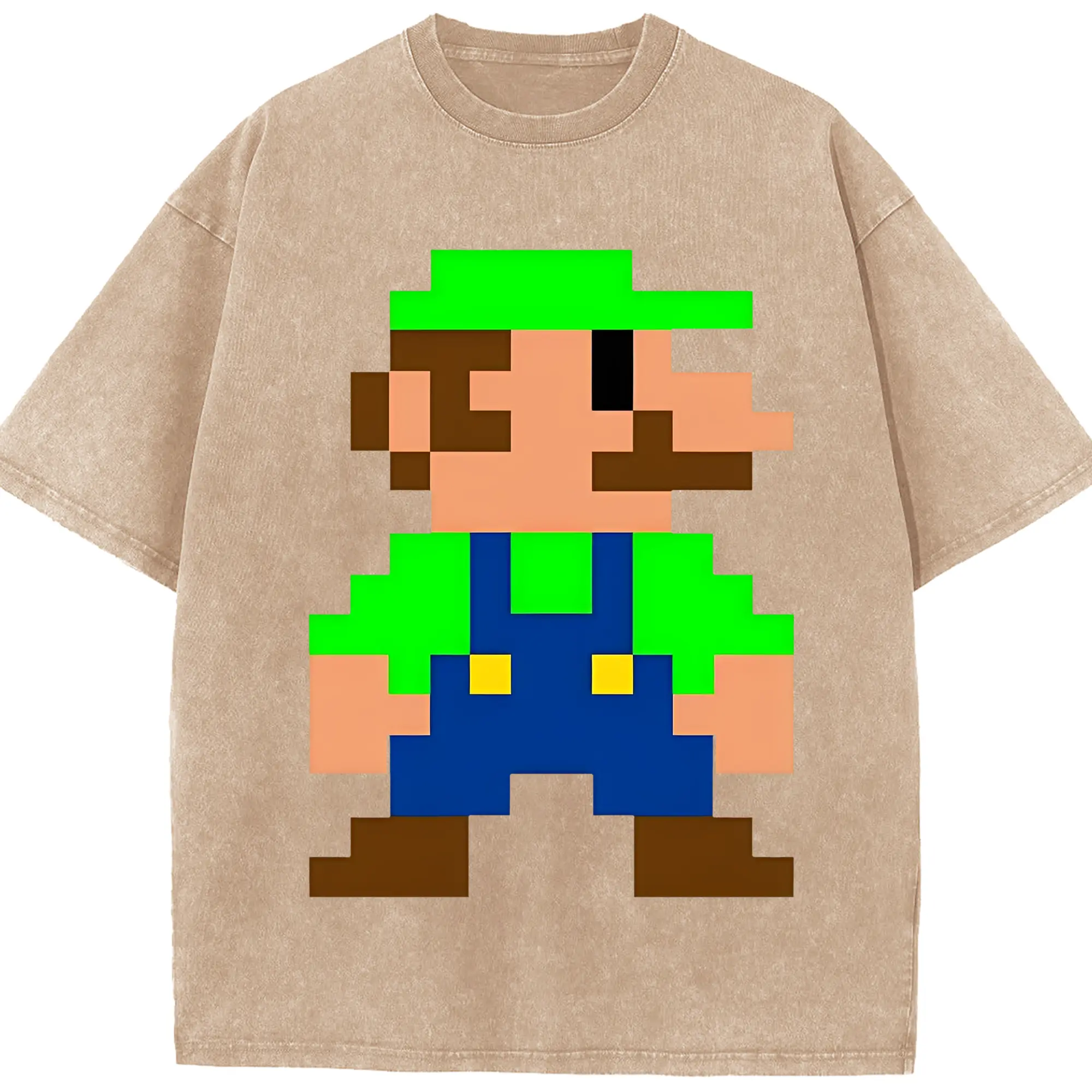 懐かしのスーパーマリオ&ルイージ 8ビット - 綿100% 半袖Tシャツ ・ フロントプリント ・ 快適 通気性 ・ 日常使い 散歩 スポーツ用