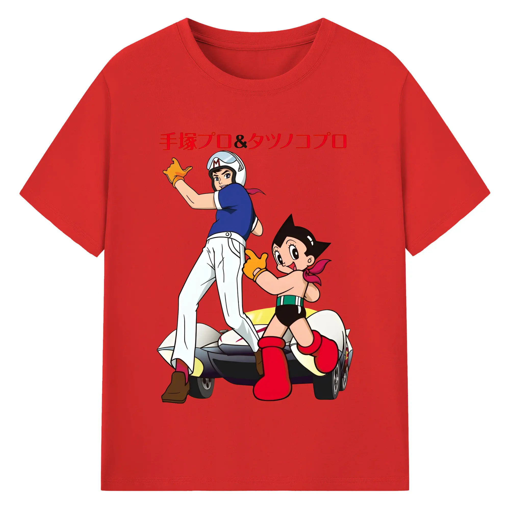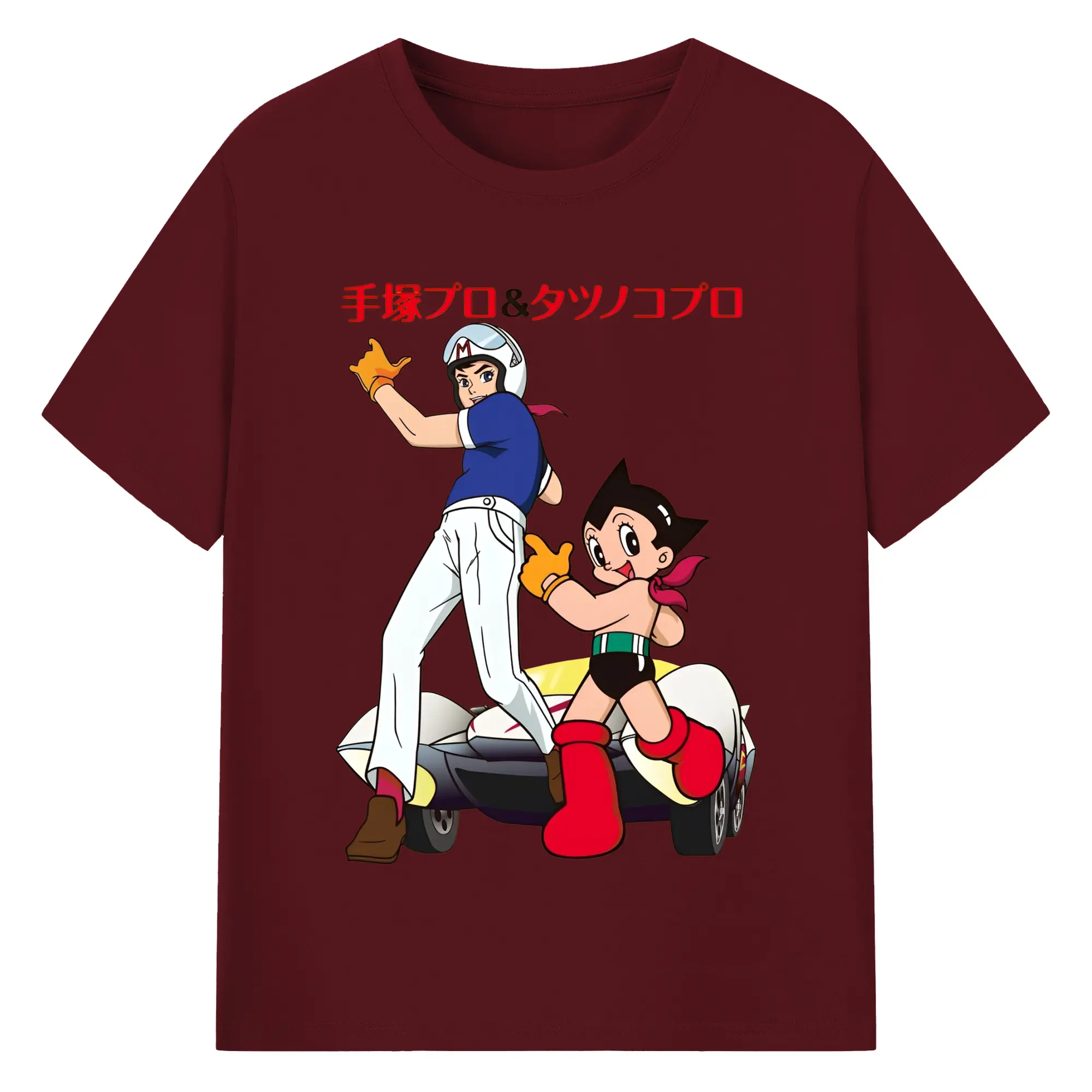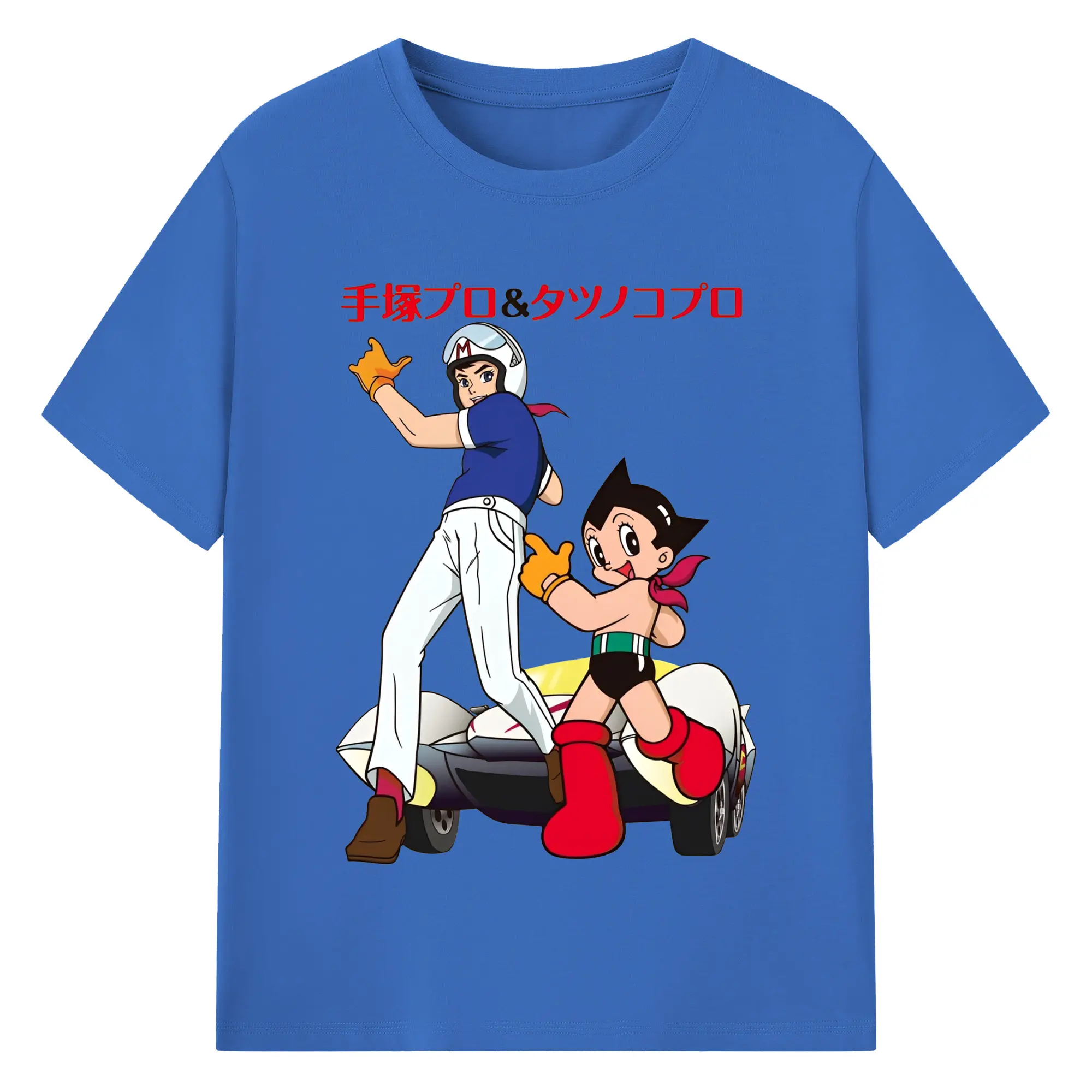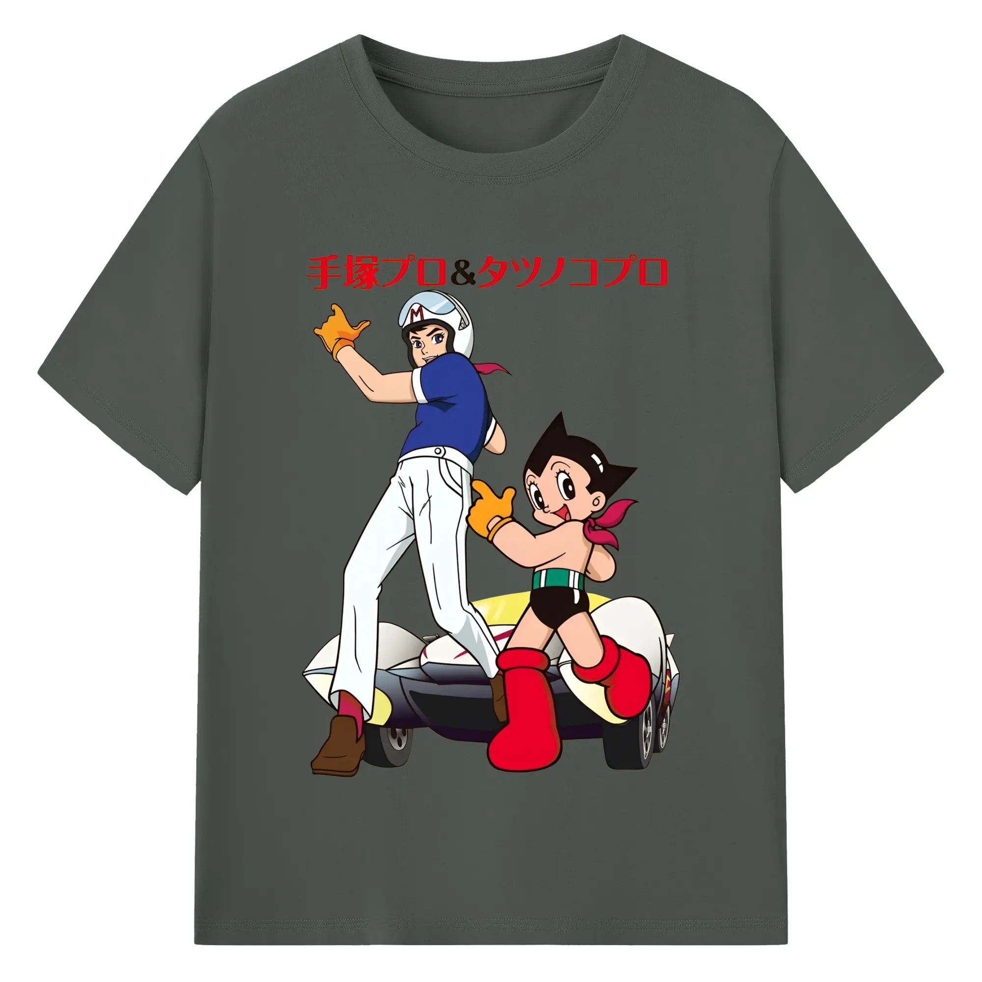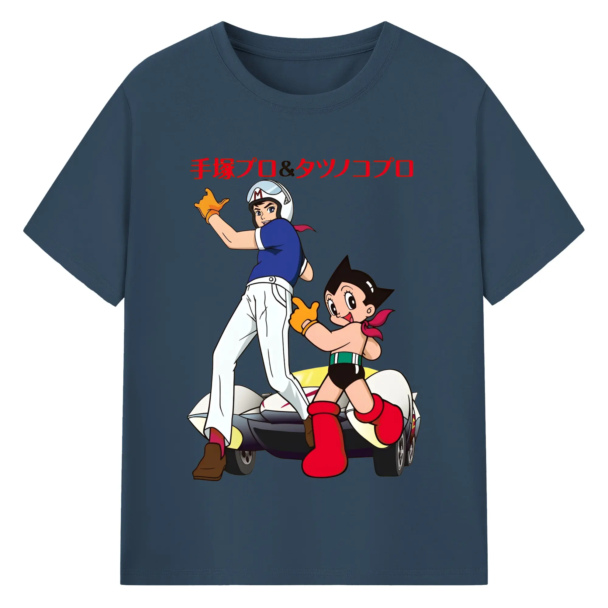 手塚プロ&タツノコプロ 鉄腕アトム - 綿100% ヴィンテージ風 半袖Tシャツ ・ フロントプリント ・ 柔らか肌触り ・ 通気性 快適 ・ スポーツ カジュアル 外出用