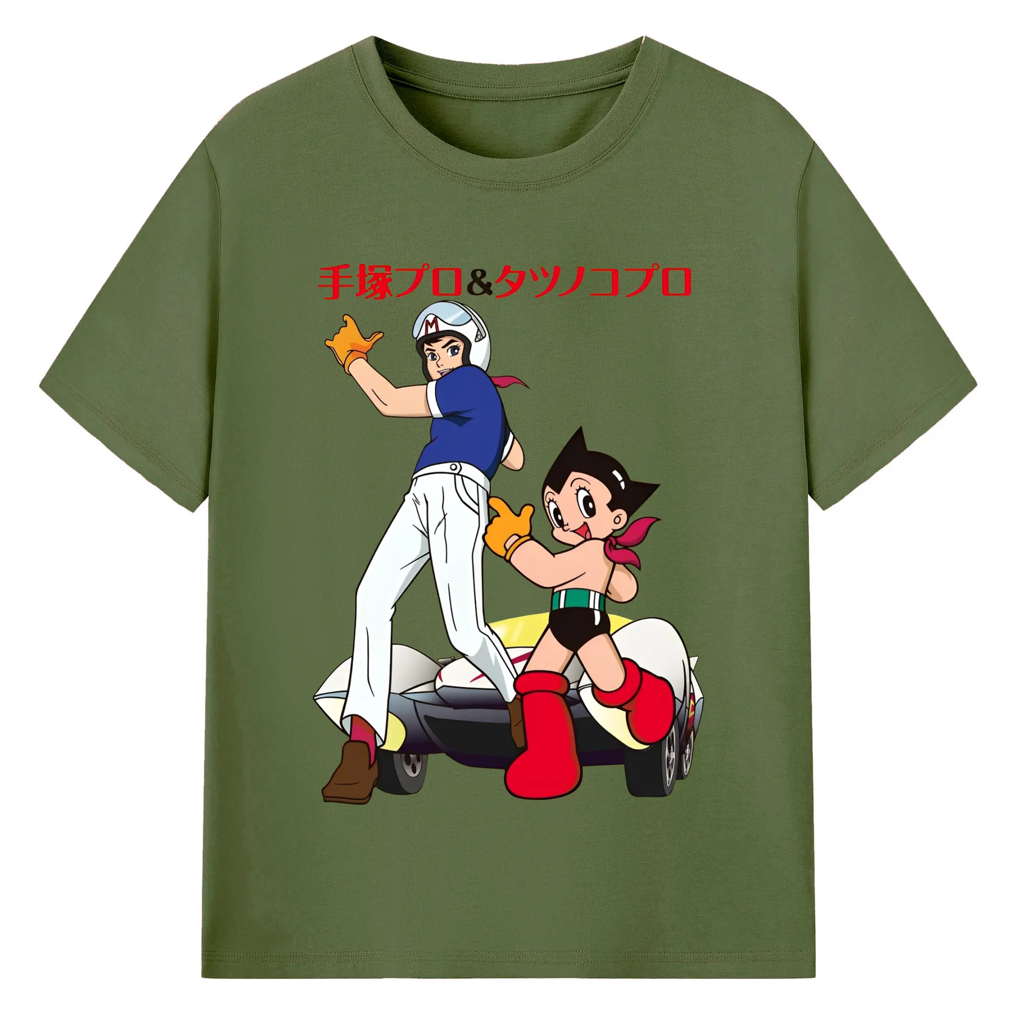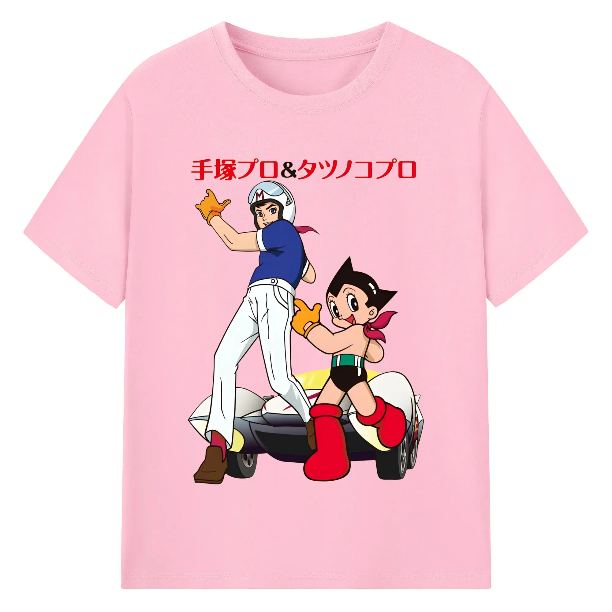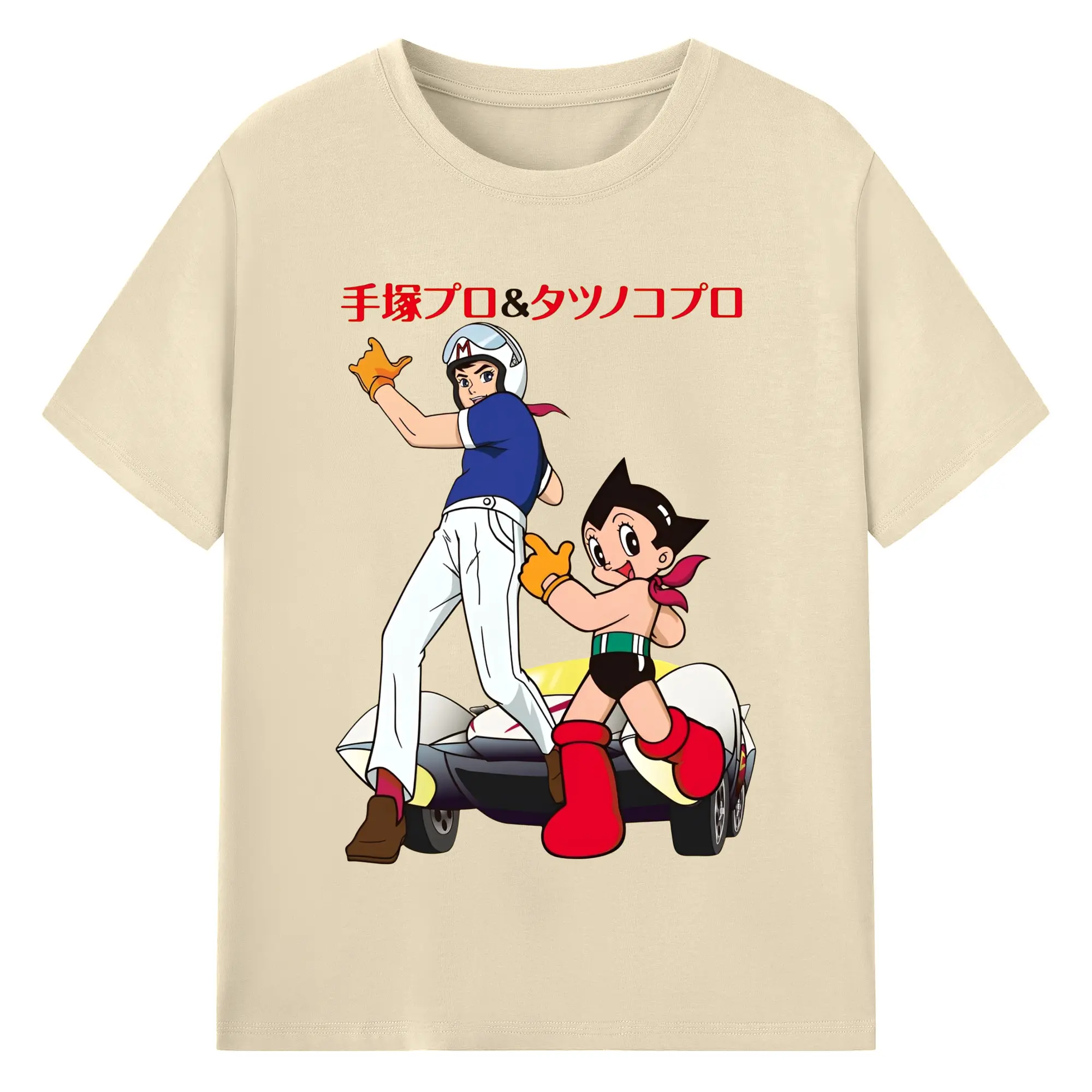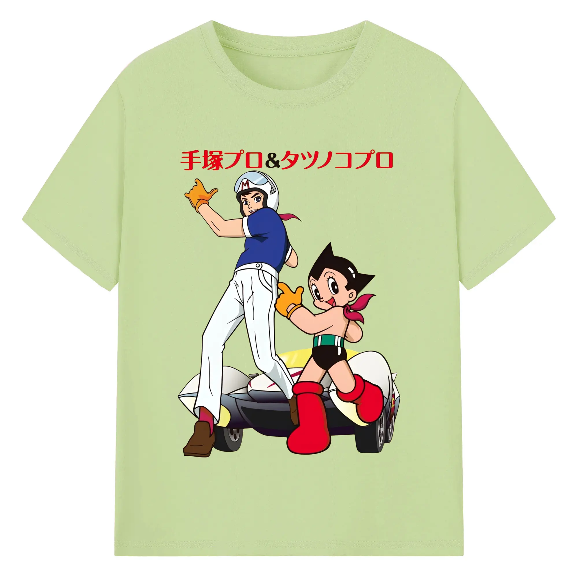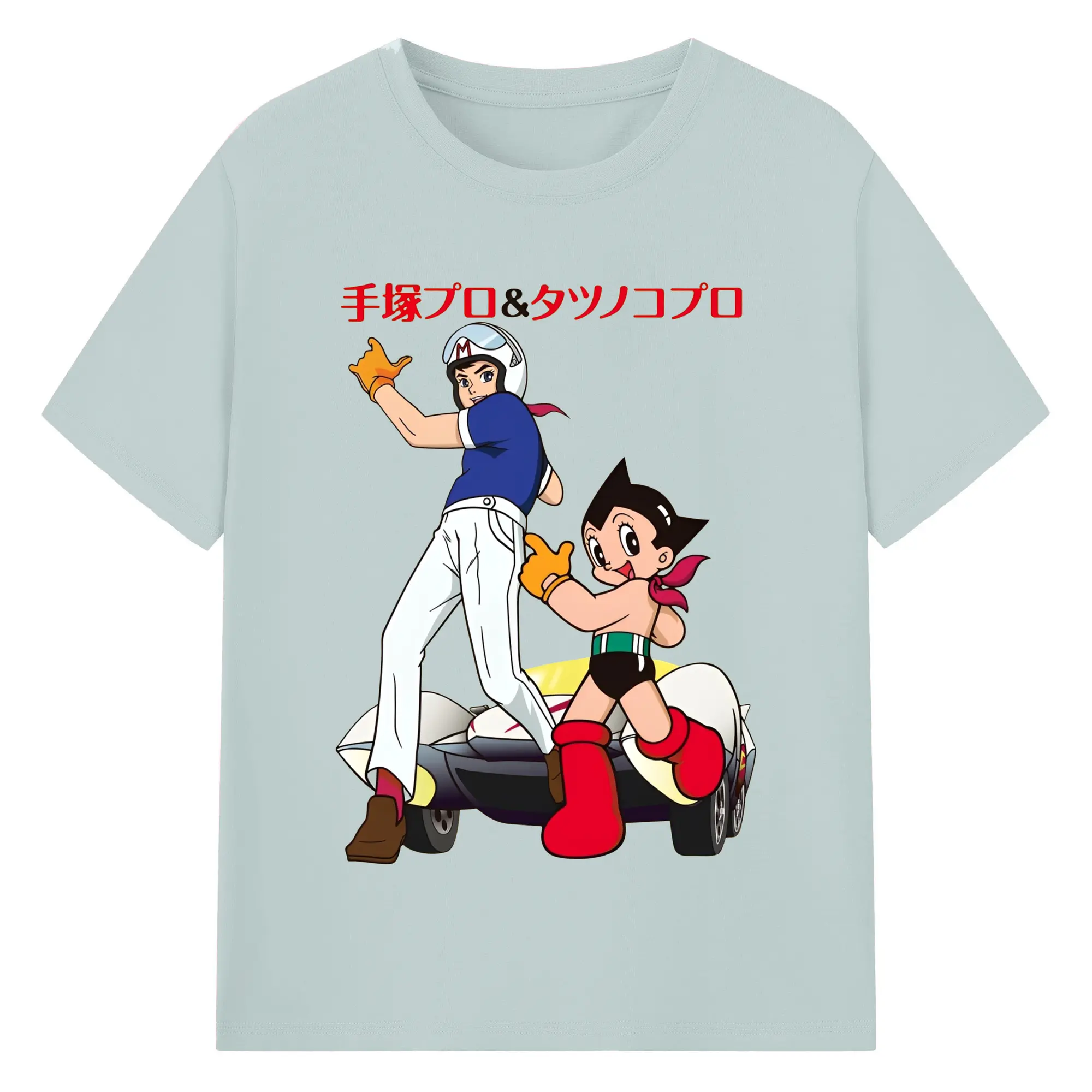 手塚プロ&タツノコプロ 鉄腕アトム - 綿100% ヴィンテージ風 半袖Tシャツ ・ フロントプリント ・ 柔らか肌触り ・ 通気性 快適 ・ スポーツ カジュアル 外出用