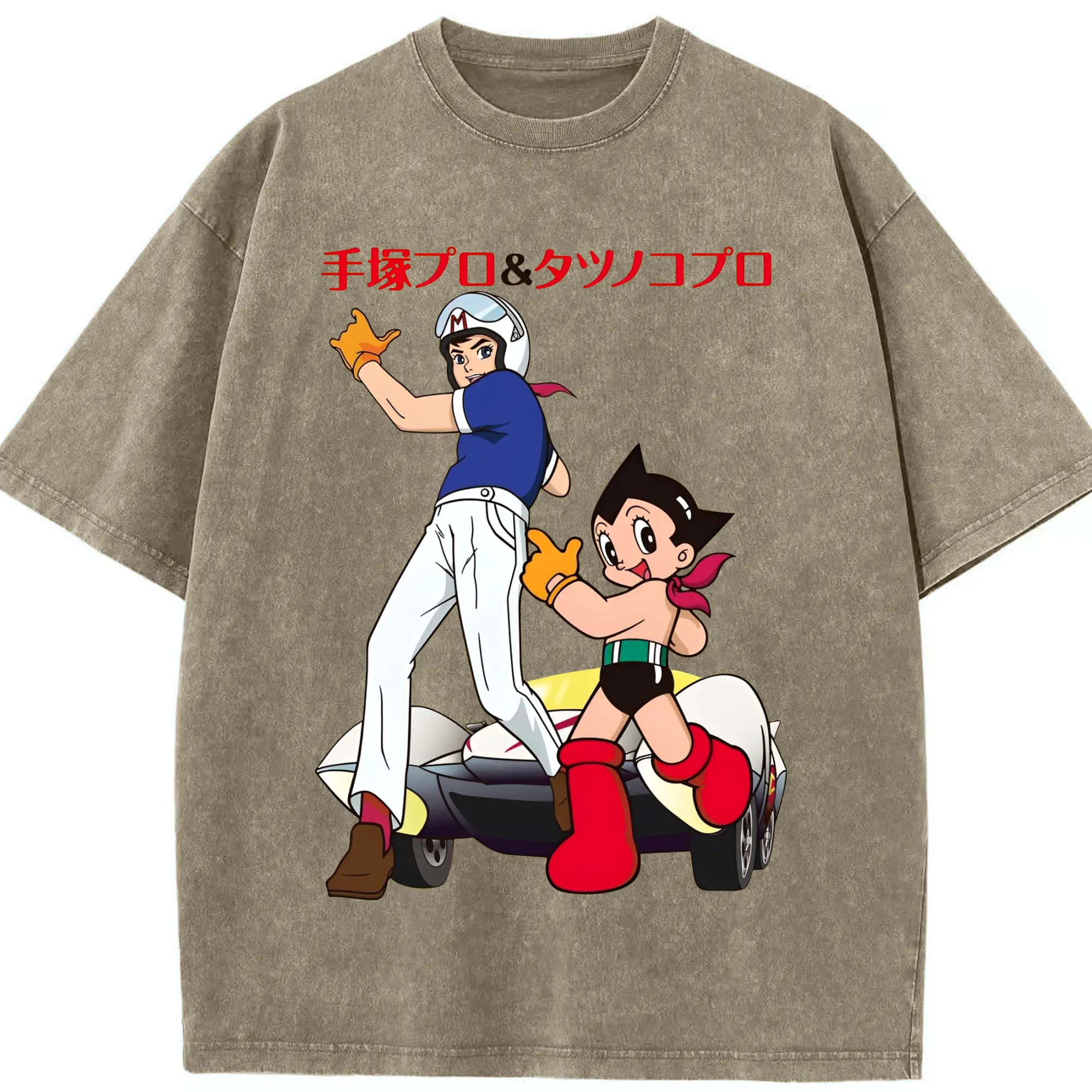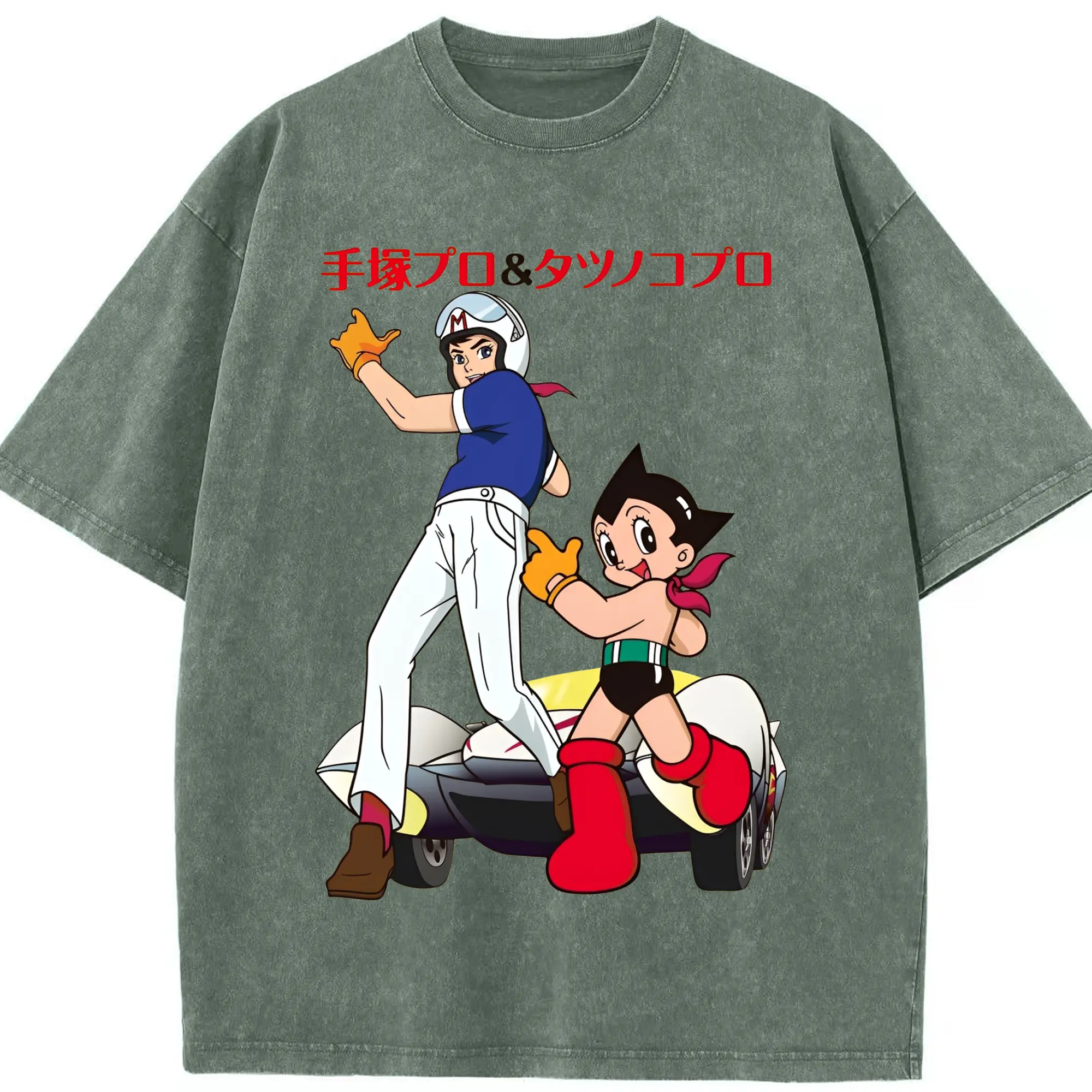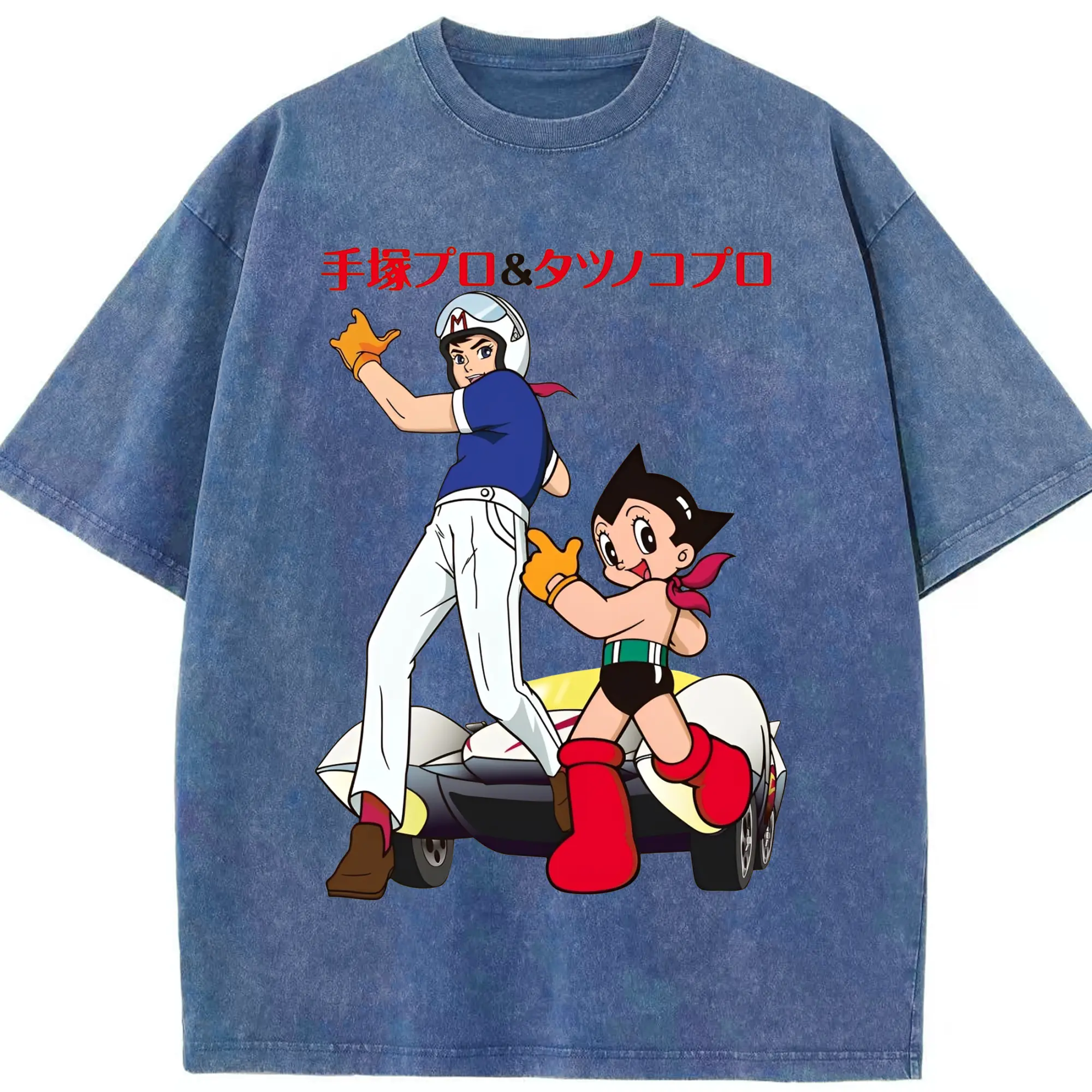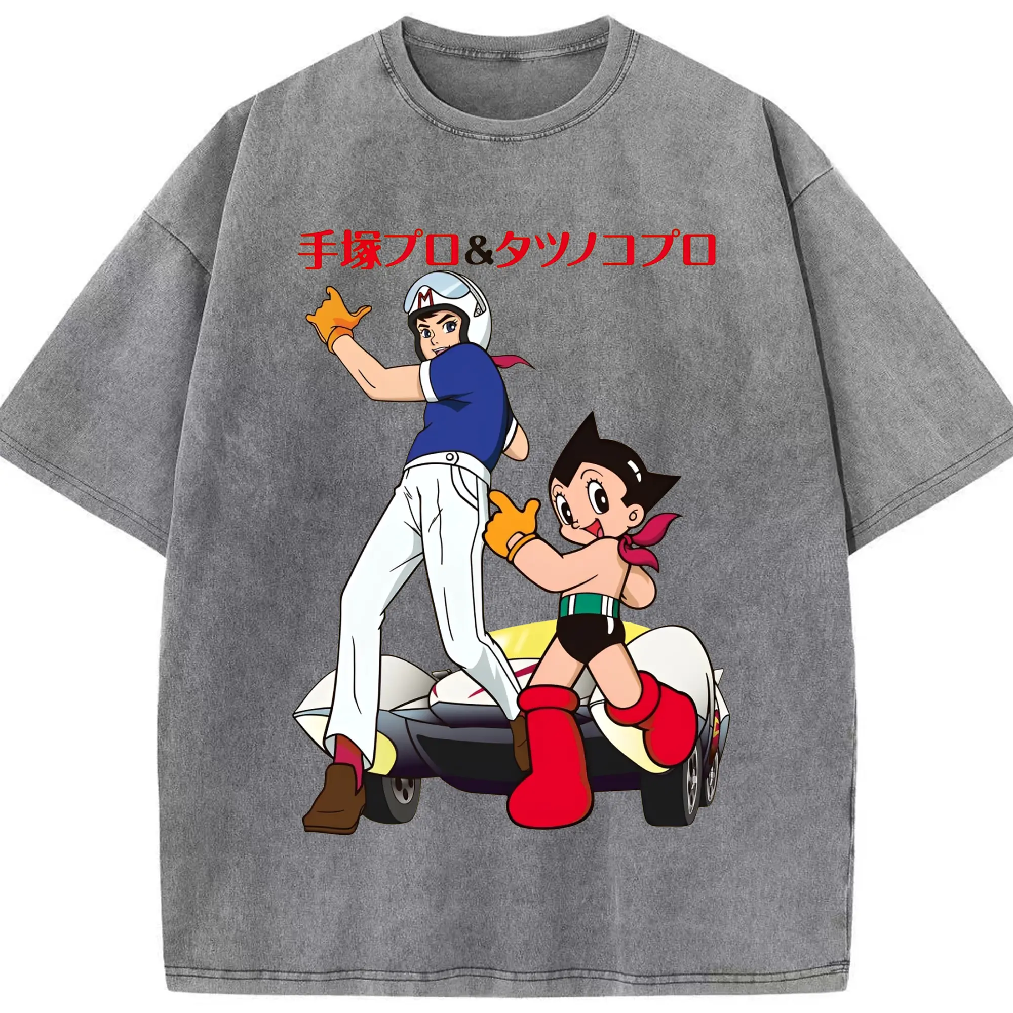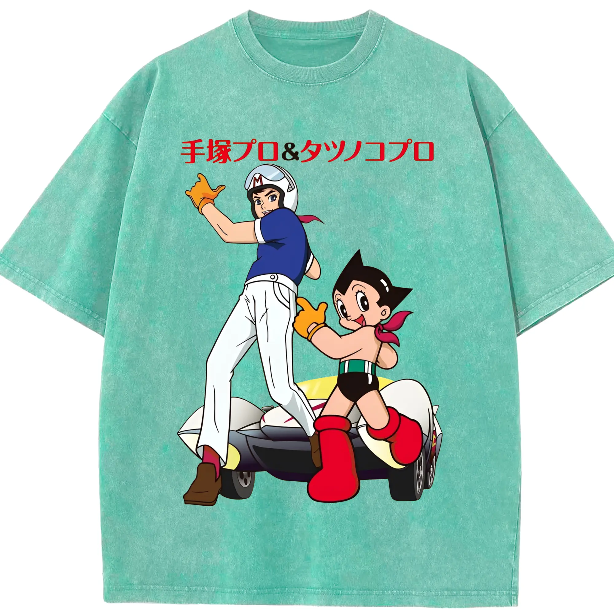 手塚プロ&タツノコプロ 鉄腕アトム - 綿100% 半袖Tシャツ ・ フロントプリント ・ 快適 通気性 ・ 日常使い 散歩 スポーツ用