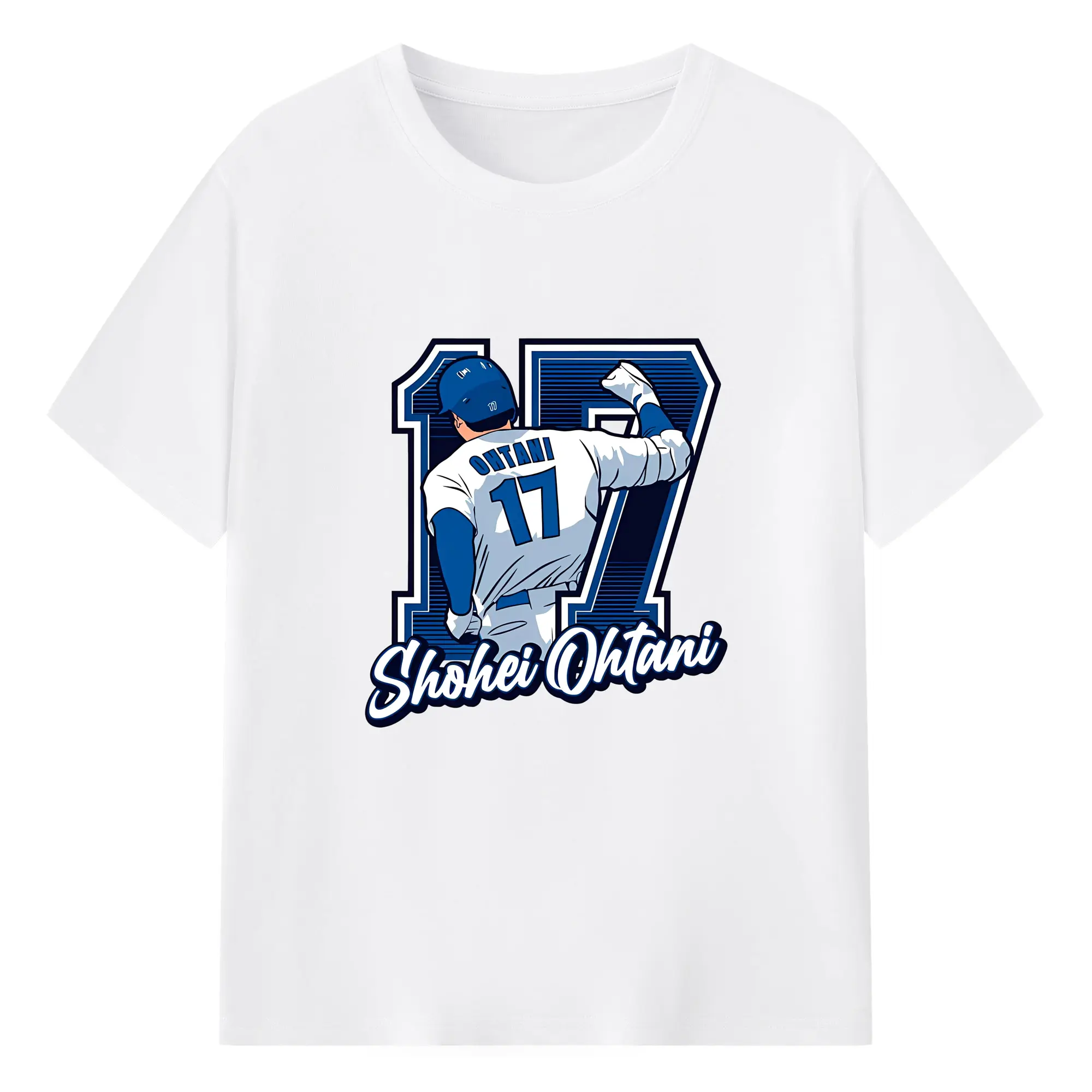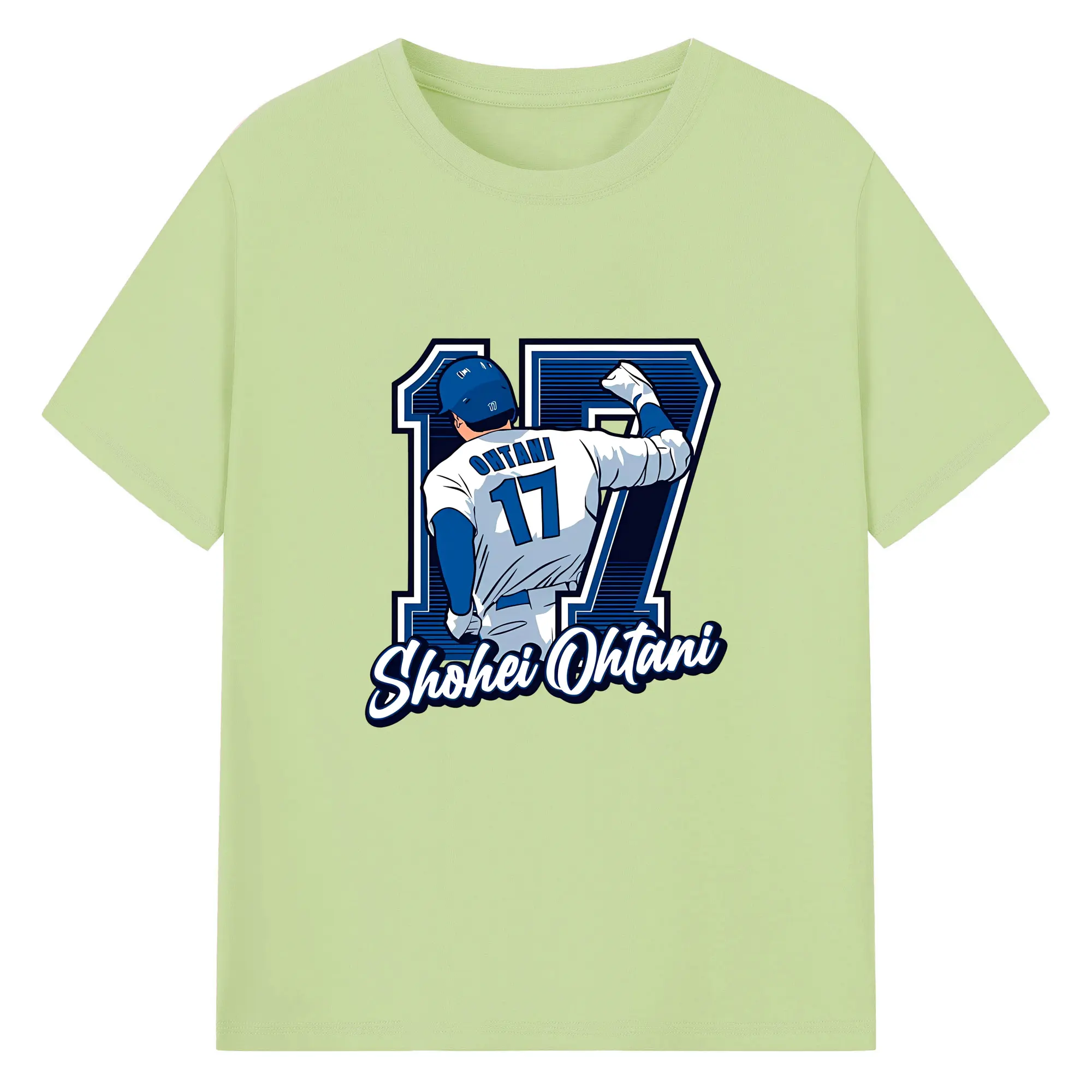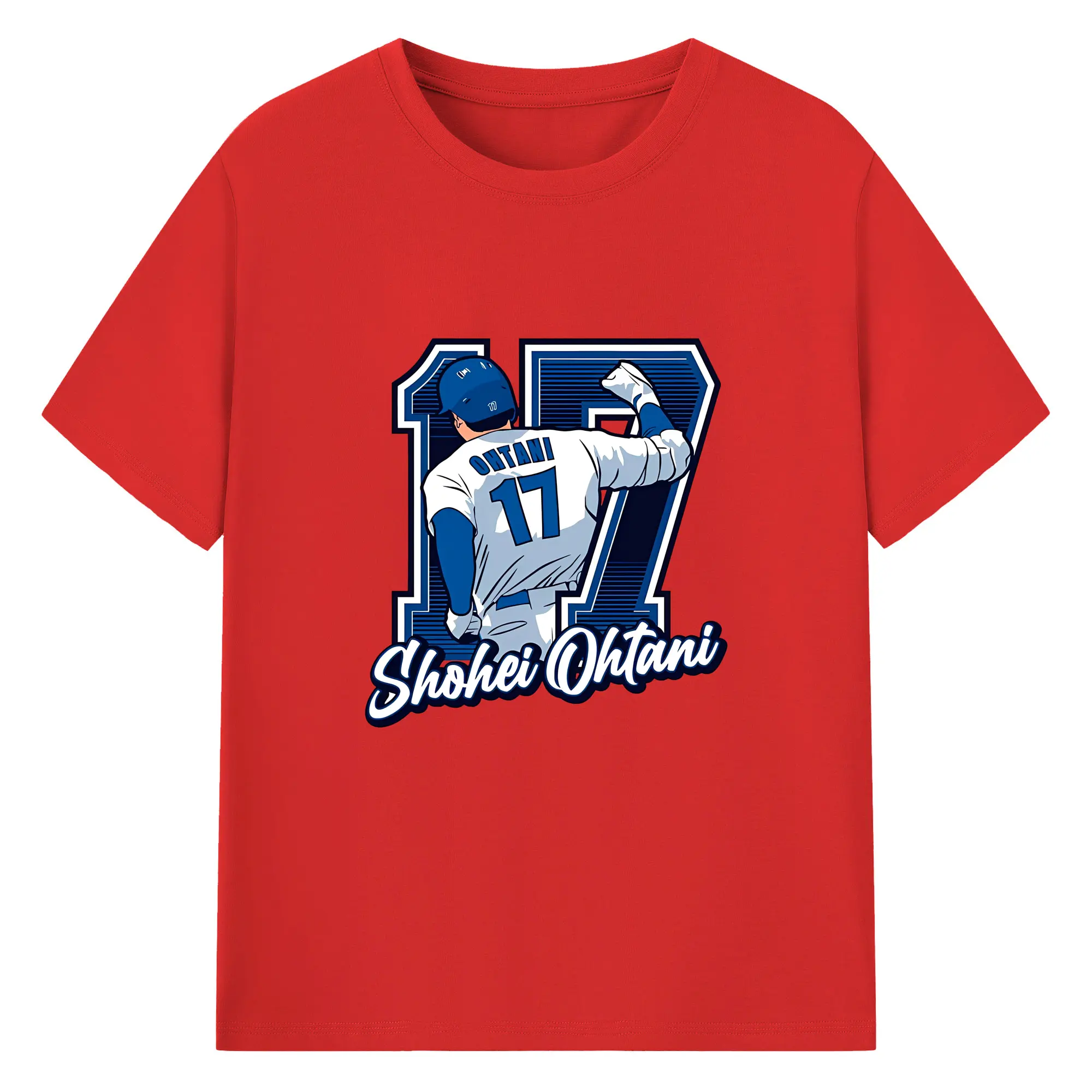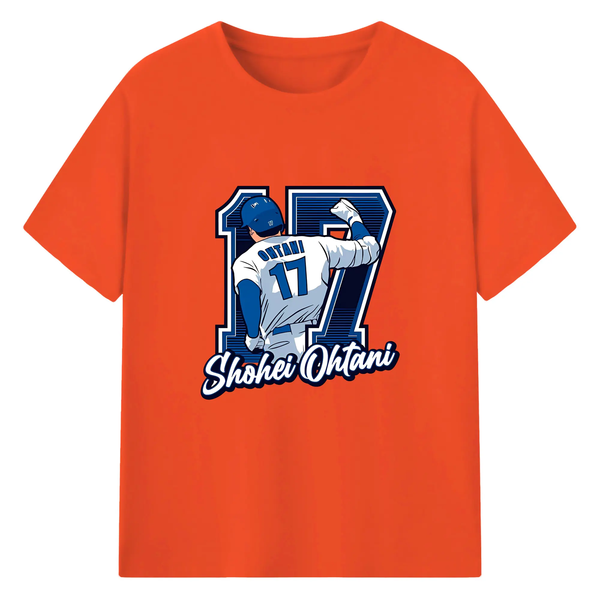 大谷翔平 背番号17 コレクターズアイテム - 綿100% 半袖Tシャツ ・ フロントプリント ・ 快適 通気性 ・ 日常使い 散歩 スポーツ用